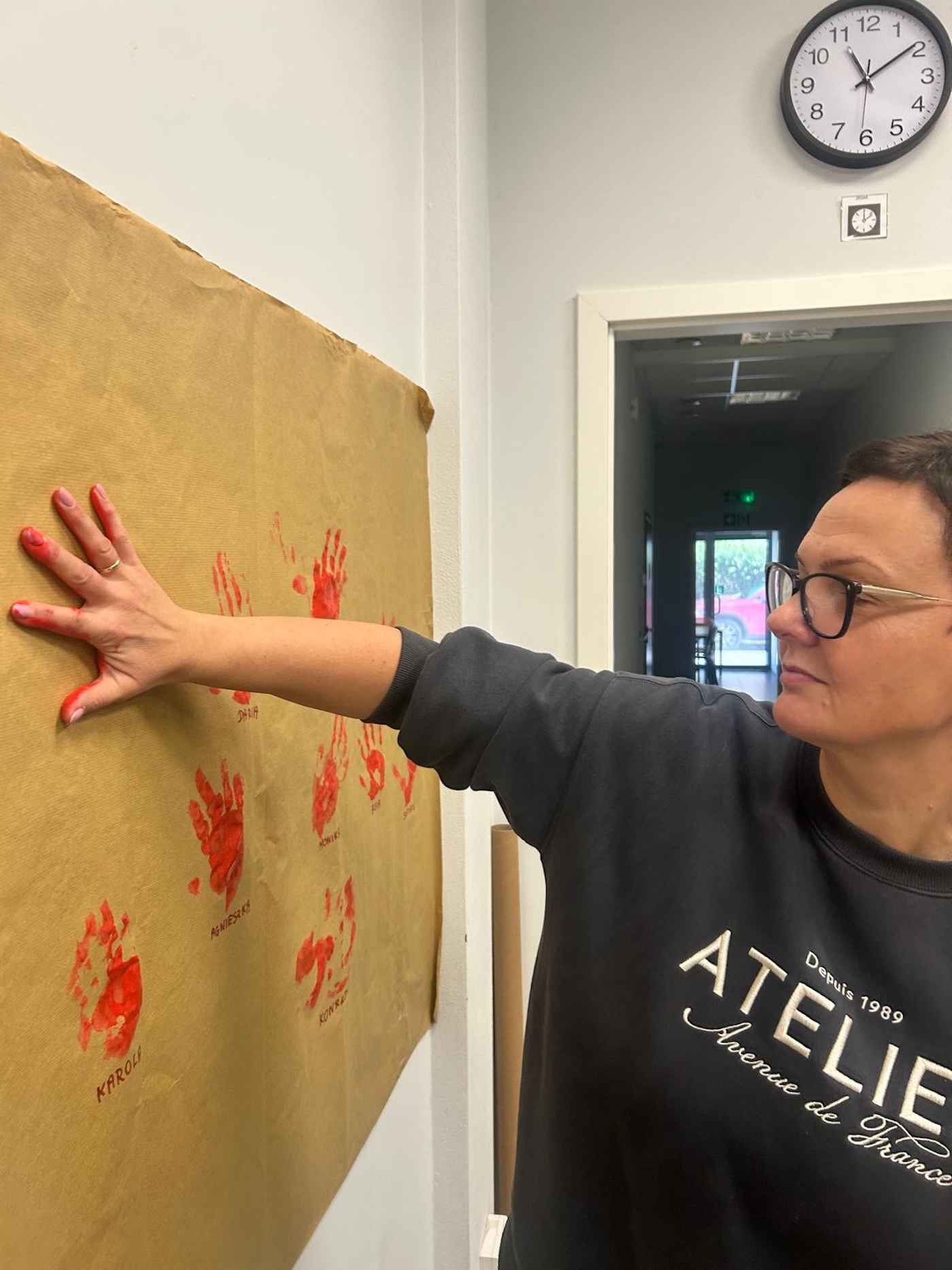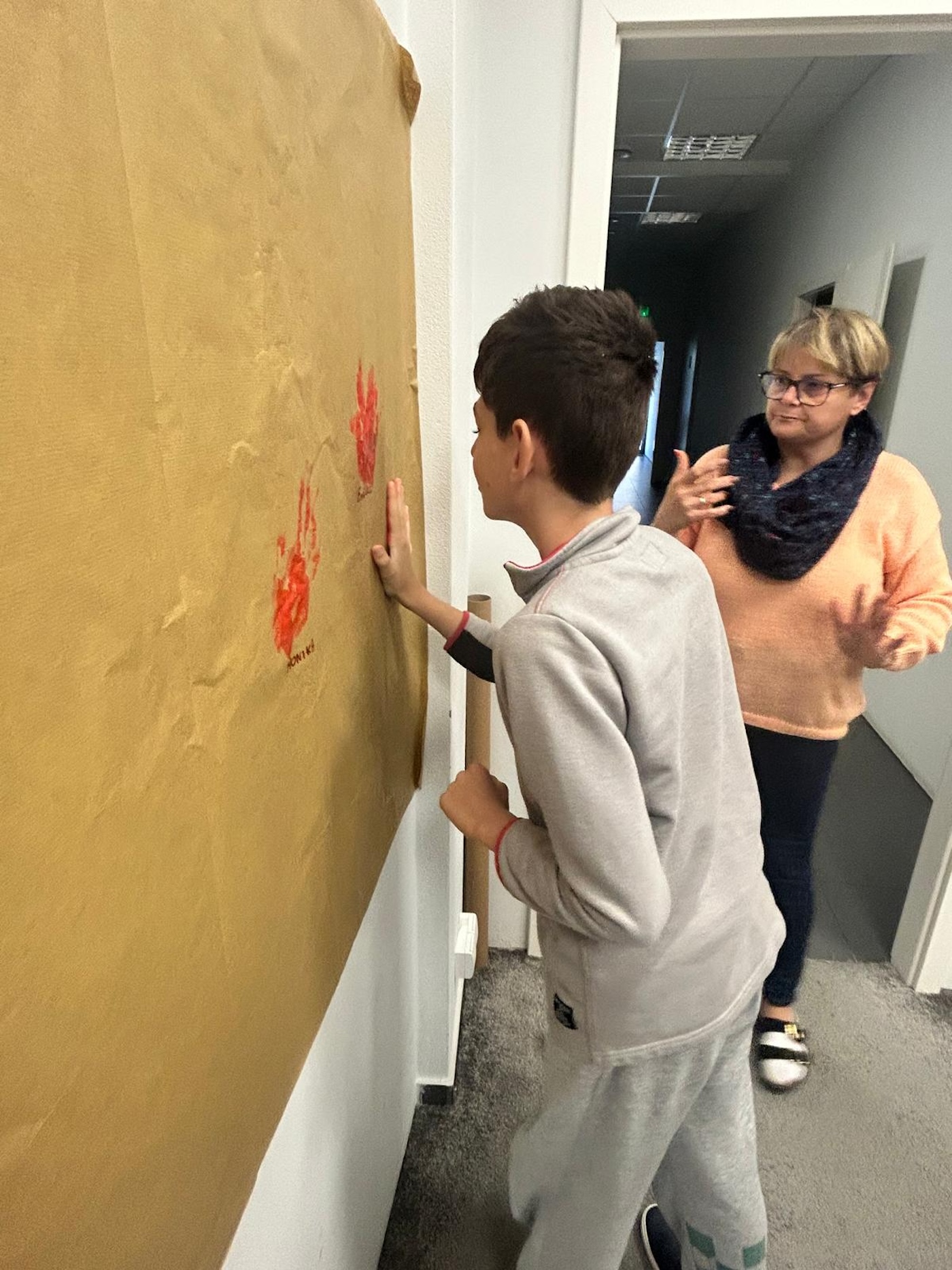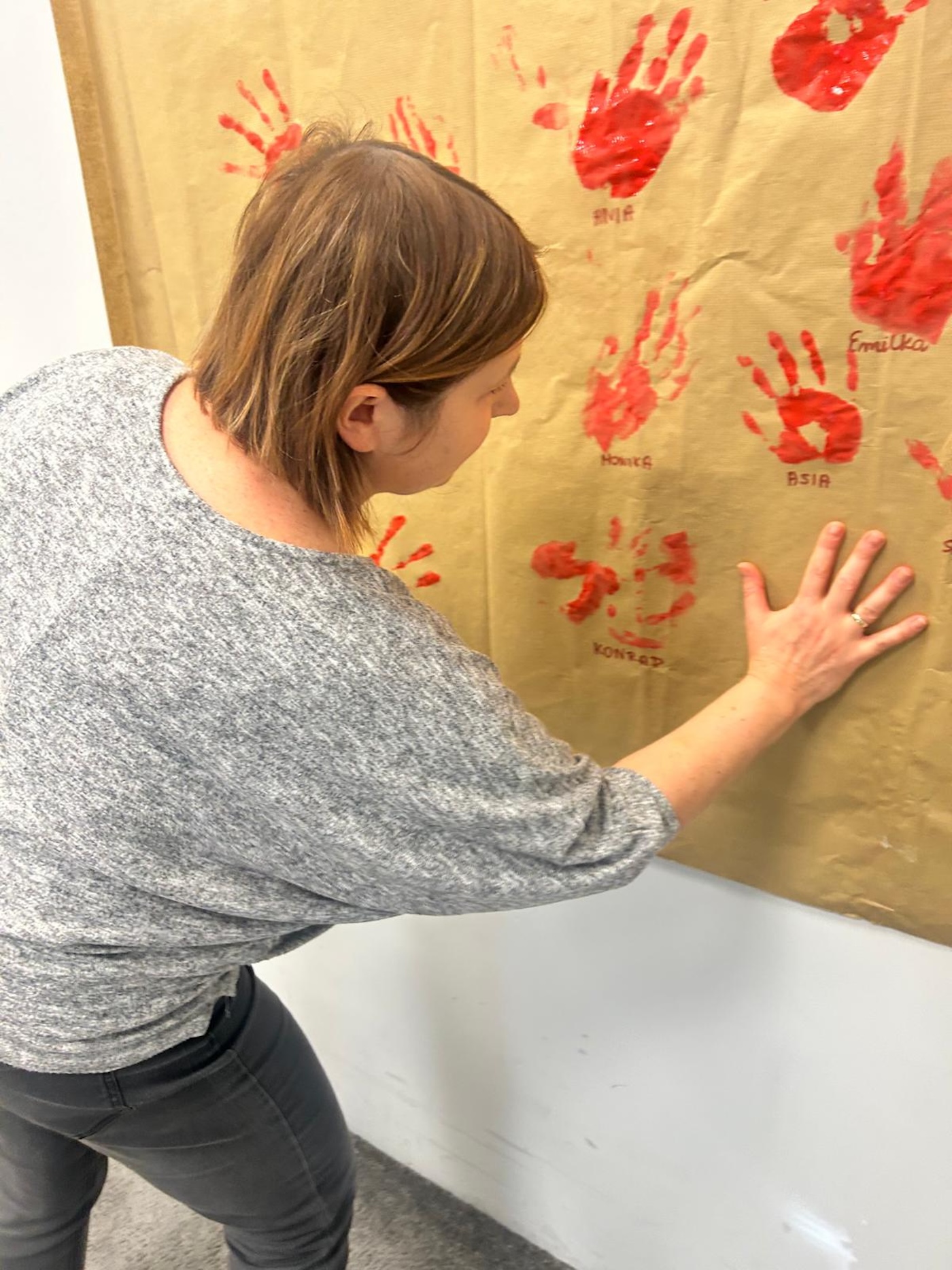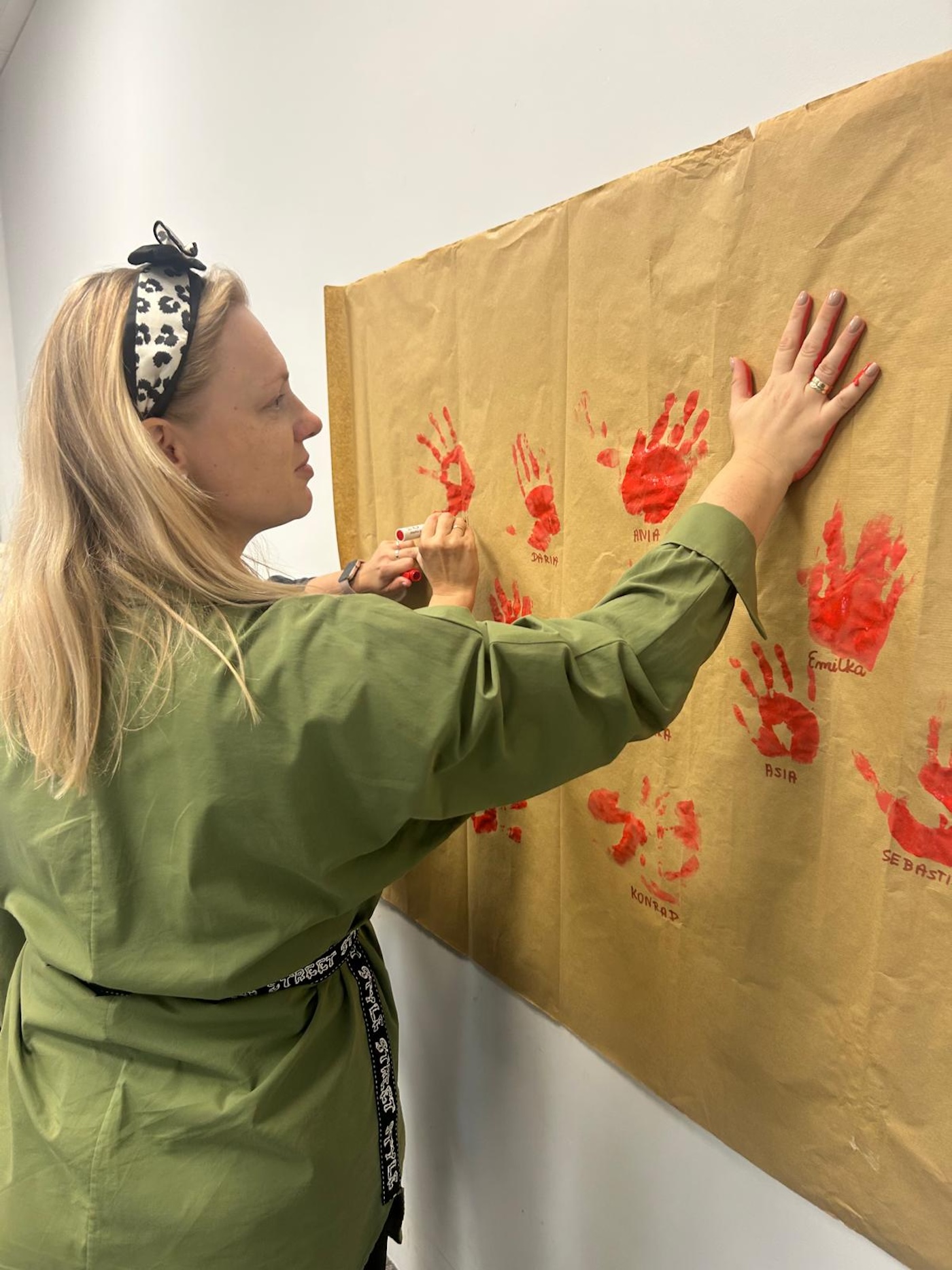 2 października obchodziliśmy w naszej szkole Międzynarodowy Dzień bez Przemocy. Celem tego dnia było uświadomienie uczniom, czym jest przemoc, jak jej przeciwdziałać, w jaki sposób reagować w sytuacjach trudnych oraz jak powinniśmy się wobec siebie nawzajem zachowywać. Zajęcia miały różnorodny charakter – rozmawialiśmy o emocjach i zachowaniach, pracowaliśmy z kartami pracy oraz prowadziliśmy wspólne dyskusje. Uczniowie obejrzeli film edukacyjny „Stop przemocy” i wysłuchali piosenki poruszającej temat przemocy w szkołach. Na zakończenie każde dziecko, wspólnie z opiekunem, wykonało symboliczną pracę plastyczną – odciskając czerwoną dłoń jako znak sprzeciwu wobec przemocy. Obchody Dnia bez Przemocy stanowiły ważny element działań wychowawczych szkoły. Uczniowie aktywnie uczestniczyli w zajęciach, wykazali się zaangażowaniem i zrozumieniem podejmowanej tematyki.