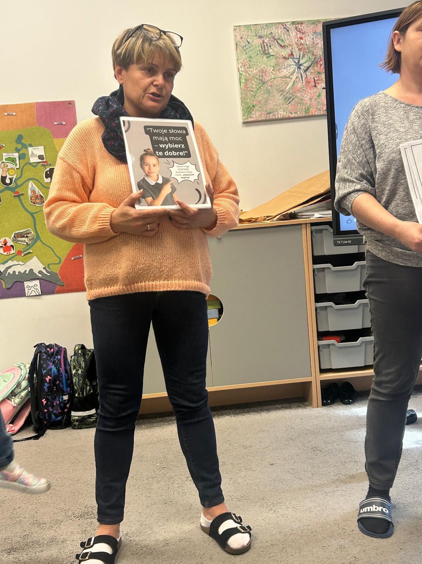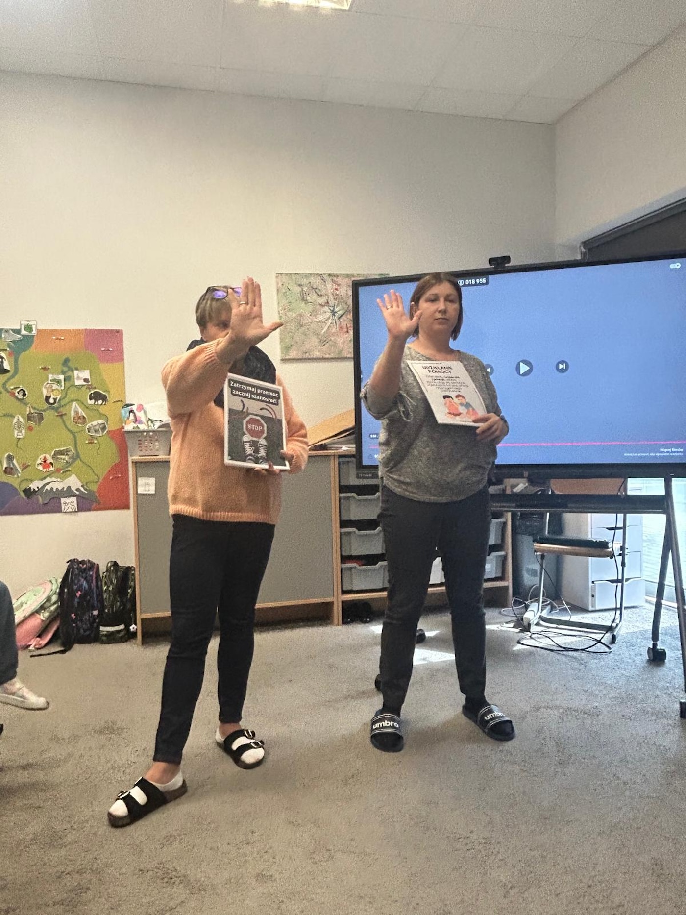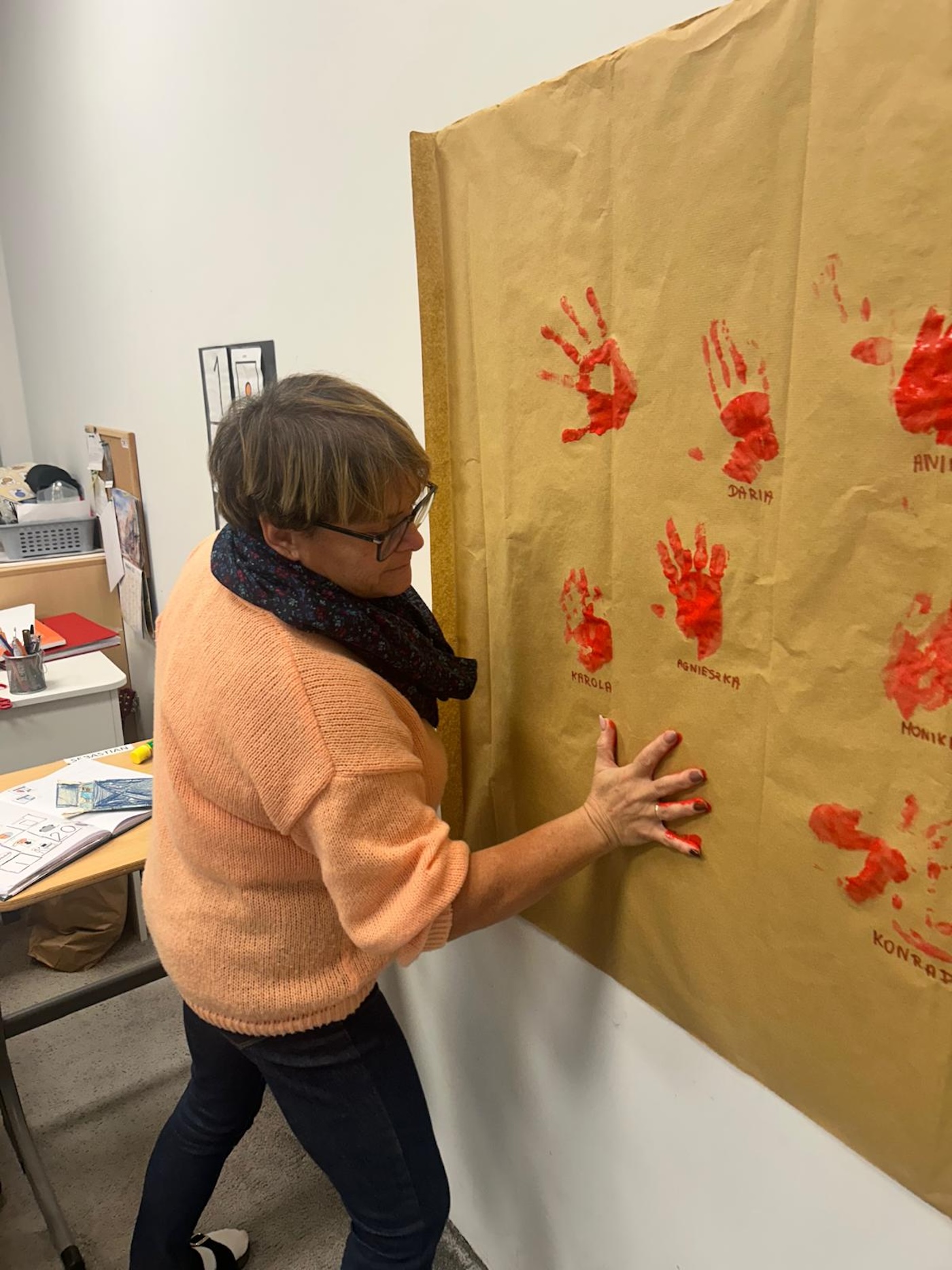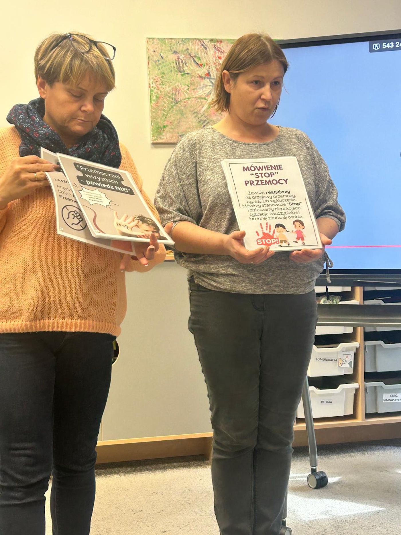 2 października obchodziliśmy w naszej szkole Międzynarodowy Dzień bez Przemocy. Celem tego dnia było uświadomienie uczniom, czym jest przemoc, jak jej przeciwdziałać, w jaki sposób reagować w sytuacjach trudnych oraz jak powinniśmy się wobec siebie nawzajem zachowywać. Zajęcia miały różnorodny charakter – rozmawialiśmy o emocjach i zachowaniach, pracowaliśmy z kartami pracy oraz prowadziliśmy wspólne dyskusje. Uczniowie obejrzeli film edukacyjny „Stop przemocy” i wysłuchali piosenki poruszającej temat przemocy w szkołach. Na zakończenie każde dziecko, wspólnie z opiekunem, wykonało symboliczną pracę plastyczną – odciskając czerwoną dłoń jako znak sprzeciwu wobec przemocy. Obchody Dnia bez Przemocy stanowiły ważny element działań wychowawczych szkoły. Uczniowie aktywnie uczestniczyli w zajęciach, wykazali się zaangażowaniem i zrozumieniem podejmowanej tematyki.