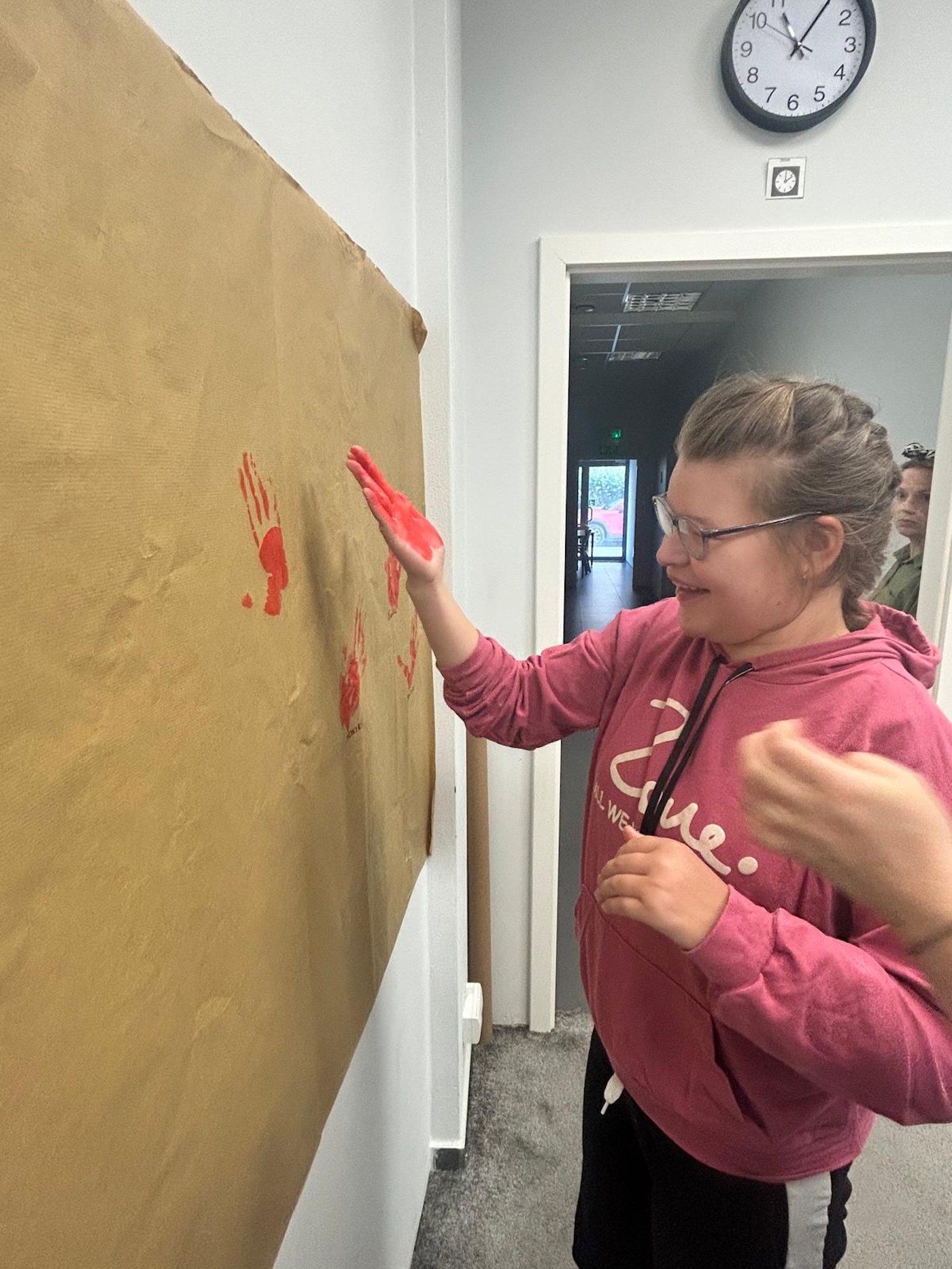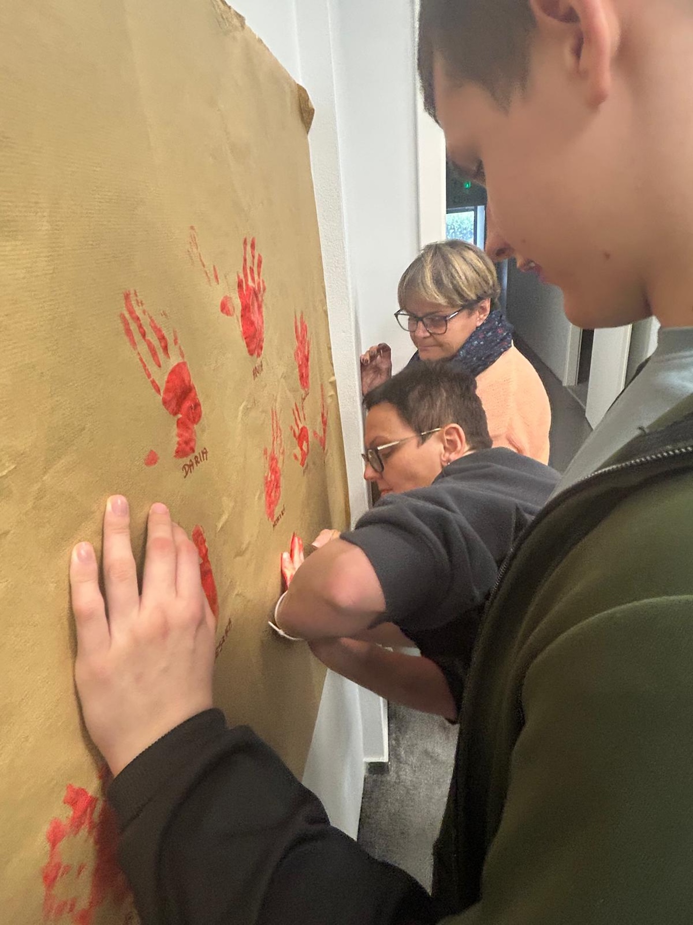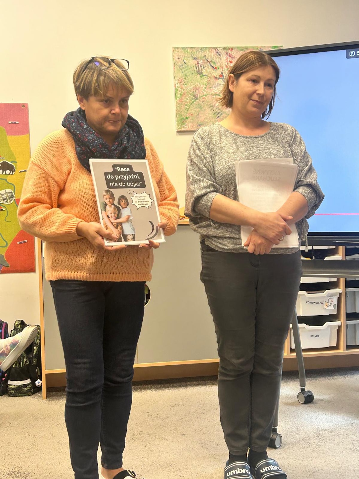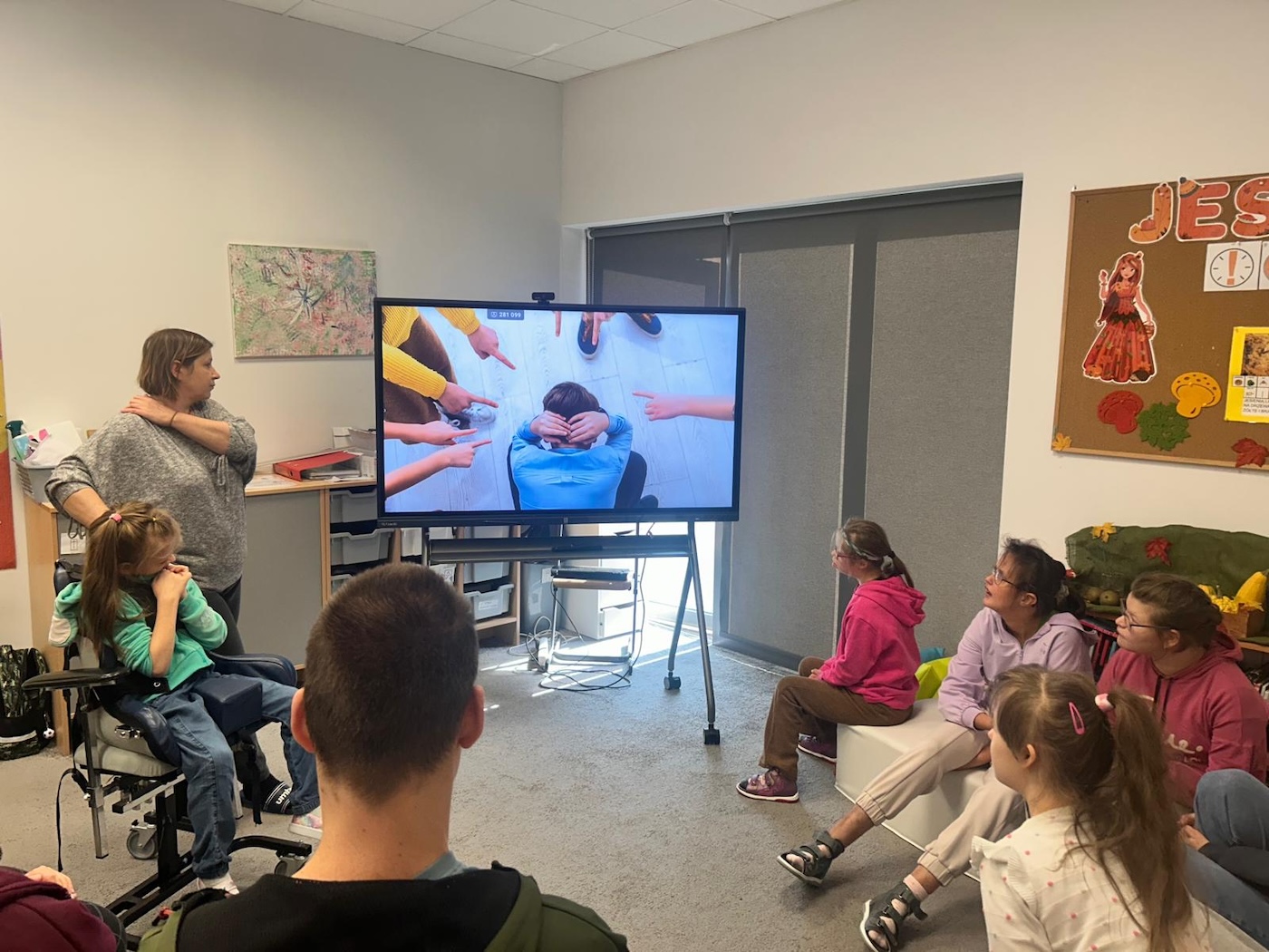 2 października obchodziliśmy w naszej szkole Międzynarodowy Dzień bez Przemocy. Celem tego dnia było uświadomienie uczniom, czym jest przemoc, jak jej przeciwdziałać, w jaki sposób reagować w sytuacjach trudnych oraz jak powinniśmy się wobec siebie nawzajem zachowywać. Zajęcia miały różnorodny charakter – rozmawialiśmy o emocjach i zachowaniach, pracowaliśmy z kartami pracy oraz prowadziliśmy wspólne dyskusje. Uczniowie obejrzeli film edukacyjny „Stop przemocy” i wysłuchali piosenki poruszającej temat przemocy w szkołach. Na zakończenie każde dziecko, wspólnie z opiekunem, wykonało symboliczną pracę plastyczną – odciskając czerwoną dłoń jako znak sprzeciwu wobec przemocy. Obchody Dnia bez Przemocy stanowiły ważny element działań wychowawczych szkoły. Uczniowie aktywnie uczestniczyli w zajęciach, wykazali się zaangażowaniem i zrozumieniem podejmowanej tematyki.