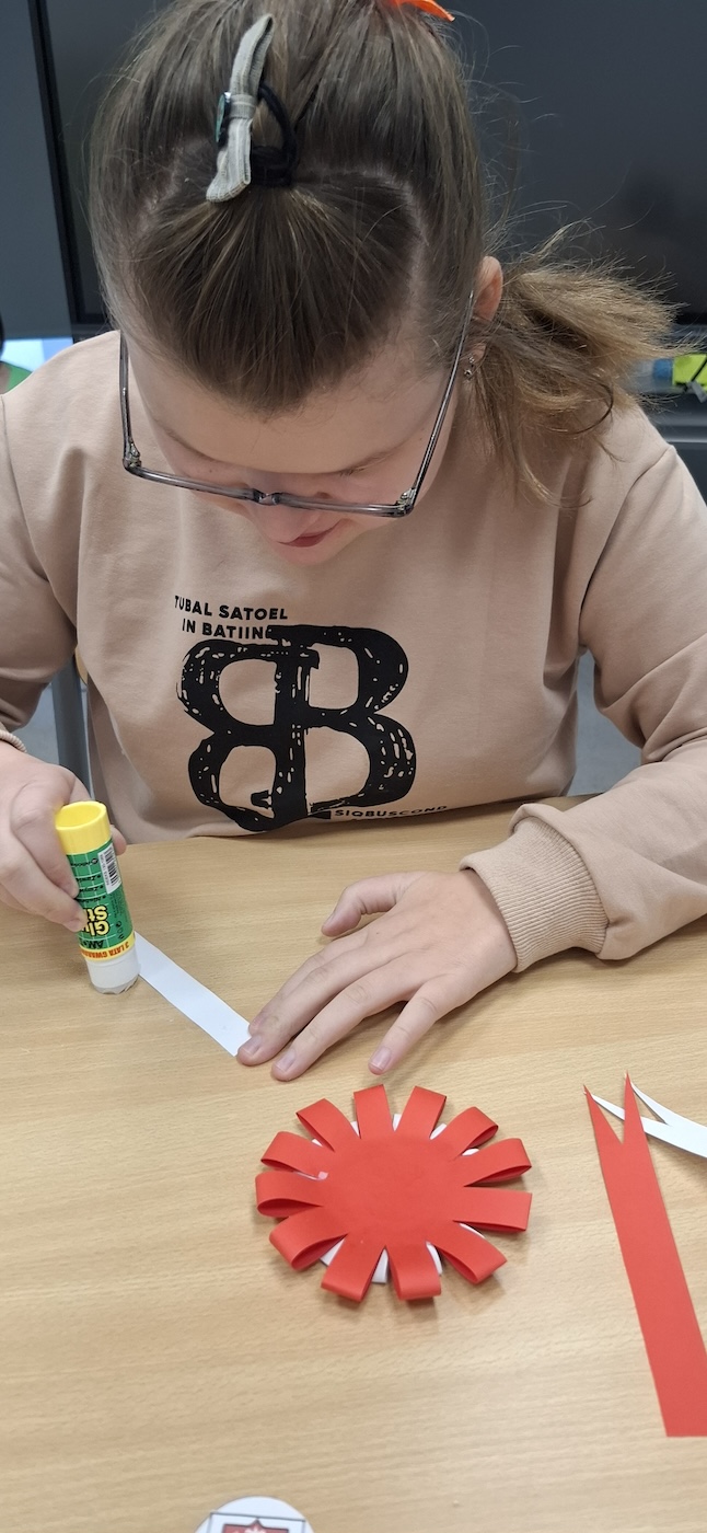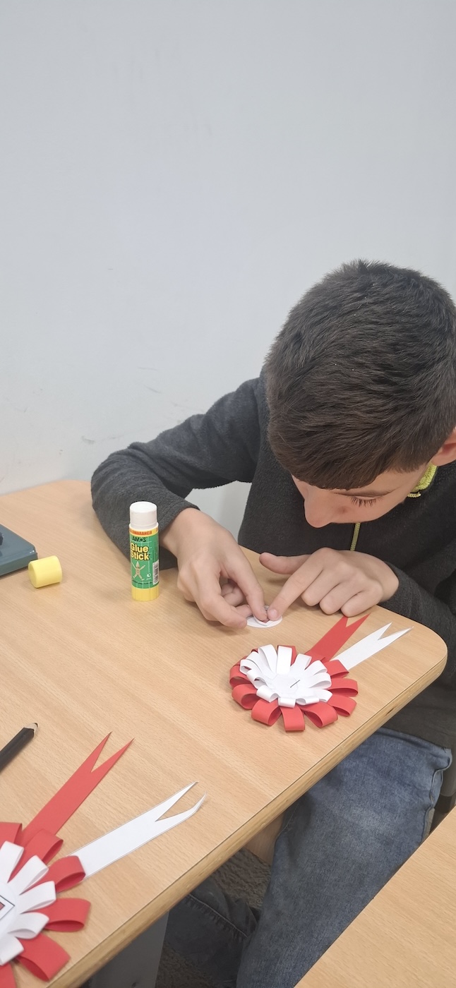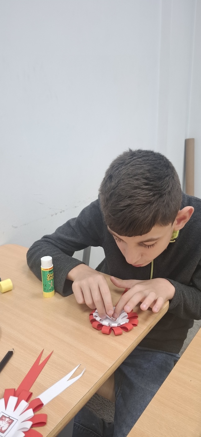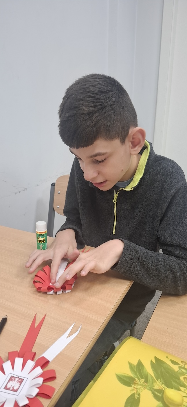 W ramach zajęć plastycznych uczniowie naszej szkoły wykonali kotyliony z papieru. Celem pracy było rozwijanie kreatywności, zdolności manualnych oraz kształtowanie postaw patriotycznych poprzez twórczą aktywność. Podczas zajęć uczniowie z zaangażowaniem tworzyli kotyliony, wykorzystując różnorodne techniki plastyczne oraz materiały papiernicze. Prace nawiązywały do barw narodowych i tradycyjnych symboli, a każdy kotylion był niepowtarzalny i odzwierciedlał pomysłowość jego autora. Zajęcia sprawiły uczniom wiele radości, a jednocześnie były okazją do rozmowy o znaczeniu symboli narodowych oraz o tym, w jakich sytuacjach nosimy kotyliony. Wykonane prace zostały wykorzystane podczas uroczystości szkolnych – Apel z okazji Dnia 11 Listopada.