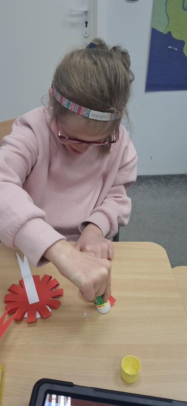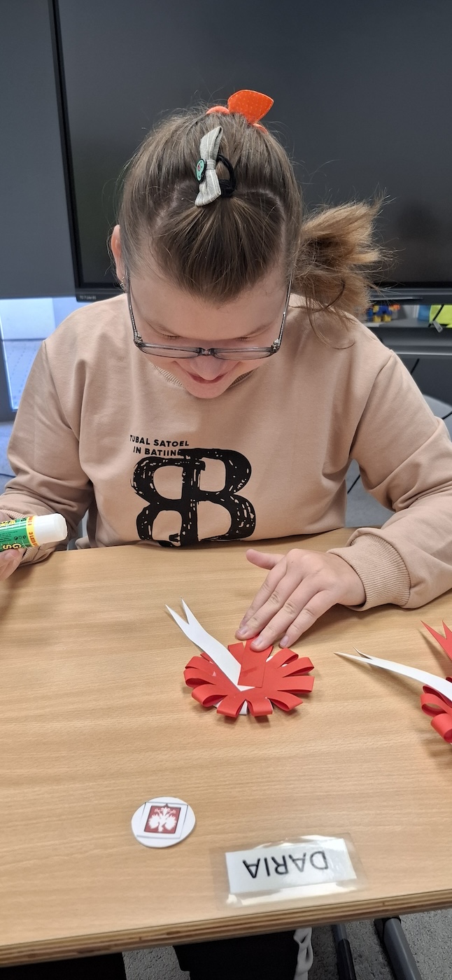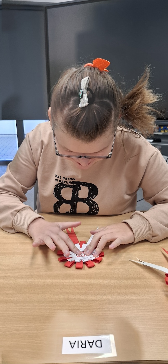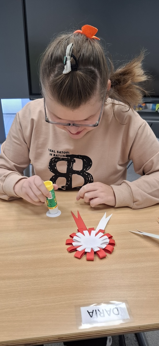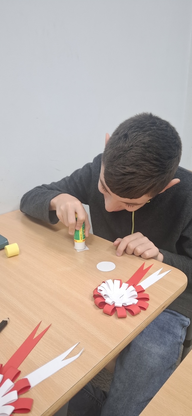 W ramach zajęć plastycznych uczniowie naszej szkoły wykonali kotyliony z papieru. Celem pracy było rozwijanie kreatywności, zdolności manualnych oraz kształtowanie postaw patriotycznych poprzez twórczą aktywność. Podczas zajęć uczniowie z zaangażowaniem tworzyli kotyliony, wykorzystując różnorodne techniki plastyczne oraz materiały papiernicze. Prace nawiązywały do barw narodowych i tradycyjnych symboli, a każdy kotylion był niepowtarzalny i odzwierciedlał pomysłowość jego autora. Zajęcia sprawiły uczniom wiele radości, a jednocześnie były okazją do rozmowy o znaczeniu symboli narodowych oraz o tym, w jakich sytuacjach nosimy kotyliony. Wykonane prace zostały wykorzystane podczas uroczystości szkolnych – Apel z okazji Dnia 11 Listopada.