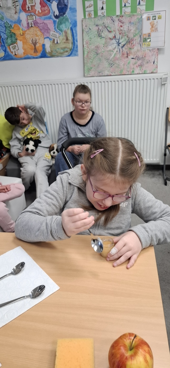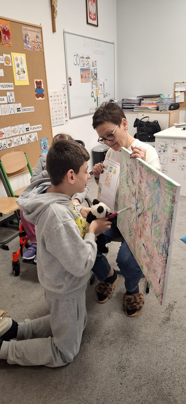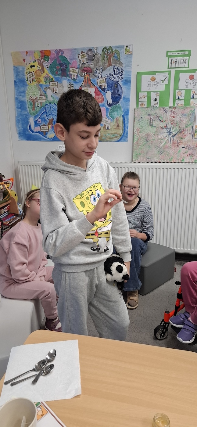 Uczniowie z dużym zaangażowaniem uczestniczyli w tworzeniu swoich prac – skupiali się na wykonywanych czynnościach oraz reagowali na bodźce sensoryczne związane z posypką. Zajęcia wspierały rozwój motoryki małej, stymulację dotykową oraz dawały dzieciom możliwość twórczej ekspresji.