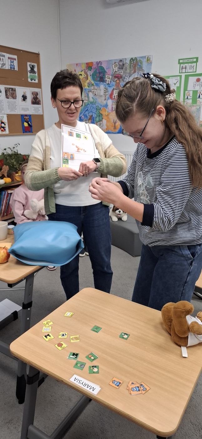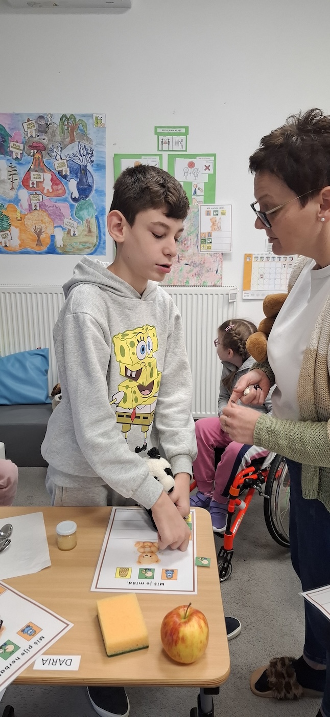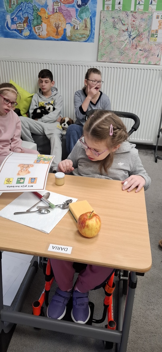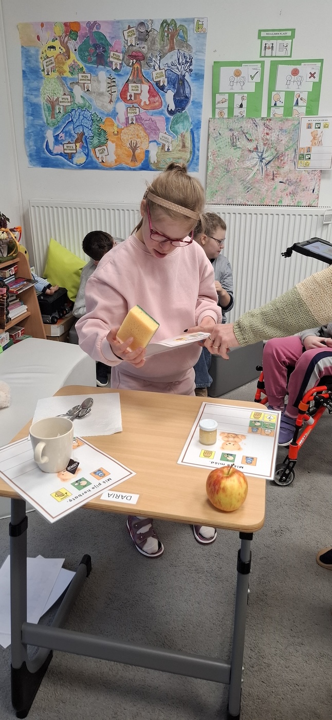 Uczniowie z dużym zaangażowaniem uczestniczyli w tworzeniu swoich prac – skupiali się na wykonywanych czynnościach oraz reagowali na bodźce sensoryczne związane z posypką. Zajęcia wspierały rozwój motoryki małej, stymulację dotykową oraz dawały dzieciom możliwość twórczej ekspresji.