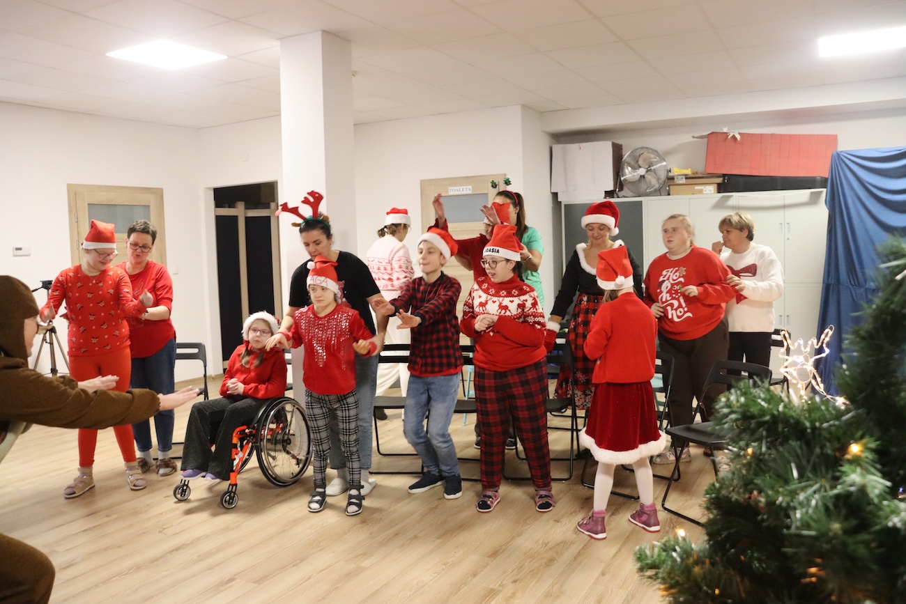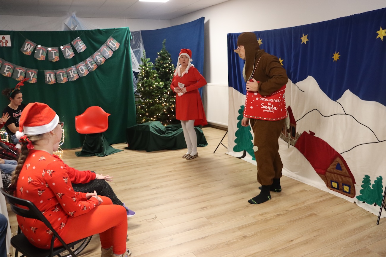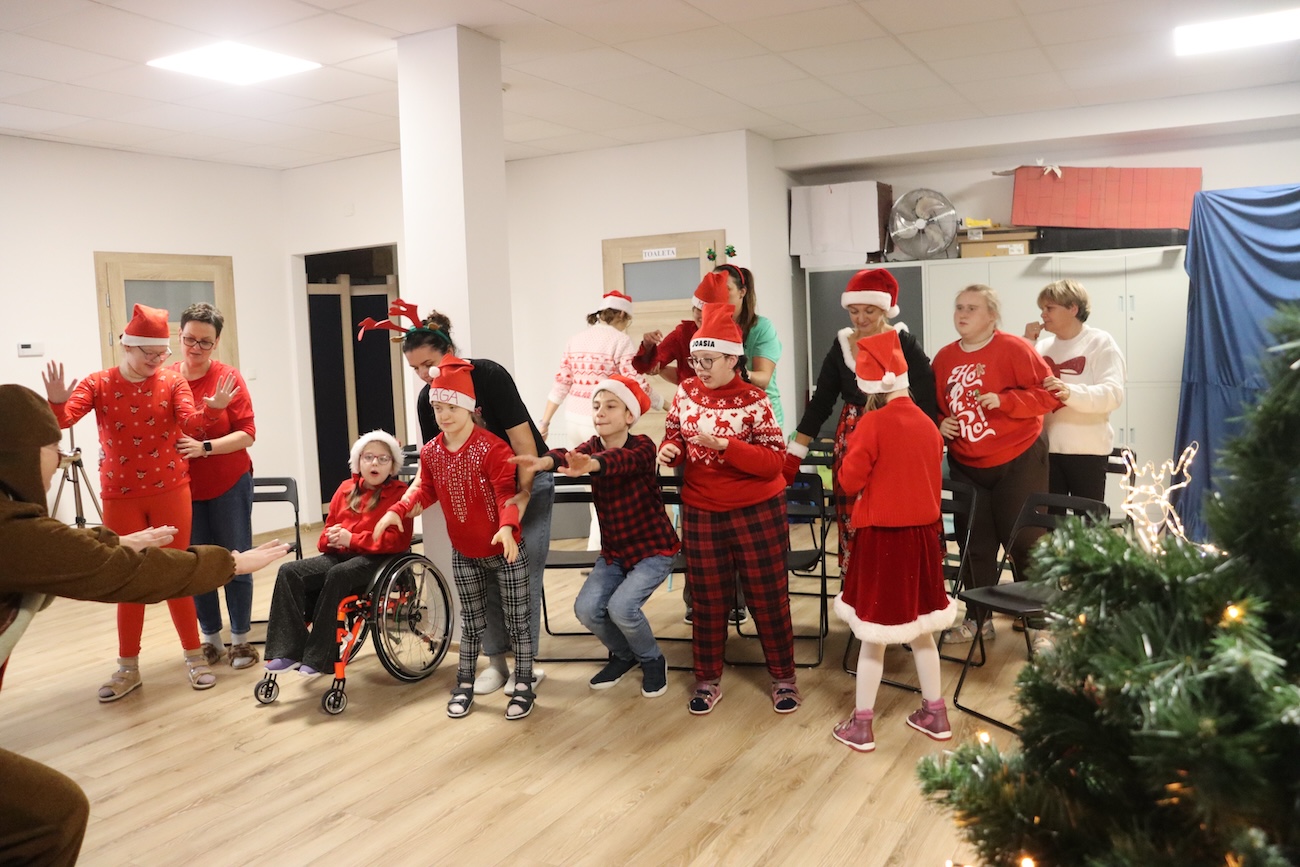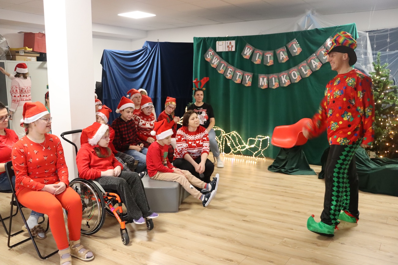 Po raz kolejny odwiedził nas Teatrzyk Skrzat z Krakowa. Uczniowie naszej szkoły specjalnej mieli okazję obejrzeć pełne magii i świątecznego nastroju przedstawienie pt. „List do Mikołaja”. Bohaterowie spektaklu zabrali dzieci w niezwykłą podróż do krainy Świętego Mikołaja, gdzie uczniowie spotkali się z takimi postaciami jak: lalka, pajacyk, bałwan, zajączek, miś, dziewczynka oraz Święty Mikołaj. Czy tylko dzieci piszą listy do Mikołaja? Nic bardziej mylnego! W tym roku swój pierwszy list napisały… zabawki. Uczniowie z dużym zaangażowaniem uczestniczyli w teatrzyku, aktywnie pomagając bohaterom w dostarczeniu listu do Mikołaja. Przedstawienie bardzo spodobało się naszym uczniom – z zainteresowaniem śledzili losy bohaterów, reagowali śmiechem, gestami i spontaniczną radością. Spotkanie z teatrem było nie tylko wspaniałą formą rozrywki, ale także okazją do rozwijania wyobraźni, wrażliwości emocjonalnej oraz umiejętności społecznych. Świąteczna atmosfera i bezpośredni kontakt z aktorami sprawiły, że wydarzenie na długo pozostanie w pamięci naszych uczniów.