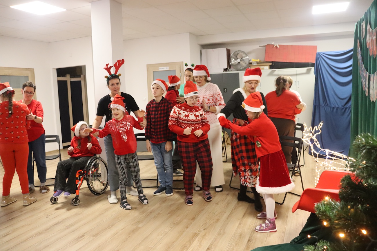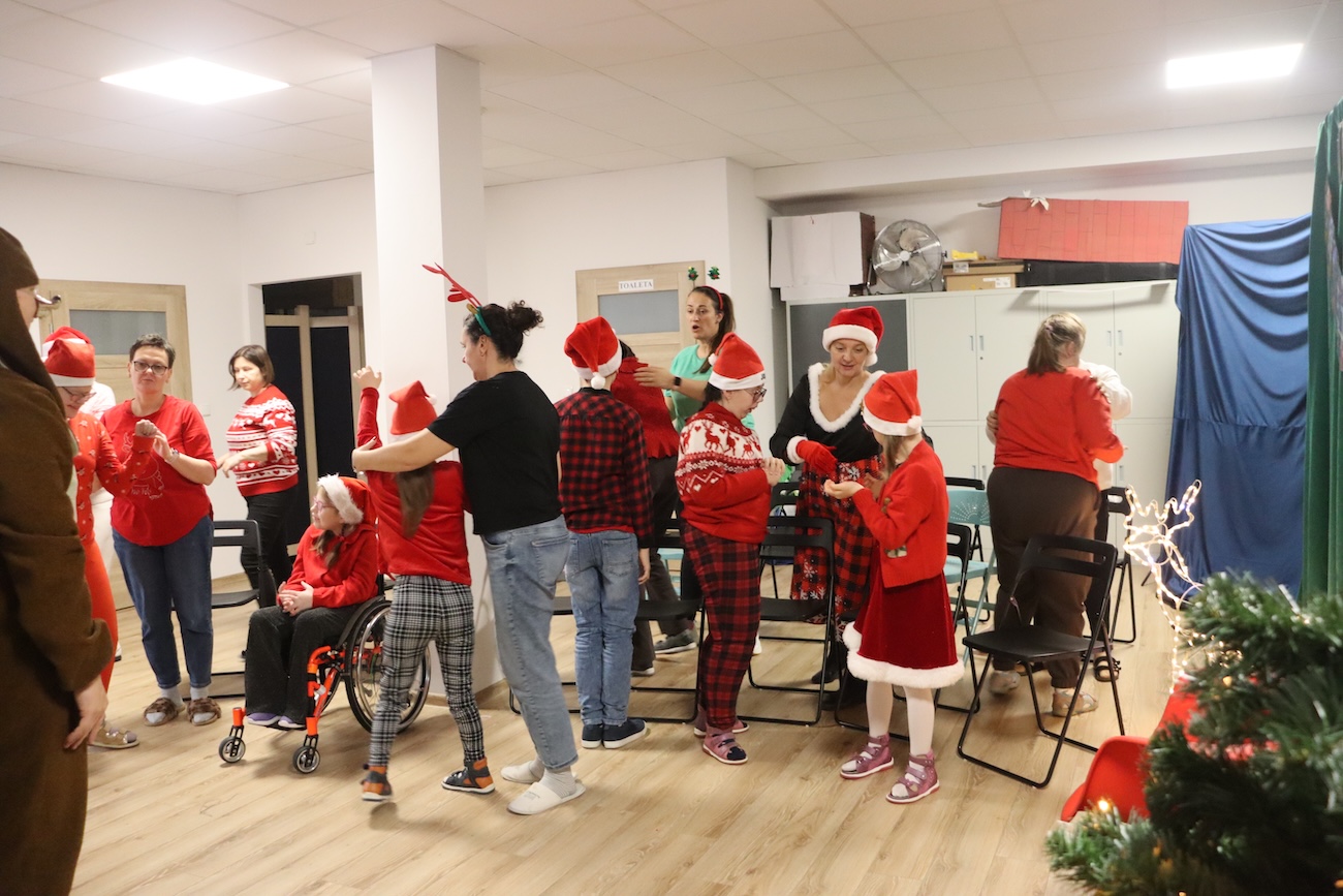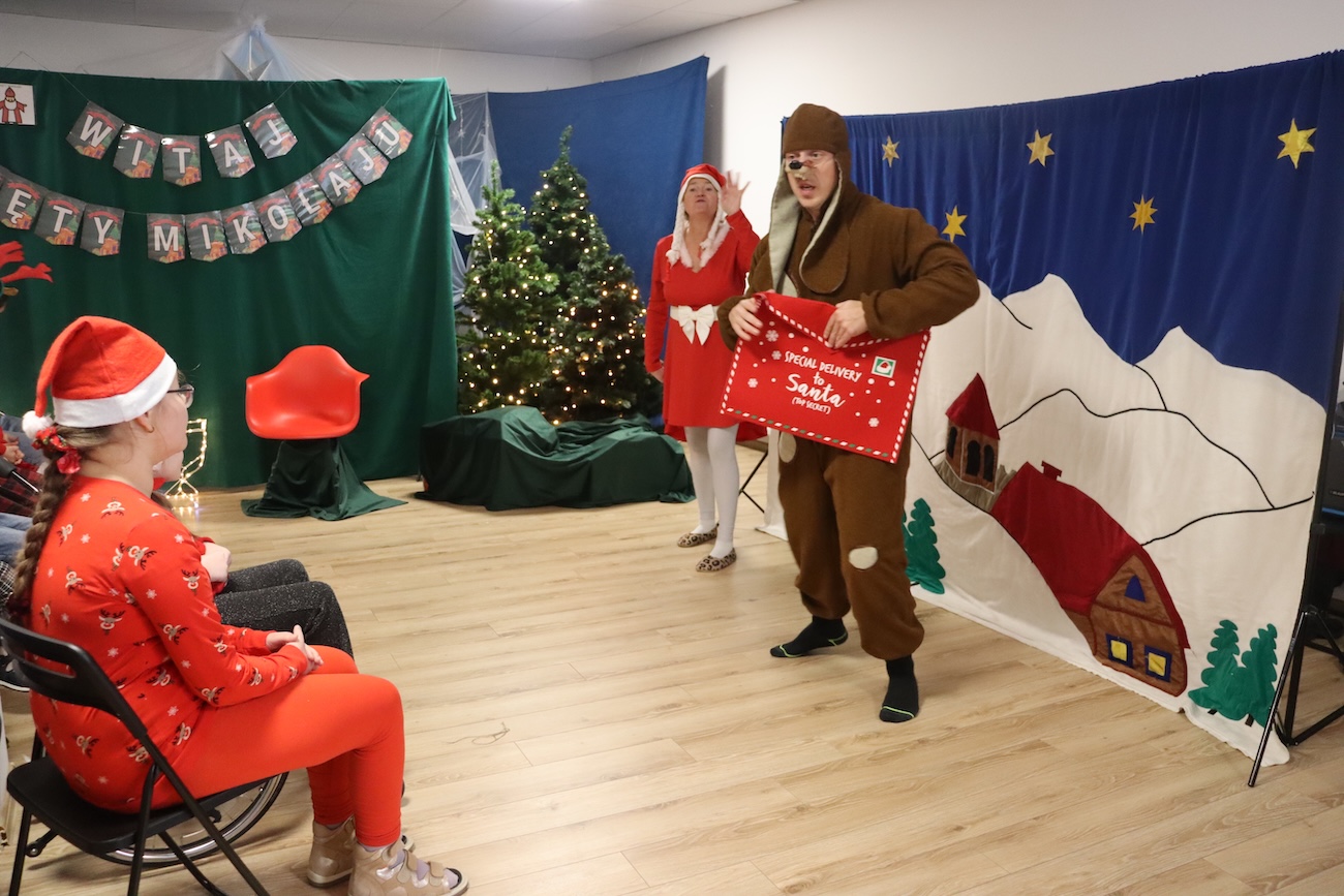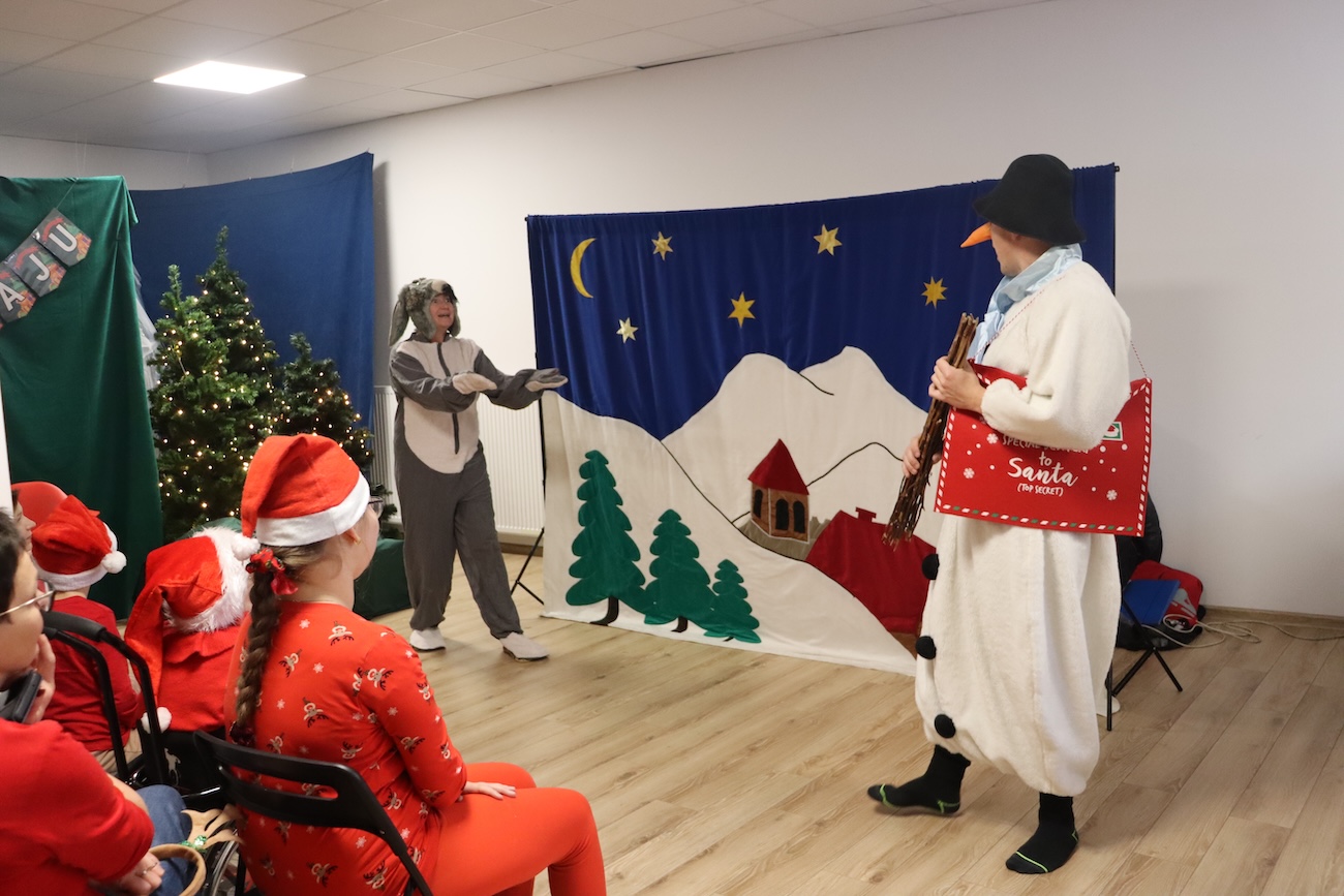 Po raz kolejny odwiedził nas Teatrzyk Skrzat z Krakowa. Uczniowie naszej szkoły specjalnej mieli okazję obejrzeć pełne magii i świątecznego nastroju przedstawienie pt. „List do Mikołaja”. Bohaterowie spektaklu zabrali dzieci w niezwykłą podróż do krainy Świętego Mikołaja, gdzie uczniowie spotkali się z takimi postaciami jak: lalka, pajacyk, bałwan, zajączek, miś, dziewczynka oraz Święty Mikołaj. Czy tylko dzieci piszą listy do Mikołaja? Nic bardziej mylnego! W tym roku swój pierwszy list napisały… zabawki. Uczniowie z dużym zaangażowaniem uczestniczyli w teatrzyku, aktywnie pomagając bohaterom w dostarczeniu listu do Mikołaja. Przedstawienie bardzo spodobało się naszym uczniom – z zainteresowaniem śledzili losy bohaterów, reagowali śmiechem, gestami i spontaniczną radością. Spotkanie z teatrem było nie tylko wspaniałą formą rozrywki, ale także okazją do rozwijania wyobraźni, wrażliwości emocjonalnej oraz umiejętności społecznych. Świąteczna atmosfera i bezpośredni kontakt z aktorami sprawiły, że wydarzenie na długo pozostanie w pamięci naszych uczniów.