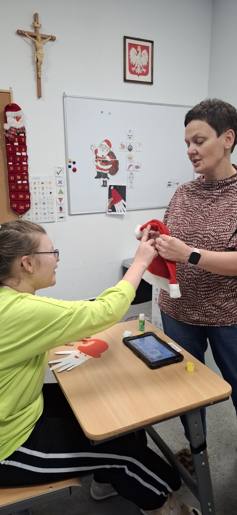 Uczniowie Oddziału „I” w tygodniu poświęconym omawianiu postaci Świętego Mikołaja wykonali pracę plastyczną pt. „Mikołaj”. Dzieci z dużym zaangażowaniem i radością tworzyły swoje prace, rozwijając wyobraźnię, sprawność manualną oraz kreatywność. Powstałe prace były bardzo pomysłowe, a każde dzieło miało swój niepowtarzalny charakter.