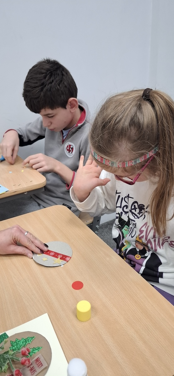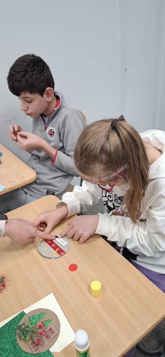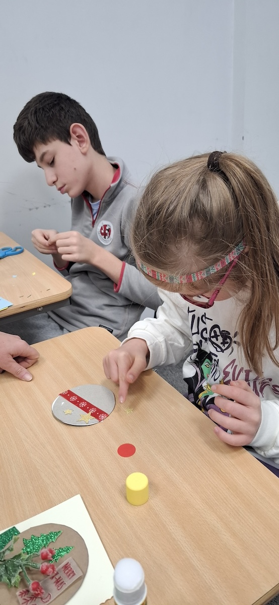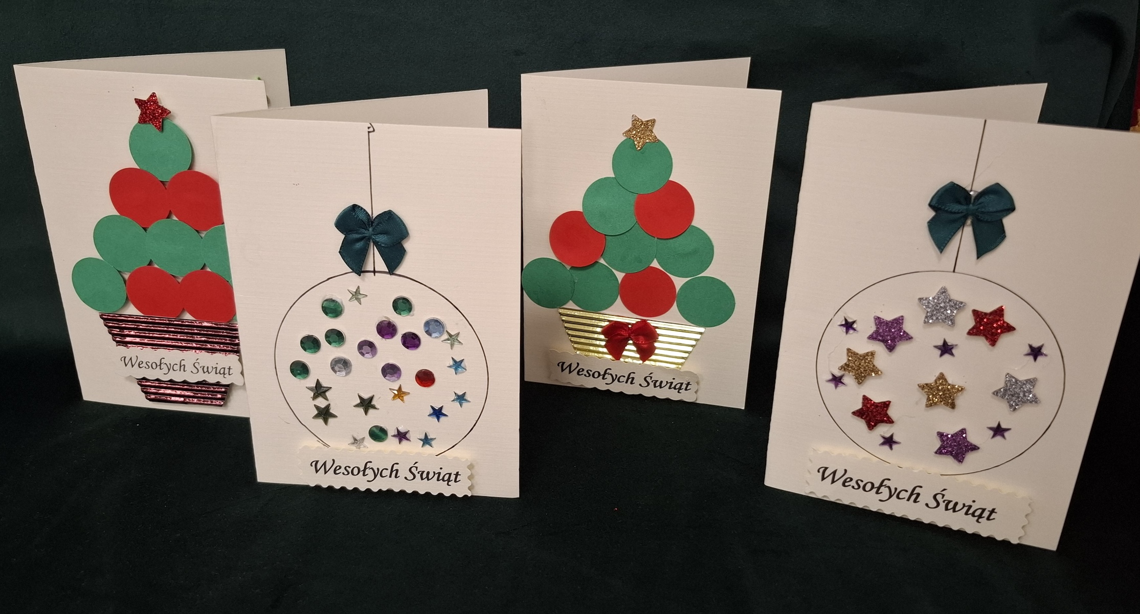 W ostatnich dniach przed przerwą świąteczną uczniowie oddziału „I” z zaangażowaniem włączyli się w przygotowanie własnoręcznie wykonanych kartek bożonarodzeniowych. Zajęcia plastyczne stały się okazją do rozwijania kreatywności, wyobraźni oraz zdolności manualnych. Podczas warsztatów uczniowie tworzyli kartki przedstawiające świąteczne choinki oraz bombki. Do ich wykonania wykorzystali kolorowy papier, brokatowe gwiazdki, cekiny, kryształki, wstążki oraz ozdobne elementy dekoracyjne. Powstały kompozycje pełne kolorów, blasku i świątecznego nastroju. Każda kartka była wyjątkowa i niepowtarzalna. Własnoręczne przygotowanie kartek sprawiło uczniom wiele radości, a wspólna praca sprzyjała integracji oraz budowaniu świątecznej atmosfery w naszej szkole. Gotowe prace zostały przekazane wraz z serdecznymi życzeniami „Wesołych Świąt”. To piękny przykład na to, że najcenniejsze prezenty to te wykonane z sercem.