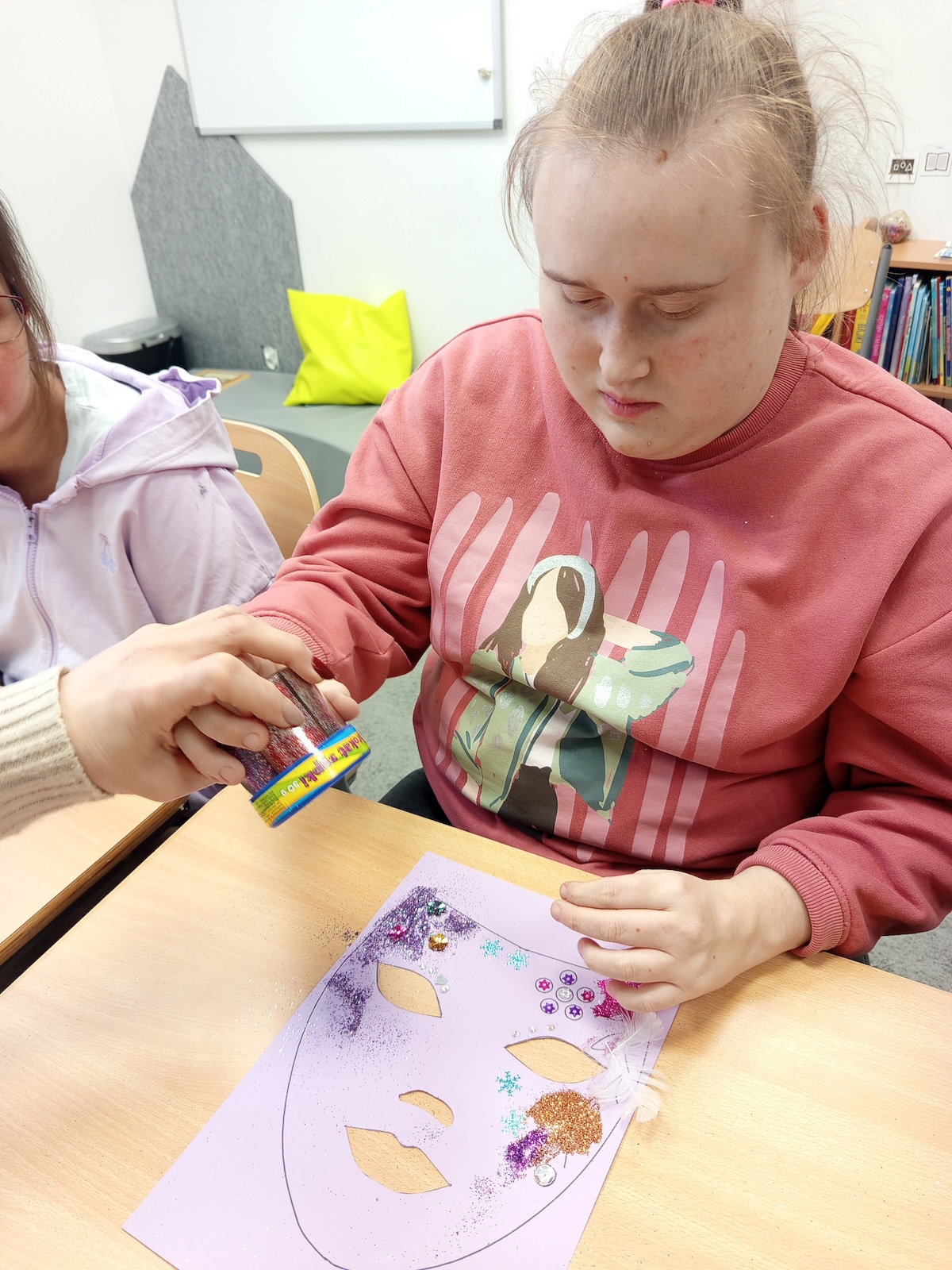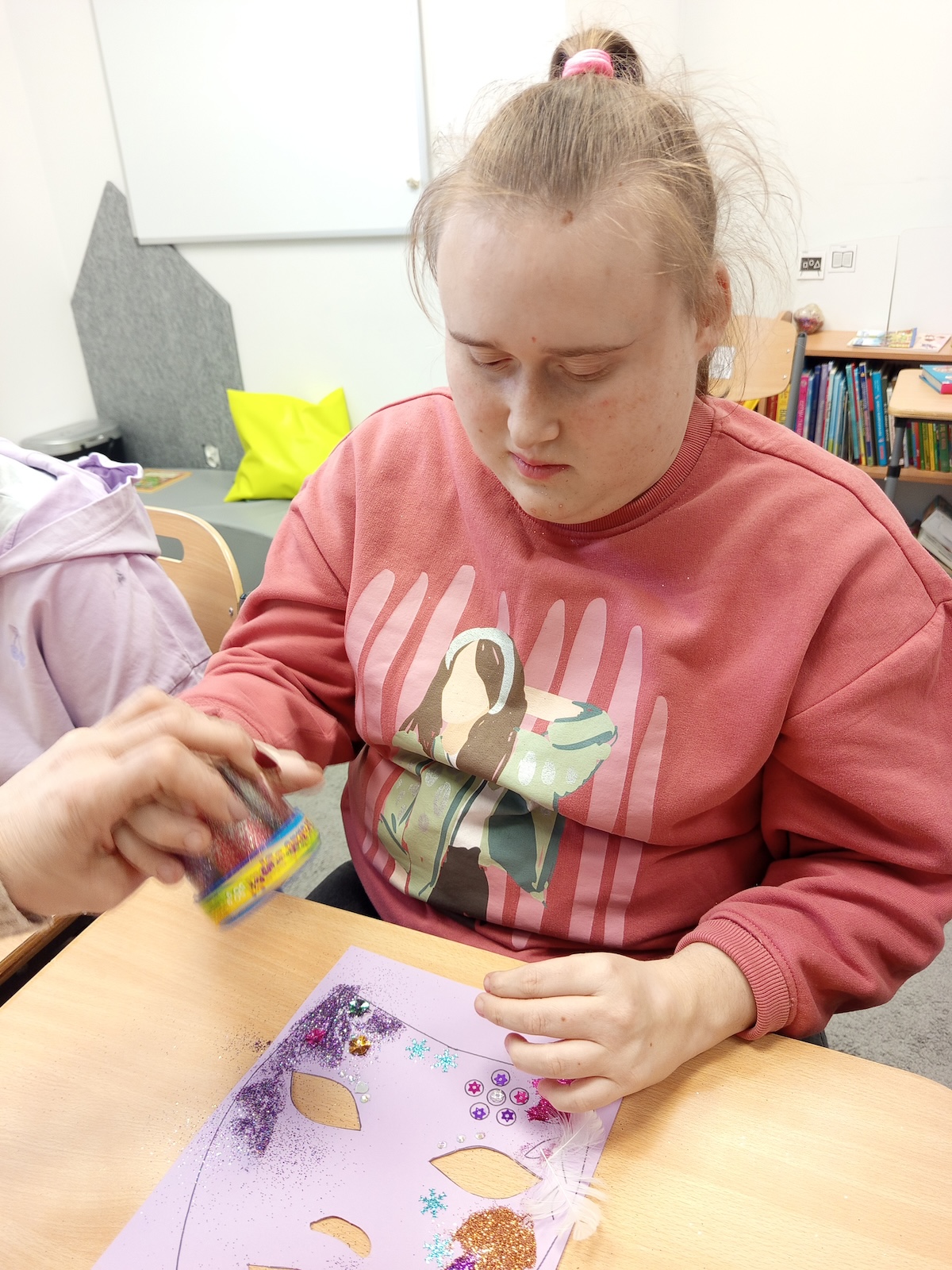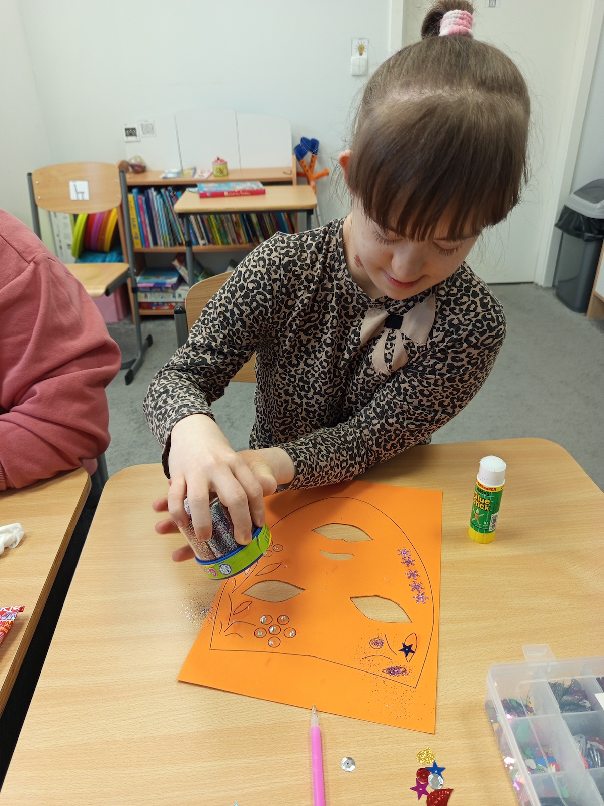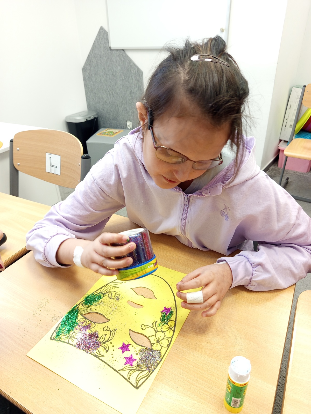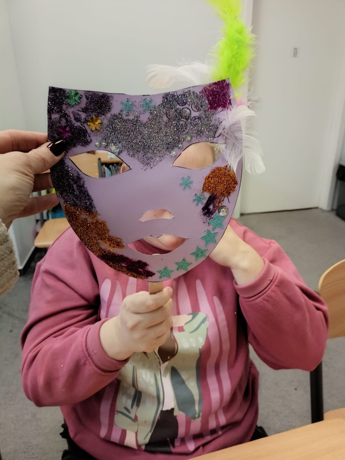 W ramach zajęć plastycznych uczniowie wykonali kolorowe maski karnawałowe. Dzieci z dużym zaangażowaniem wycinały kształty masek, a następnie ozdabiały je według własnych pomysłów. Podczas pracy nie zabrakło brokatu, piórek oraz różnorodnych dekoracji, które uczniowie starannie przyklejali, rozwijając przy tym sprawność manualną, kreatywność i wyobraźnię. Każda maska była wyjątkowa i odzwierciedlała indywidualny styl jej autora. Zajęcia dostarczyły dzieciom wiele radości i były doskonałą okazją do twórczej zabawy oraz wspólnego świętowania karnawału.