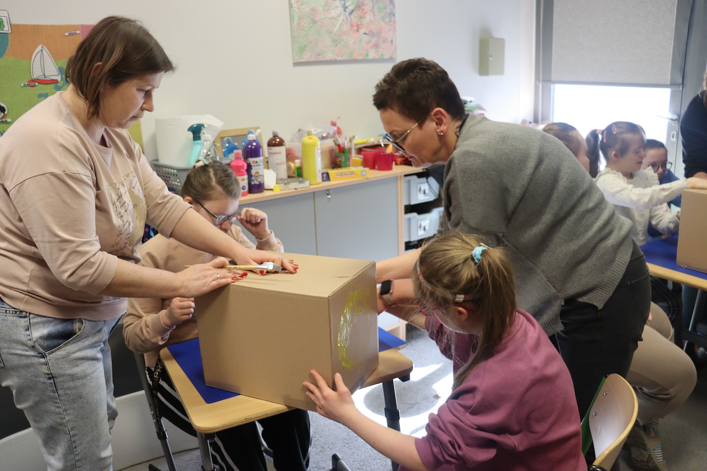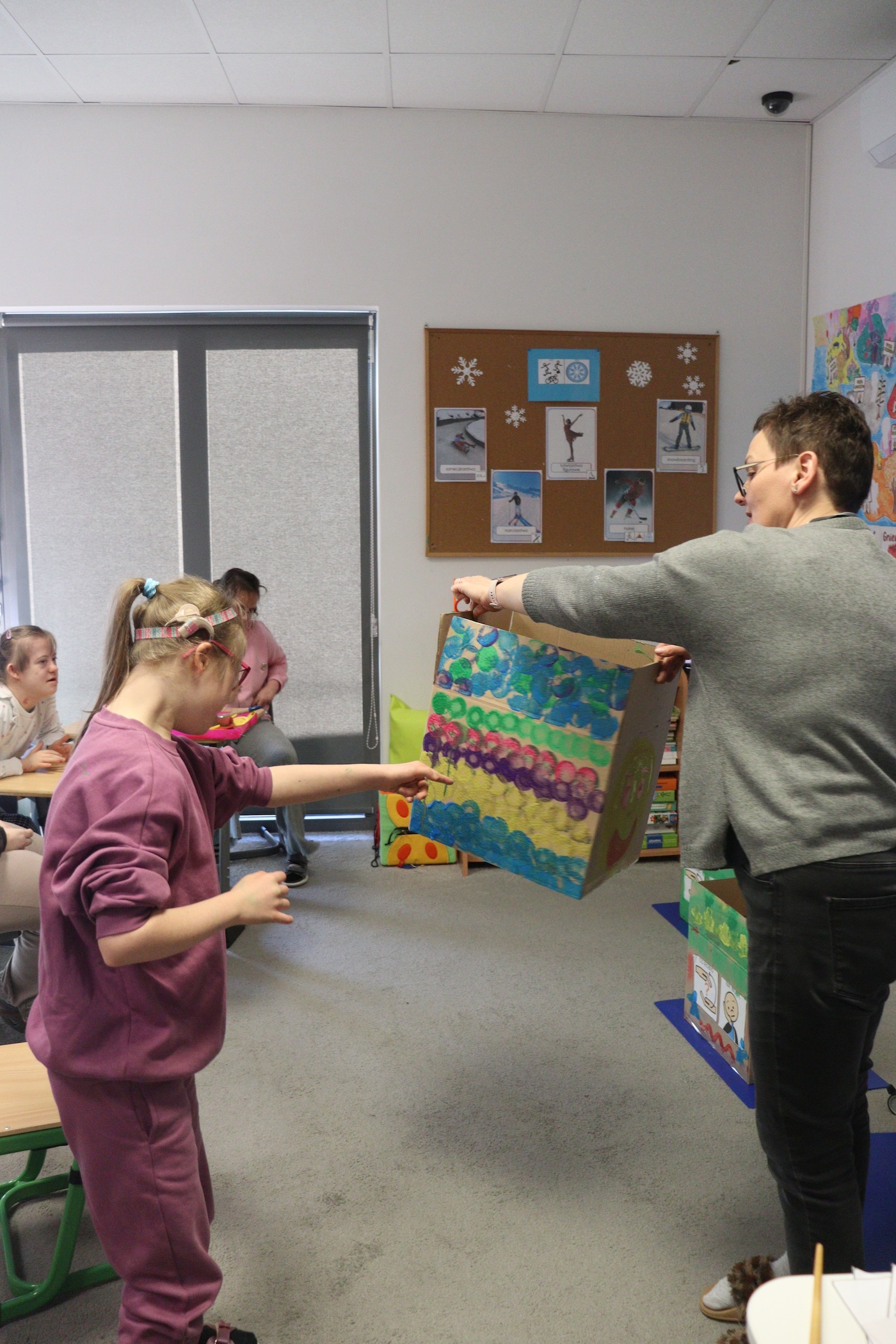 Nasza szkoła bierze udział w projekcie „Czuciaki z Krainy Emocji”. Tym razem uczniowie poznali Nudka z Wyspy Znudzenia. Bohater przypomina, że nuda wcale nie musi być czymś negatywnym – może być sygnałem, że warto spróbować czegoś nowego. Dzięki niemu dzieci uczą się, jak twórczo reagować na nudę oraz samodzielnie znajdować pomysły na ciekawe i rozwijające zabawy. W ramach zajęć każda grupa stworzyła własne „pudełko na nudę”. Uczniowie samodzielnie je ozdabiali według własnych pomysłów – jedni malowali łąki i motyle, inni kwiaty, a jeszcze inni uśmiechnięte buźki. Następnie każda klasa włożyła do swojego pudełka przyniesione „skarby”, po które można sięgnąć w chwilach nudy. Kolejnym sposobem na nudę była wspólna gra planszowa. Dzieci podzieliły się na trzy drużyny i z zaangażowaniem wzięły udział w rozgrywce, ucząc się przy tym współpracy i zdrowej rywalizacji. To był dzień pełen radości, kreatywności i odkrywania, że nuda może być początkiem czegoś naprawdę ciekawego!
