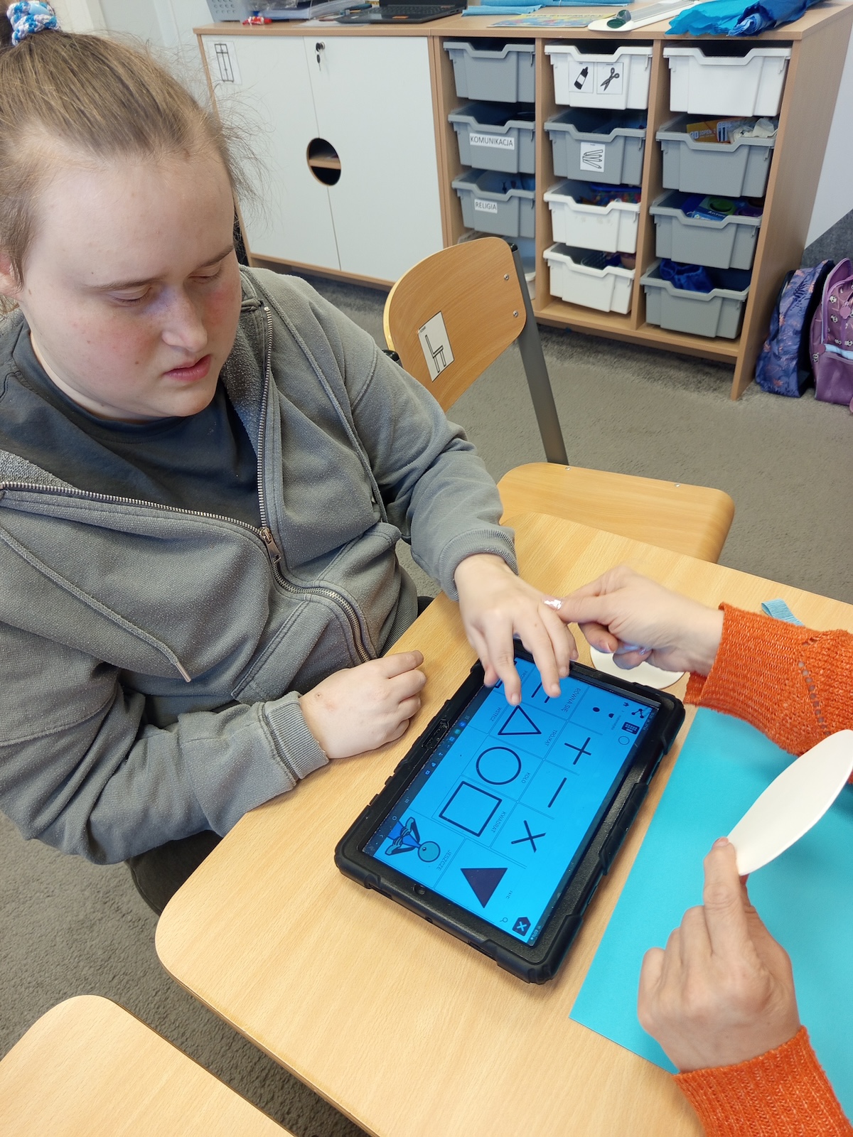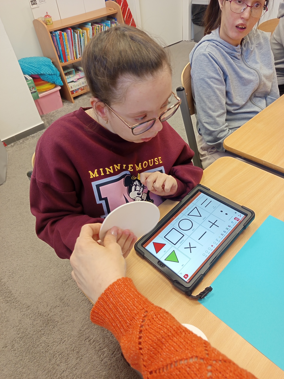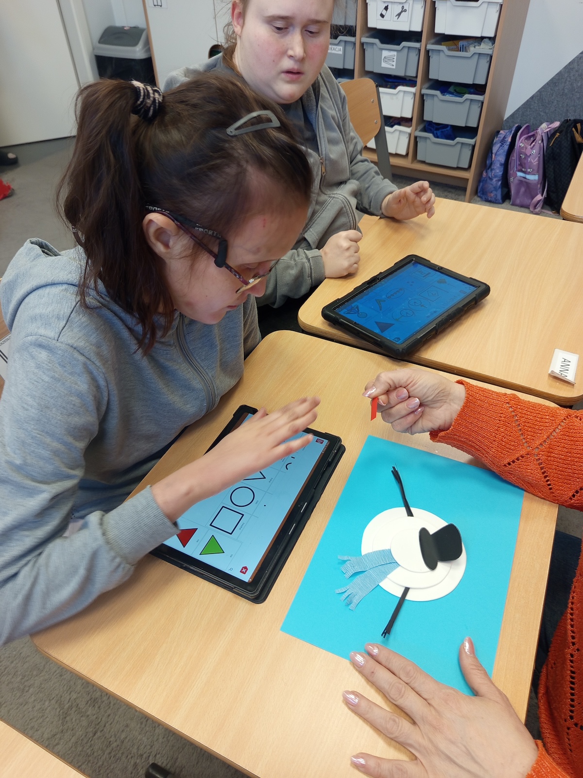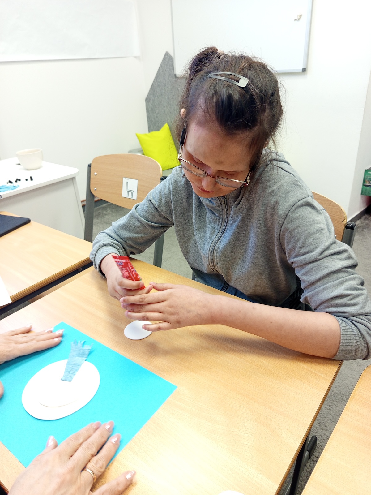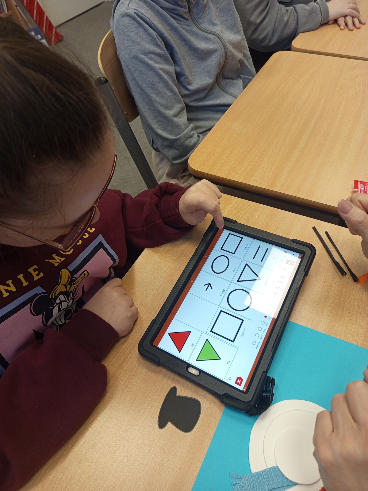Podczas zajęć uczniowie rozwijali swoje zdolności manualne oraz percepcję wzrokową, wykonując zimowe prace plastyczne. Tworzyli bałwany z kół o różnej wielkości, wyciętych z białej pianki, ucząc się przy tym rozróżniania rozmiarów oraz utrwalając pojęcia związane z wielkością. Następnie, pracując na niebieskim tle, ozdabiali swoje prace płatkami śniegu, które powstawały przy użyciu patyczków kosmetycznych zanurzonych w farbie. Zajęcia sprzyjały rozwijaniu kreatywności, koordynacji wzrokowo-ruchowej oraz koncentracji uwagi, a także były okazją do utrwalania nazw kolorów i doskonalenia sprawności manualnej w przyjaznej, twórczej atmosferze.