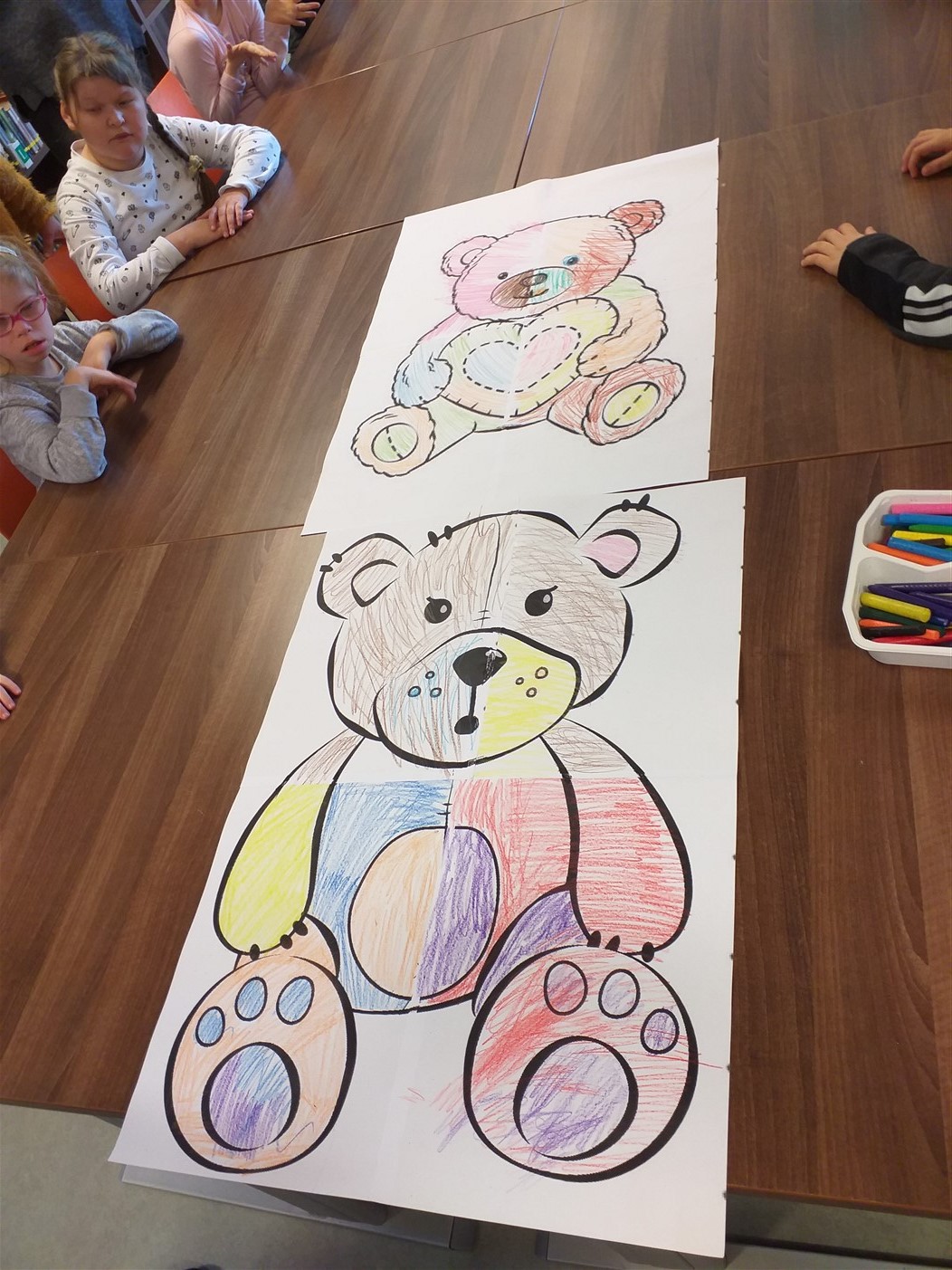 Listopadowe spotkanie książką, w tym roku, wypadło 25 listopada, w Dzień Pluszowego Misia. Dlatego w całości było poświęcone pluszowym bohaterom książkowym. Uczniowie poznali historie „Pluszowego Misia Polarnego” oraz kilka innych pozycji książkowych, opowiadających o przygodach Misiów. Obejrzeliśmy wspólnie lubianą przez wszystkich bajkę: „Przygody Misia Uszatka”, a na koniec wykonaliśmy ciekawą pracę plastyczną: „Kolorowe Misie – Duże Puzzle.