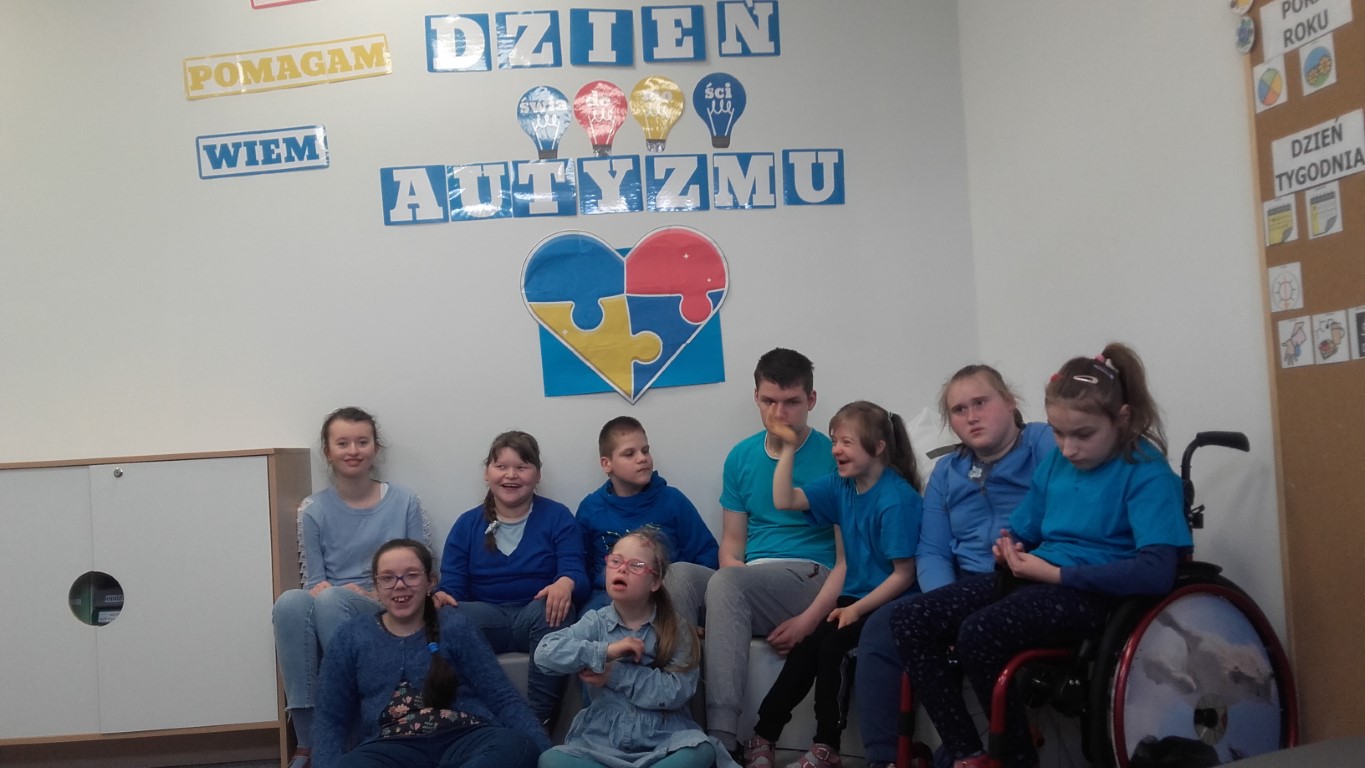 2 kwietnia obchodzony jest Światowy Dzień Świadomości Autyzmu, którego celem jest szerzenie wiedzy na temat autyzmu i solidaryzowanie się z osobami nim dotkniętymi oraz ich rodzinami. Społeczność naszej szkoły włączyła się w obchody tego dnia, na znak jedności i solidarności ubierając się na niebiesko. Odbyły się również zajęcia mające na celu podniesienie świadomości uczniów i propagowanie wiedzy na temat autyzmu. Obejrzeliśmy prezentację „Czym jest autyzm?” . Wspólnie ułożyliśmy hasło „Dzień Autyzmu”, poznając przy tym charakterystyczne cechy autyzmu, które były ukryte w niebieskich balonach. Na koniec zajęć uczniowie ćwiczyli sprawność manualną, kolorując „na niebiesko dla autyzmu”.
