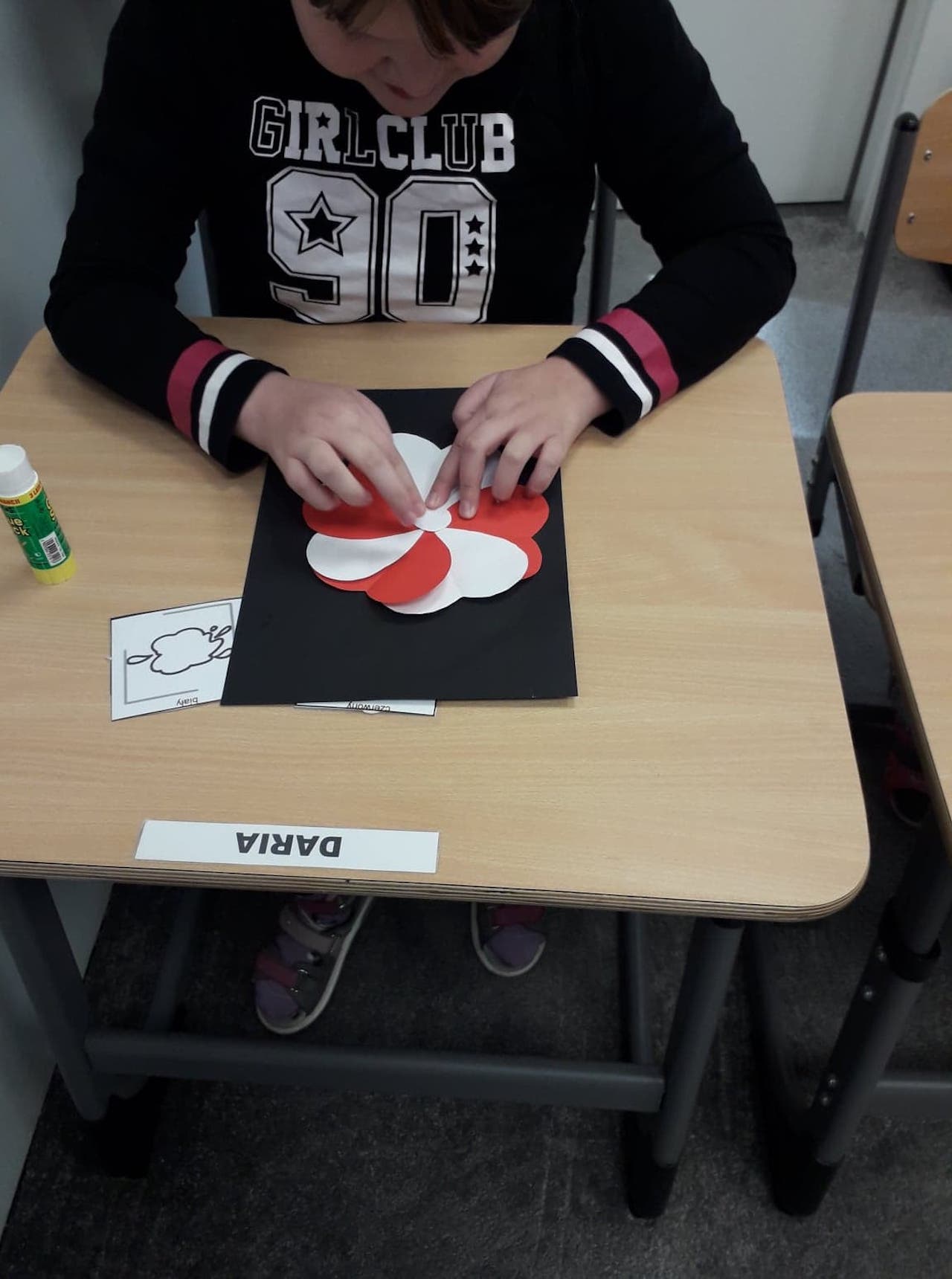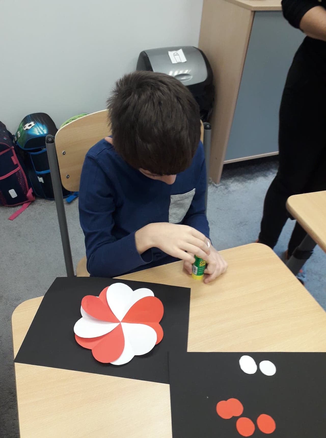 Uczniowie oddziału „I” omawiając tematy związane ze Świętem Niepodległości, utrwalali wiadomości o naszej Ojczyźnie. Na znak patriotyzmu w ramach zajęć z kreatywności wykonali pracę plastyczną „ Kwiat Patriotyczny”. Poniżej fotorelacja z ich pracy.