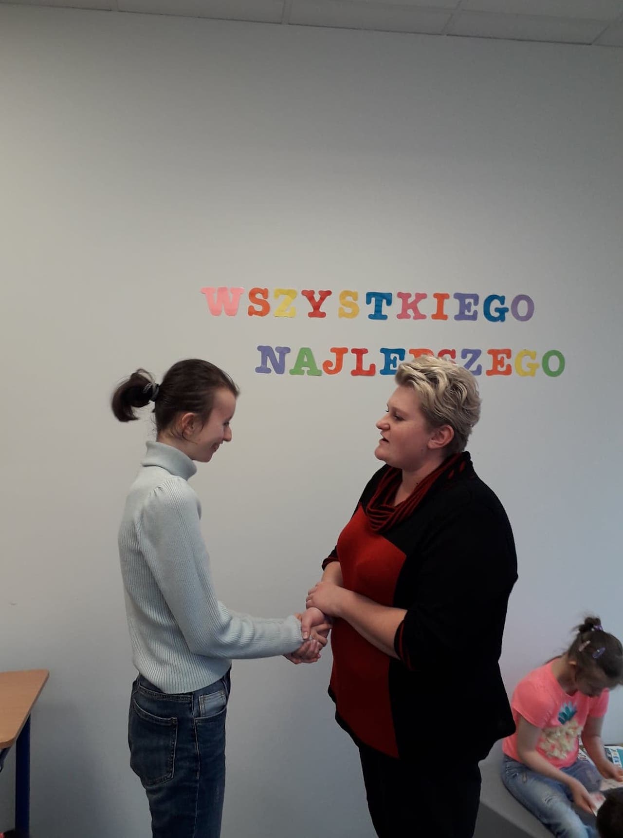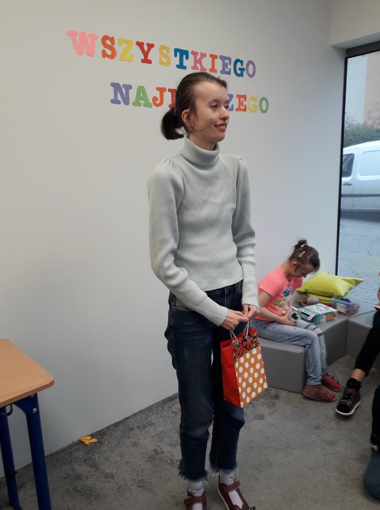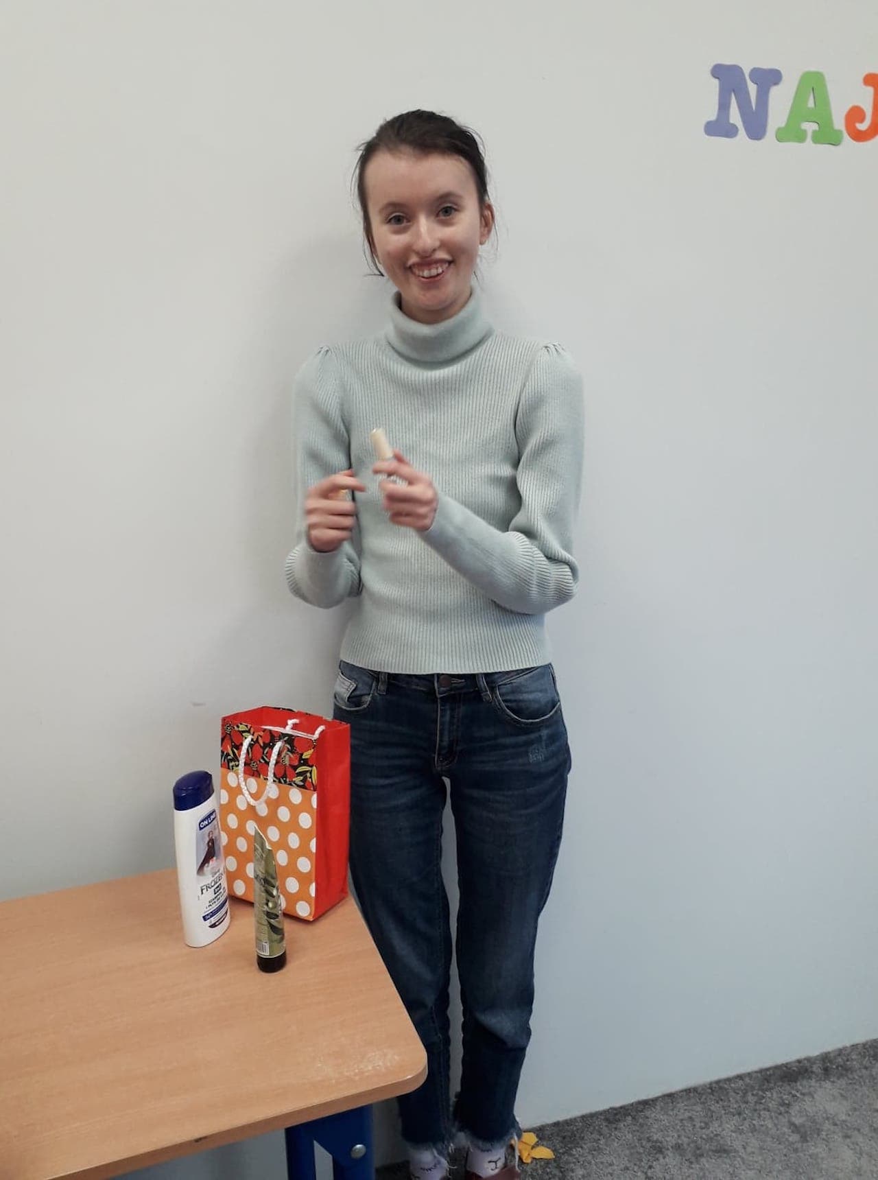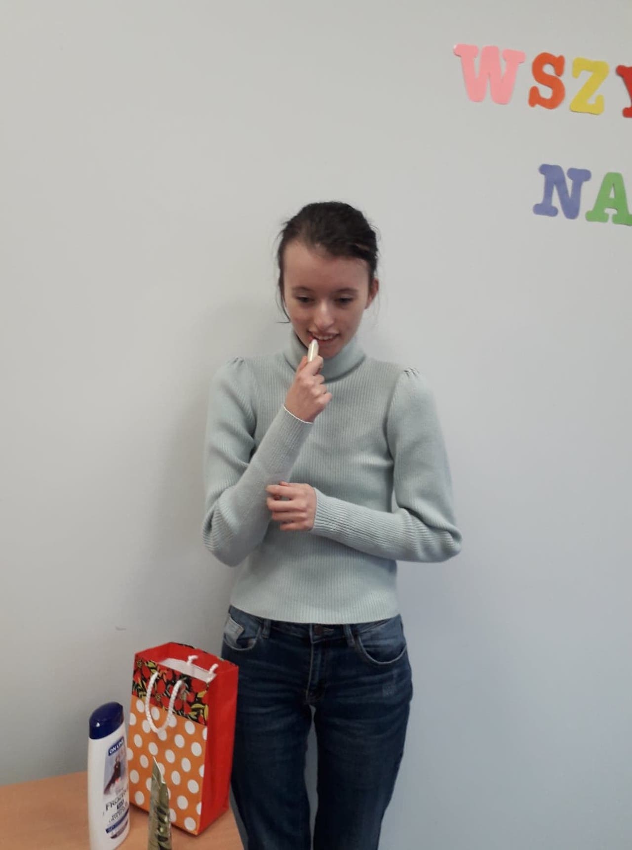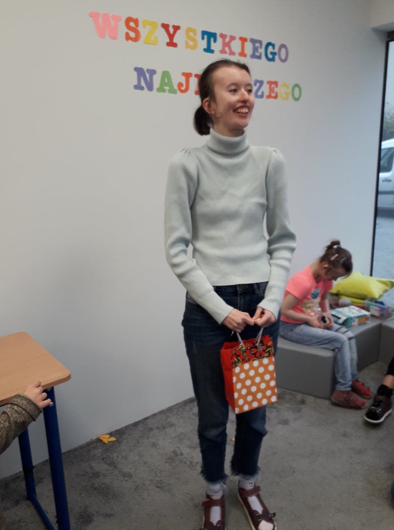 W listopadzie obchodziliśmy 16 urodziny uczennicy Anny L. Uroczyście zaśpiewaliśmy Jej sto lat i złożyliśmy życzenia. A Pani wychowawczyni przekazała od nas prezent, z którego Ania się bardzo ucieszyła. Jeszcze raz wszystkiego najlepszego, Aniu!