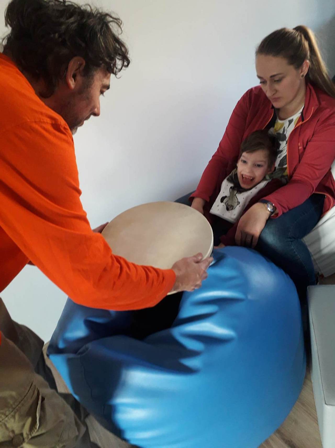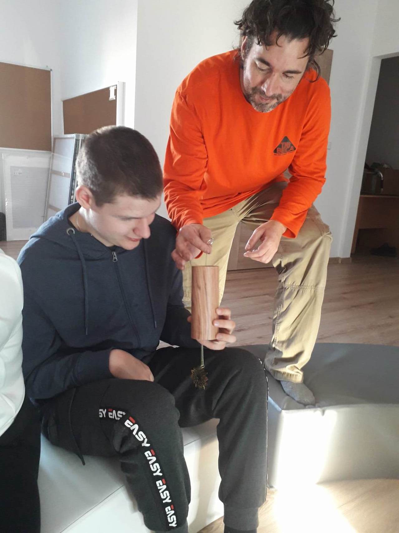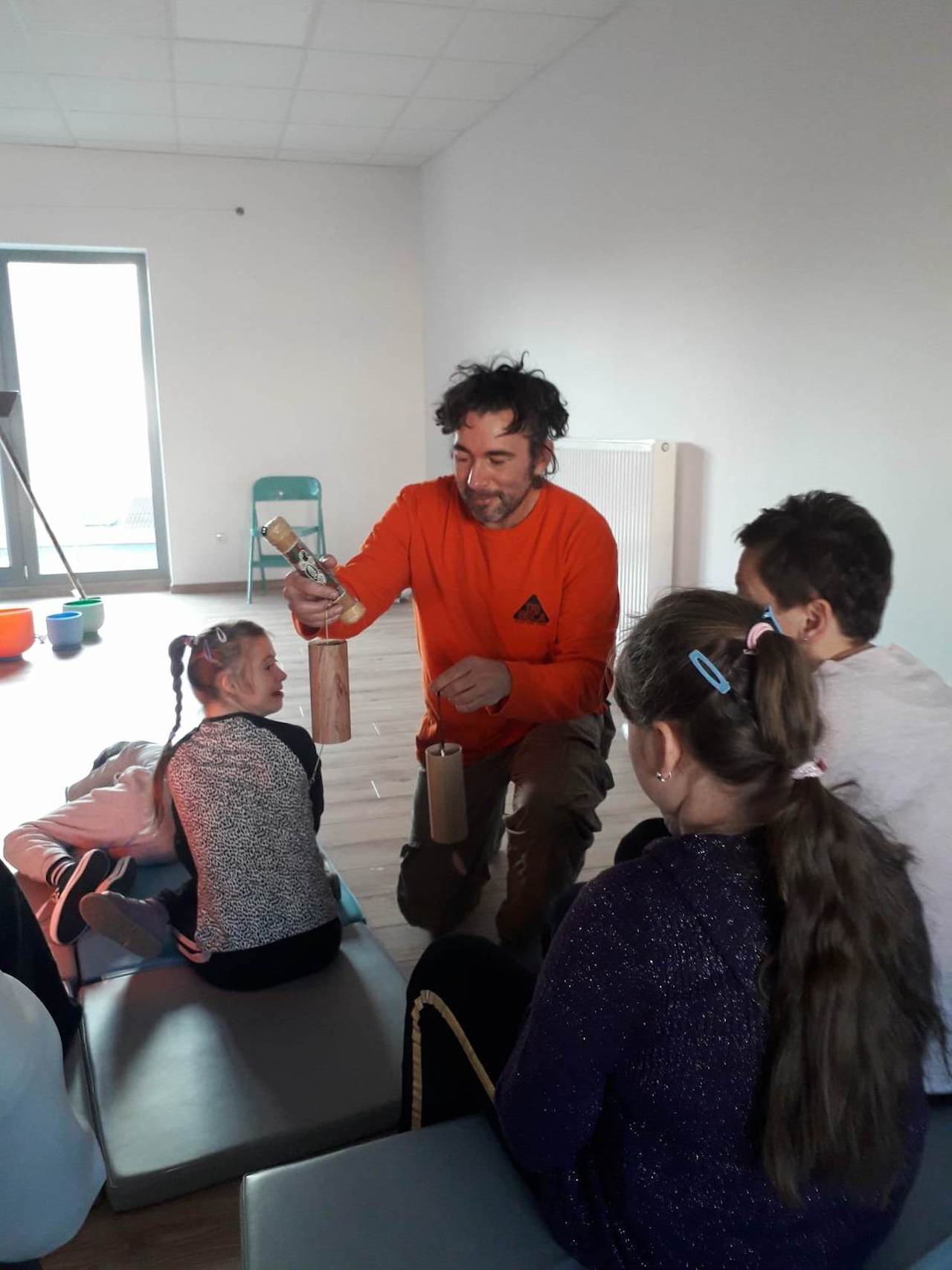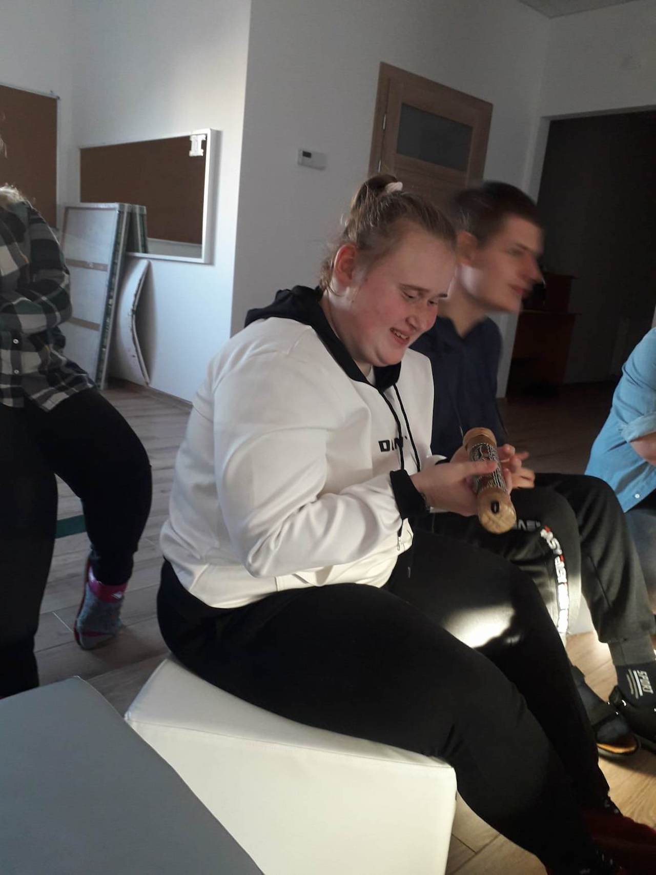 Podczas grudniowych zajęć z terapii dźwiękiem uczniowie nie tylko się relaksowali, ale mogli także sami doświadczyć gry na misach, grzechotkach i dzwonkach, co sprawiało im dużo radości i frajdy.