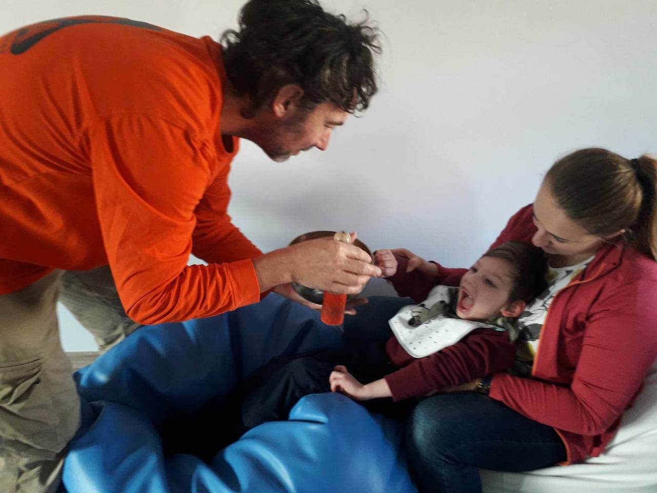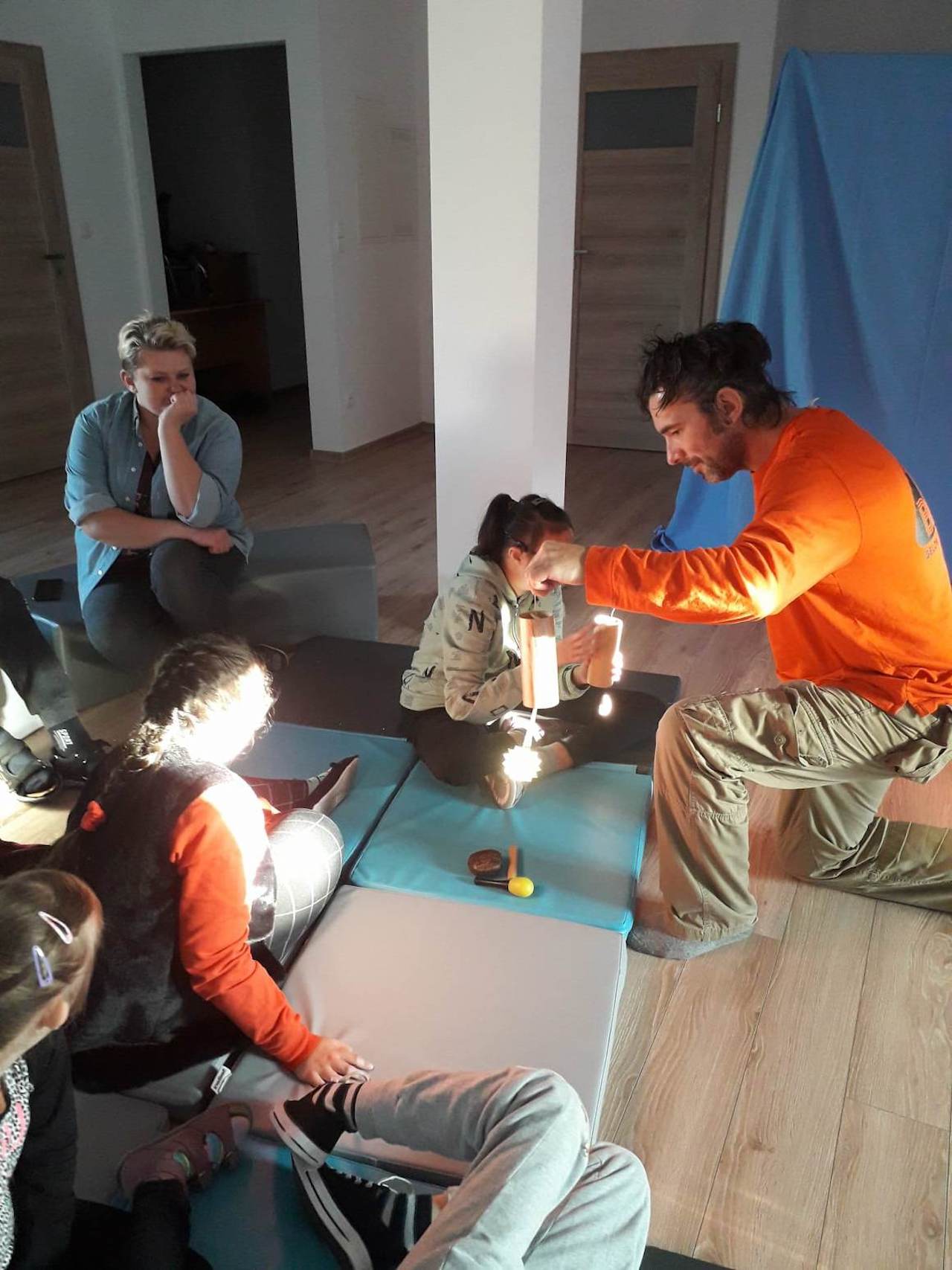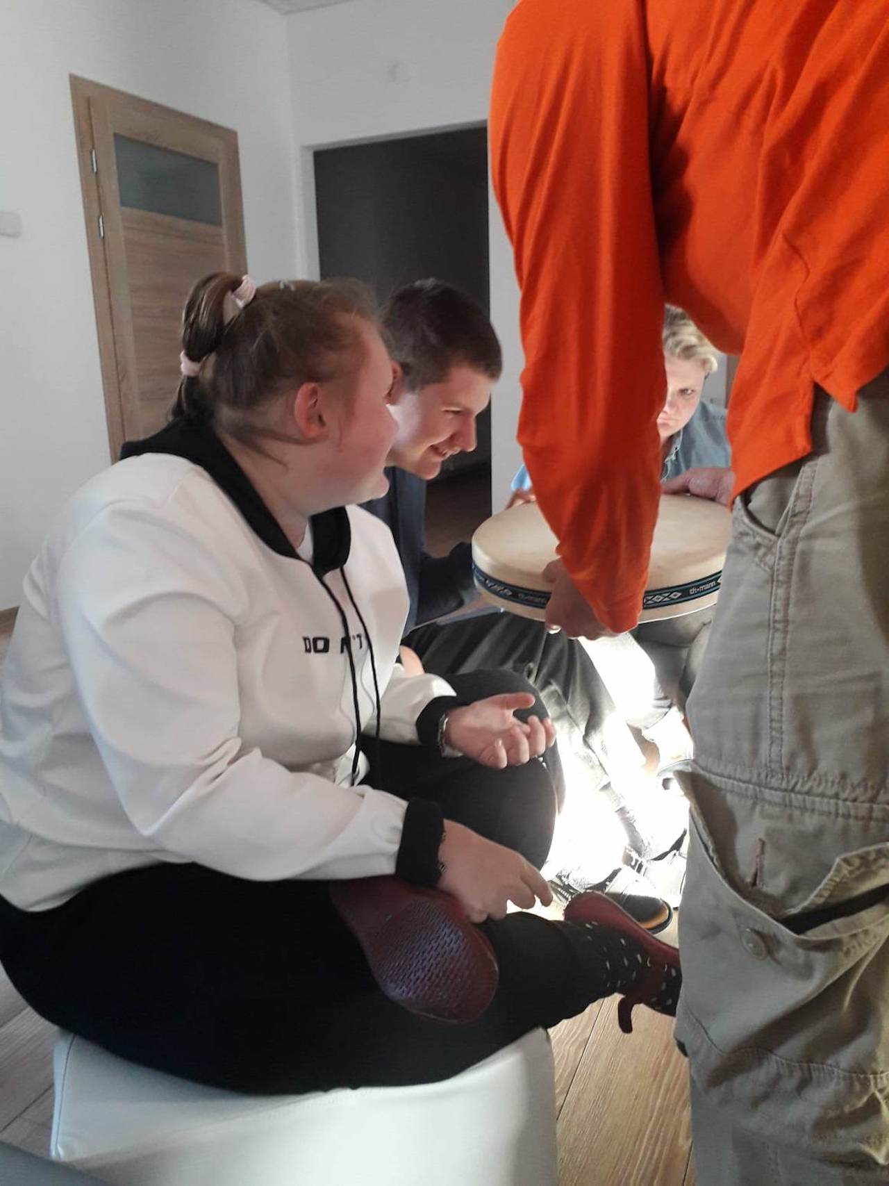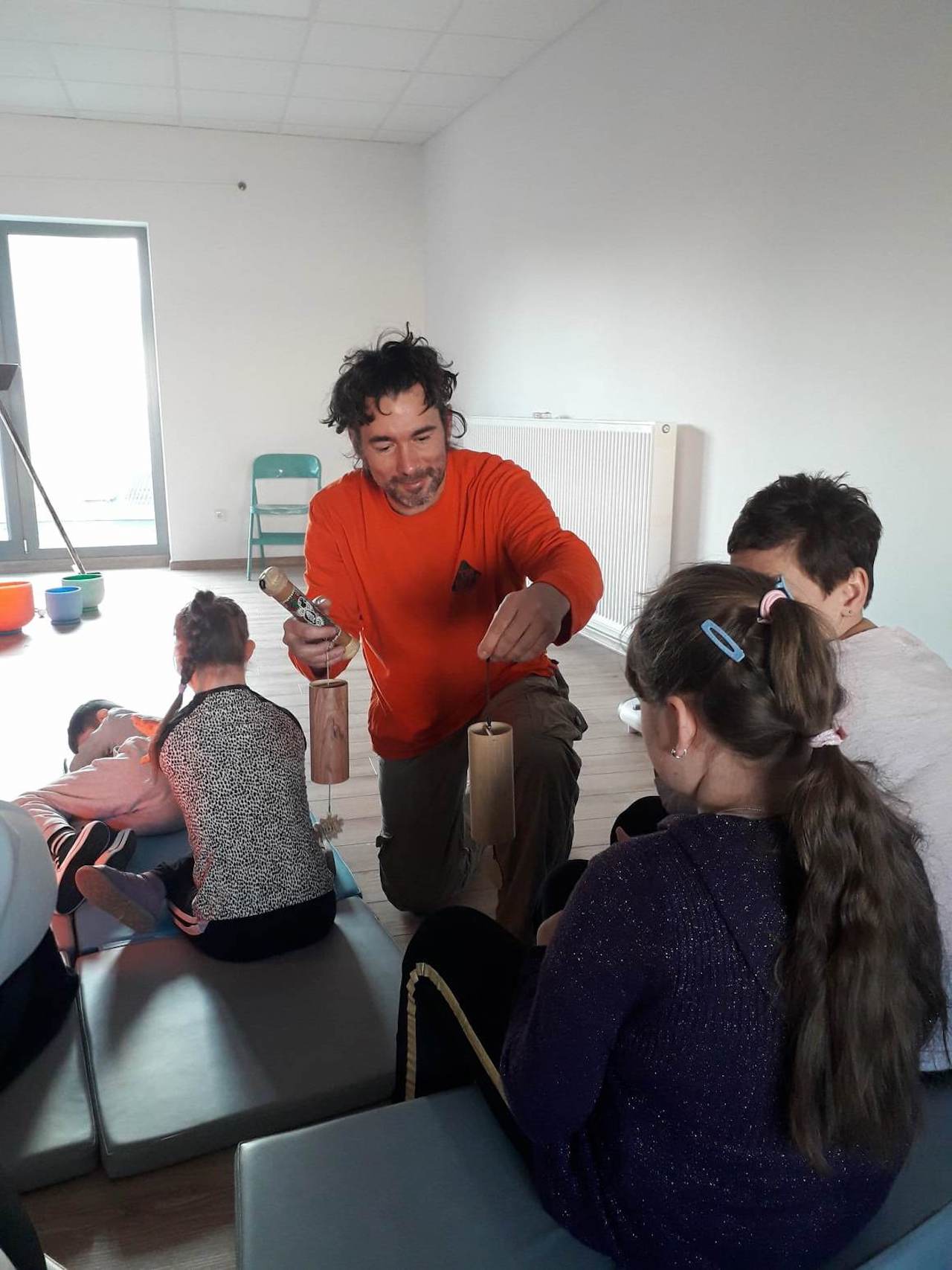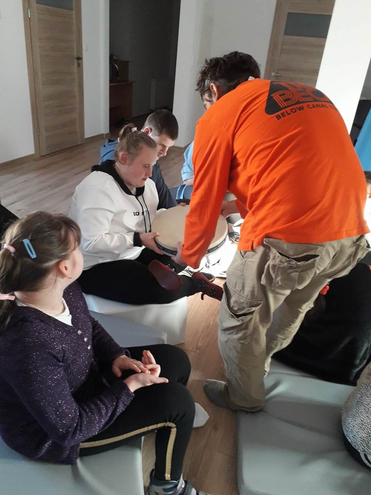 Podczas grudniowych zajęć z terapii dźwiękiem uczniowie nie tylko się relaksowali, ale mogli także sami doświadczyć gry na misach, grzechotkach i dzwonkach, co sprawiało im dużo radości i frajdy.