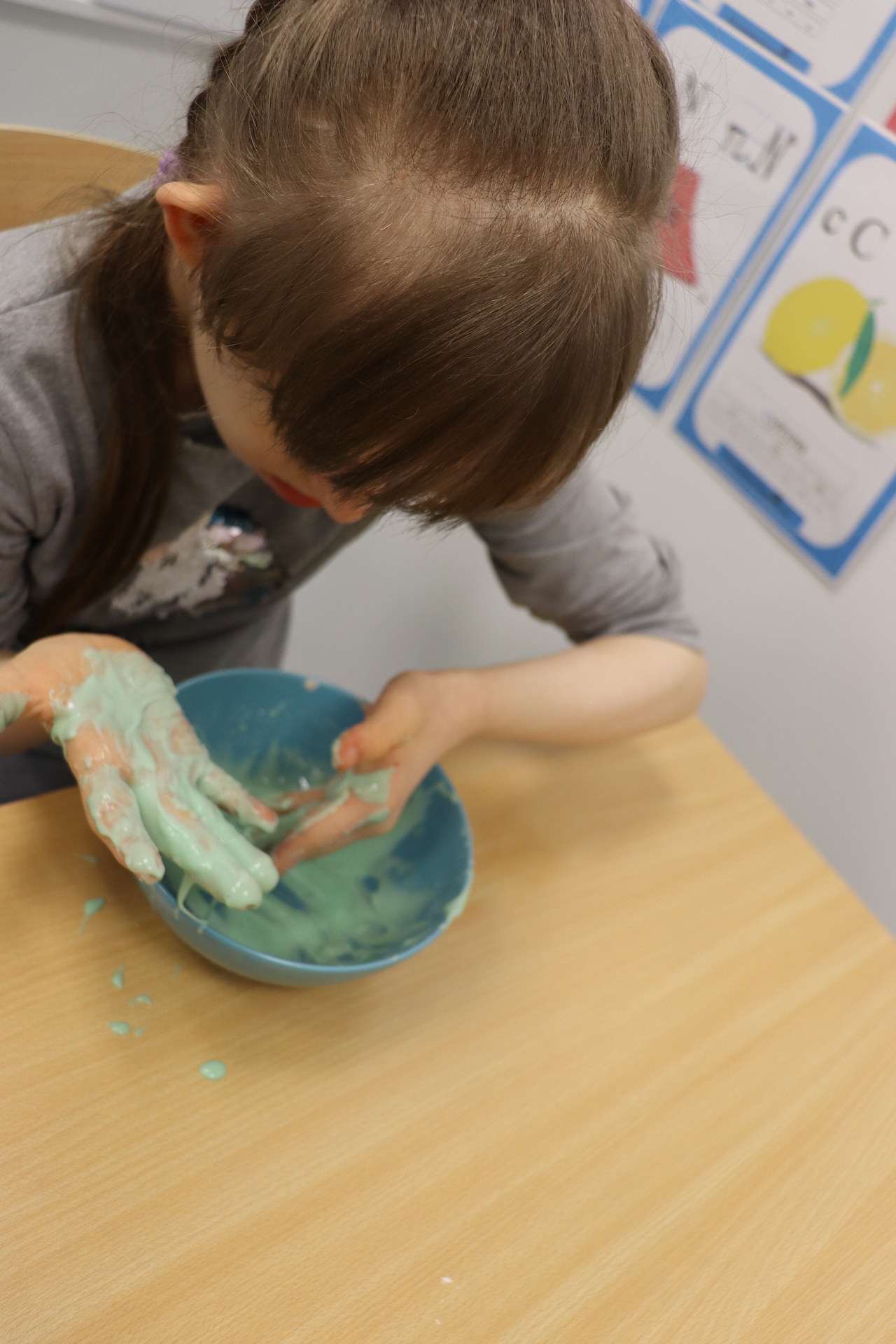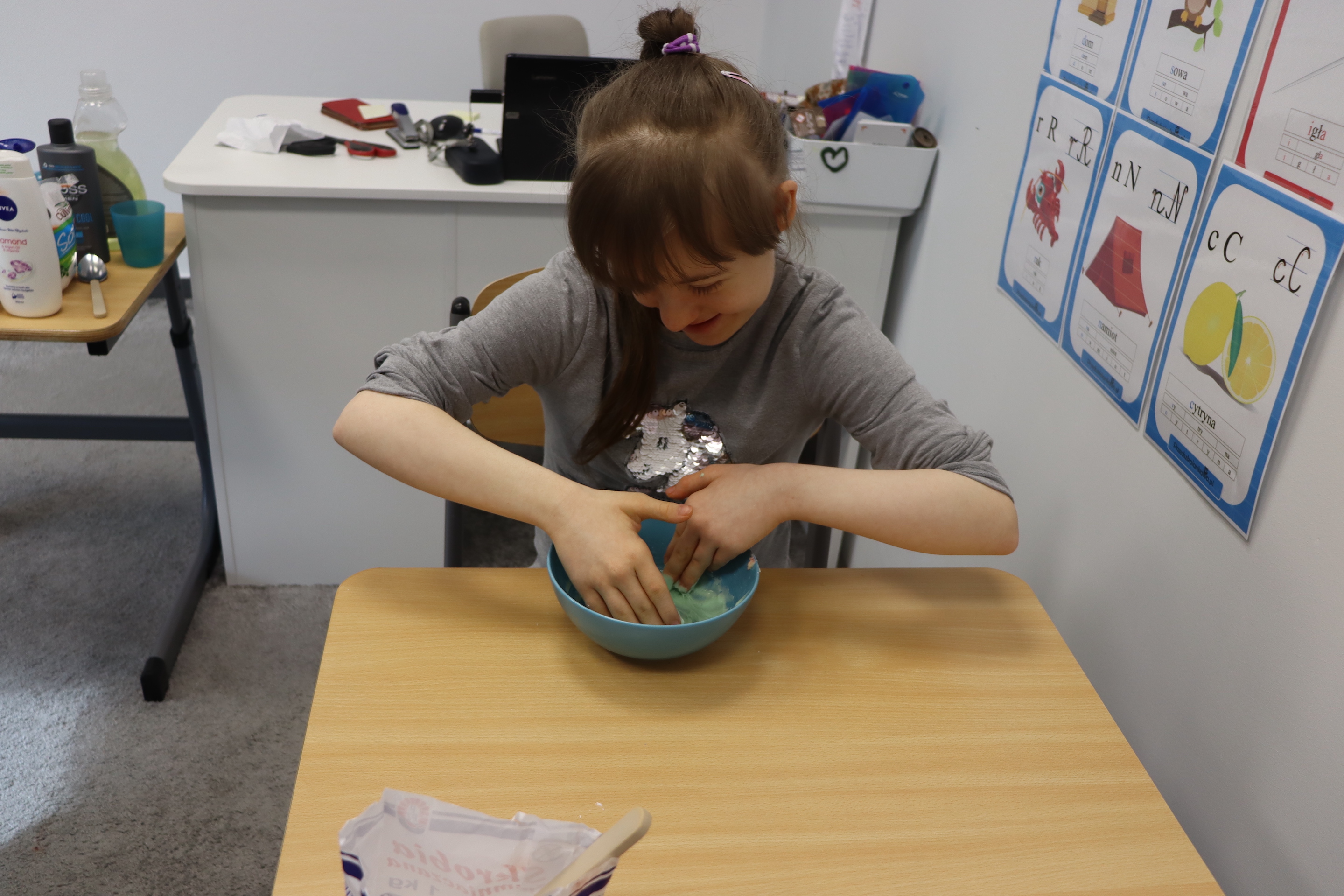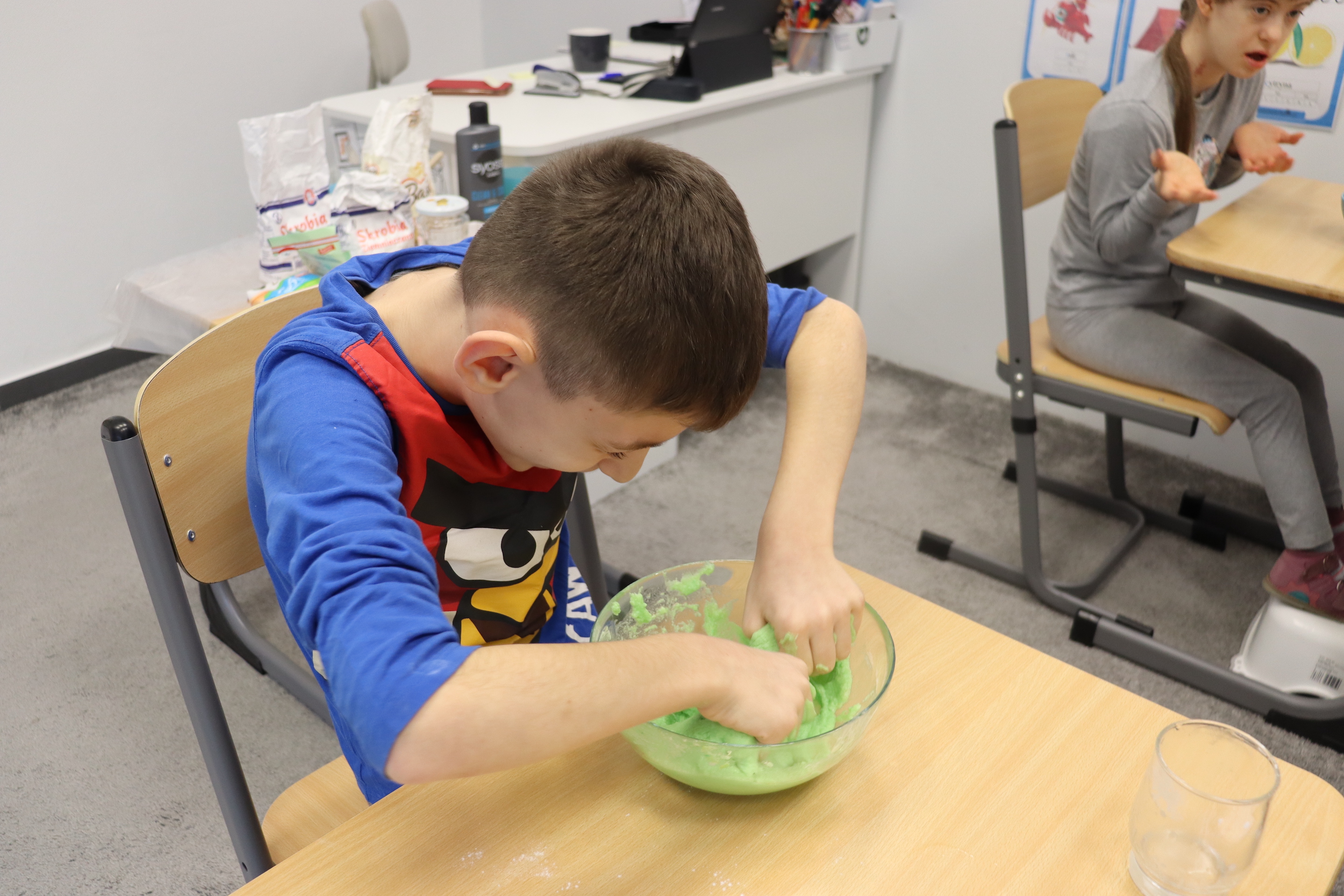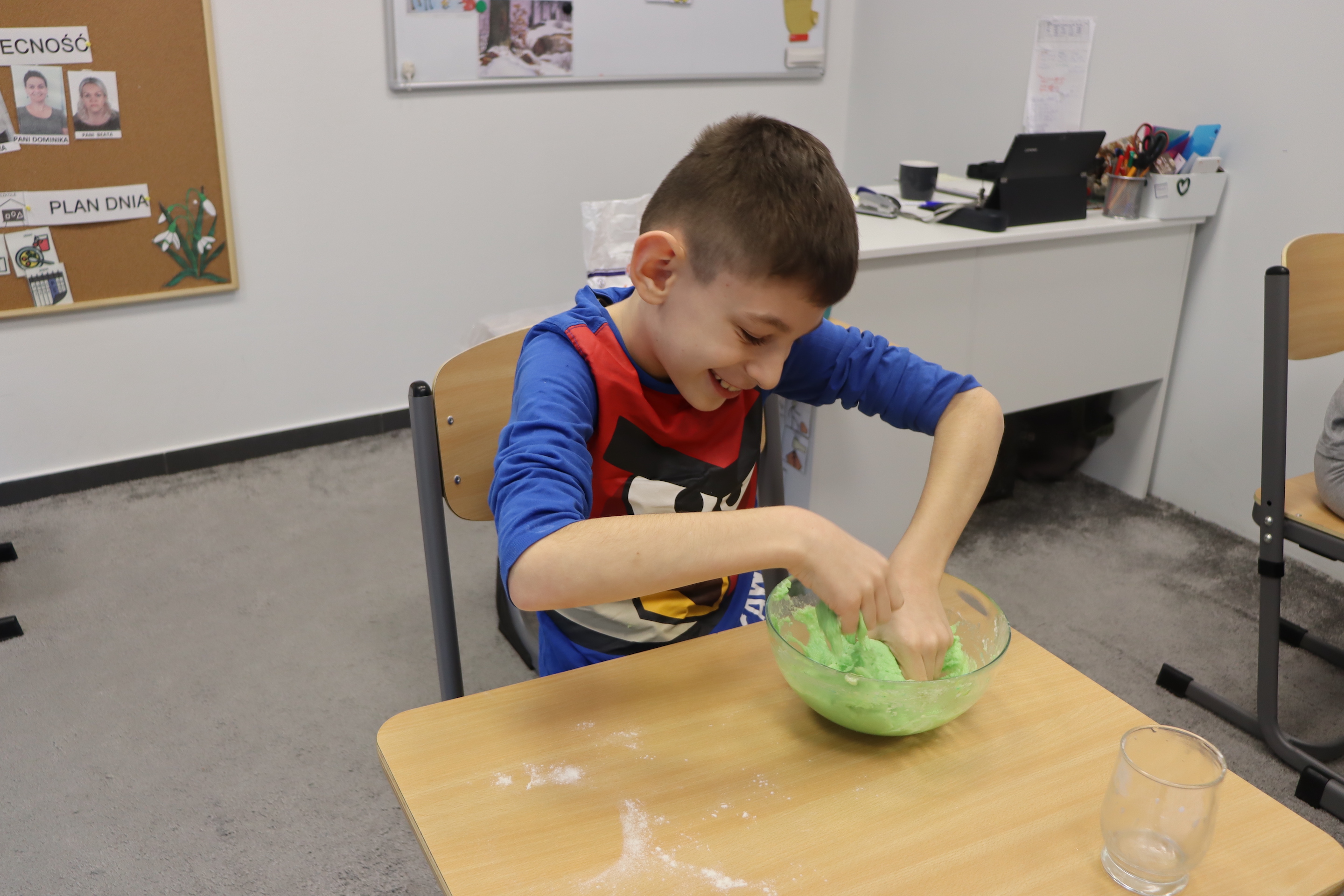 Lutowym zadaniem w ogólnopolskim projekcie edukacyjnym „Gramy zmysłami”- było wykonanie slime. Slime to niezwykła masa plastyczna, uwielbiana przez dzieci. Służy do zabawy sensorycznej oraz rozwija percepcję zmysłową. Zabawa przy użyciu slime stymuluje przede wszystkim rozwój zmysłu dotyku oraz wspomaga rozwój motoryki małej. Podczas zajęć edukacyjnych uczniowie samodzielnie przygotowali kolorowe i bardzo rozciągliwe slime, co dało im wiele zaciekawienia i radości.
