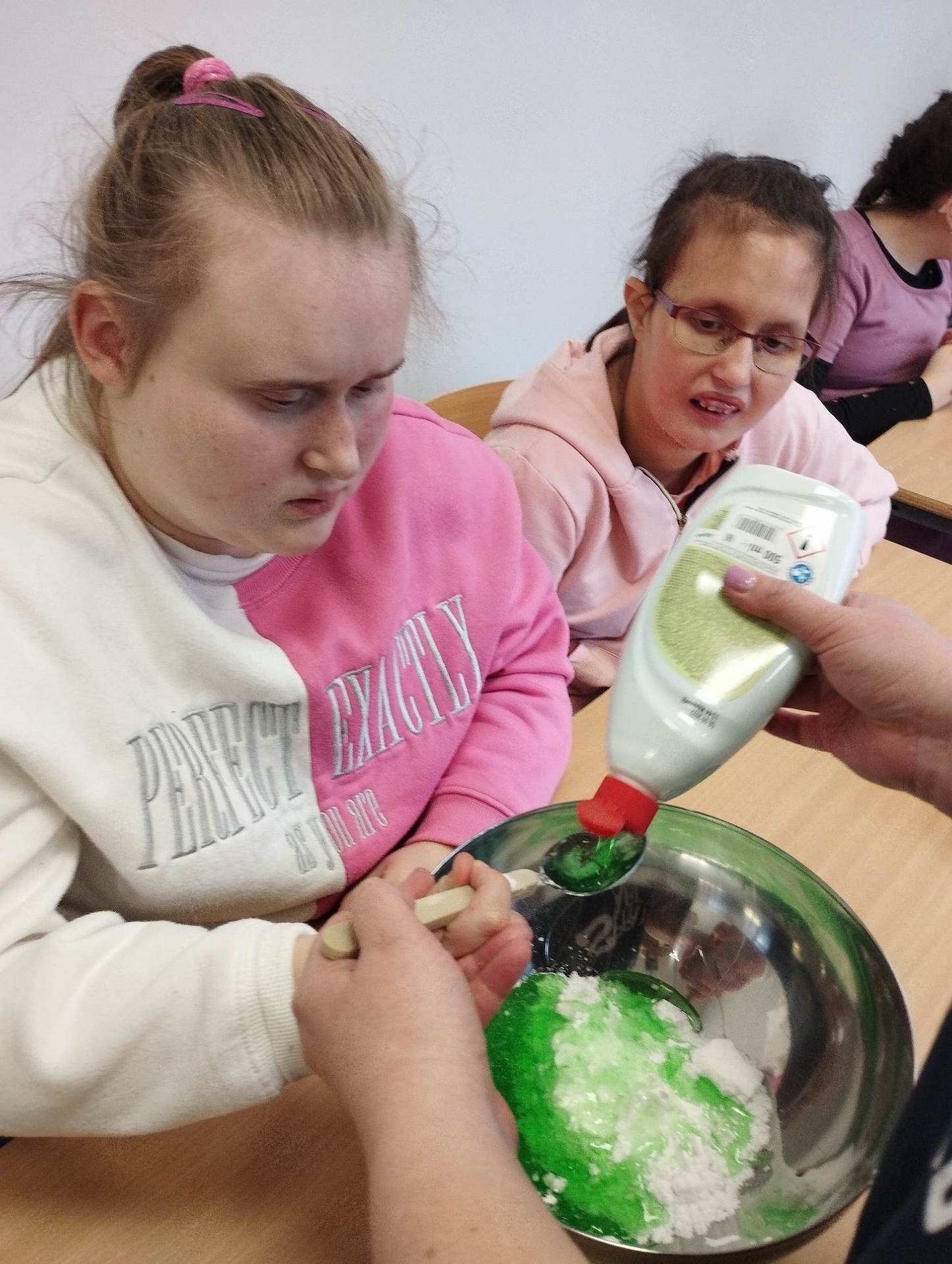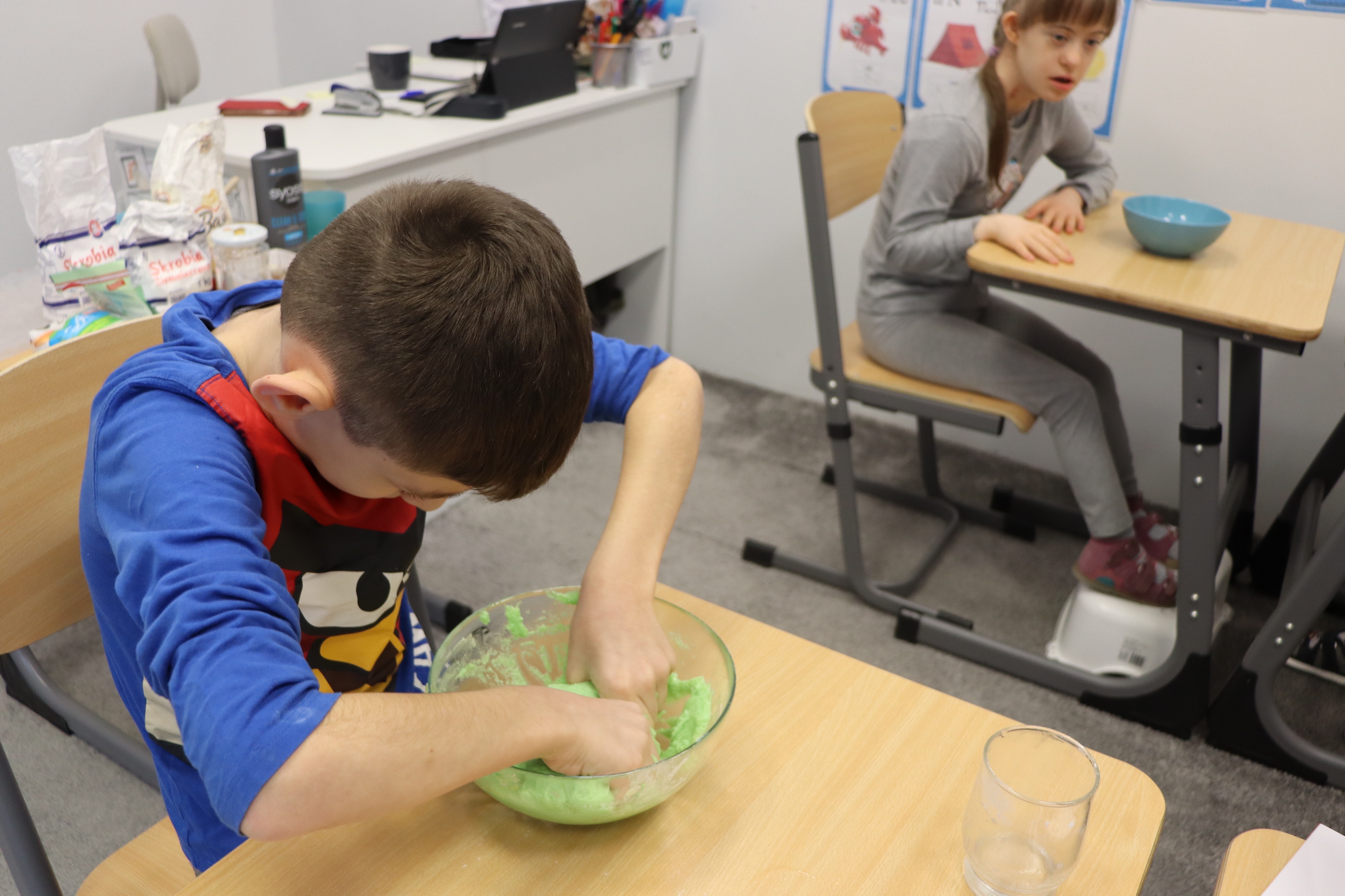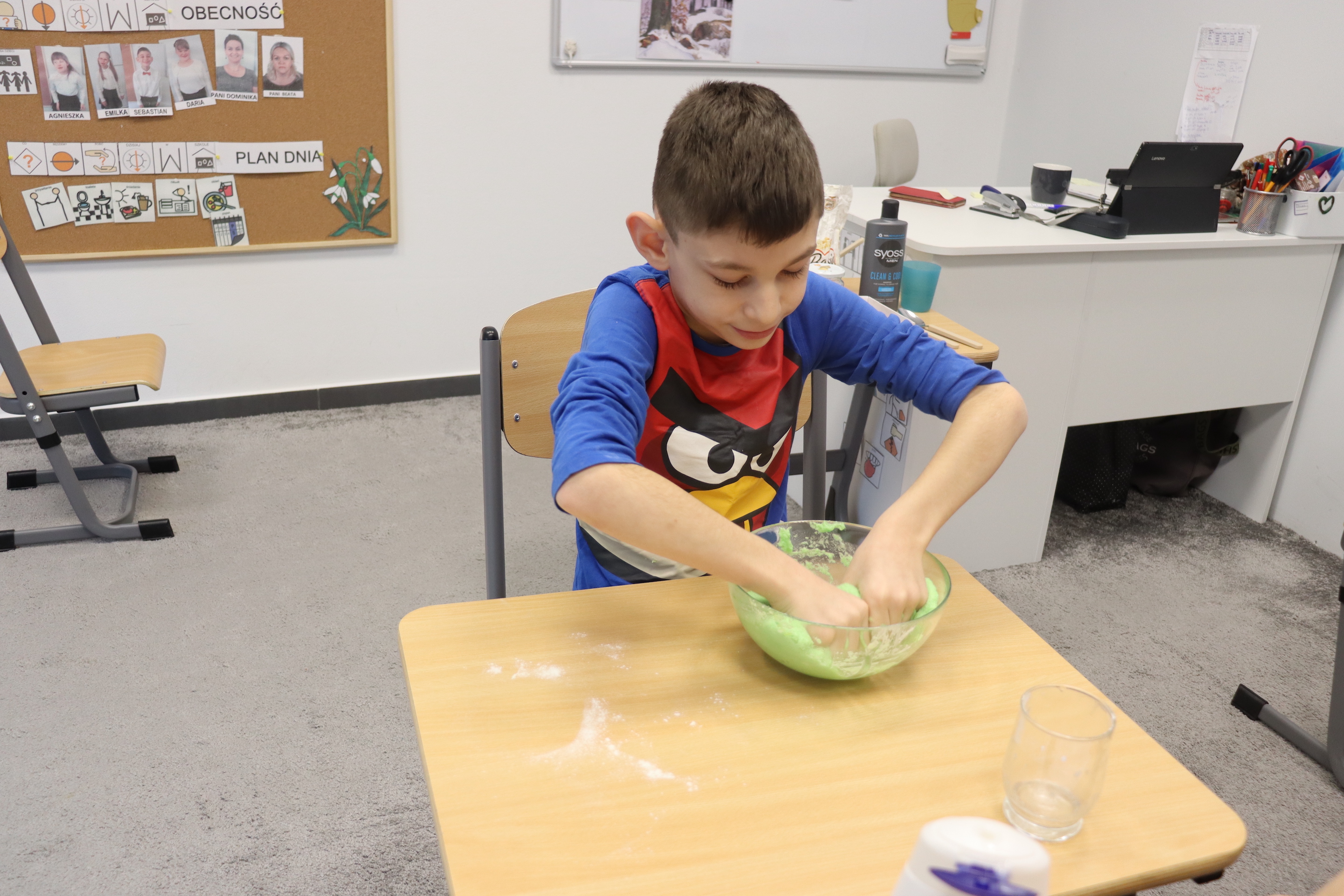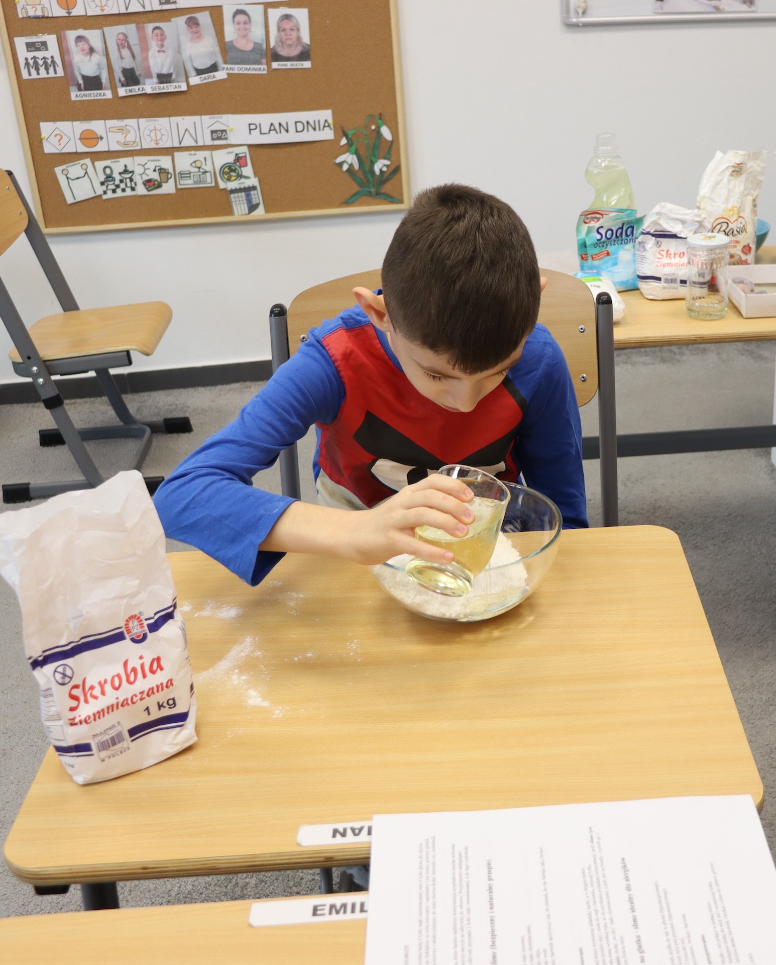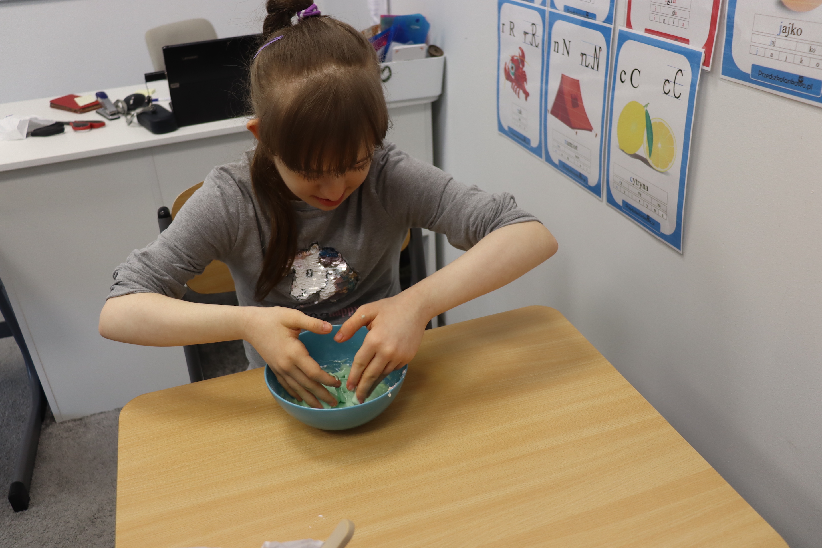 Lutowym zadaniem w ogólnopolskim projekcie edukacyjnym „Gramy zmysłami”- było wykonanie slime. Slime to niezwykła masa plastyczna, uwielbiana przez dzieci. Służy do zabawy sensorycznej oraz rozwija percepcję zmysłową. Zabawa przy użyciu slime stymuluje przede wszystkim rozwój zmysłu dotyku oraz wspomaga rozwój motoryki małej. Podczas zajęć edukacyjnych uczniowie samodzielnie przygotowali kolorowe i bardzo rozciągliwe slime, co dało im wiele zaciekawienia i radości.