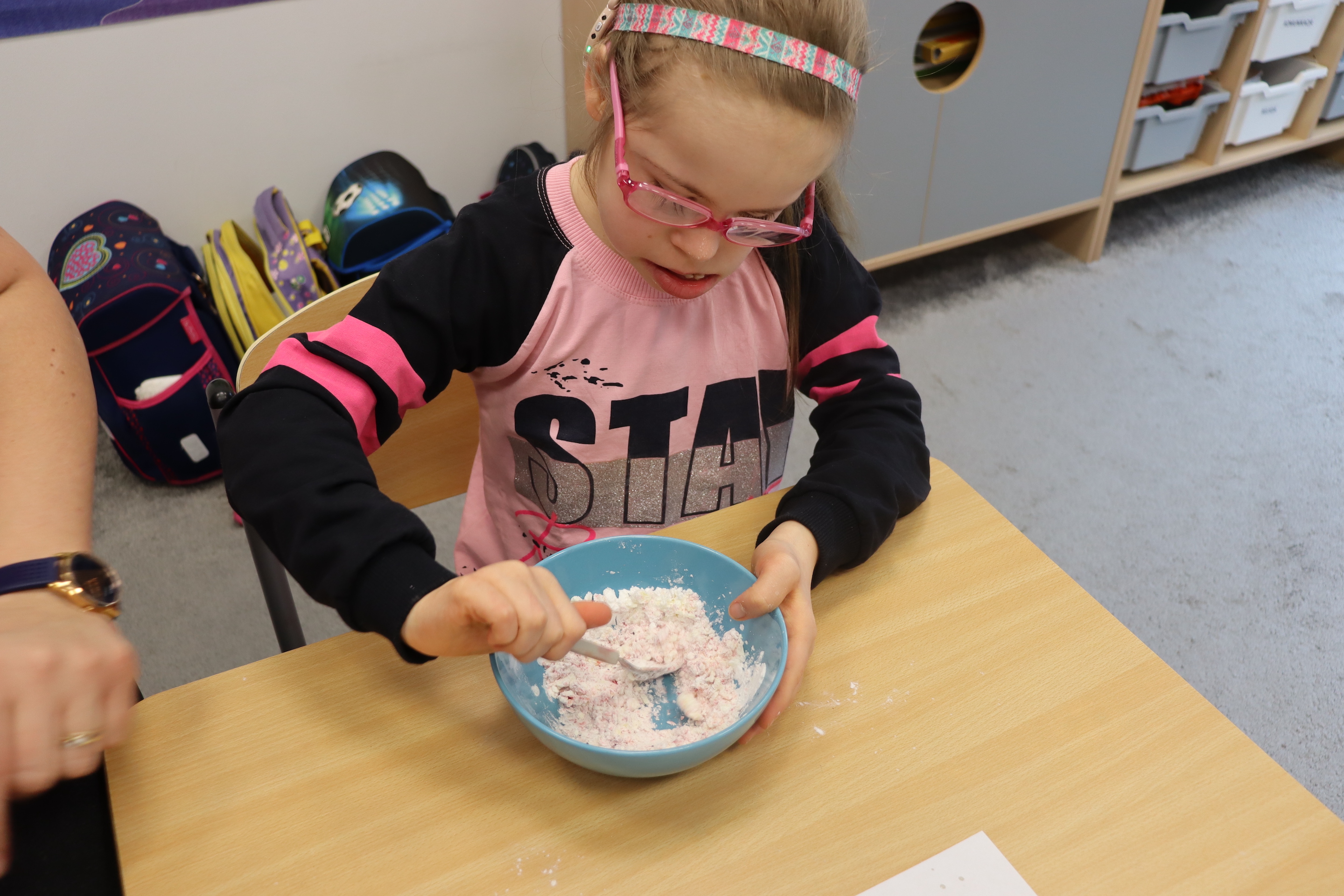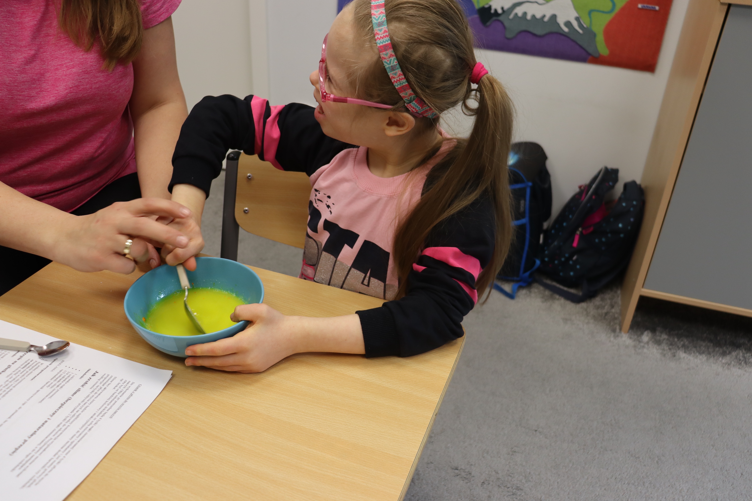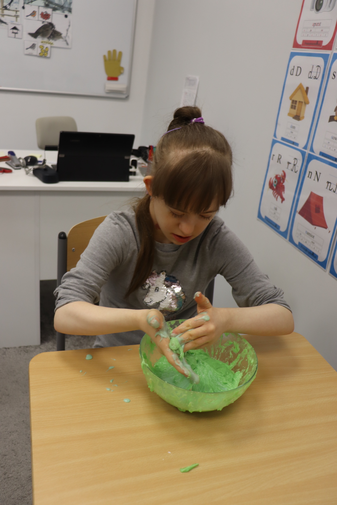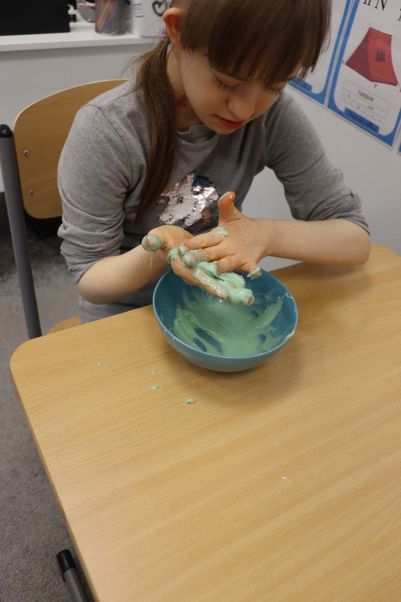 Lutowym zadaniem w ogólnopolskim projekcie edukacyjnym „Gramy zmysłami”- było wykonanie slime. Slime to niezwykła masa plastyczna, uwielbiana przez dzieci. Służy do zabawy sensorycznej oraz rozwija percepcję zmysłową. Zabawa przy użyciu slime stymuluje przede wszystkim rozwój zmysłu dotyku oraz wspomaga rozwój motoryki małej. Podczas zajęć edukacyjnych uczniowie samodzielnie przygotowali kolorowe i bardzo rozciągliwe slime, co dało im wiele zaciekawienia i radości.