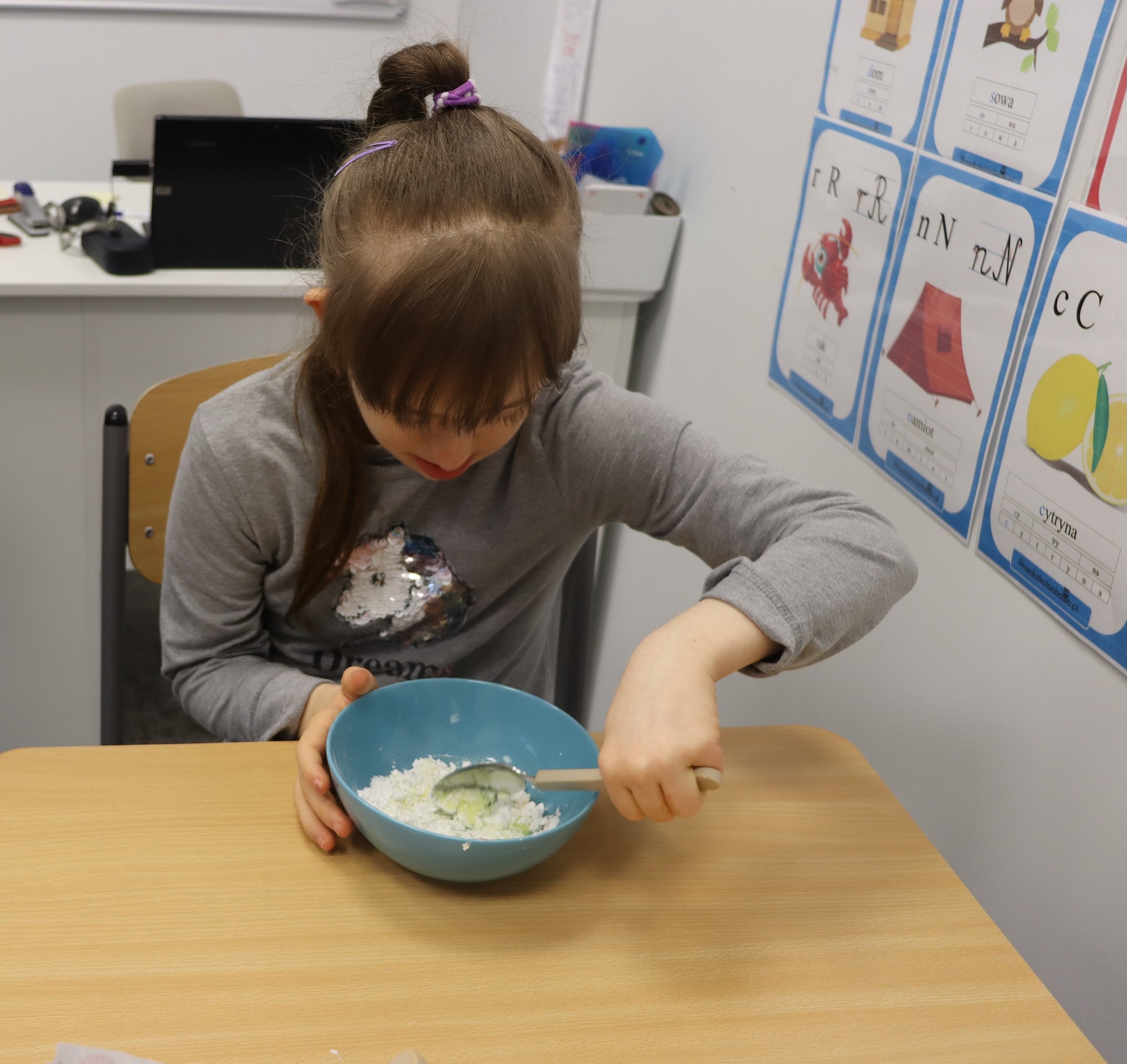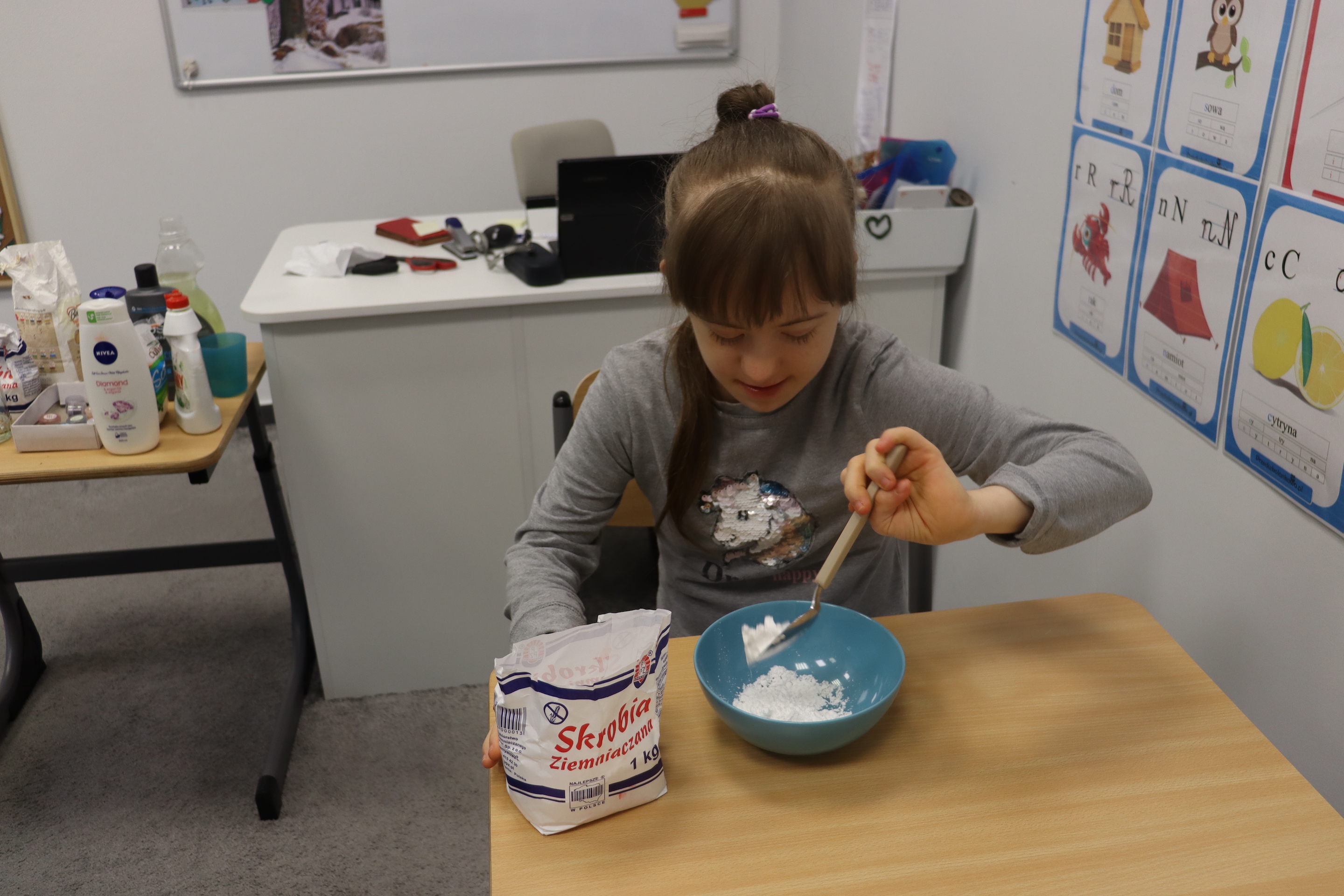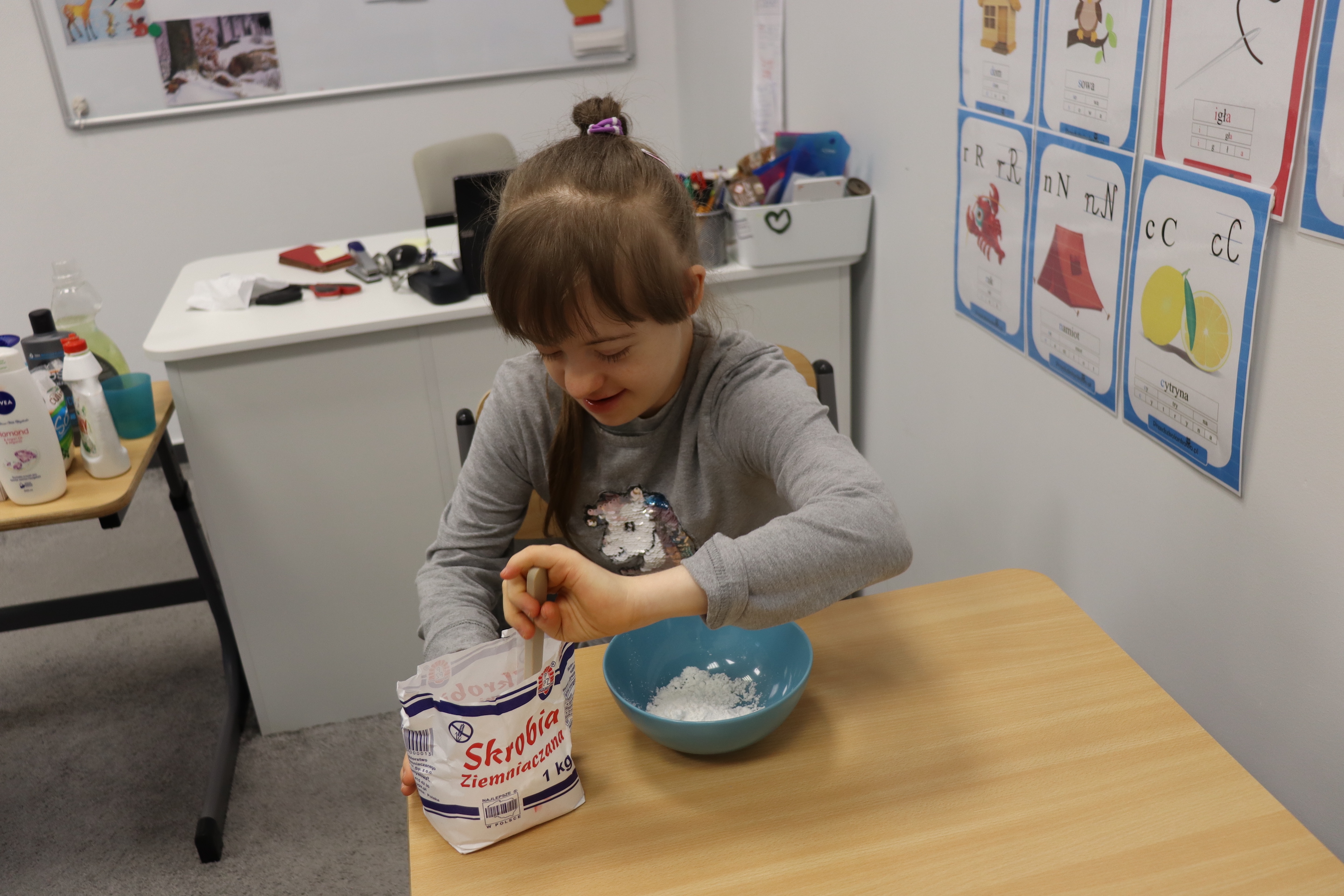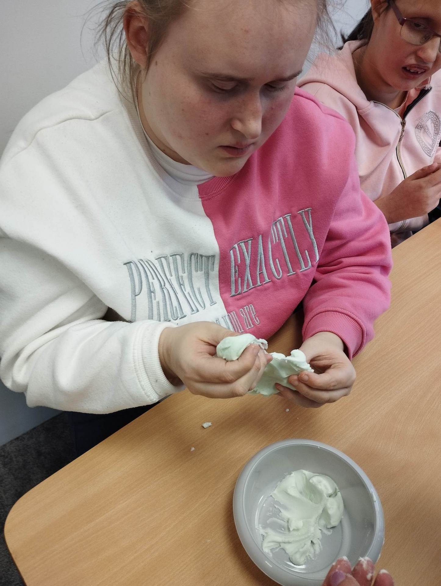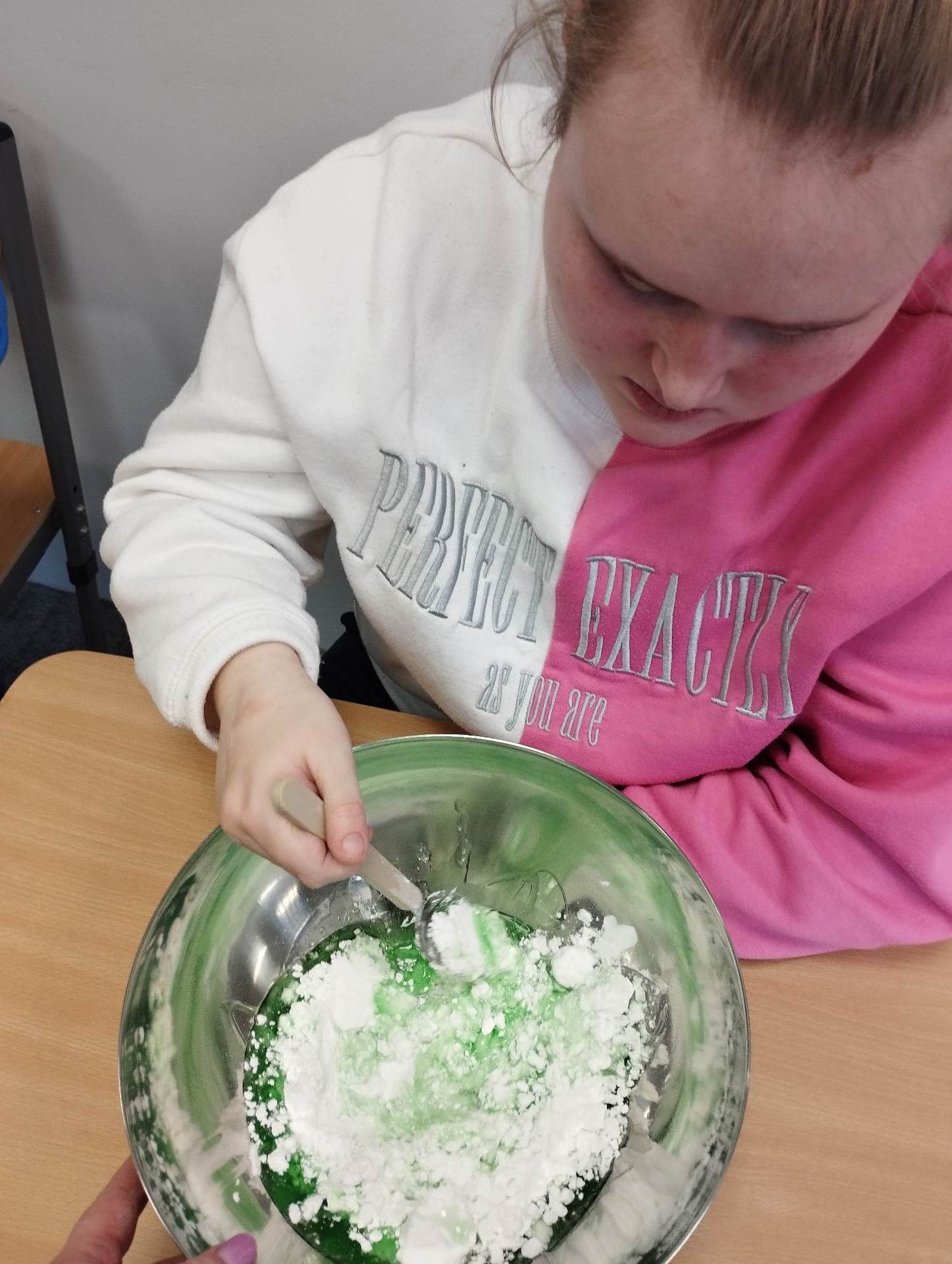 Lutowym zadaniem w ogólnopolskim projekcie edukacyjnym „Gramy zmysłami”- było wykonanie slime. Slime to niezwykła masa plastyczna, uwielbiana przez dzieci. Służy do zabawy sensorycznej oraz rozwija percepcję zmysłową. Zabawa przy użyciu slime stymuluje przede wszystkim rozwój zmysłu dotyku oraz wspomaga rozwój motoryki małej. Podczas zajęć edukacyjnych uczniowie samodzielnie przygotowali kolorowe i bardzo rozciągliwe slime, co dało im wiele zaciekawienia i radości.