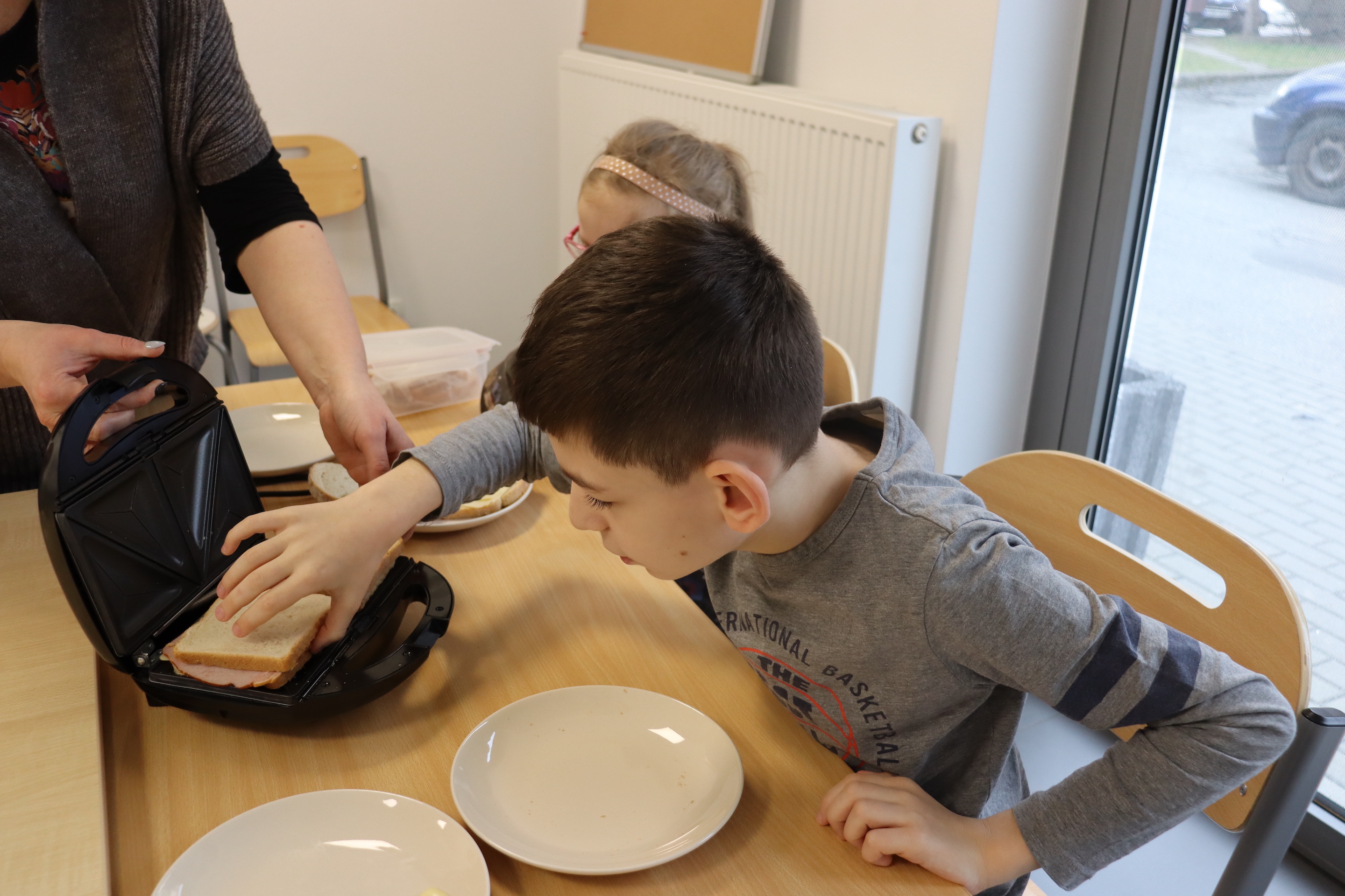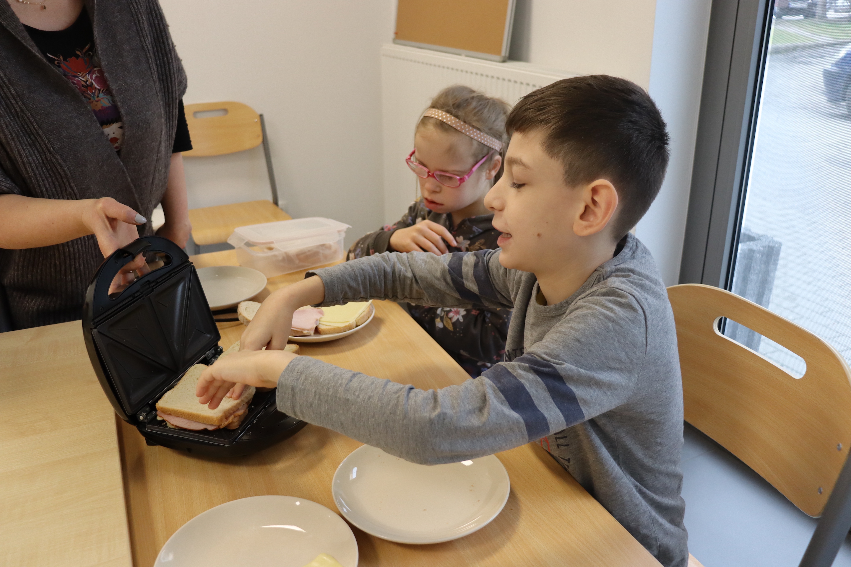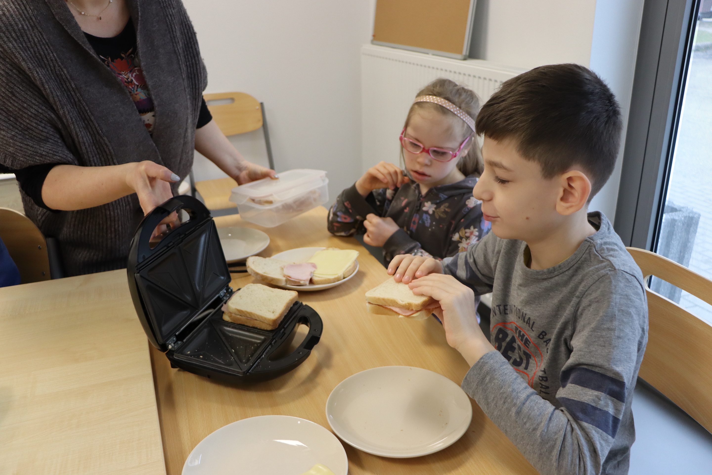 27 lutego br., uczniowie oddziału „I” w ramach śniadania przygotowali dla siebie zapiekane kanapki z szynką i serem. Kanapki były zapiekane w opiekaczu, zakupionym w ramach projektu „Laboratoria Przyszłości’. Przed przystąpieniem do wykonania śniadania, wszyscy odpowiednio się przygotowali, myjąc ręce.
