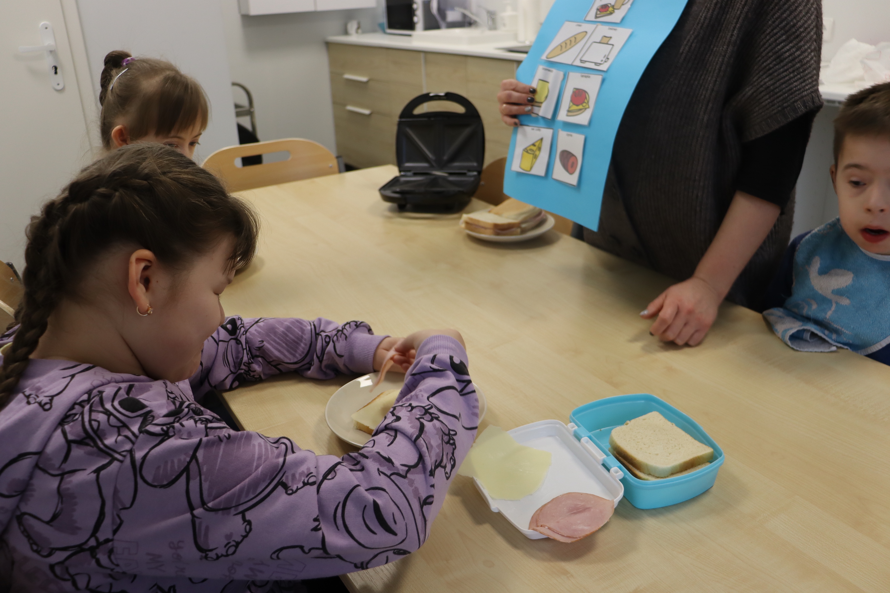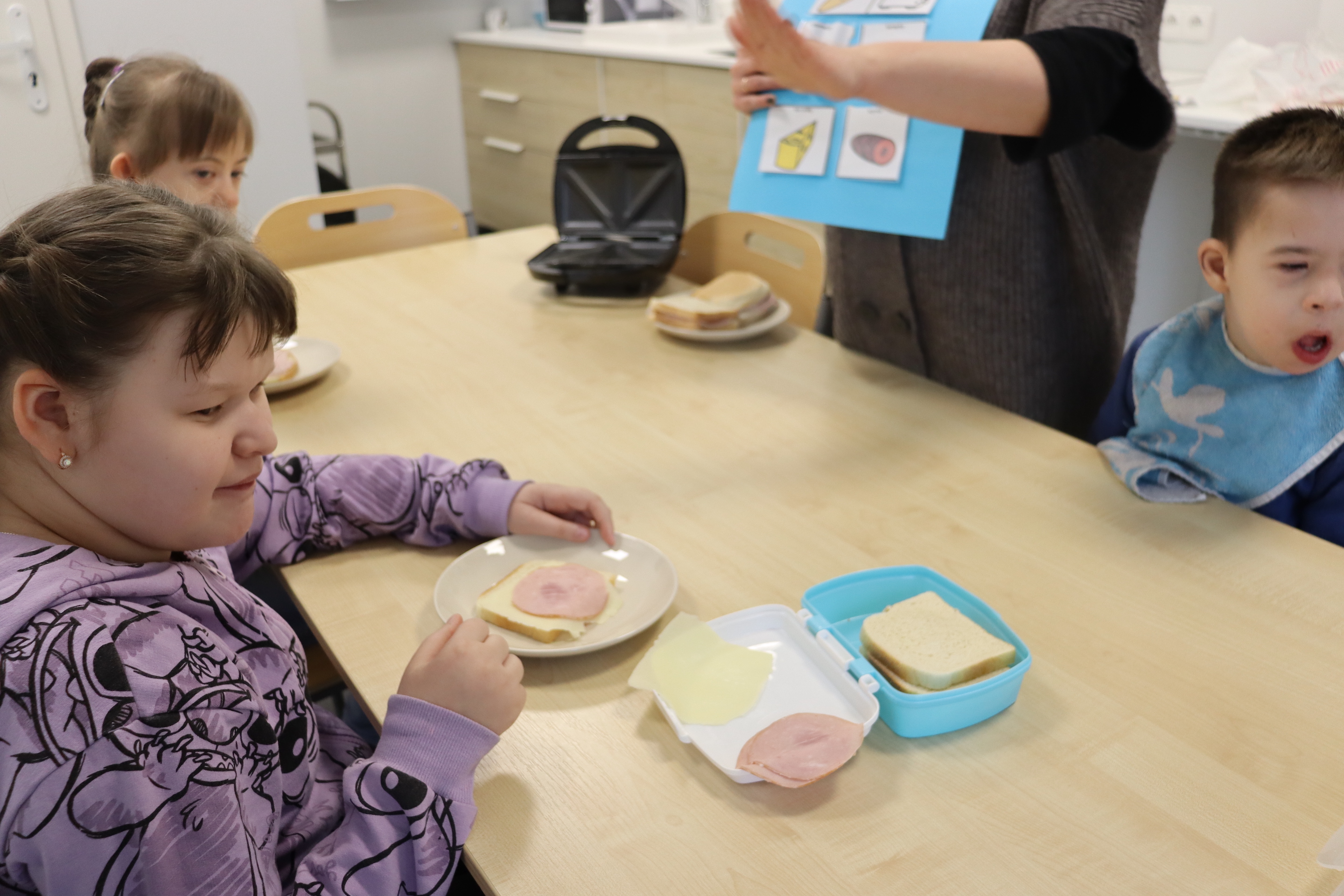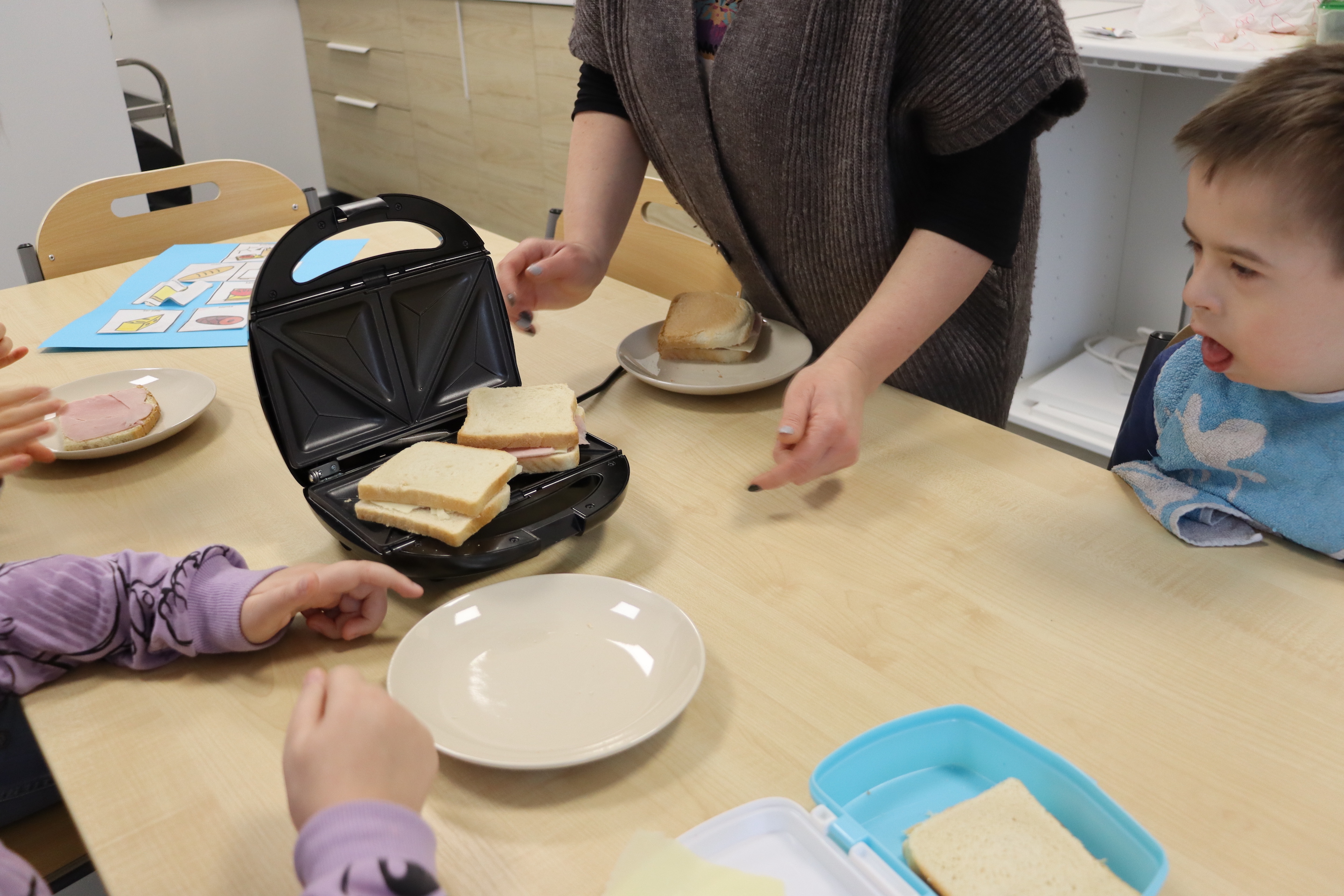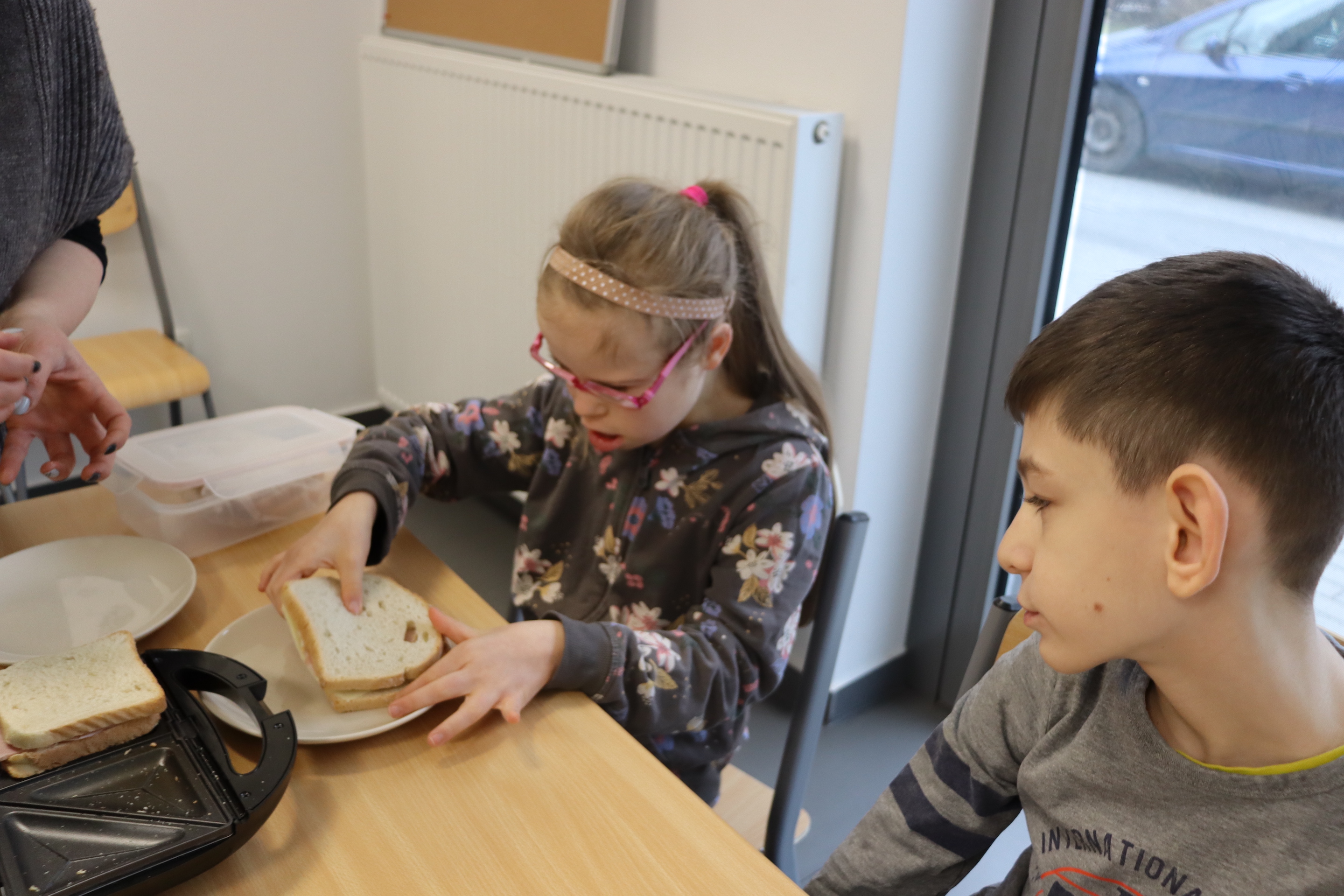 27 lutego br., uczniowie oddziału „I” w ramach śniadania przygotowali dla siebie zapiekane kanapki z szynką i serem. Kanapki były zapiekane w opiekaczu, zakupionym w ramach projektu „Laboratoria Przyszłości’. Przed przystąpieniem do wykonania śniadania, wszyscy odpowiednio się przygotowali, myjąc ręce.