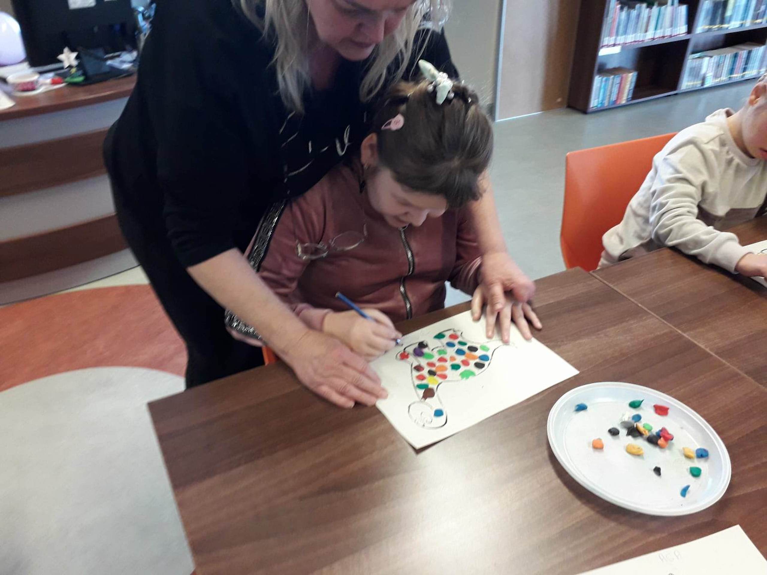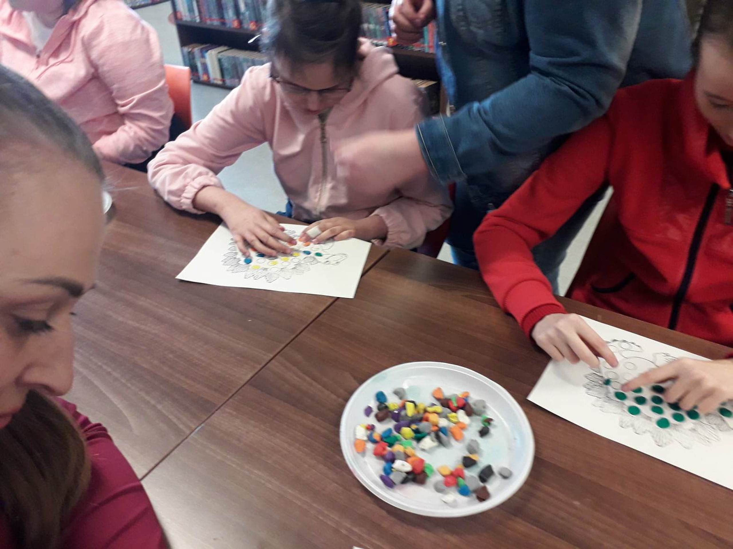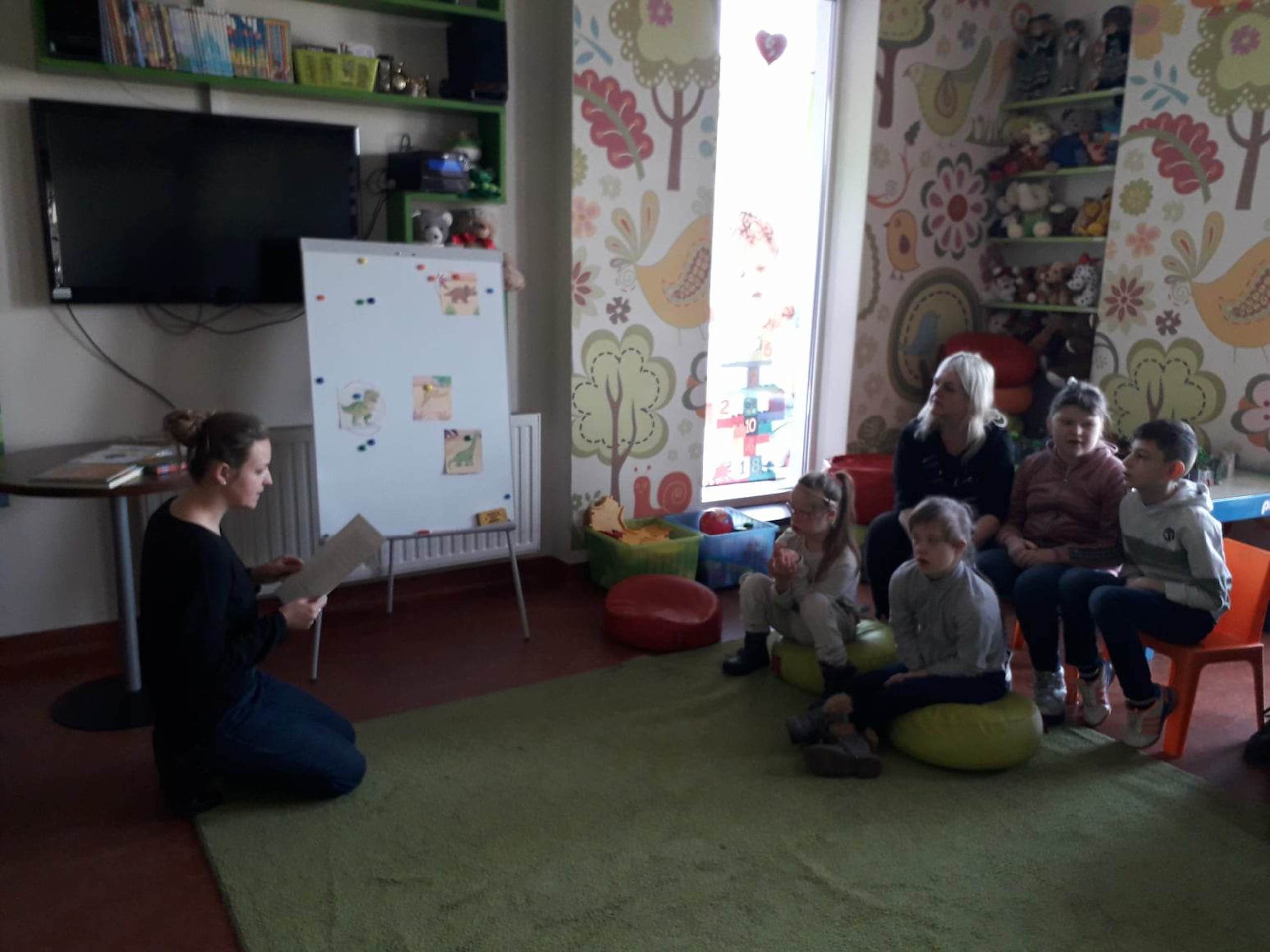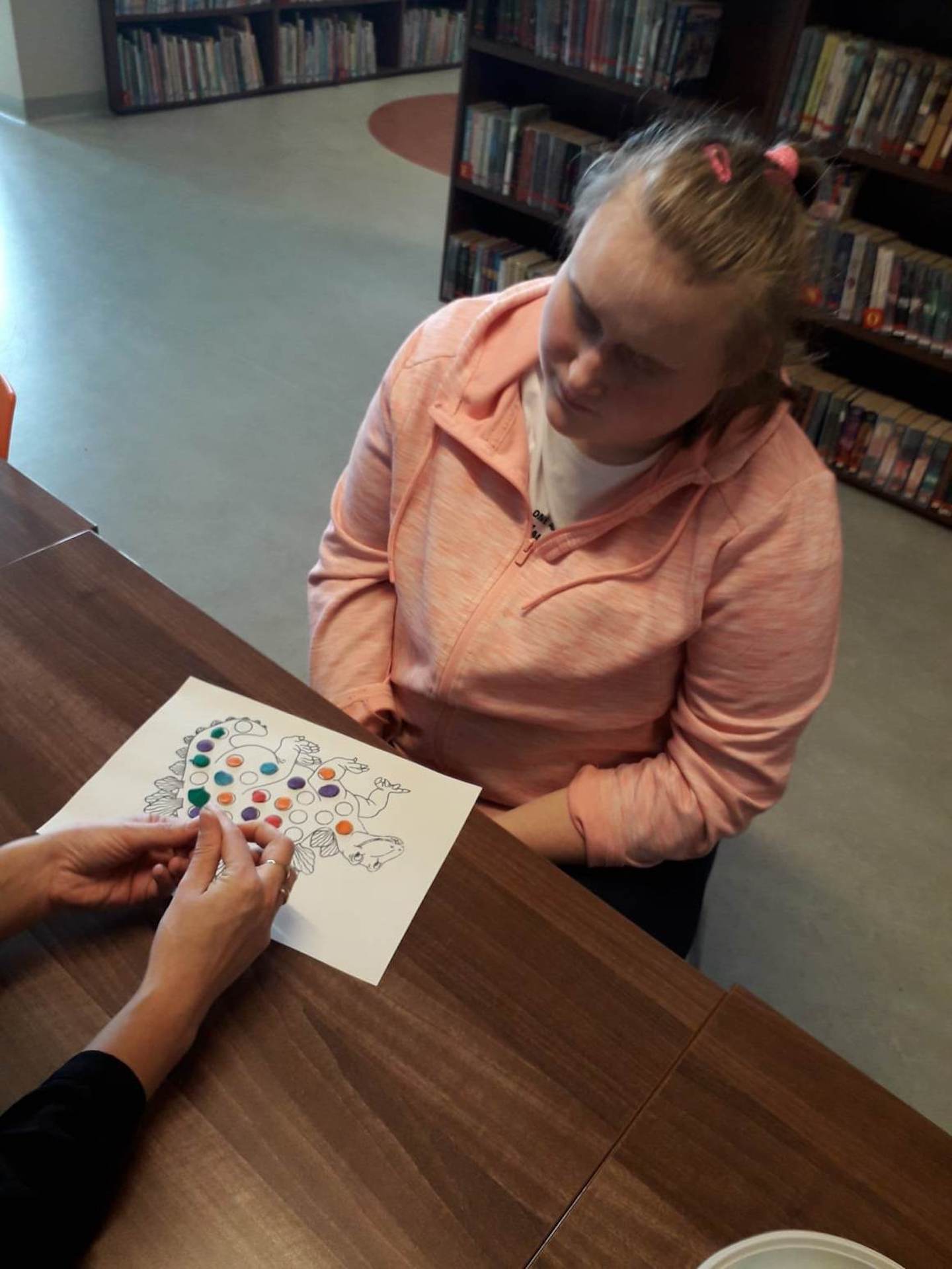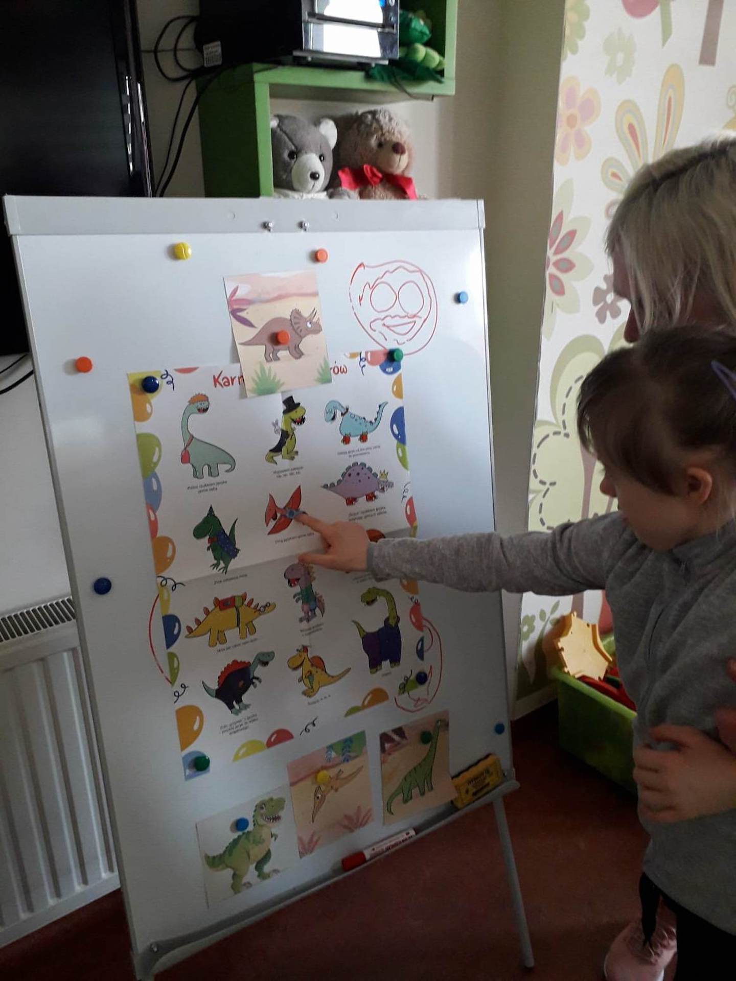 Podczas lutowego „Spotkania z książką” uczniowie zapoznali się z pozycjami książkowymi opowiadającymi o życiu dinozaurów. Najpierw zamienili się w archeologów i wykopywali z piasku dinozaury, poznając ich trudne nazwy. Potem odgadywali zagadki o dinozaurach, naśladując ich charakterystyczne cechy, a następnie wykonywali ćwiczenia logopedyczne podane przez dinozaury oraz zrobili masażyk dinozaura. Na koniec wszyscy uczniowie wykonali pracę plastyczną „Kropkowy dinozaur”