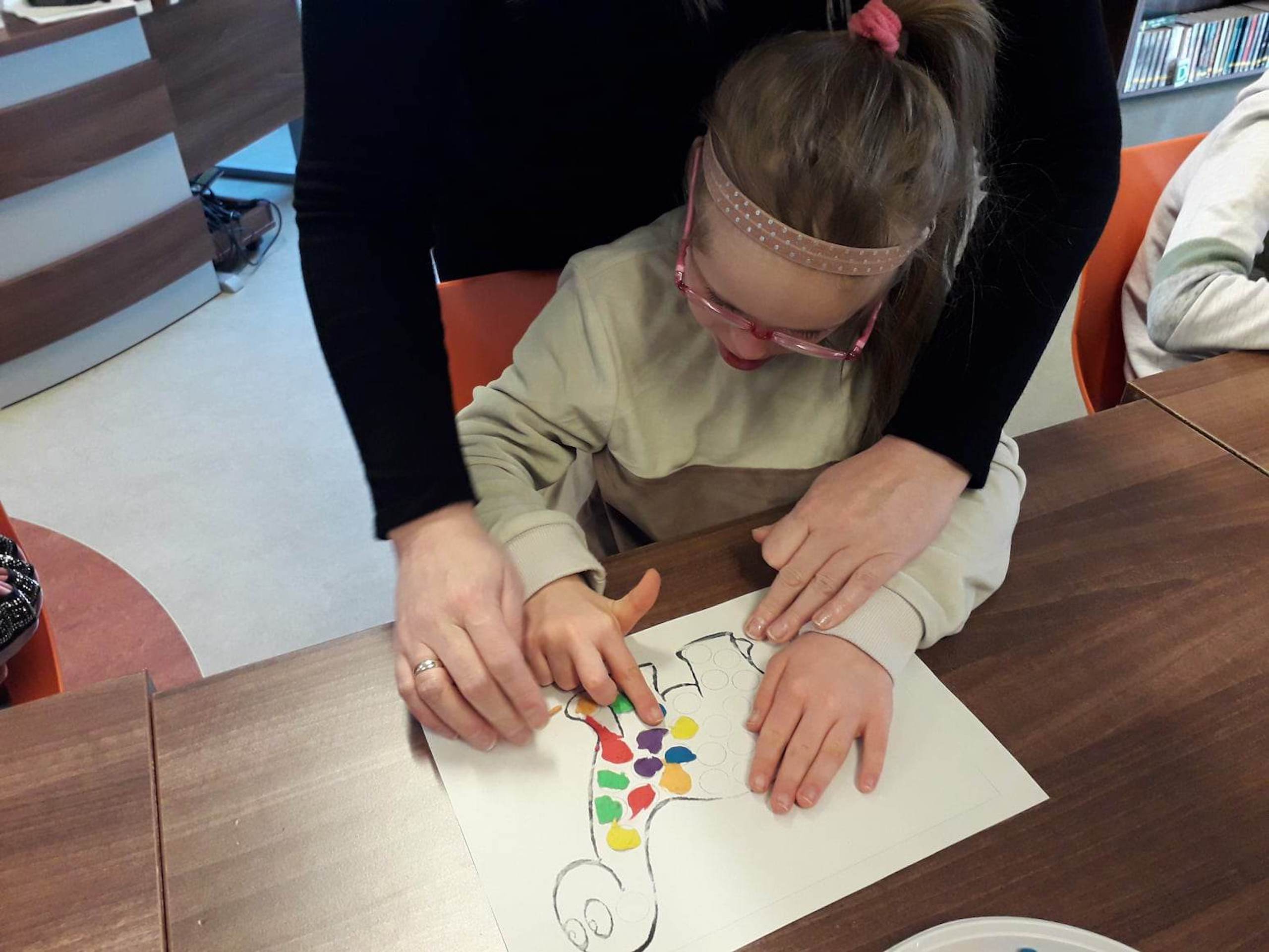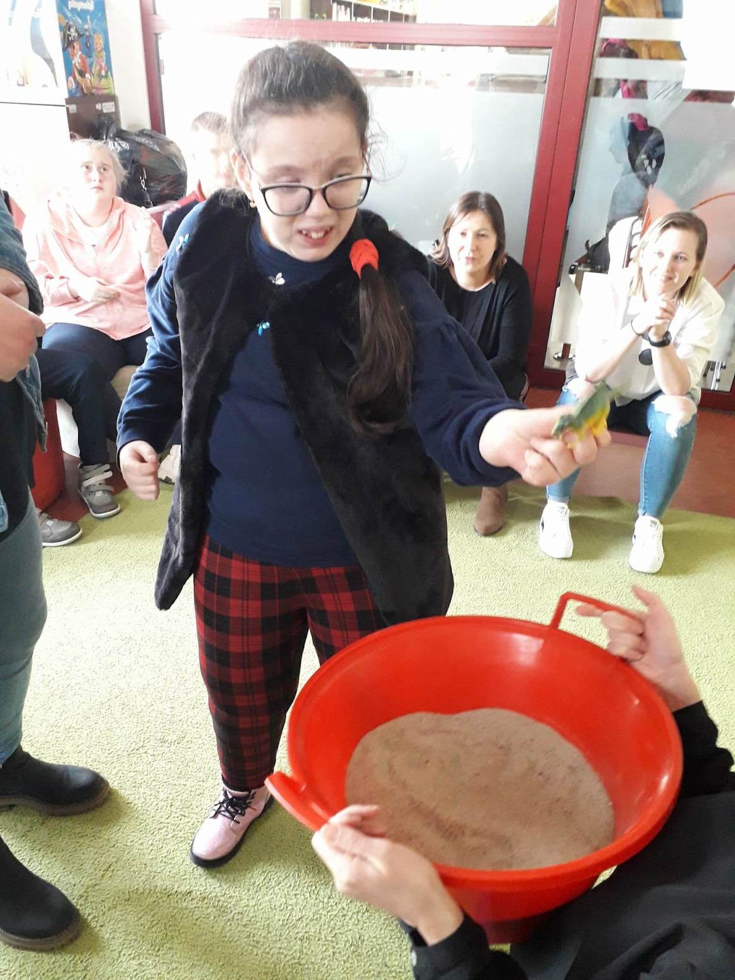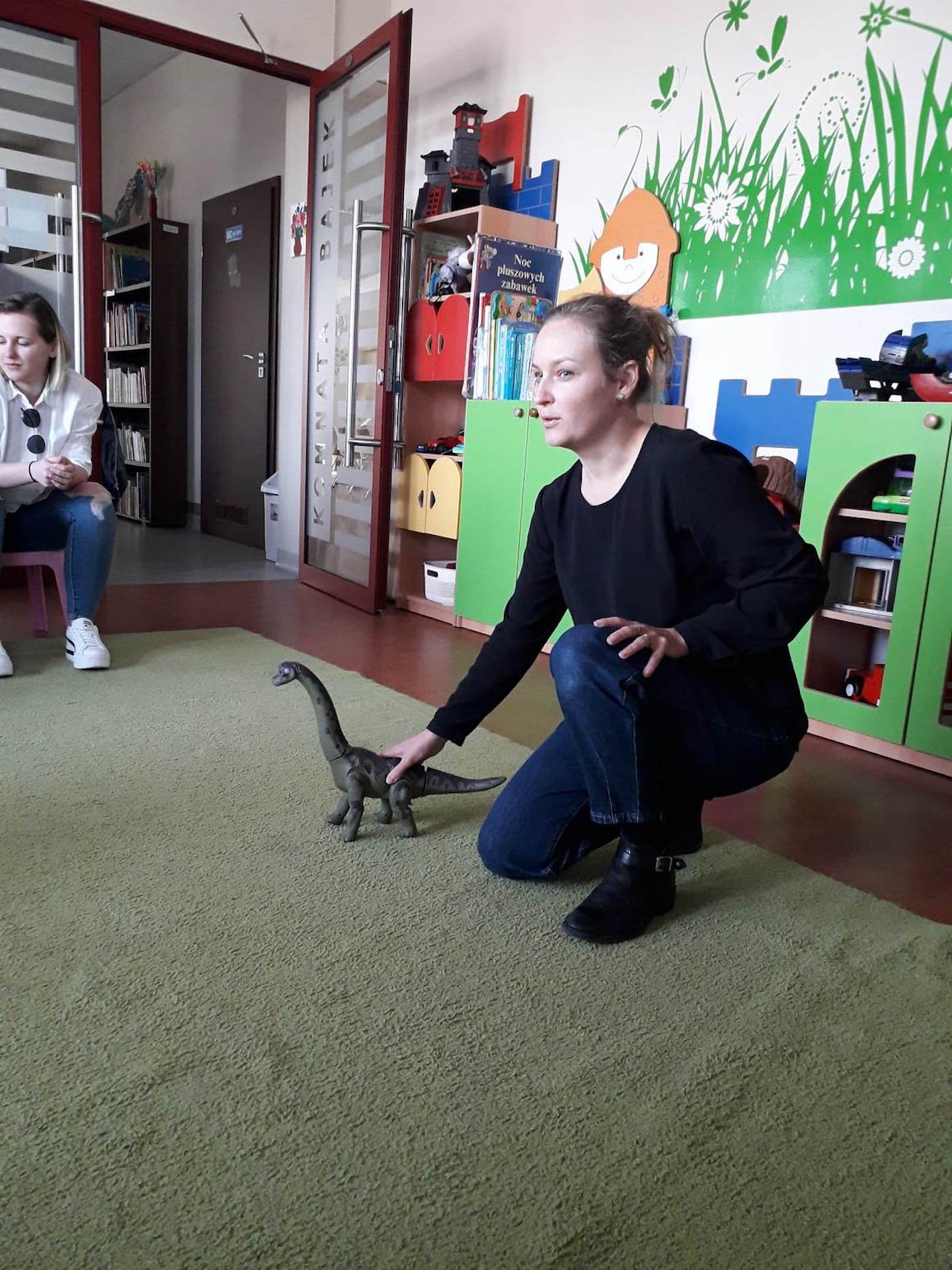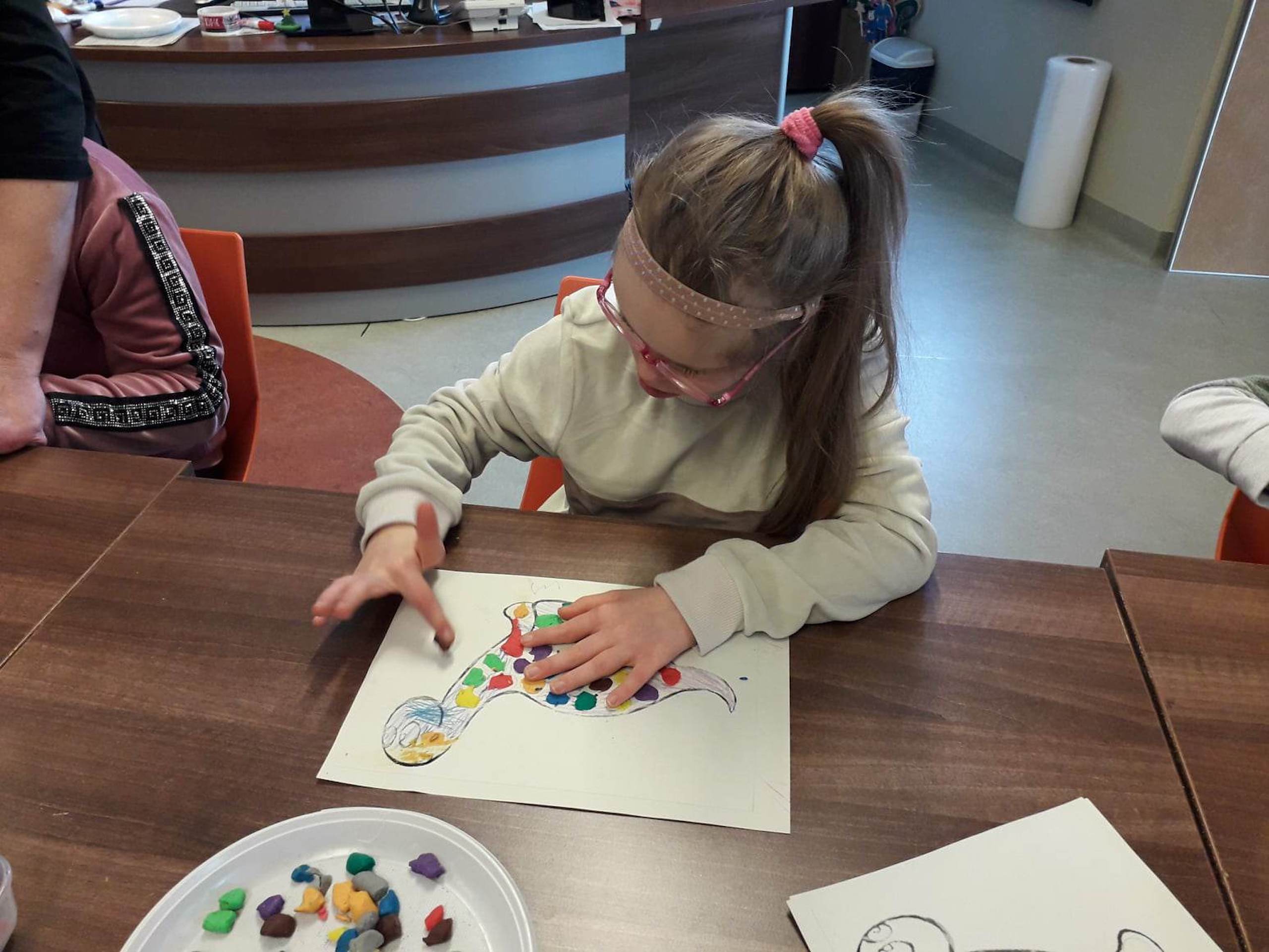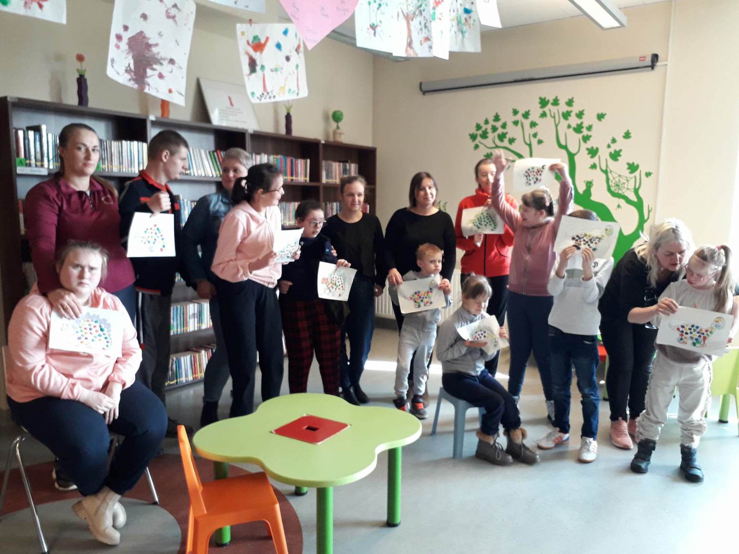 Podczas lutowego „Spotkania z książką” uczniowie zapoznali się z pozycjami książkowymi opowiadającymi o życiu dinozaurów. Najpierw zamienili się w archeologów i wykopywali z piasku dinozaury, poznając ich trudne nazwy. Potem odgadywali zagadki o dinozaurach, naśladując ich charakterystyczne cechy, a następnie wykonywali ćwiczenia logopedyczne podane przez dinozaury oraz zrobili masażyk dinozaura. Na koniec wszyscy uczniowie wykonali pracę plastyczną „Kropkowy dinozaur”