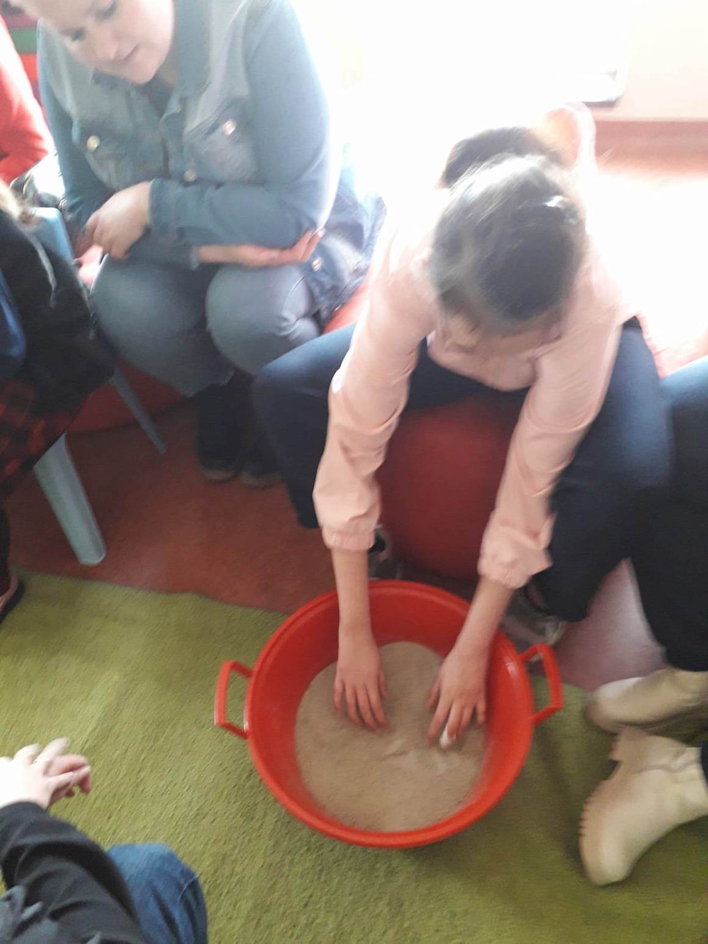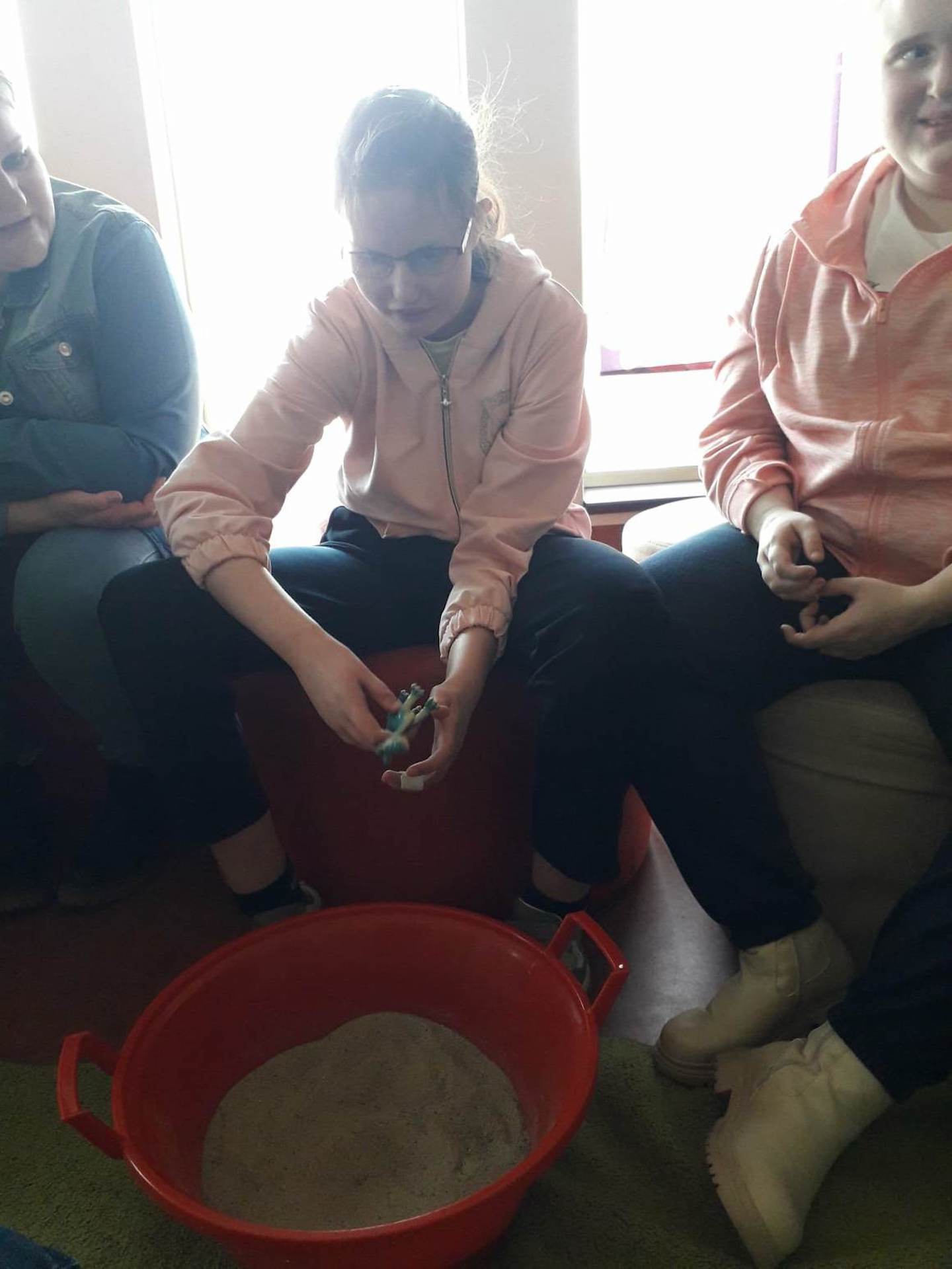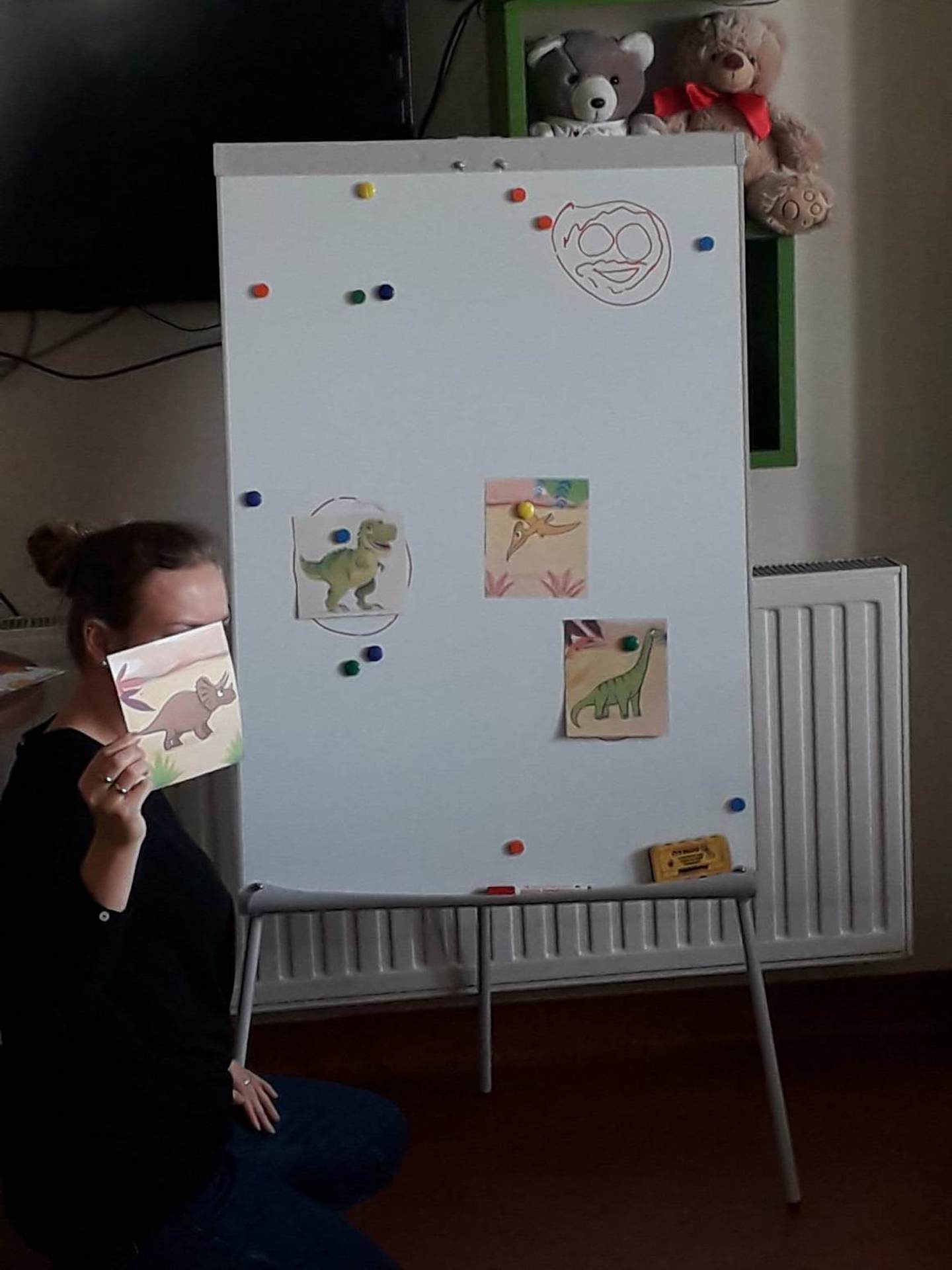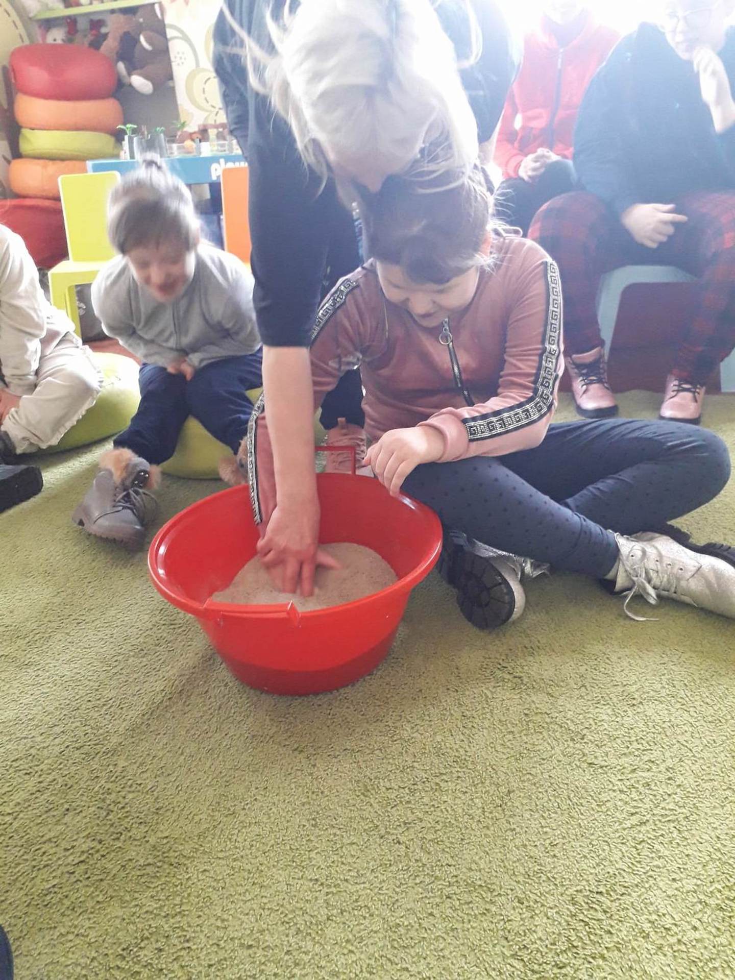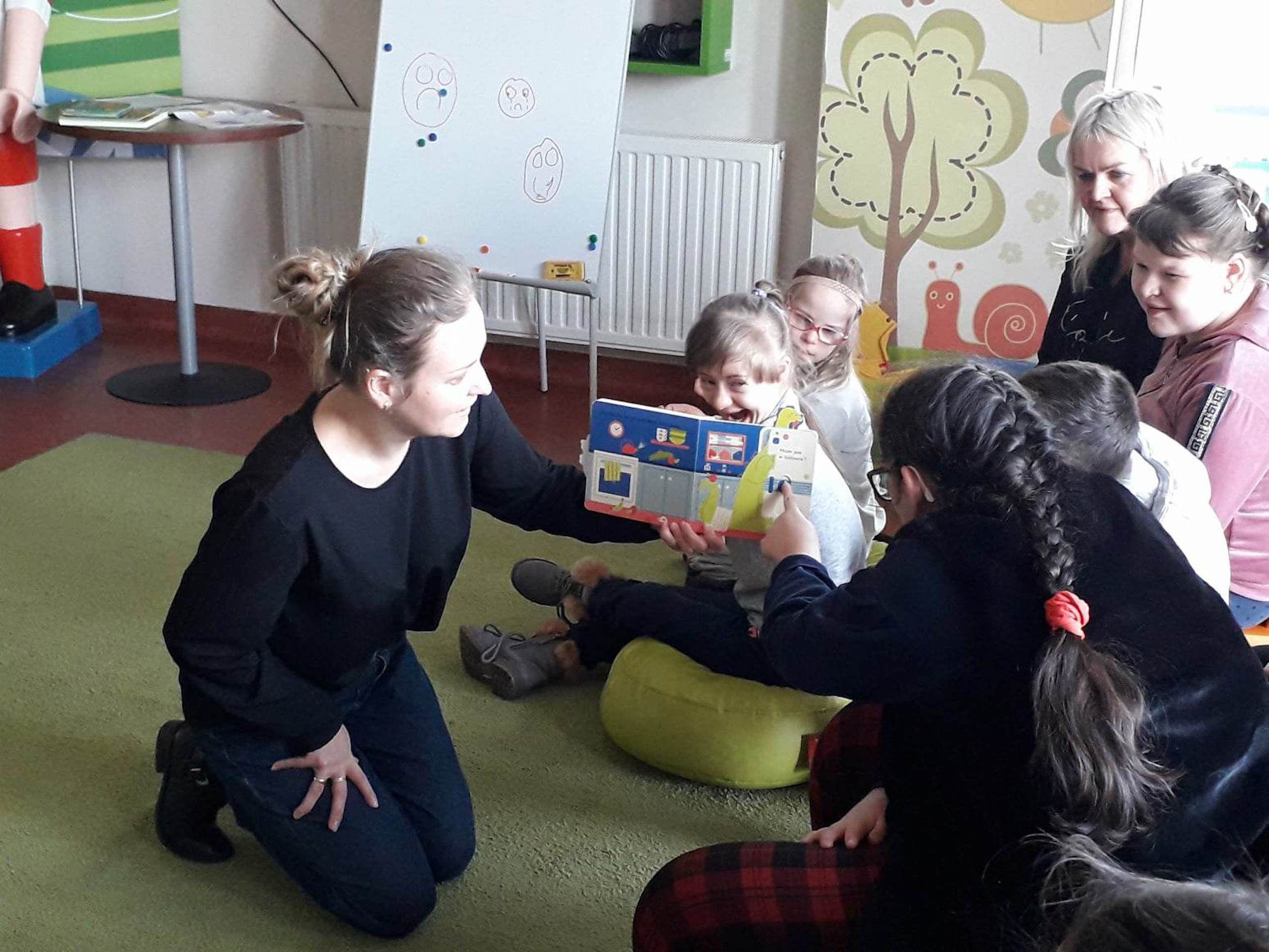Podczas lutowego „Spotkania z książką” uczniowie zapoznali się z pozycjami książkowymi opowiadającymi o życiu dinozaurów. Najpierw zamienili się w archeologów i wykopywali z piasku dinozaury, poznając ich trudne nazwy. Potem odgadywali zagadki o dinozaurach, naśladując ich charakterystyczne cechy, a następnie wykonywali ćwiczenia logopedyczne podane przez dinozaury oraz zrobili masażyk dinozaura. Na koniec wszyscy uczniowie wykonali pracę plastyczną „Kropkowy dinozaur”