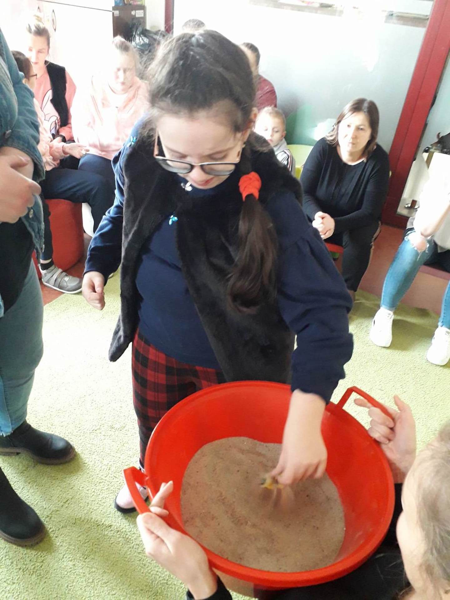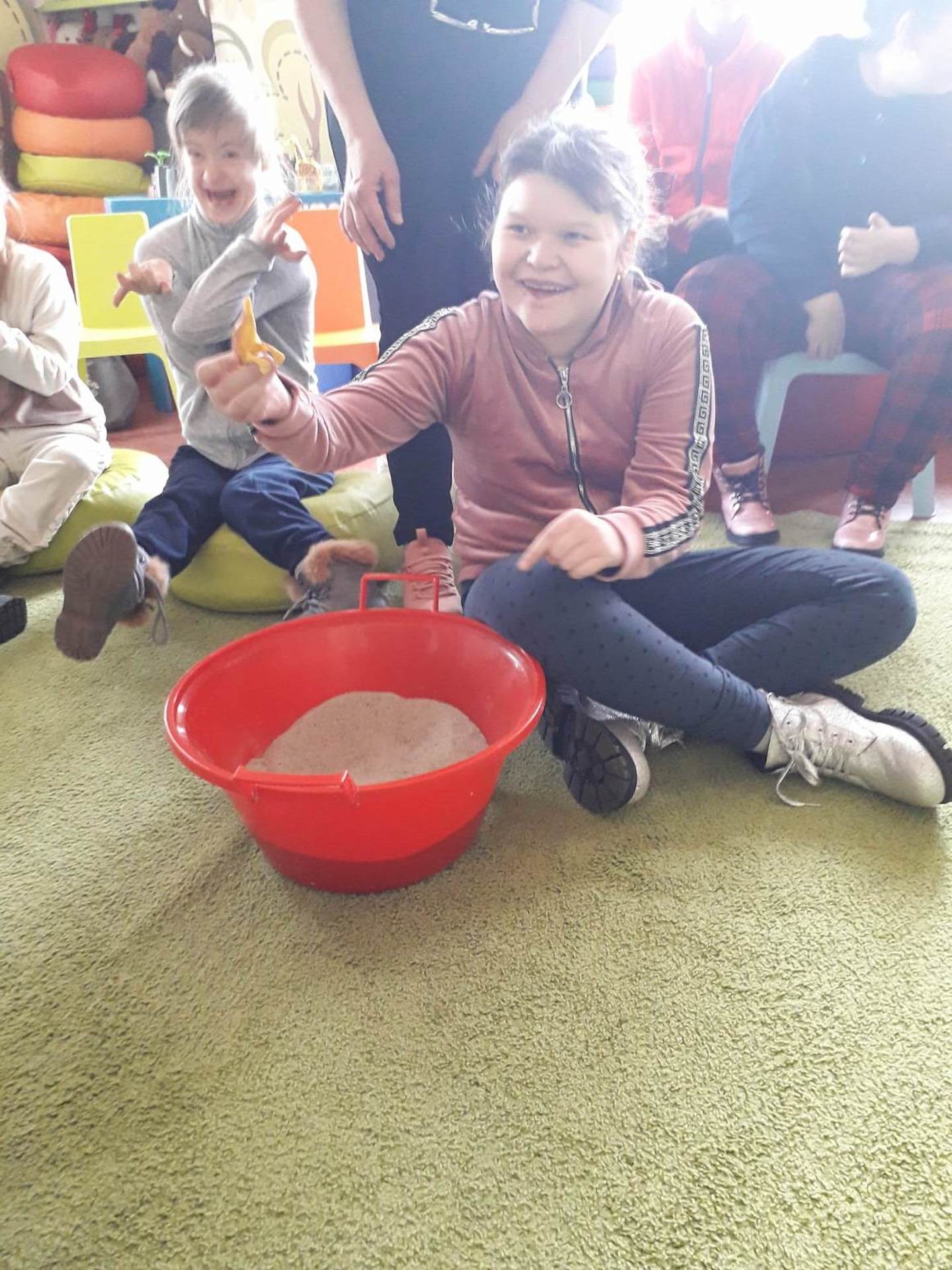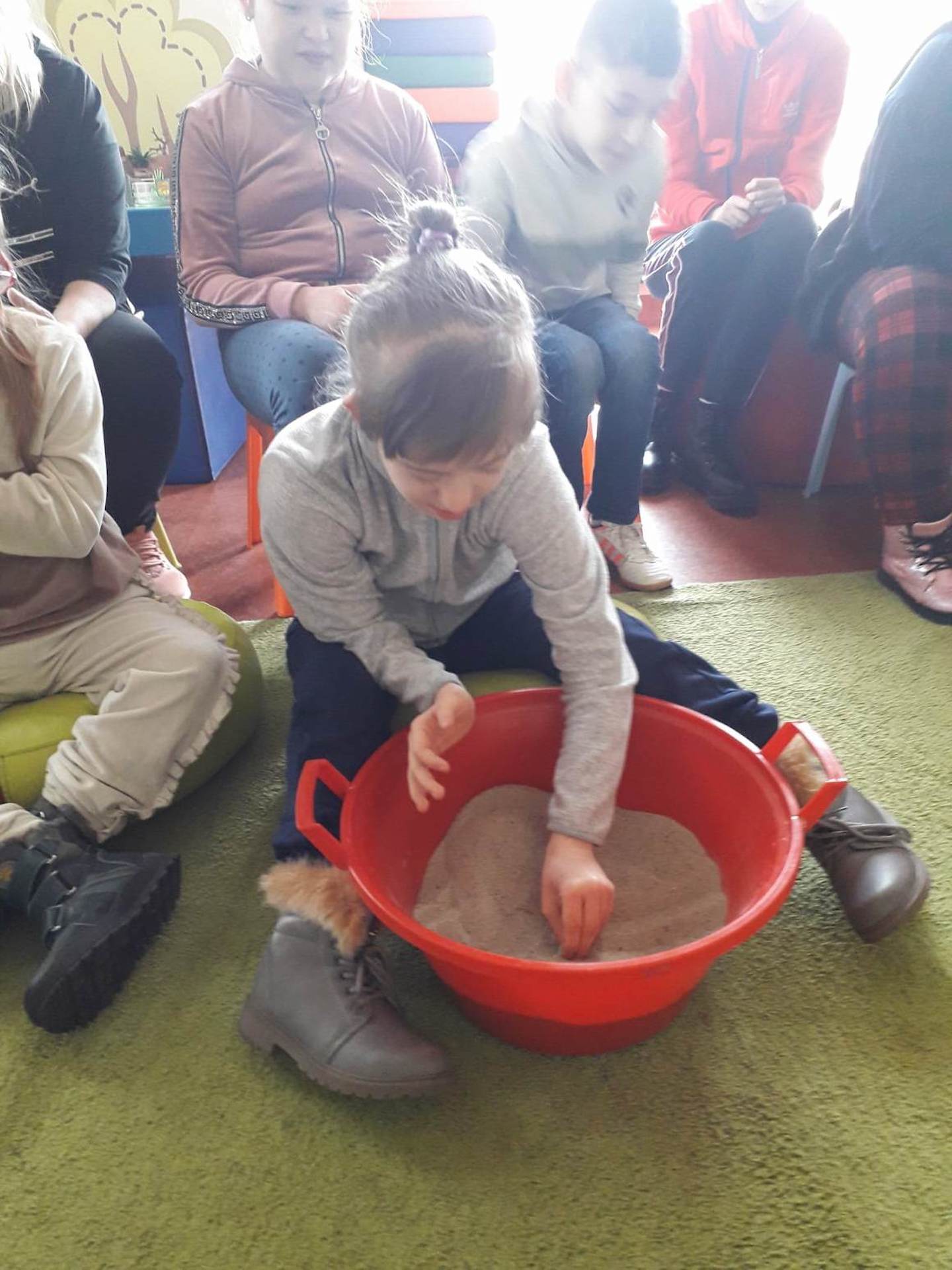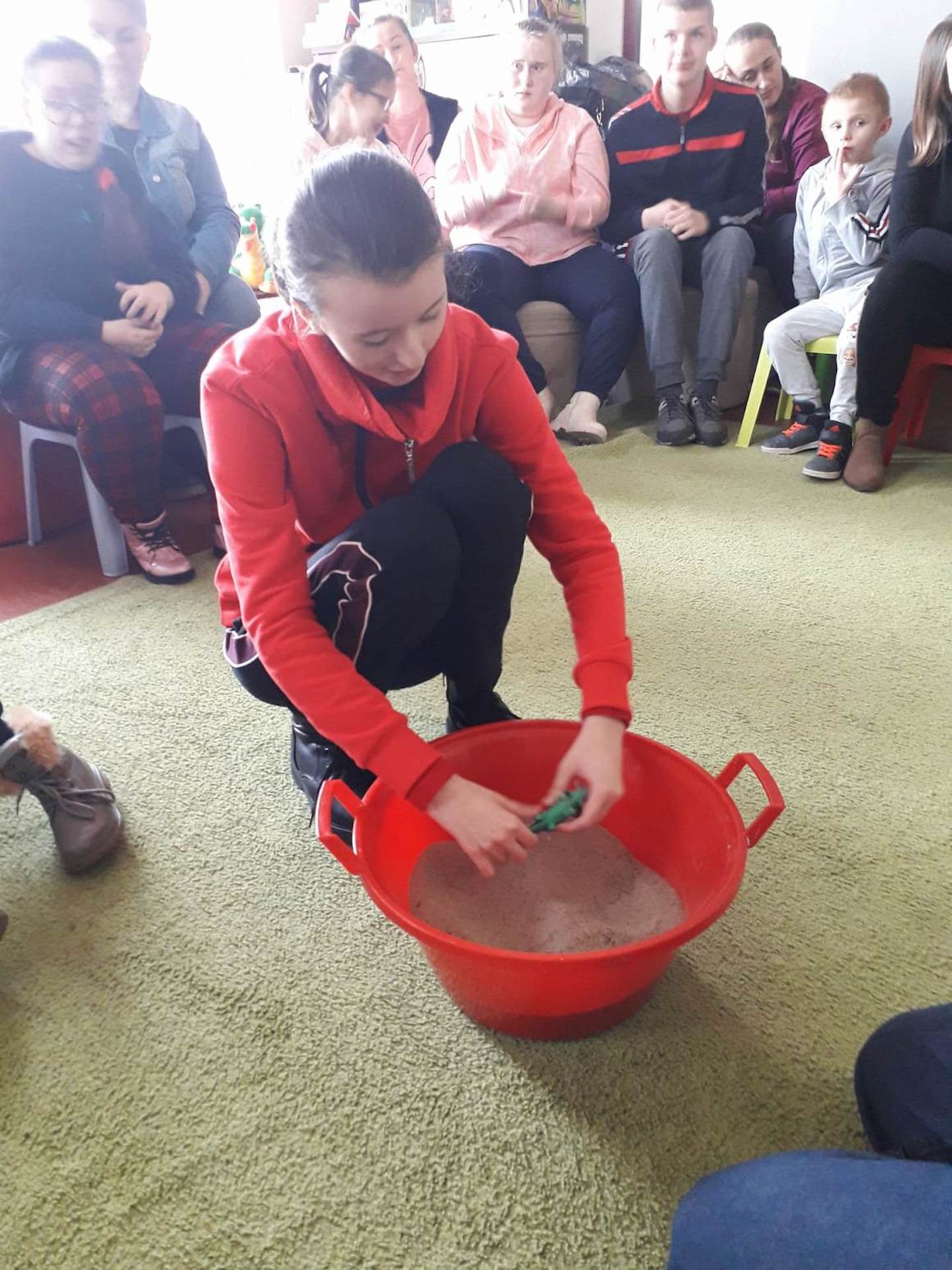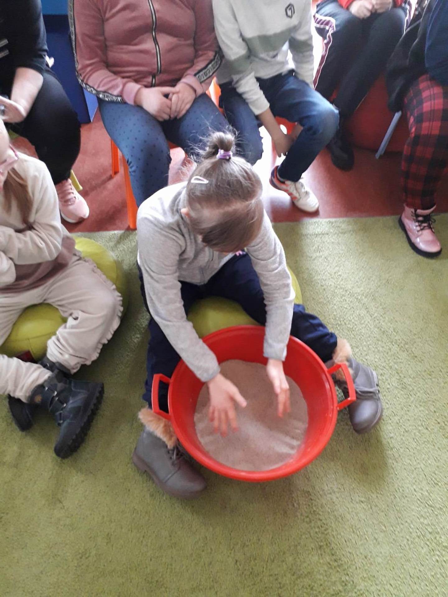 Podczas lutowego „Spotkania z książką” uczniowie zapoznali się z pozycjami książkowymi opowiadającymi o życiu dinozaurów. Najpierw zamienili się w archeologów i wykopywali z piasku dinozaury, poznając ich trudne nazwy. Potem odgadywali zagadki o dinozaurach, naśladując ich charakterystyczne cechy, a następnie wykonywali ćwiczenia logopedyczne podane przez dinozaury oraz zrobili masażyk dinozaura. Na koniec wszyscy uczniowie wykonali pracę plastyczną „Kropkowy dinozaur”