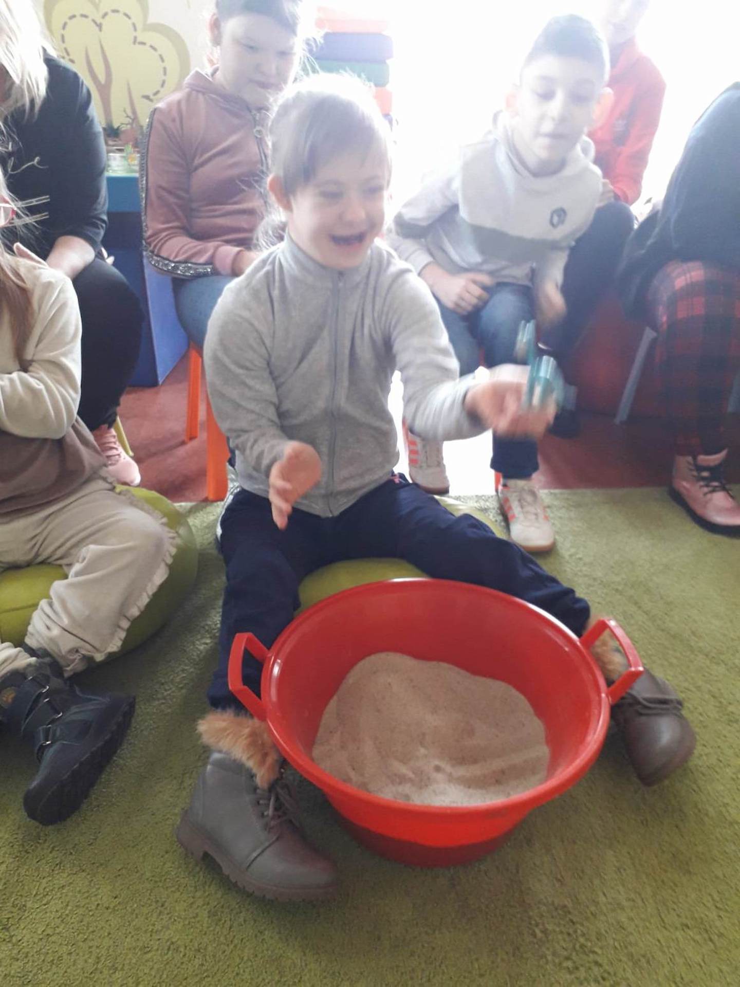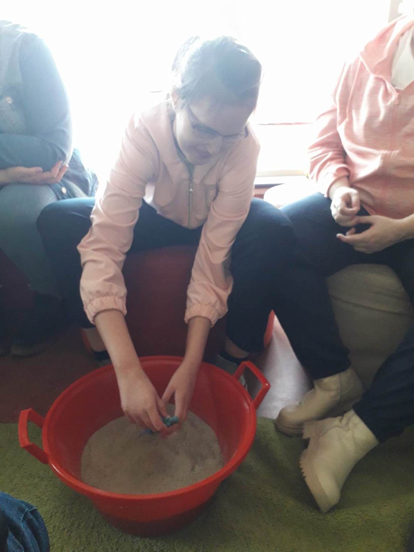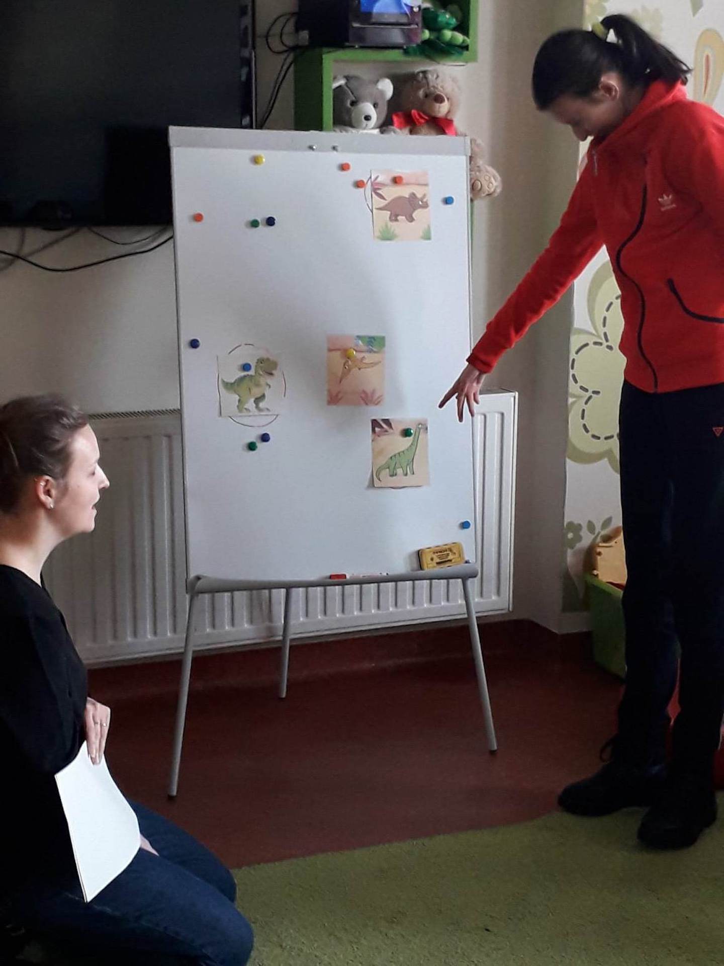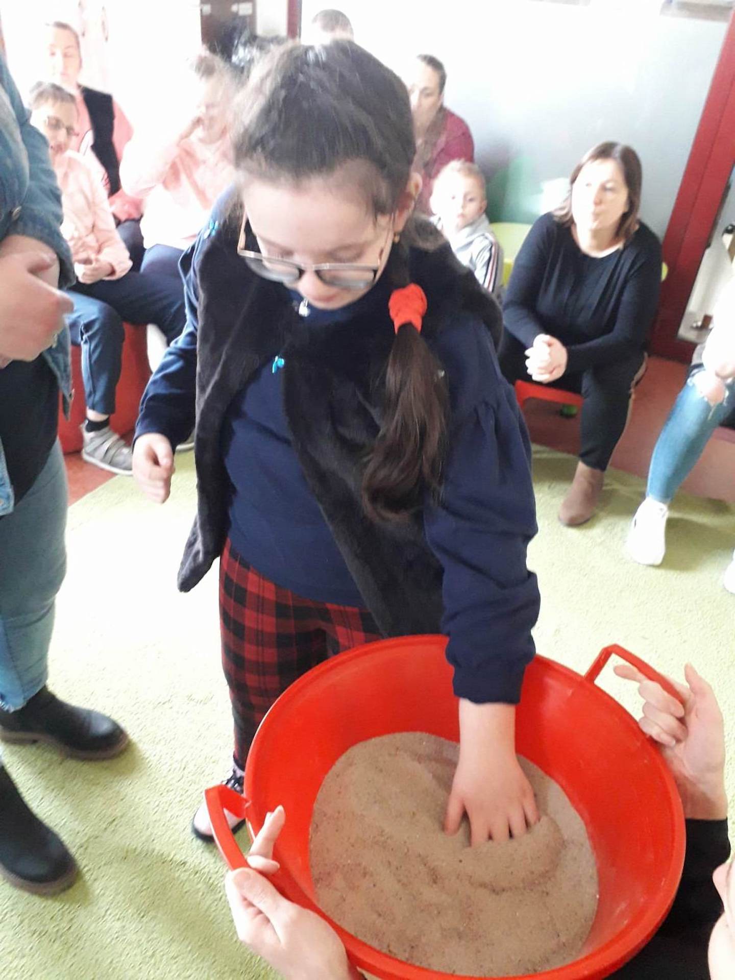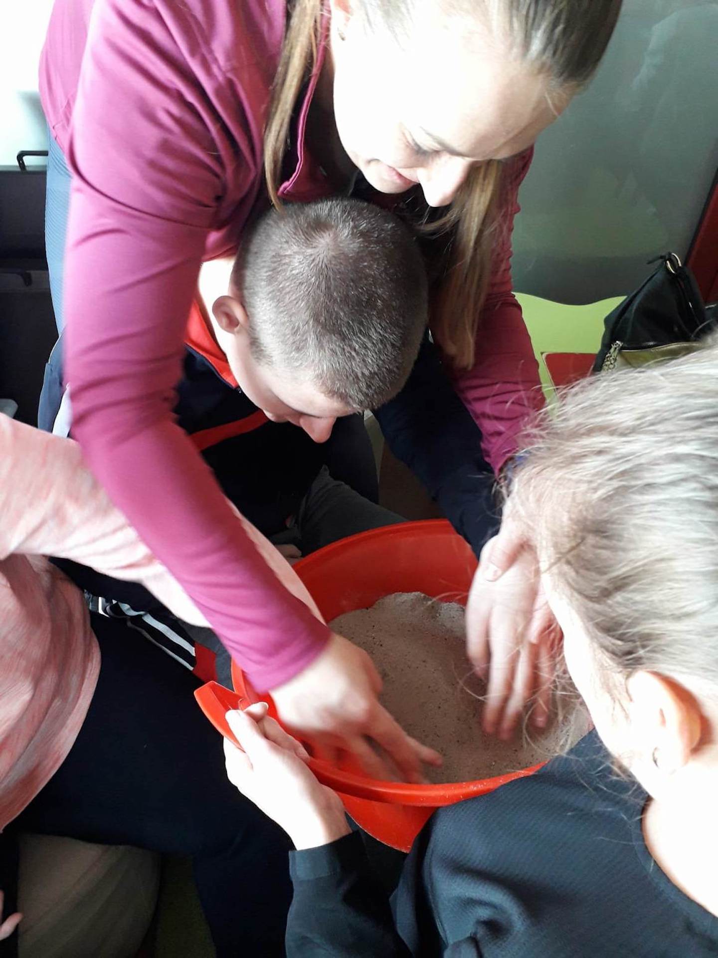 Podczas lutowego „Spotkania z książką” uczniowie zapoznali się z pozycjami książkowymi opowiadającymi o życiu dinozaurów. Najpierw zamienili się w archeologów i wykopywali z piasku dinozaury, poznając ich trudne nazwy. Potem odgadywali zagadki o dinozaurach, naśladując ich charakterystyczne cechy, a następnie wykonywali ćwiczenia logopedyczne podane przez dinozaury oraz zrobili masażyk dinozaura. Na koniec wszyscy uczniowie wykonali pracę plastyczną „Kropkowy dinozaur”