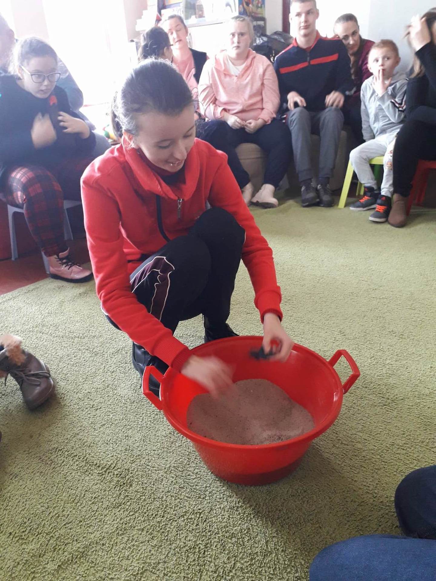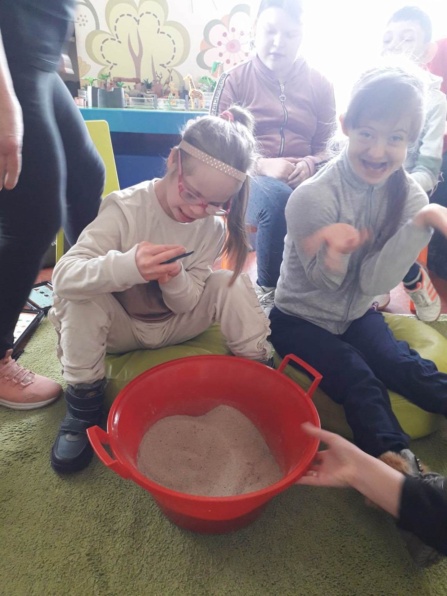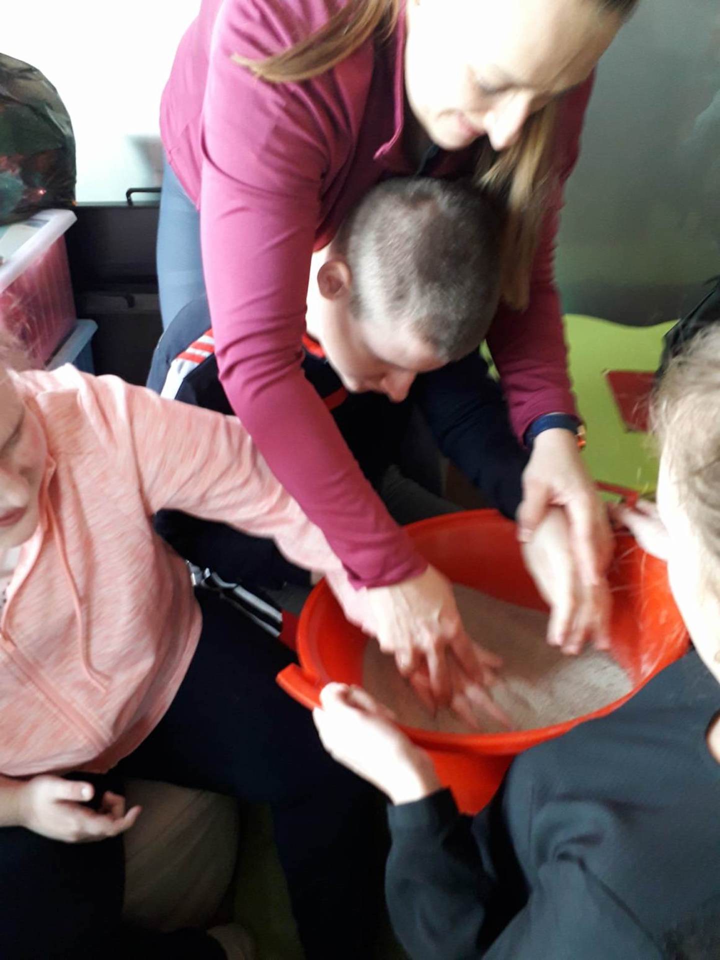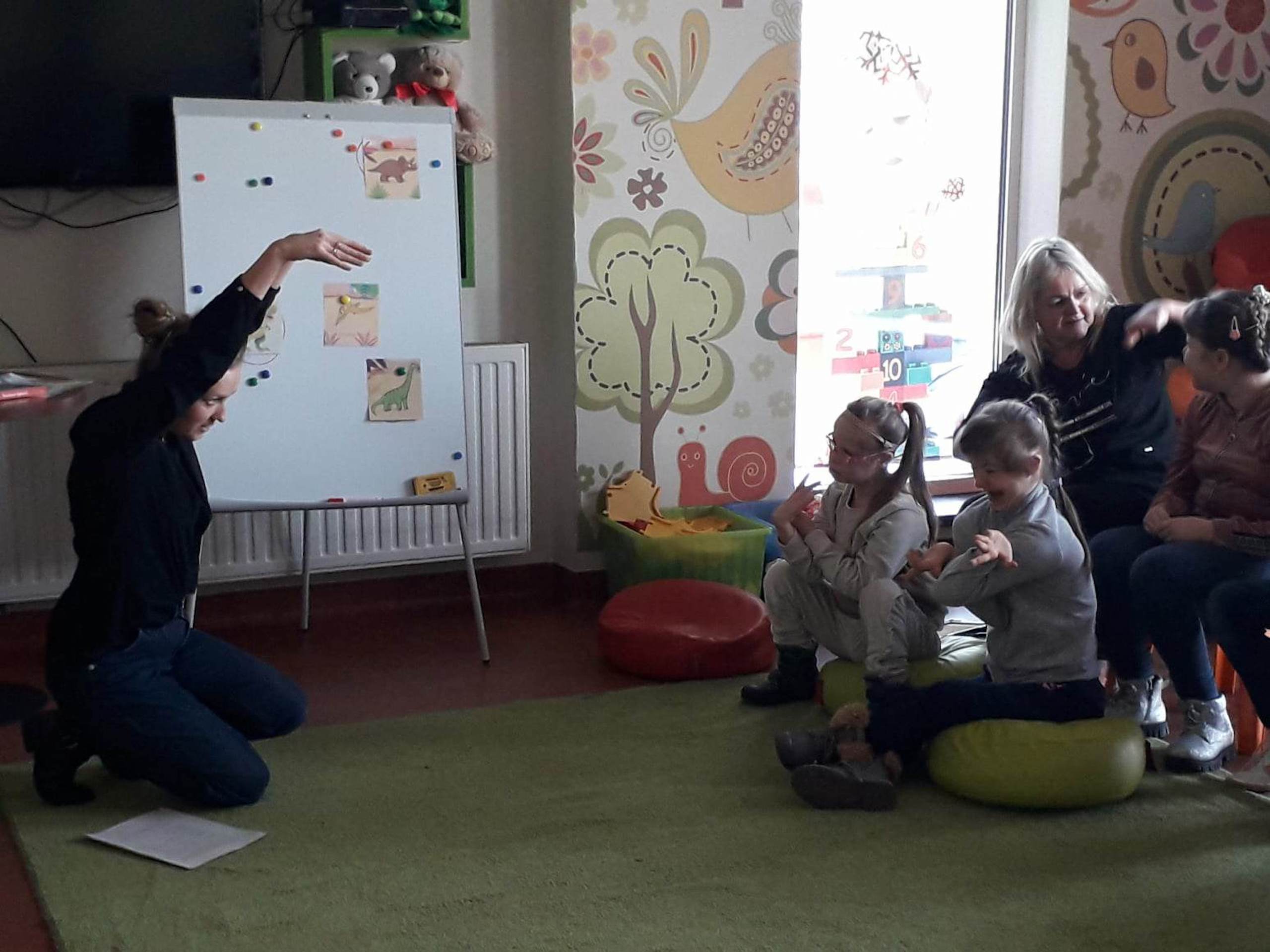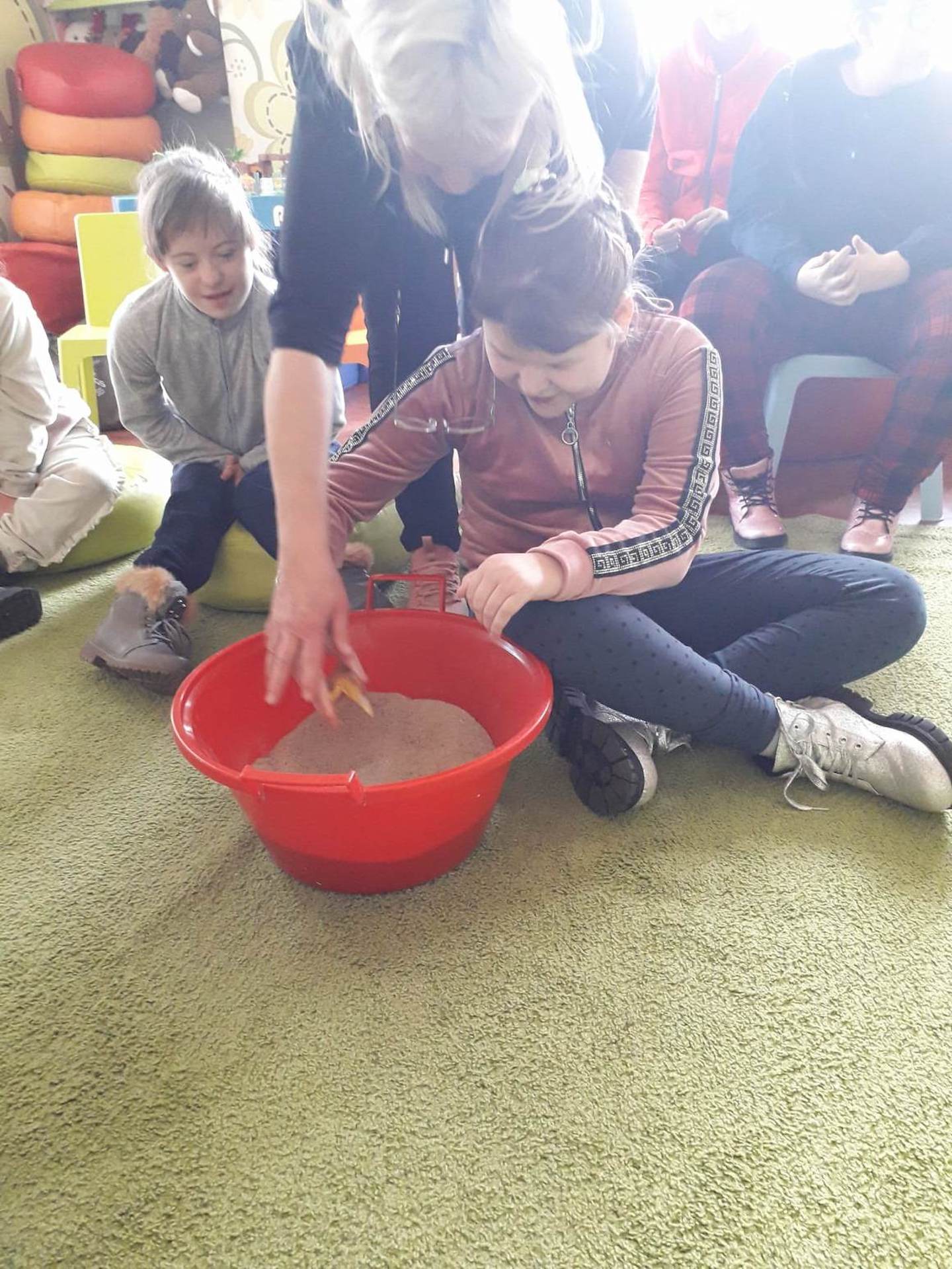 Podczas lutowego „Spotkania z książką” uczniowie zapoznali się z pozycjami książkowymi opowiadającymi o życiu dinozaurów. Najpierw zamienili się w archeologów i wykopywali z piasku dinozaury, poznając ich trudne nazwy. Potem odgadywali zagadki o dinozaurach, naśladując ich charakterystyczne cechy, a następnie wykonywali ćwiczenia logopedyczne podane przez dinozaury oraz zrobili masażyk dinozaura. Na koniec wszyscy uczniowie wykonali pracę plastyczną „Kropkowy dinozaur”