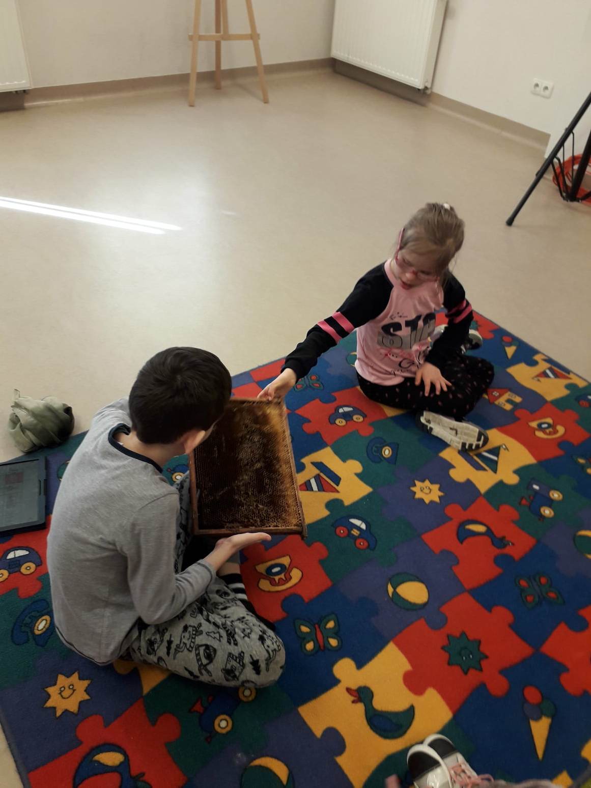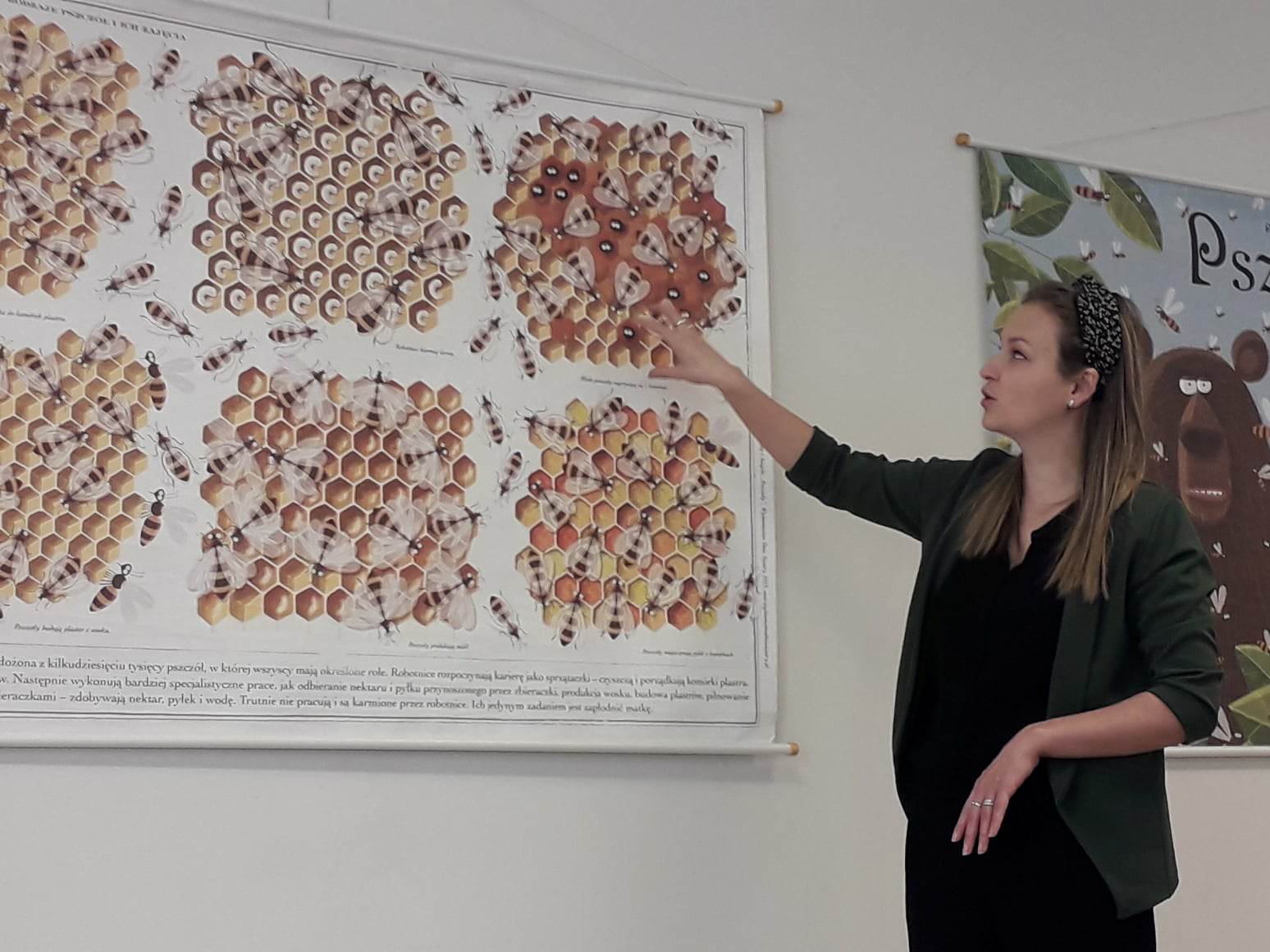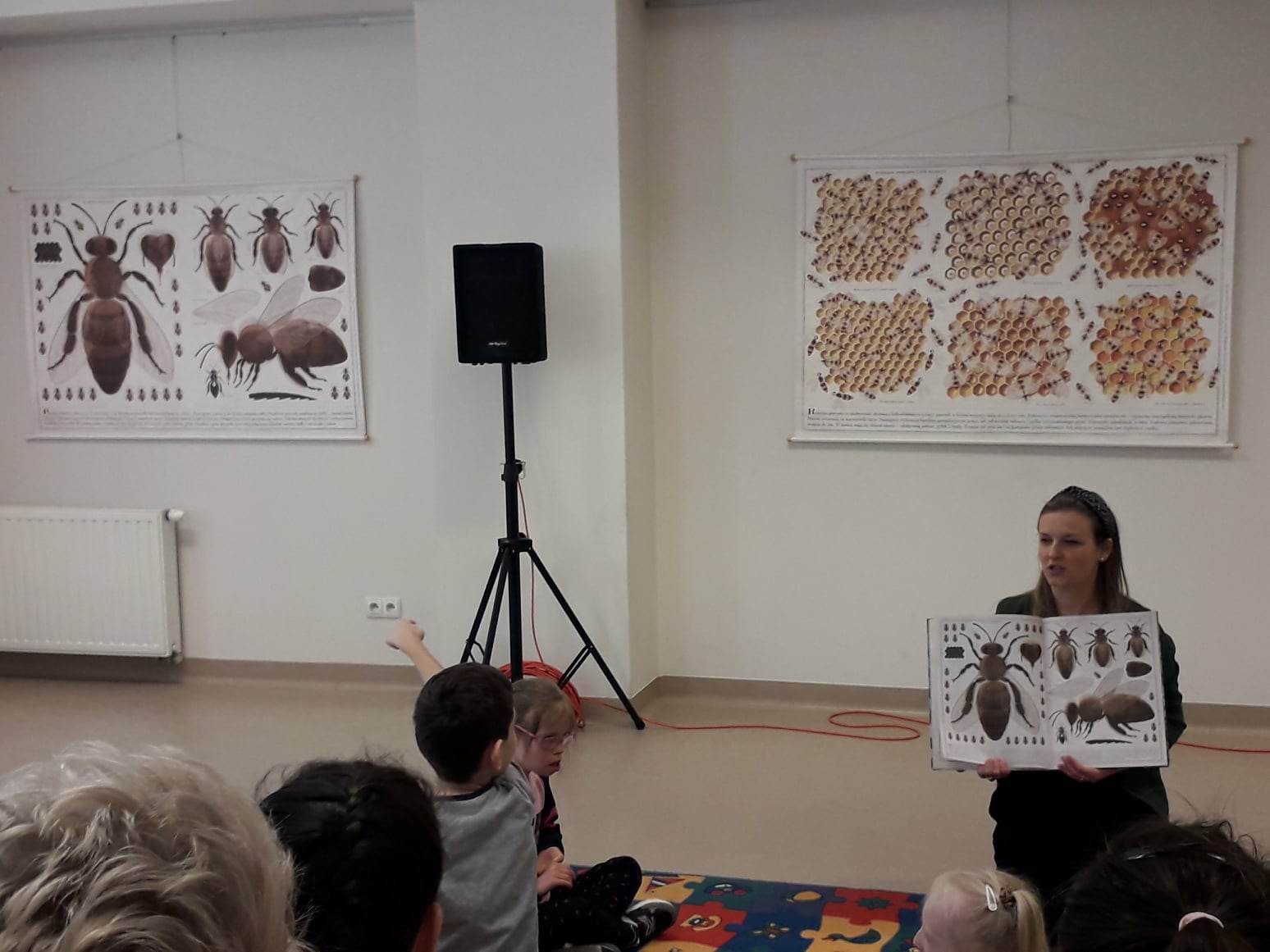 Podczas marcowego „Spotkania z książką” w Regionalnym Centrum Biblioteczno – Kulturalnym w Brzesku poznaliśmy nową pozycję książkową z literatury dziecięcej, autorstwa Piotra Sochy, zatytułowaną „Pszczoły”. Pięknie ilustrowana książka opowiada o życiu pszczół i pracy pszczelarza. Uczniowie podczas zajęć poznali narzędzia, których używa pszczelarz podczas swojej pracy przy ulu. W ciekawy sposób zgłębili wiedzę na temat pszczół. Na koniec zajęć wykonaliśmy, ciekawą techniką, pracę plastyczną pt. „Pszczoła na plastrze miodu”.