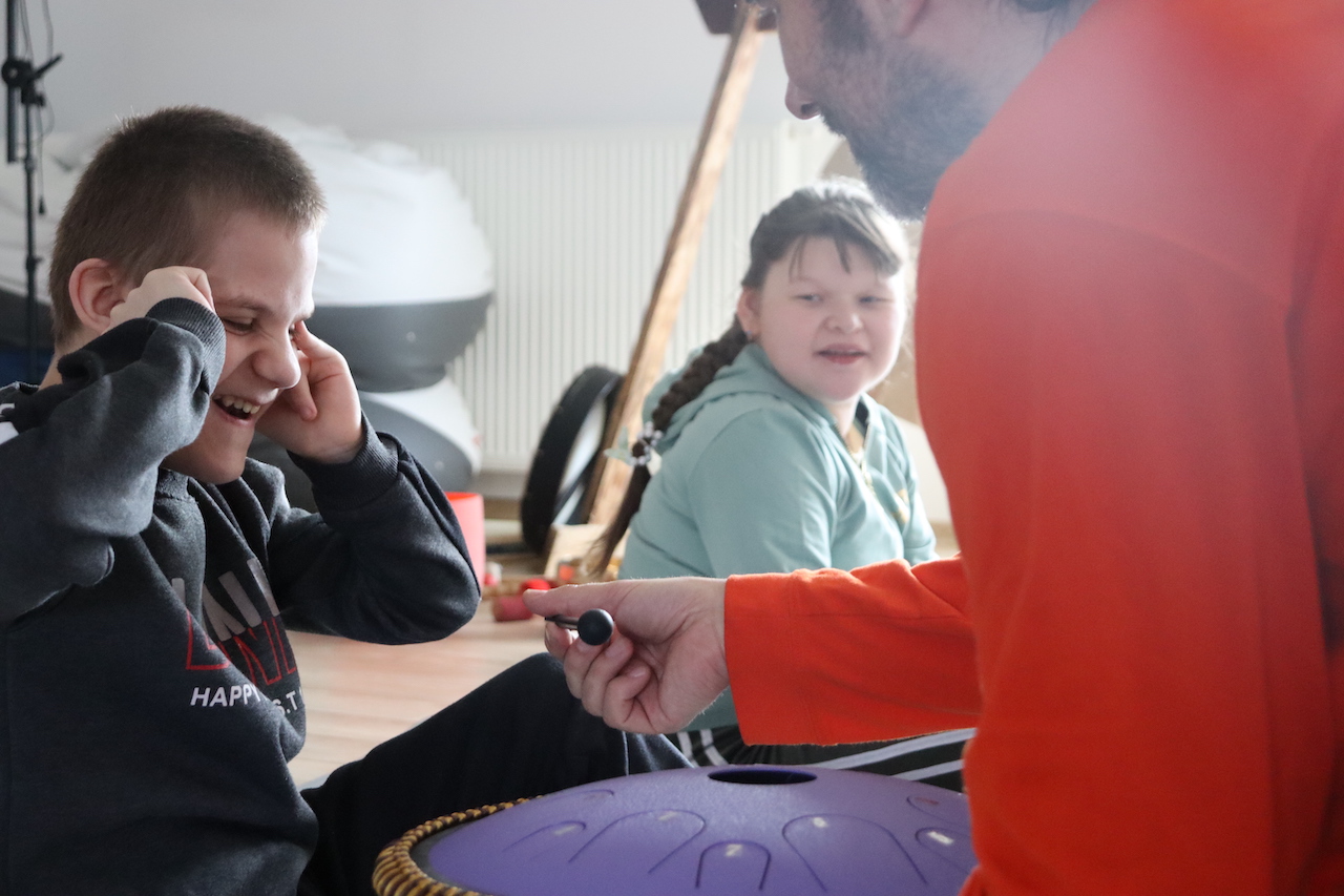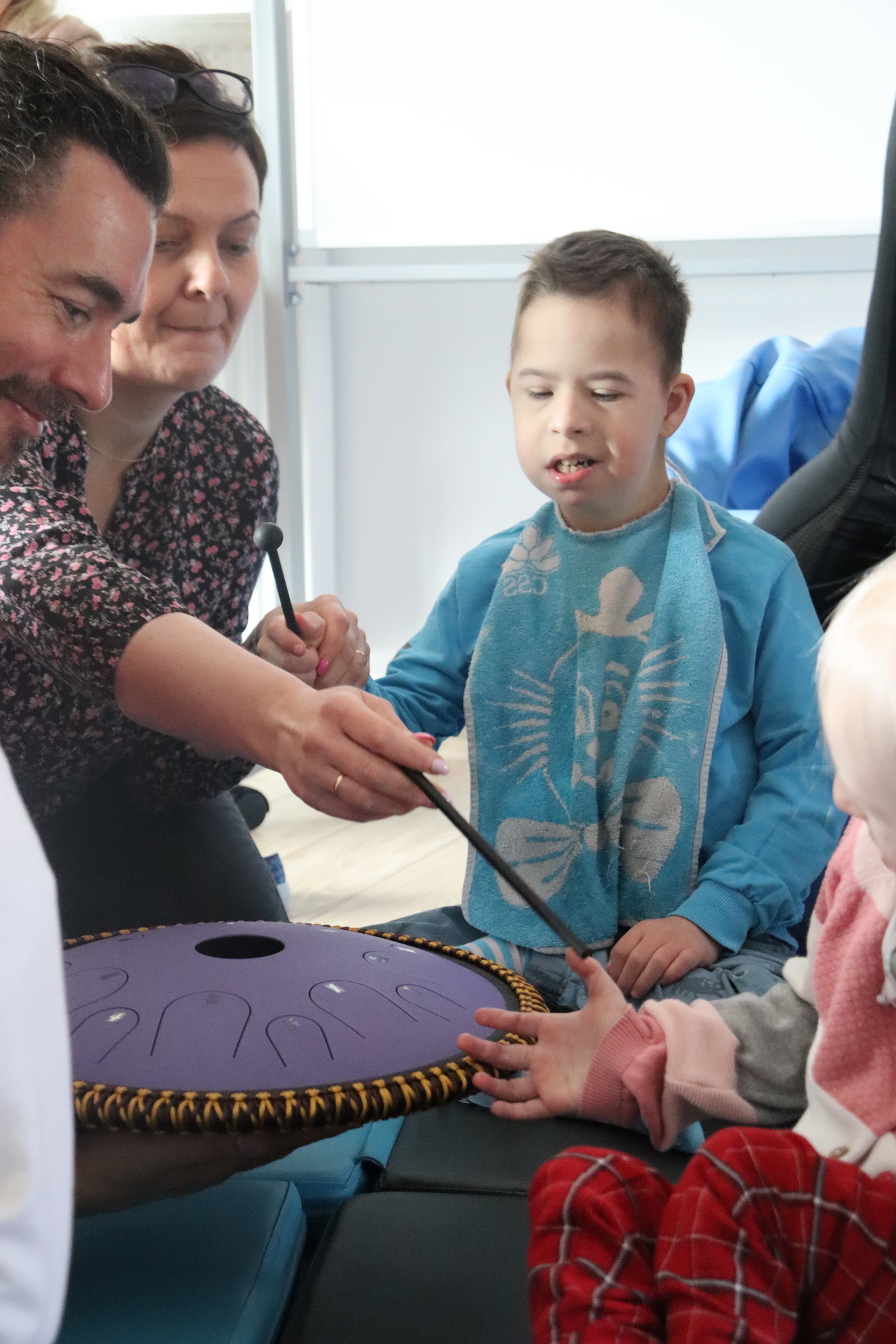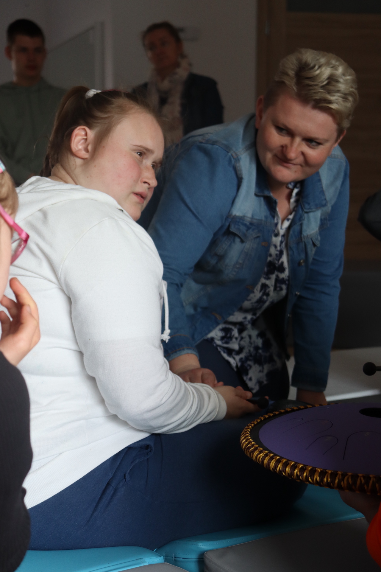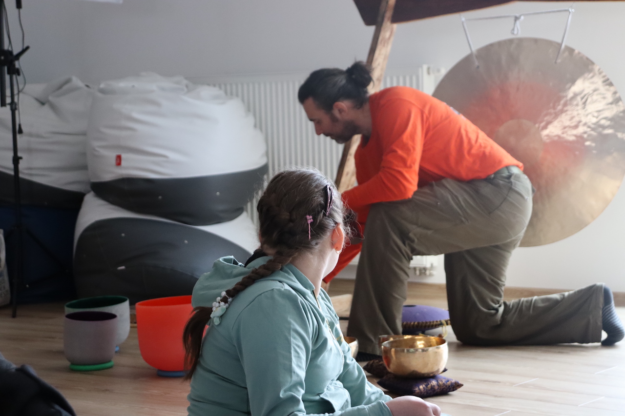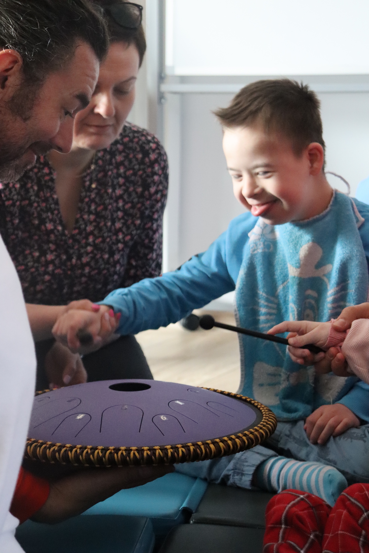 Podczas kwietniowych zajęć terapii dźwiękiem uczniowie naszej szkoły grali na misach tybetańskich i cymbałach. Praca z misami wyrabia zdolności manualne, poprawia koncentrację, uczy spokoju i opanowania, a także kształtuje systematyczność zachowań.