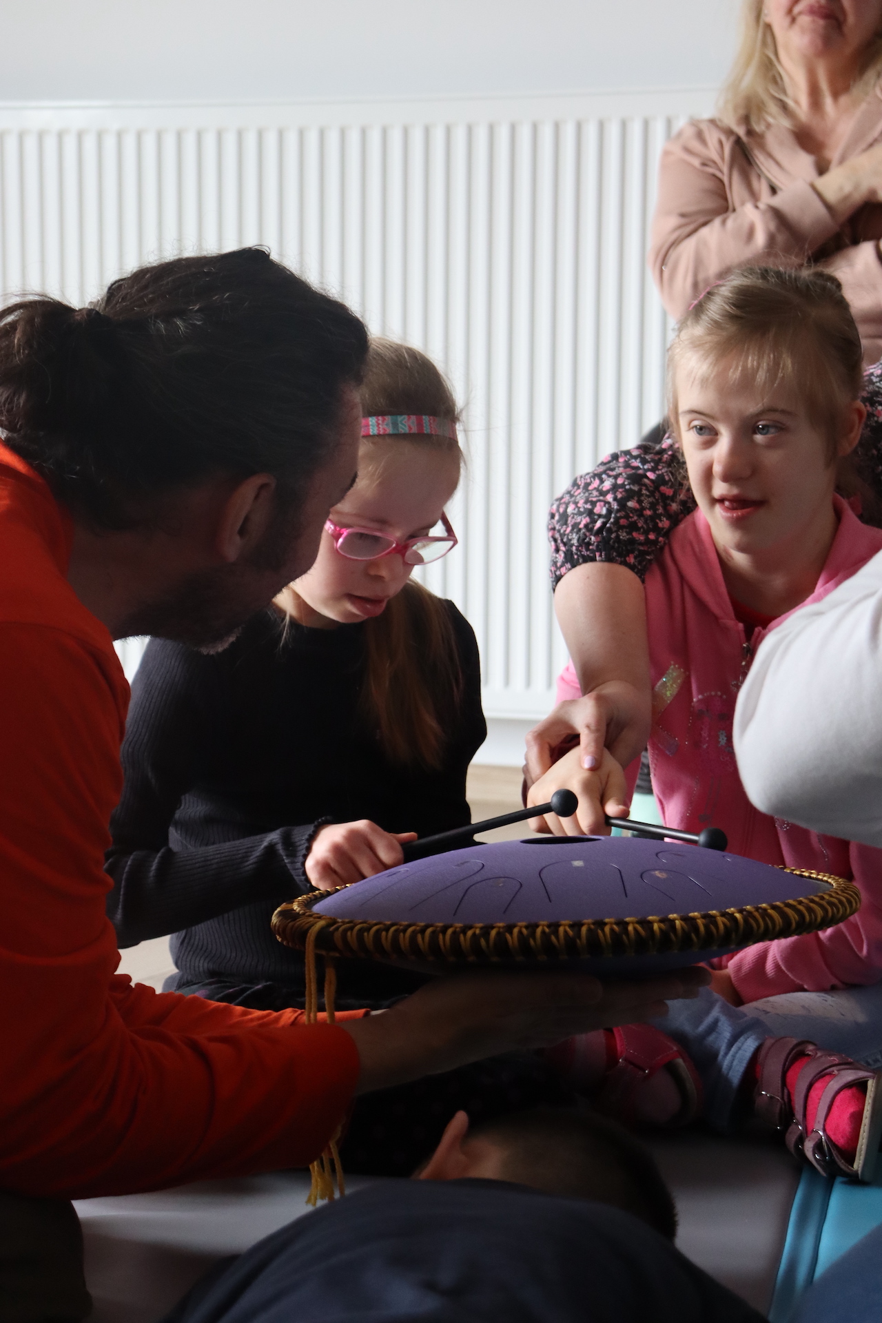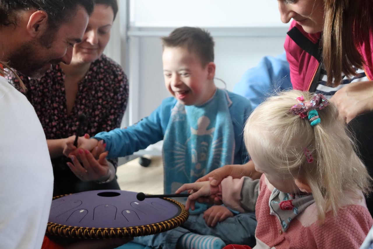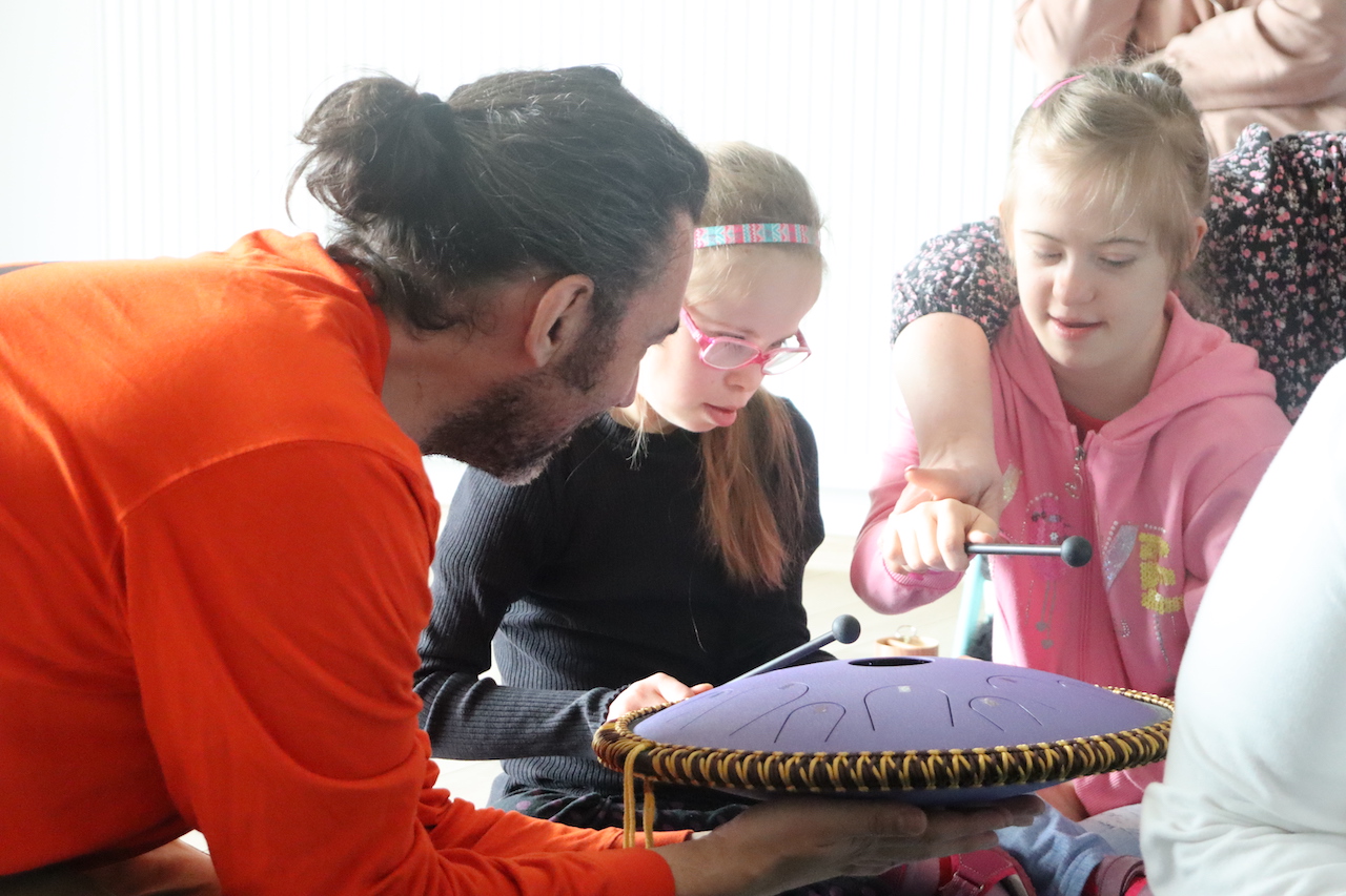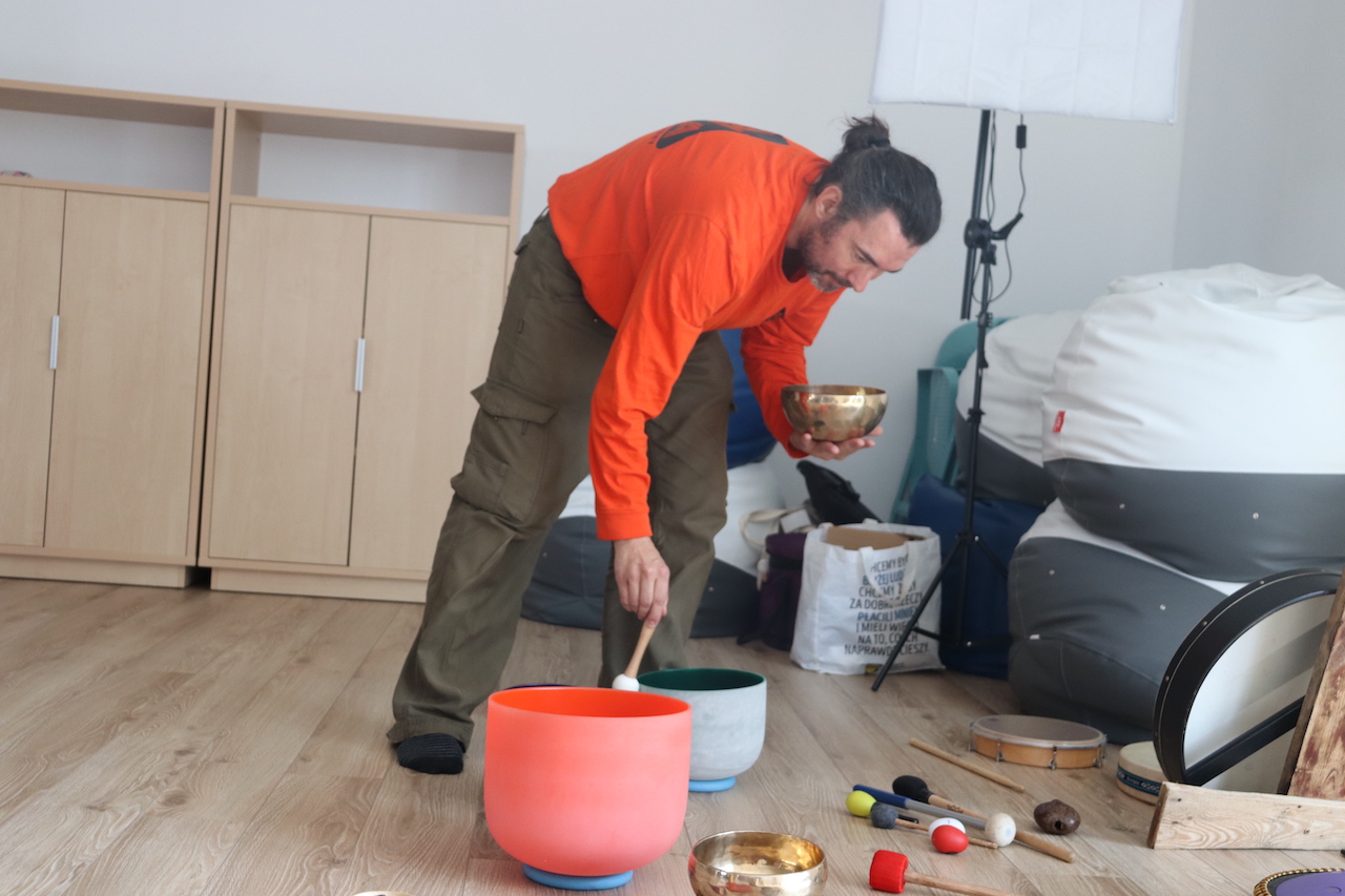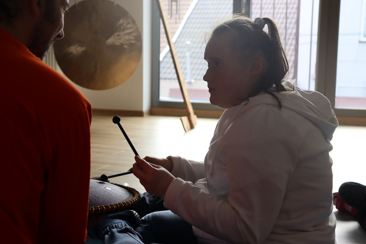 Podczas kwietniowych zajęć terapii dźwiękiem uczniowie naszej szkoły grali na misach tybetańskich i cymbałach. Praca z misami wyrabia zdolności manualne, poprawia koncentrację, uczy spokoju i opanowania, a także kształtuje systematyczność zachowań.