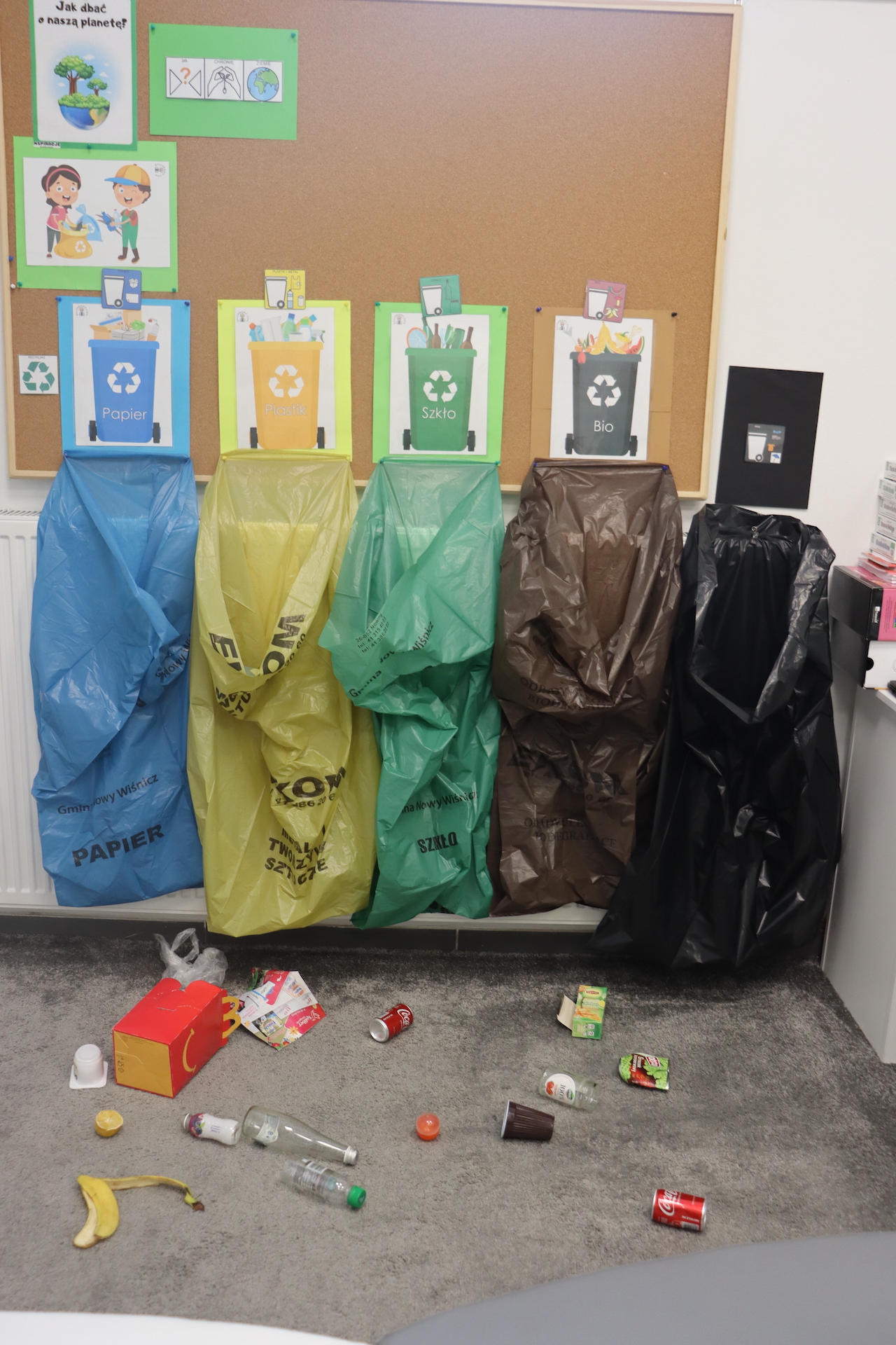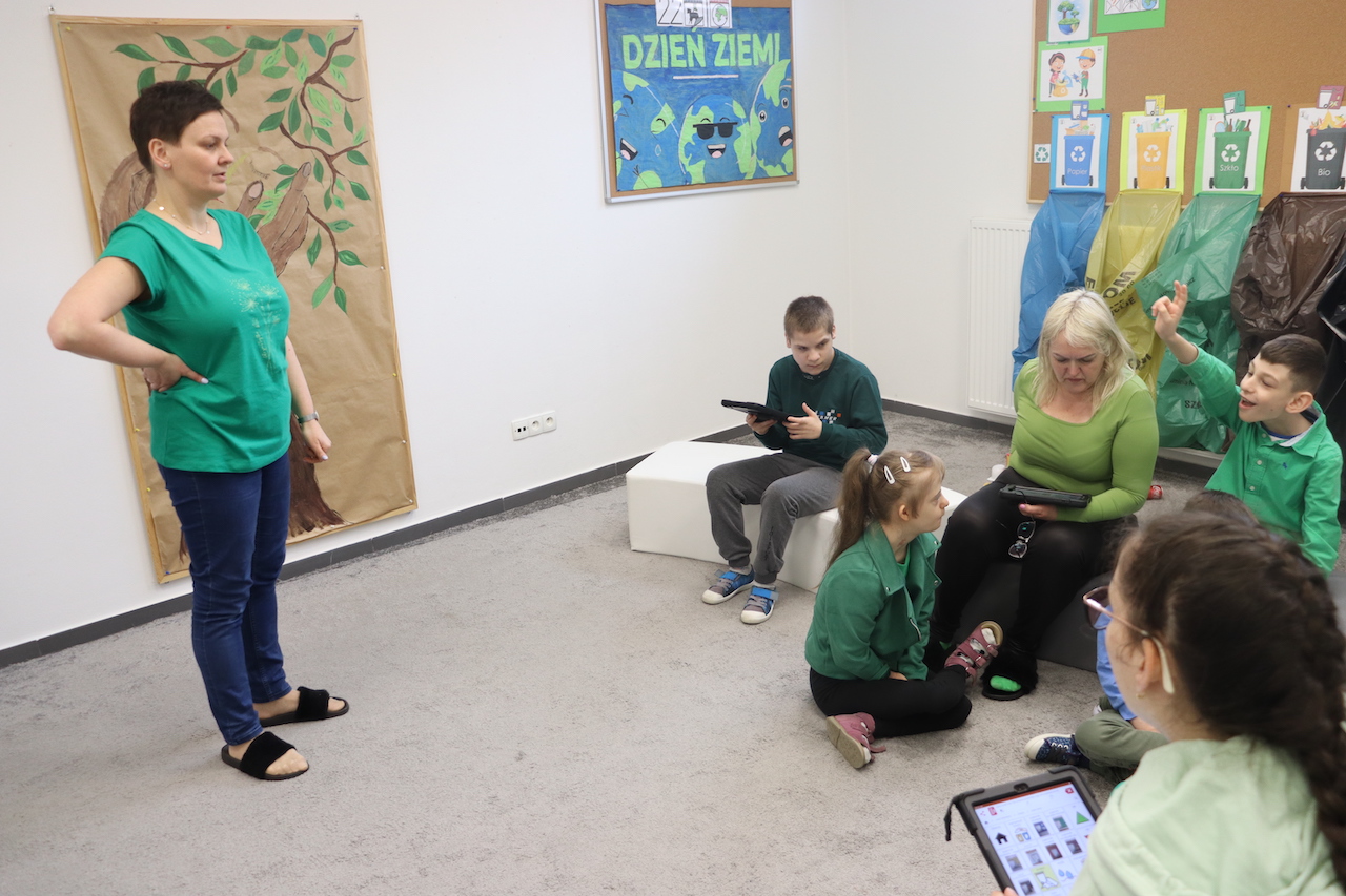 W dniu 20 kwietnia w związku ze zbliżającym się „Dniem Ziemi”, uczniowie naszej szkoły wzięli udział w zajęciach edukacyjnych poświeconych utrwaleniu wiedzy na temat chronienia naszej planety ziemi. Segregowali śmieci, układali kodeks małego ekologa oraz grali w gry ekologiczne na szkolnym dywanie interaktywnym. Poprzez te zajęcia kształtowana była postawa proekologiczna oraz świadomość występowania czynników szkodliwych dla zdrowia i środowiska.