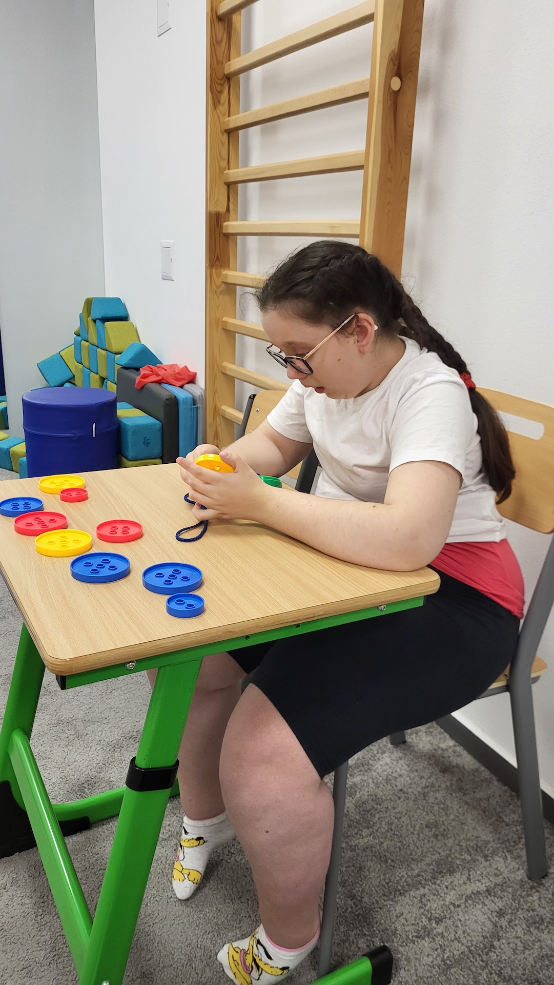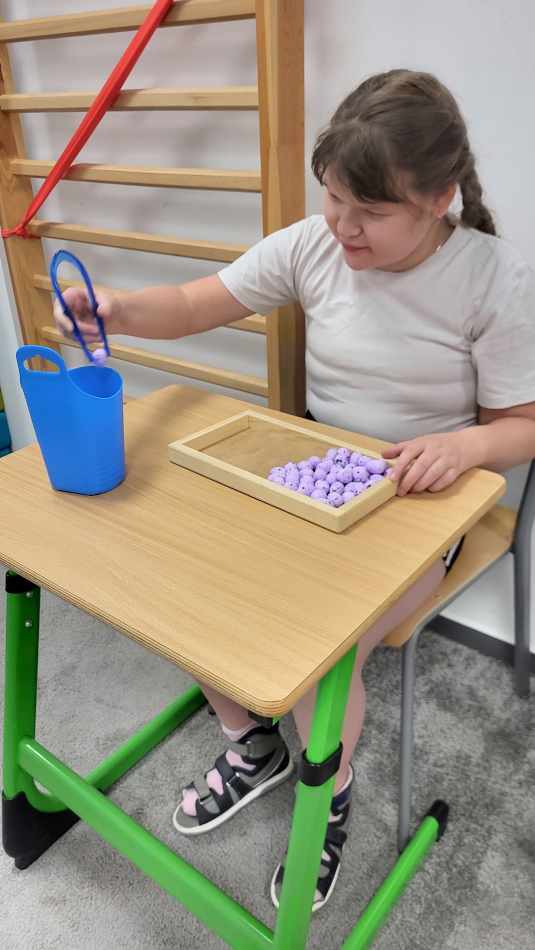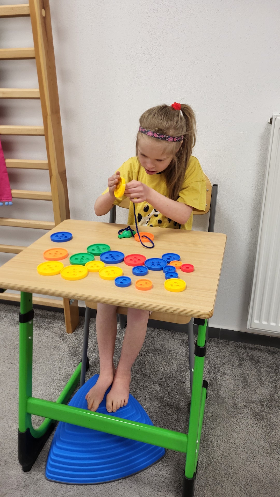 Doskonalenie motoryki małej - chwyt pensetowy jako formy usprawniania ruchowego z wykorzystaniem różnych przedmiotów takich jak: guzki, spinacze do odzieży, jajeczka styropianowe.