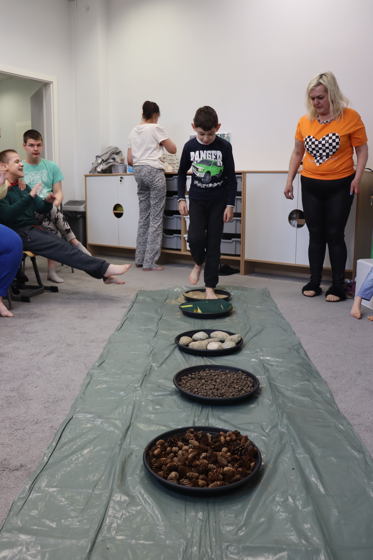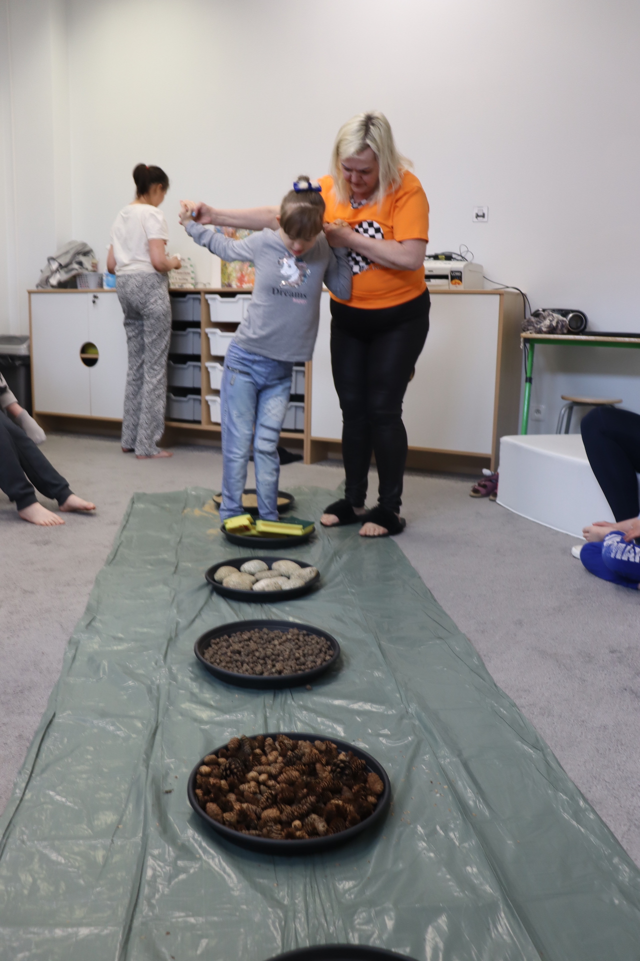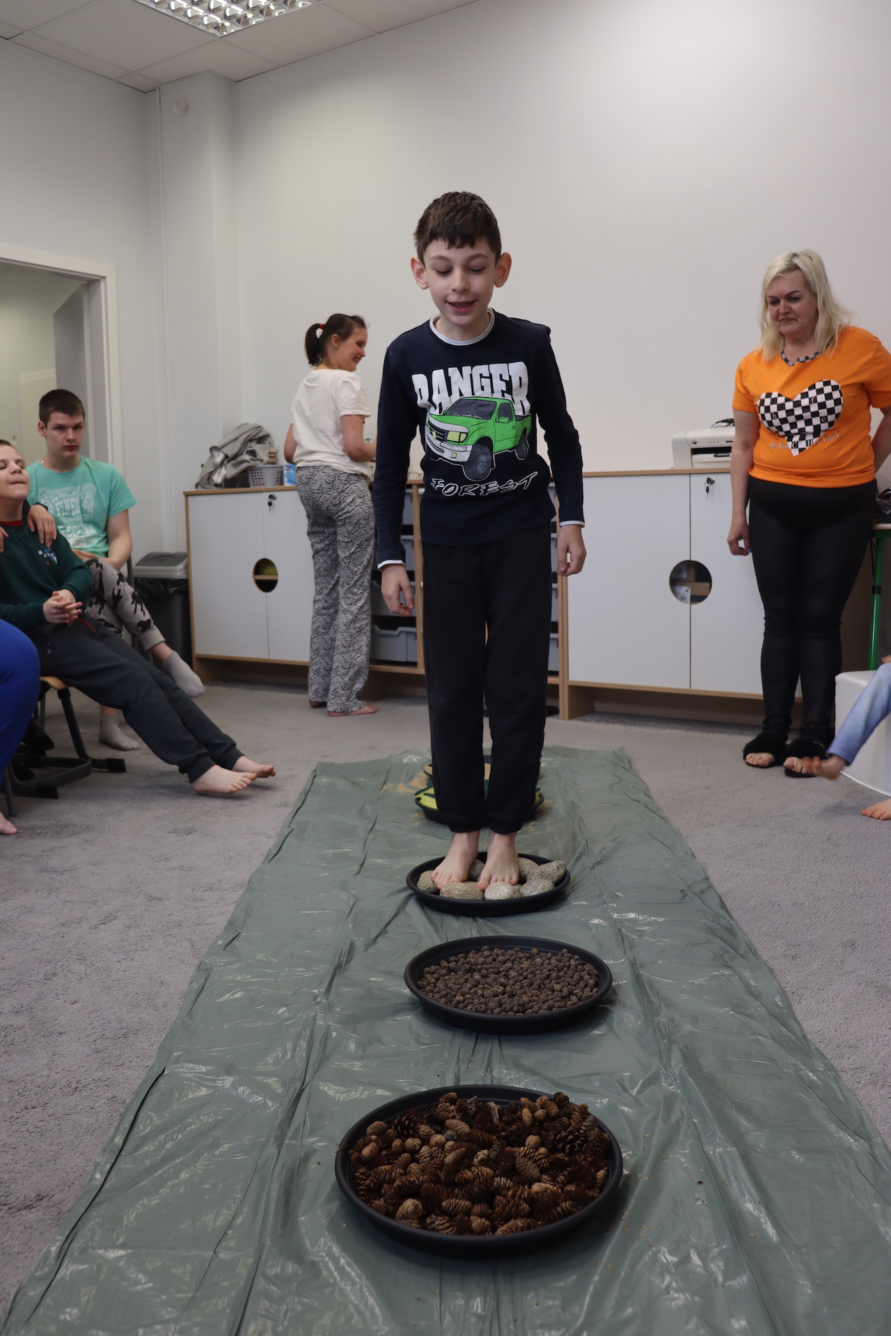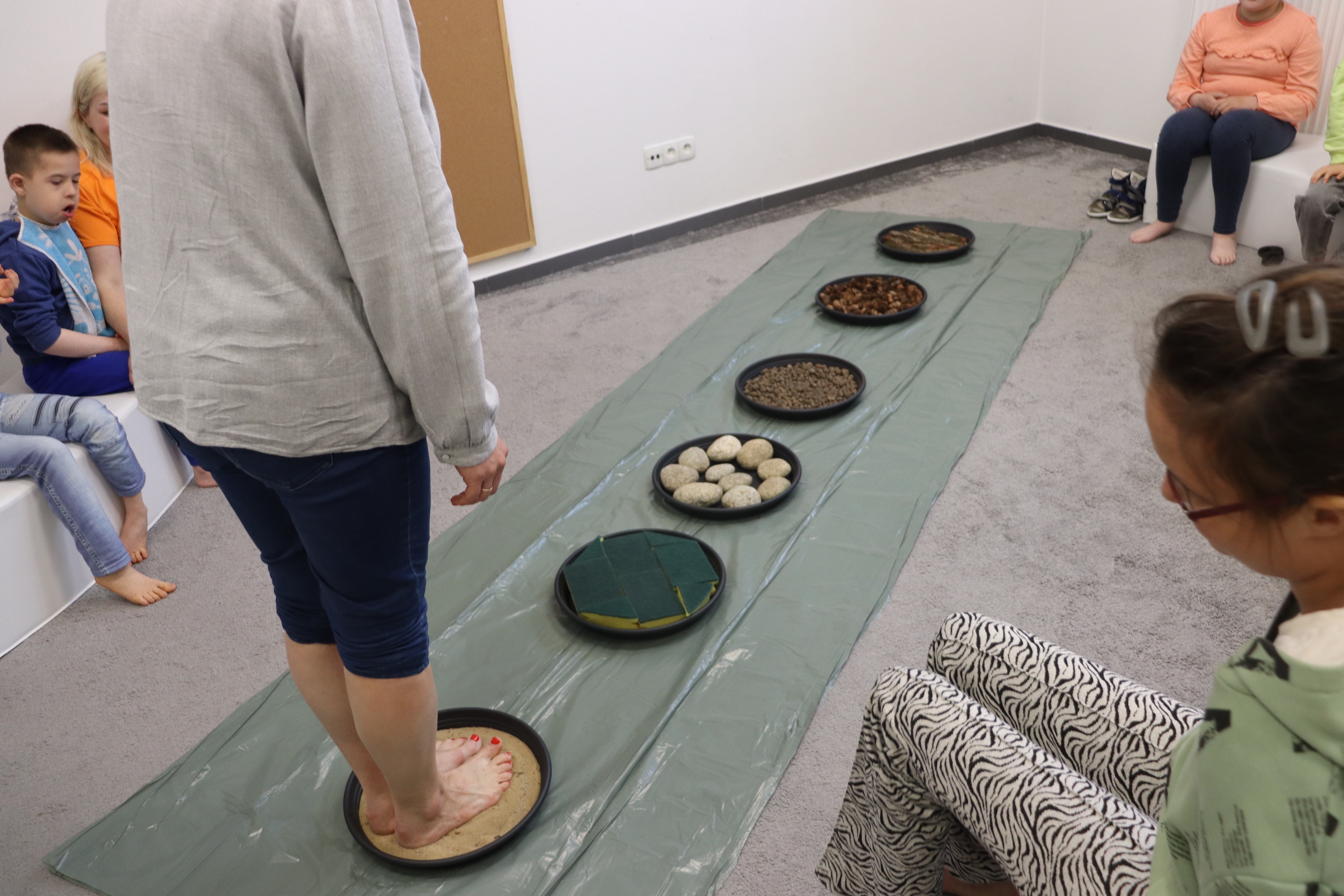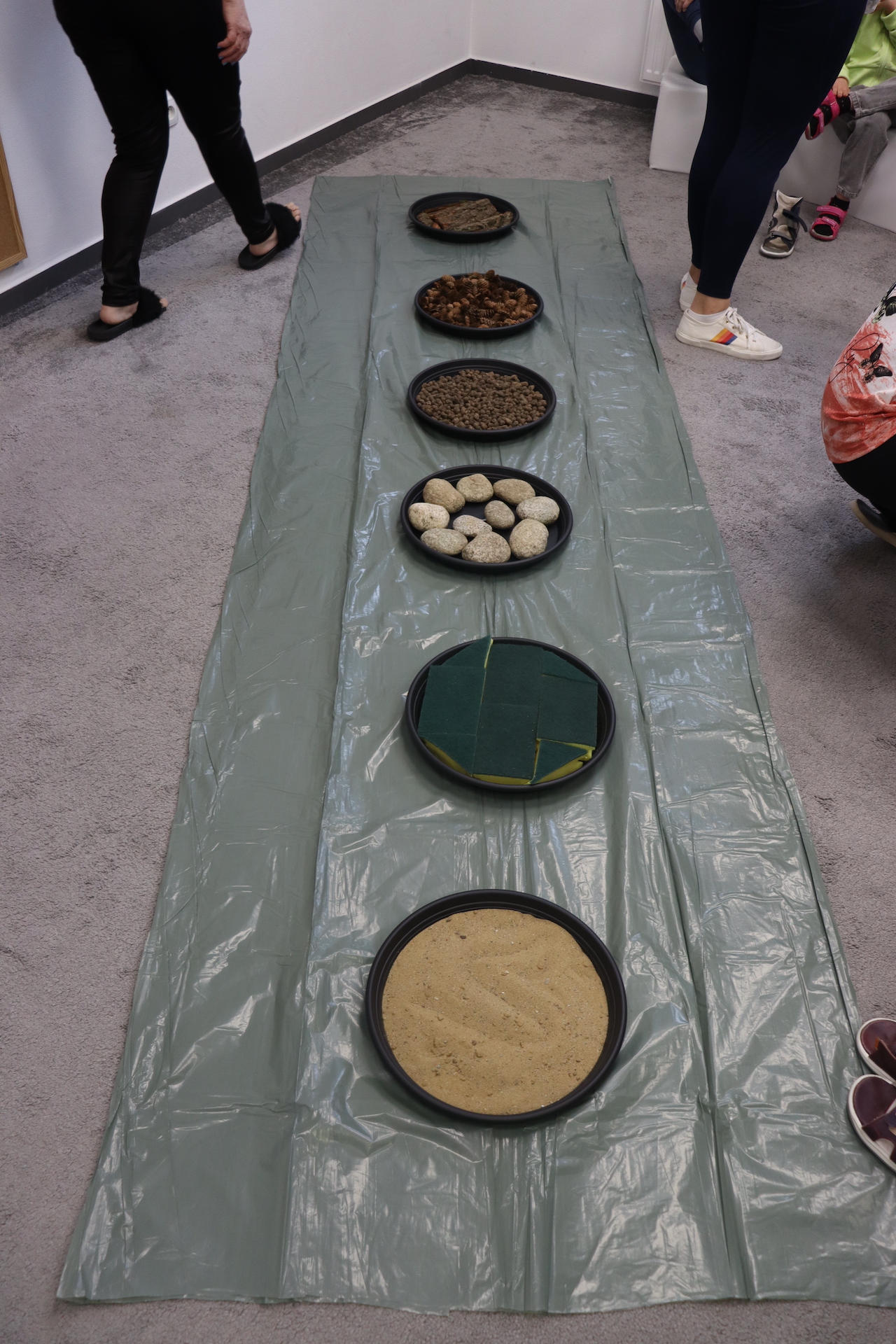Ostanie zadanie z Ogólnopolskiego Projektu Edukacyjnego „Gramy Zmysłami” brzmiało: „ścieżka sensoryczna”. Uczniowie naszej szkoły wspólnie z nauczycielami wykonali wspomnianą ścieżkę z kamieni, piasku, szyszek, drenażu do kwiatków, gąbki i kory. Potem każdy odważnie przeszedł bosymi stopami przez przygotowaną ścieżkę, która dostarczyła nam różnorodnych bodźców, jak również pobudziła percepcję wzrokowo–ruchową, i kształtując właściwą reakcję na dotyk. Ćwiczyliśmy dzięki temu sprawność motoryczną, równowagę, koordynację ruchową, percepcję wzrokową oraz planowanie ruchu.