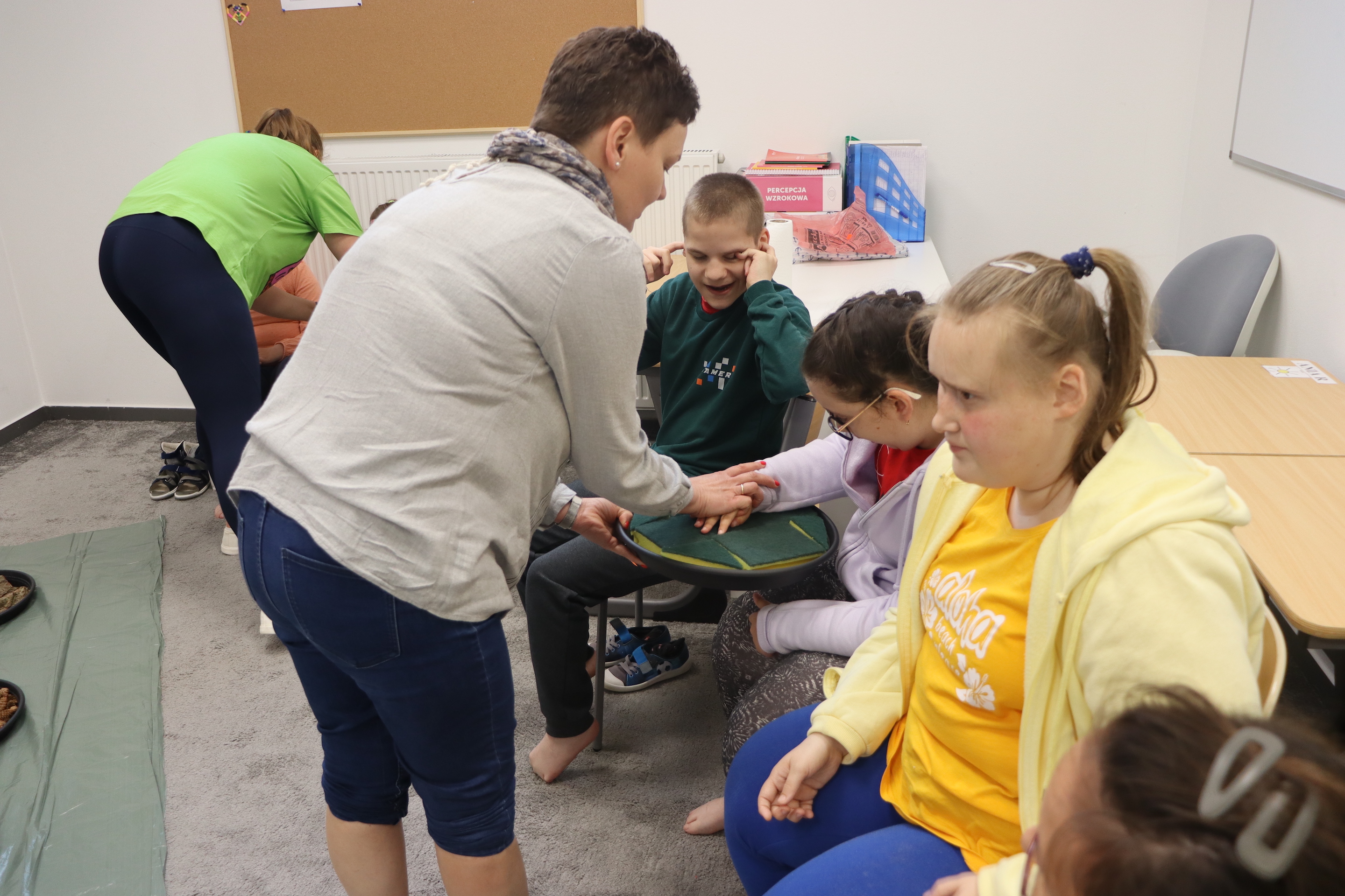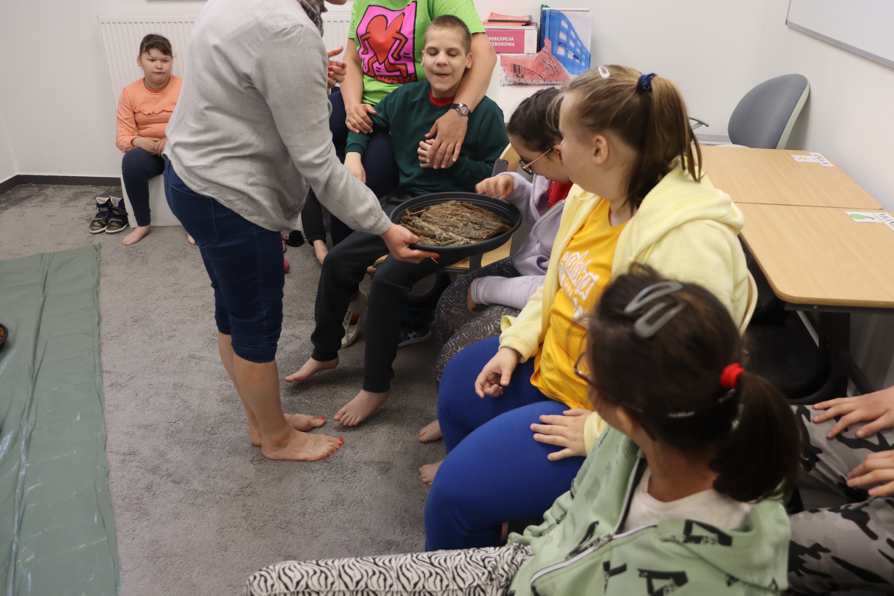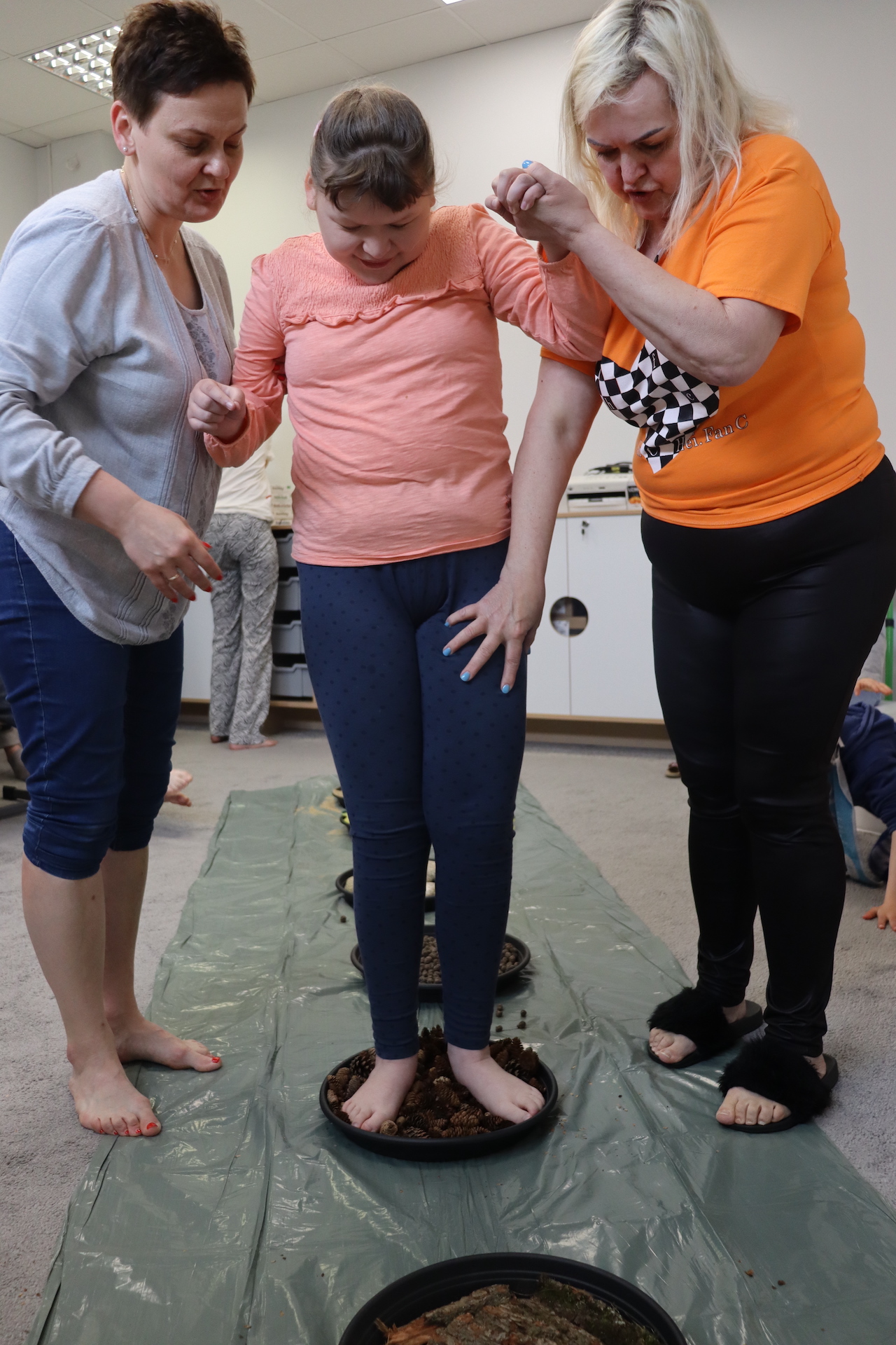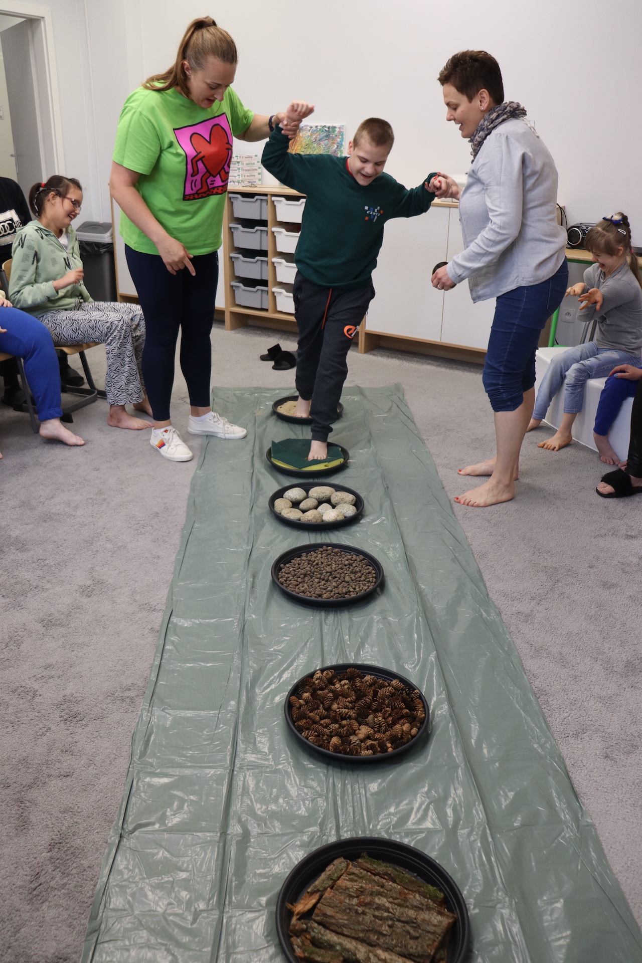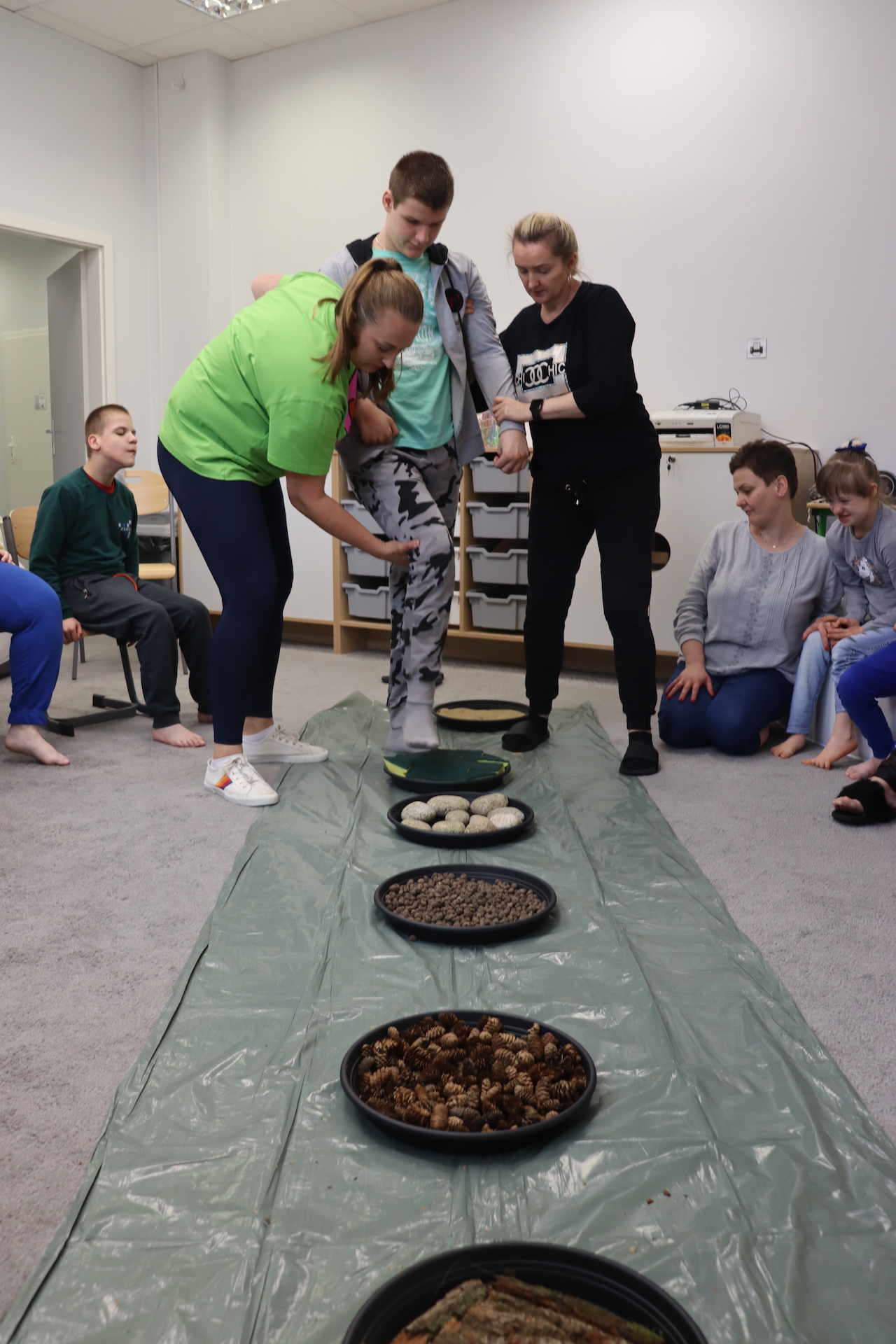 Ostanie zadanie z Ogólnopolskiego Projektu Edukacyjnego „Gramy Zmysłami” brzmiało: „ścieżka sensoryczna”. Uczniowie naszej szkoły wspólnie z nauczycielami wykonali wspomnianą ścieżkę z kamieni, piasku, szyszek, drenażu do kwiatków, gąbki i kory. Potem każdy odważnie przeszedł bosymi stopami przez przygotowaną ścieżkę, która dostarczyła nam różnorodnych bodźców, jak również pobudziła percepcję wzrokowo–ruchową, i kształtując właściwą reakcję na dotyk. Ćwiczyliśmy dzięki temu sprawność motoryczną, równowagę, koordynację ruchową, percepcję wzrokową oraz planowanie ruchu.