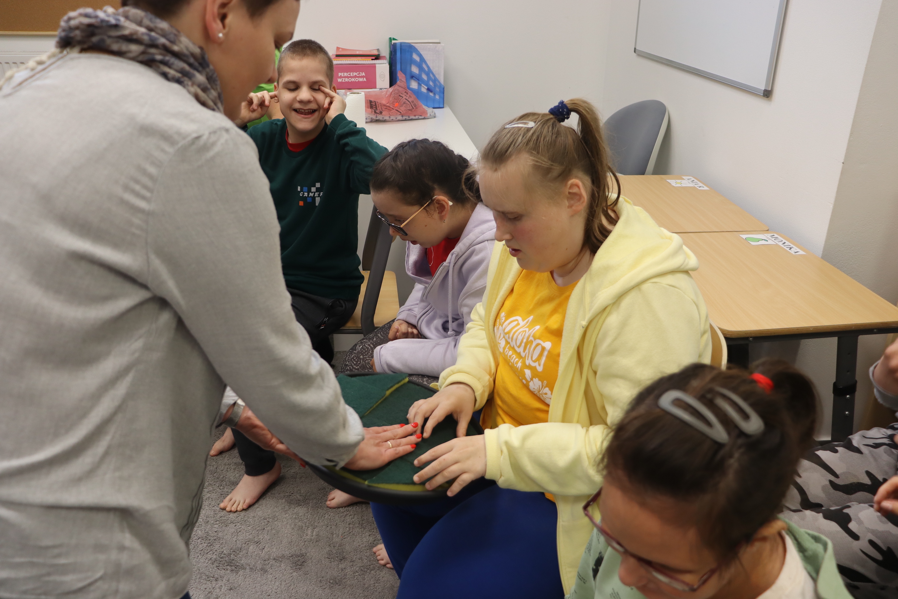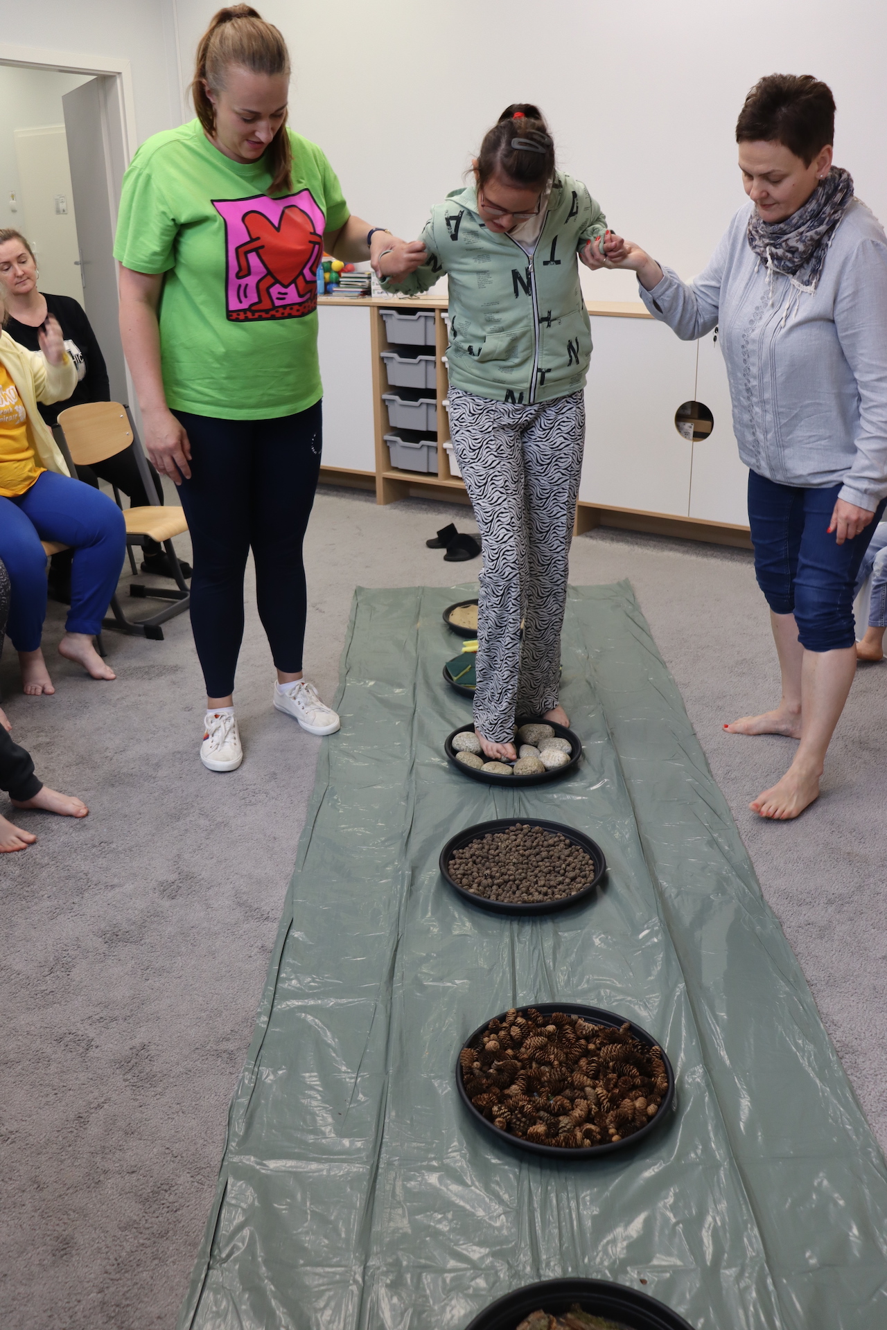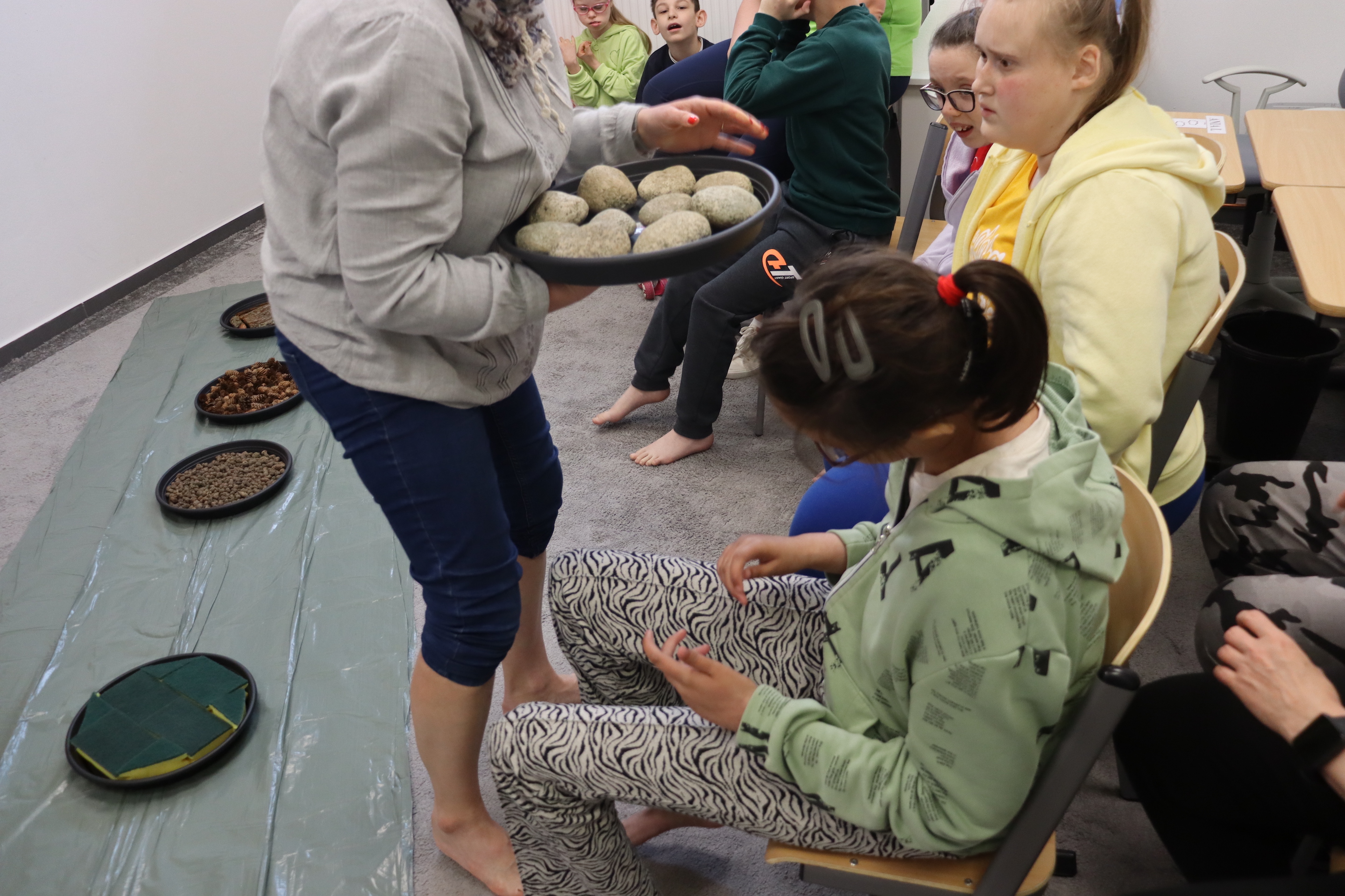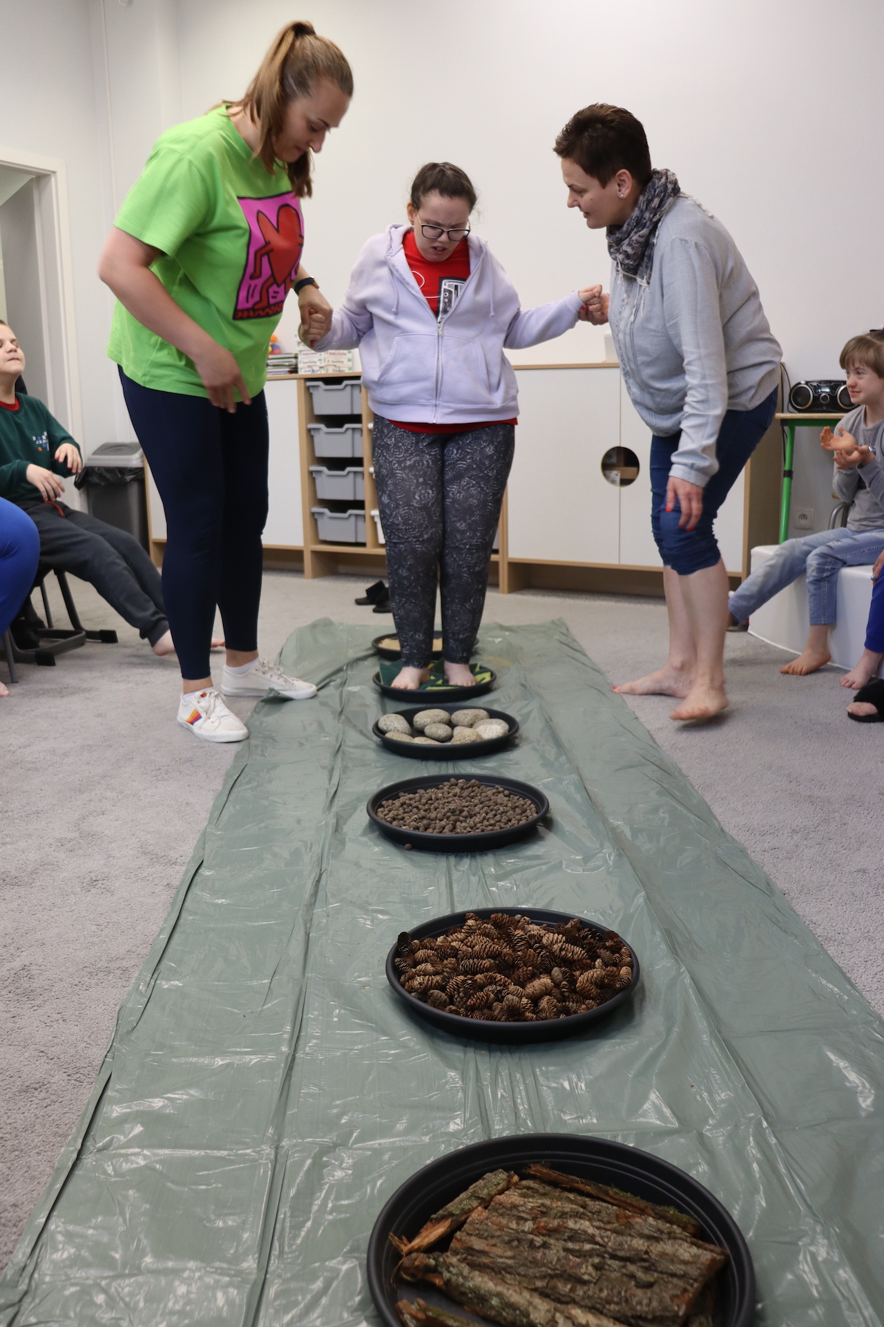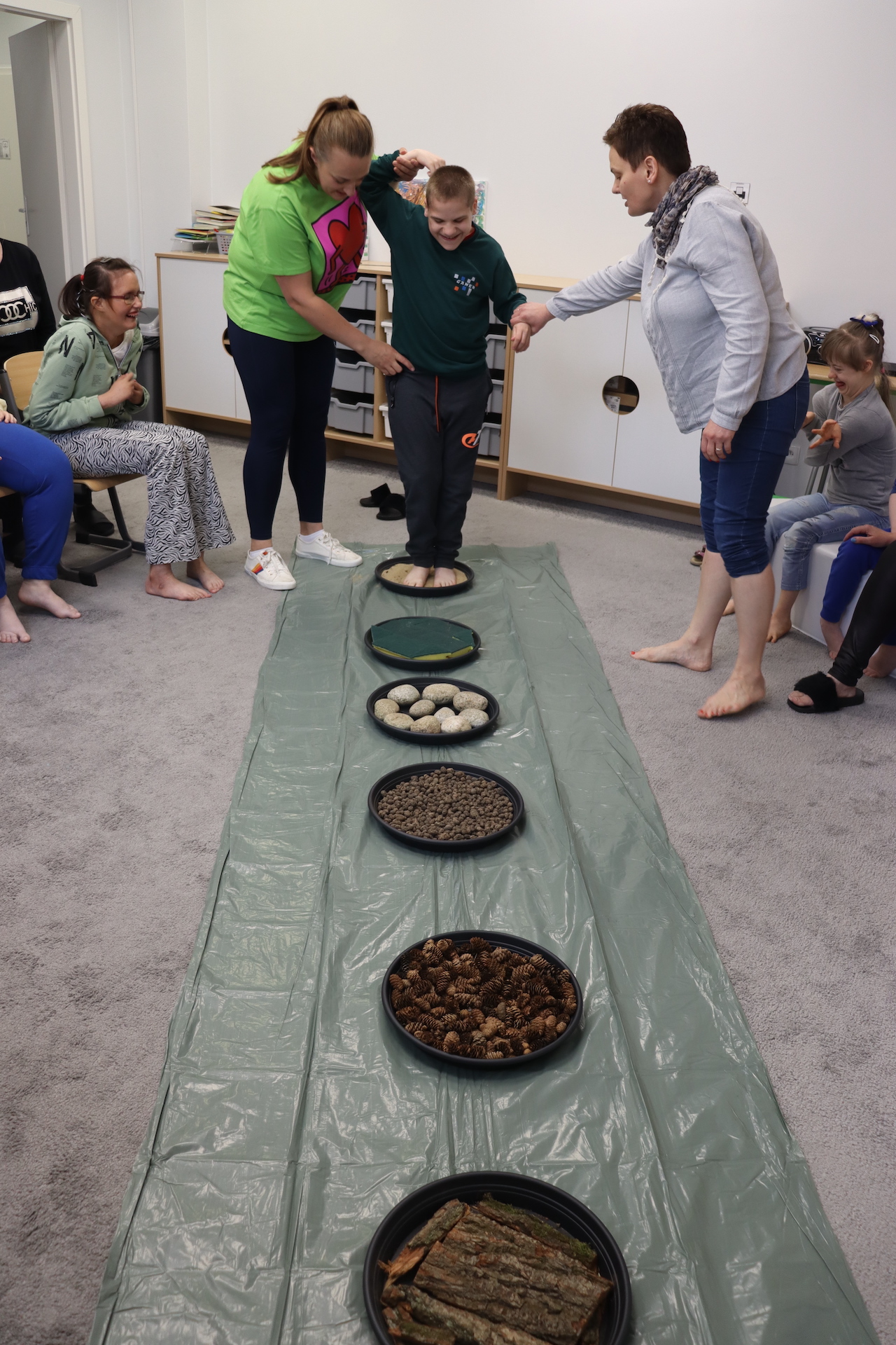 Ostanie zadanie z Ogólnopolskiego Projektu Edukacyjnego „Gramy Zmysłami” brzmiało: „ścieżka sensoryczna”. Uczniowie naszej szkoły wspólnie z nauczycielami wykonali wspomnianą ścieżkę z kamieni, piasku, szyszek, drenażu do kwiatków, gąbki i kory. Potem każdy odważnie przeszedł bosymi stopami przez przygotowaną ścieżkę, która dostarczyła nam różnorodnych bodźców, jak również pobudziła percepcję wzrokowo–ruchową, i kształtując właściwą reakcję na dotyk. Ćwiczyliśmy dzięki temu sprawność motoryczną, równowagę, koordynację ruchową, percepcję wzrokową oraz planowanie ruchu.