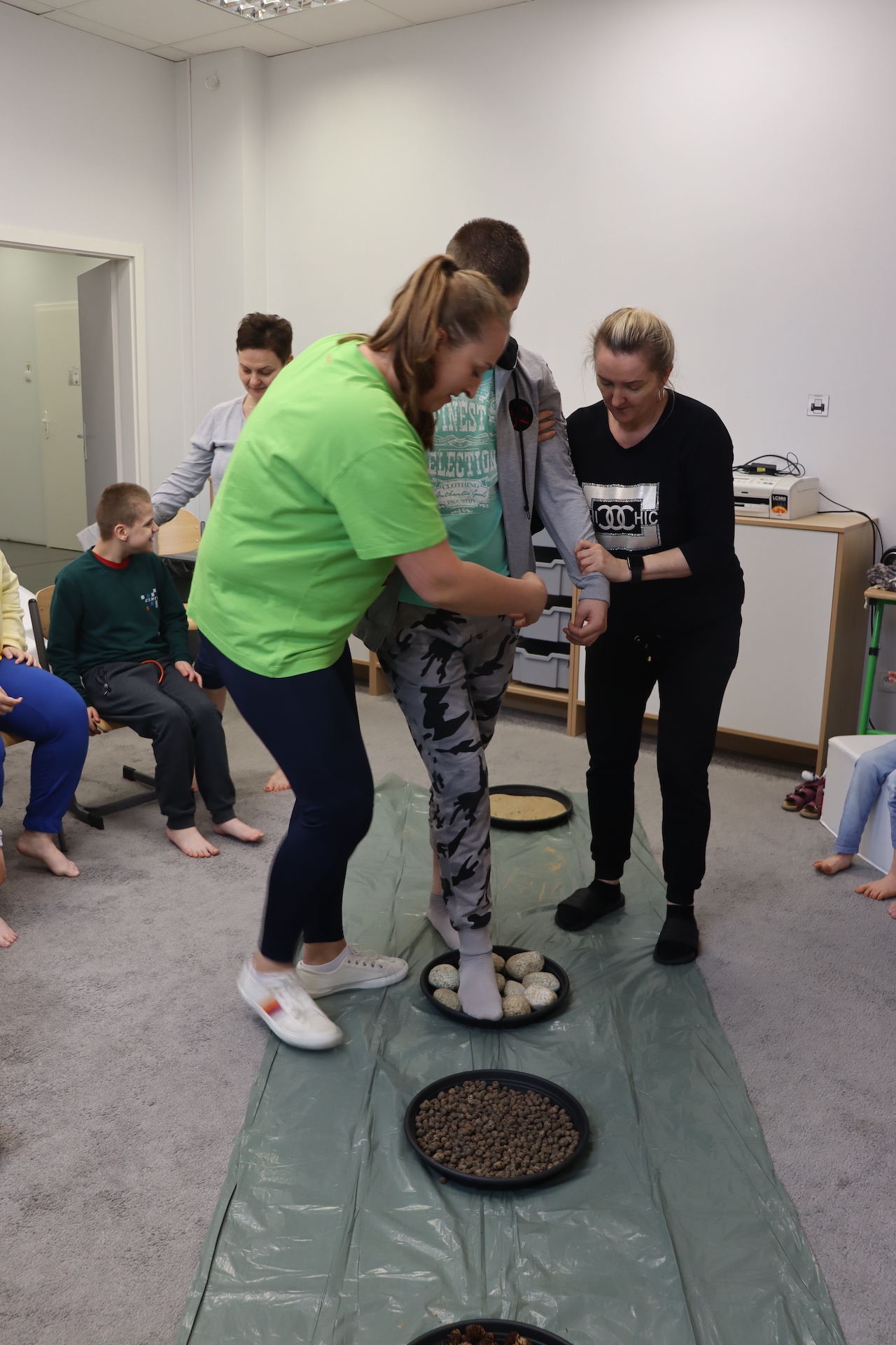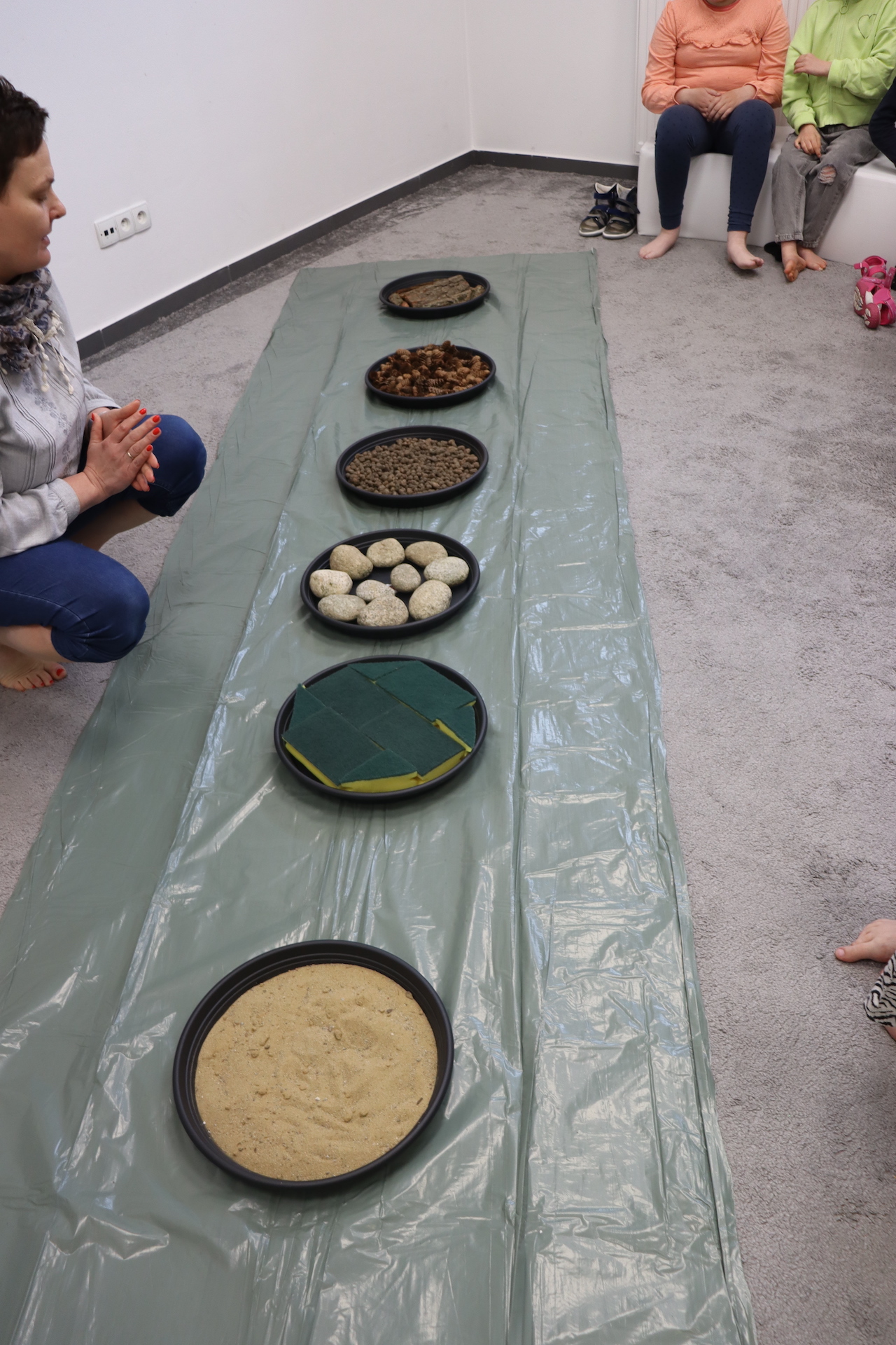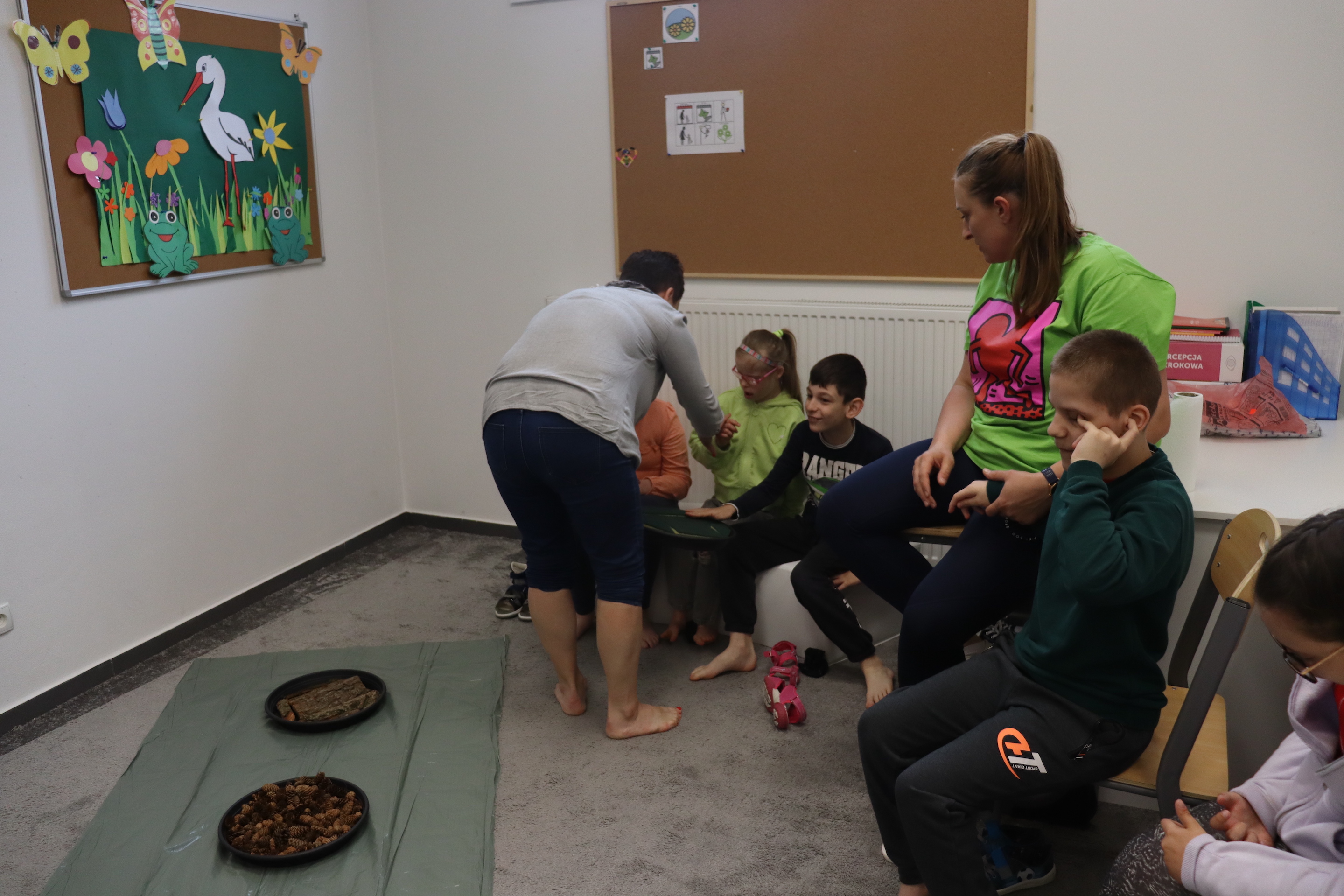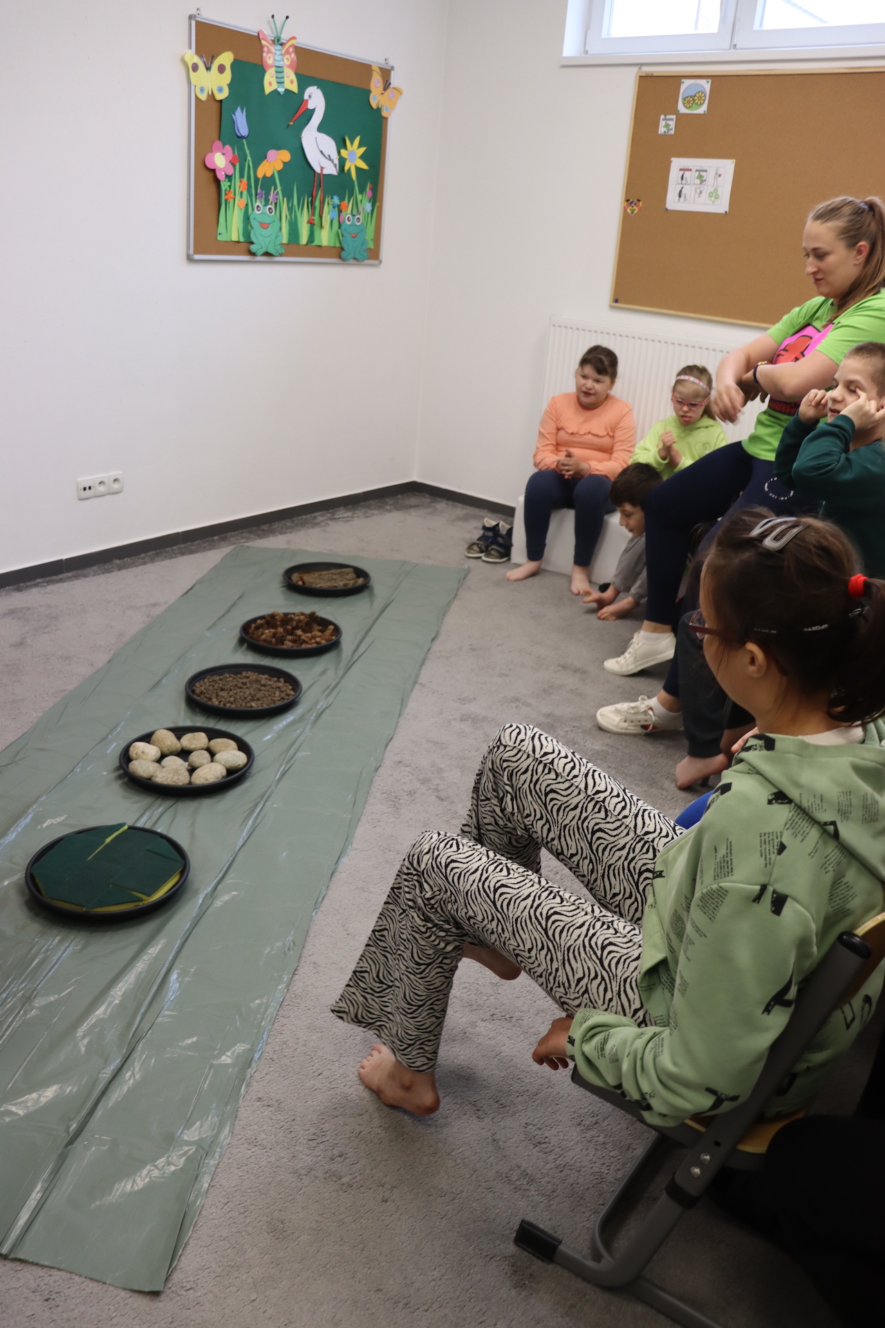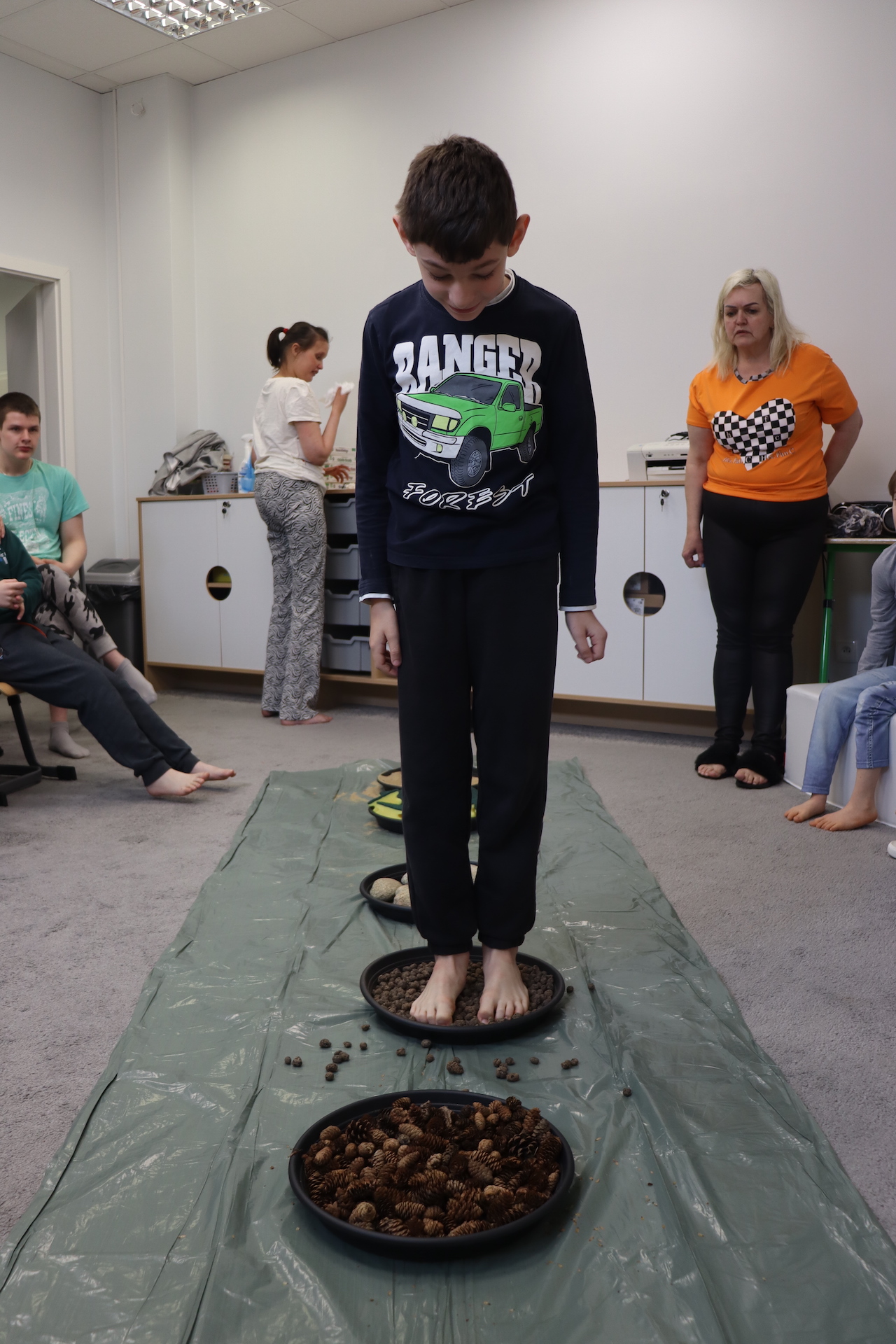 Ostanie zadanie z Ogólnopolskiego Projektu Edukacyjnego „Gramy Zmysłami” brzmiało: „ścieżka sensoryczna”. Uczniowie naszej szkoły wspólnie z nauczycielami wykonali wspomnianą ścieżkę z kamieni, piasku, szyszek, drenażu do kwiatków, gąbki i kory. Potem każdy odważnie przeszedł bosymi stopami przez przygotowaną ścieżkę, która dostarczyła nam różnorodnych bodźców, jak również pobudziła percepcję wzrokowo–ruchową, i kształtując właściwą reakcję na dotyk. Ćwiczyliśmy dzięki temu sprawność motoryczną, równowagę, koordynację ruchową, percepcję wzrokową oraz planowanie ruchu.