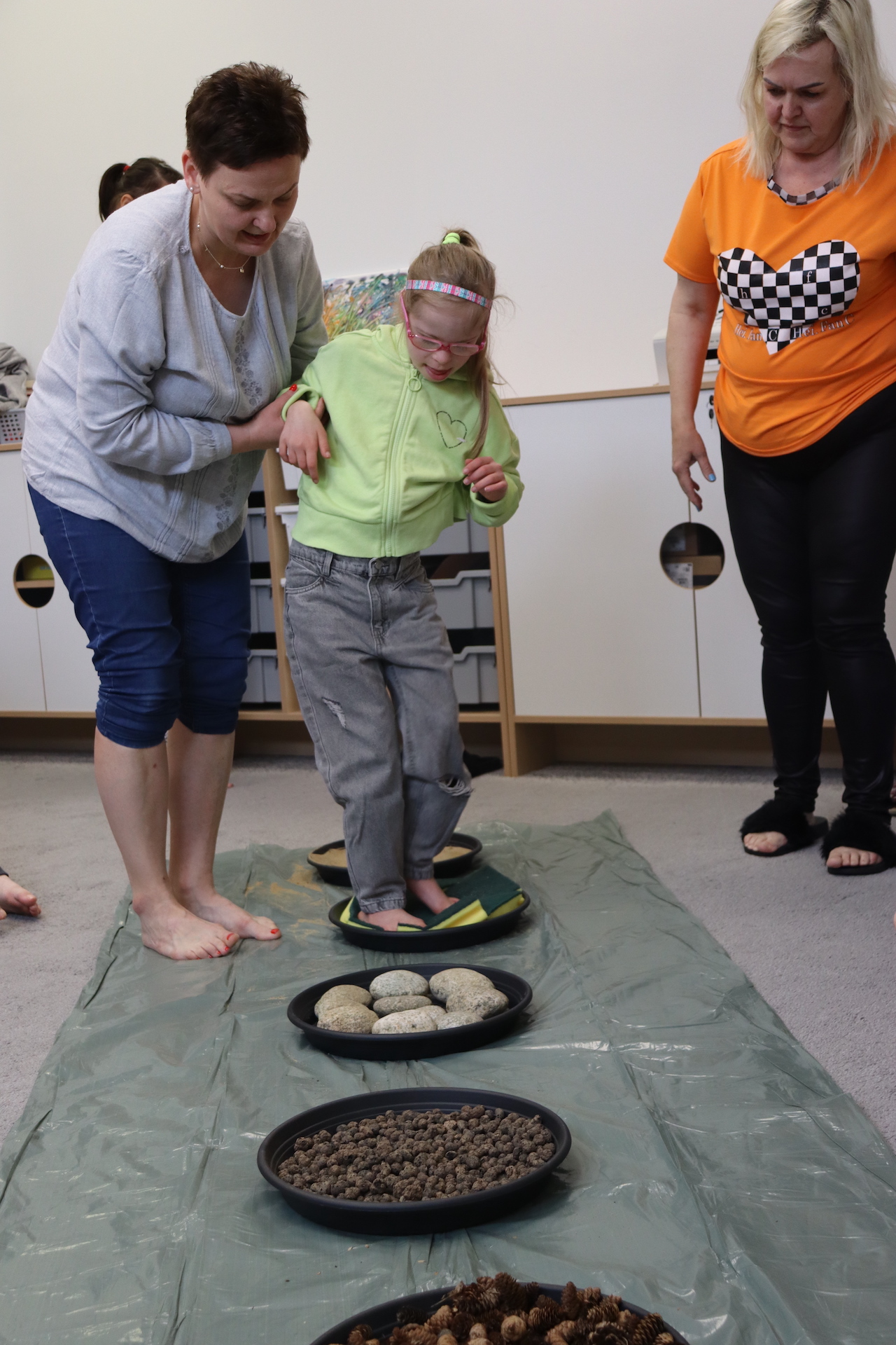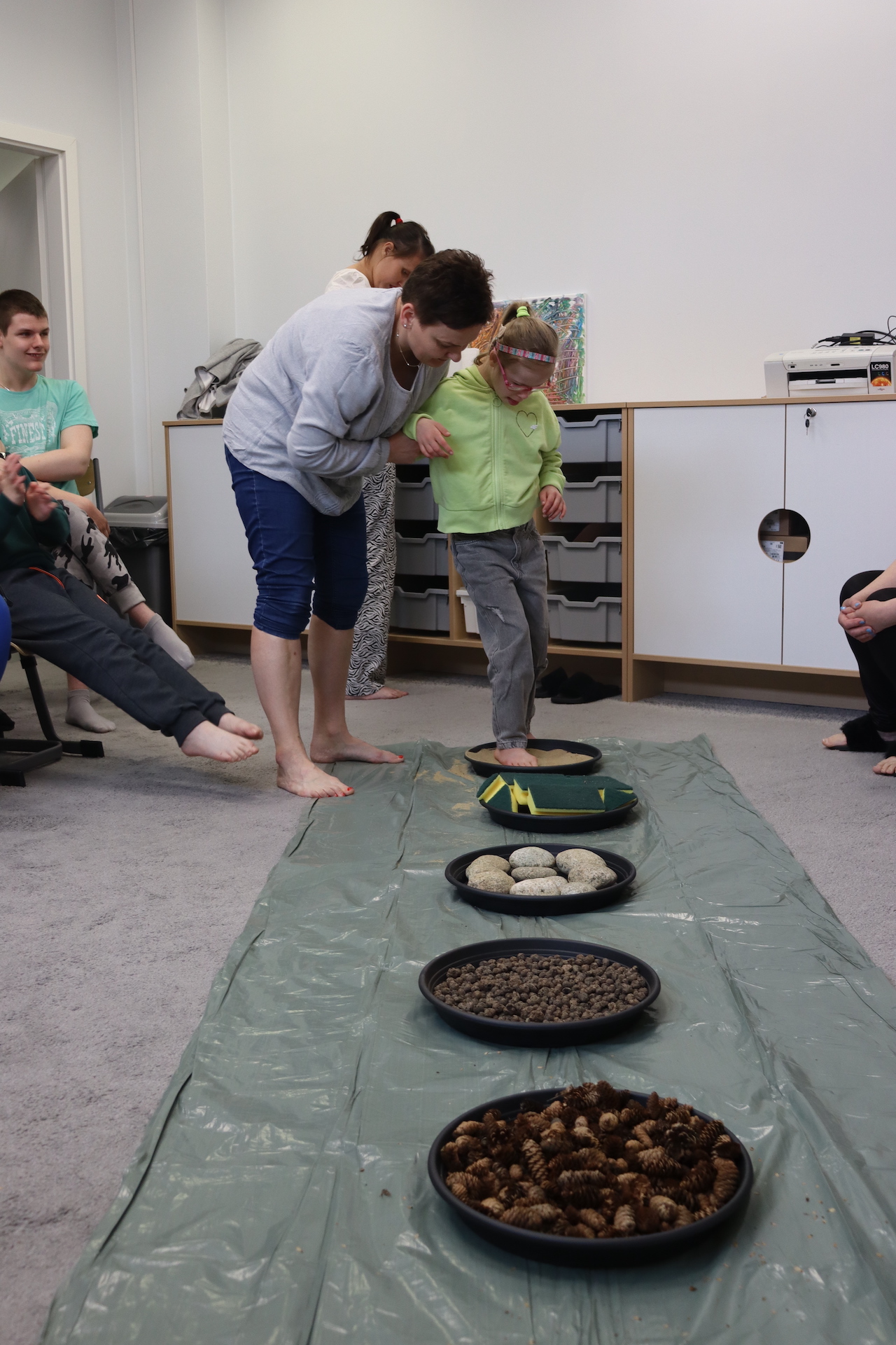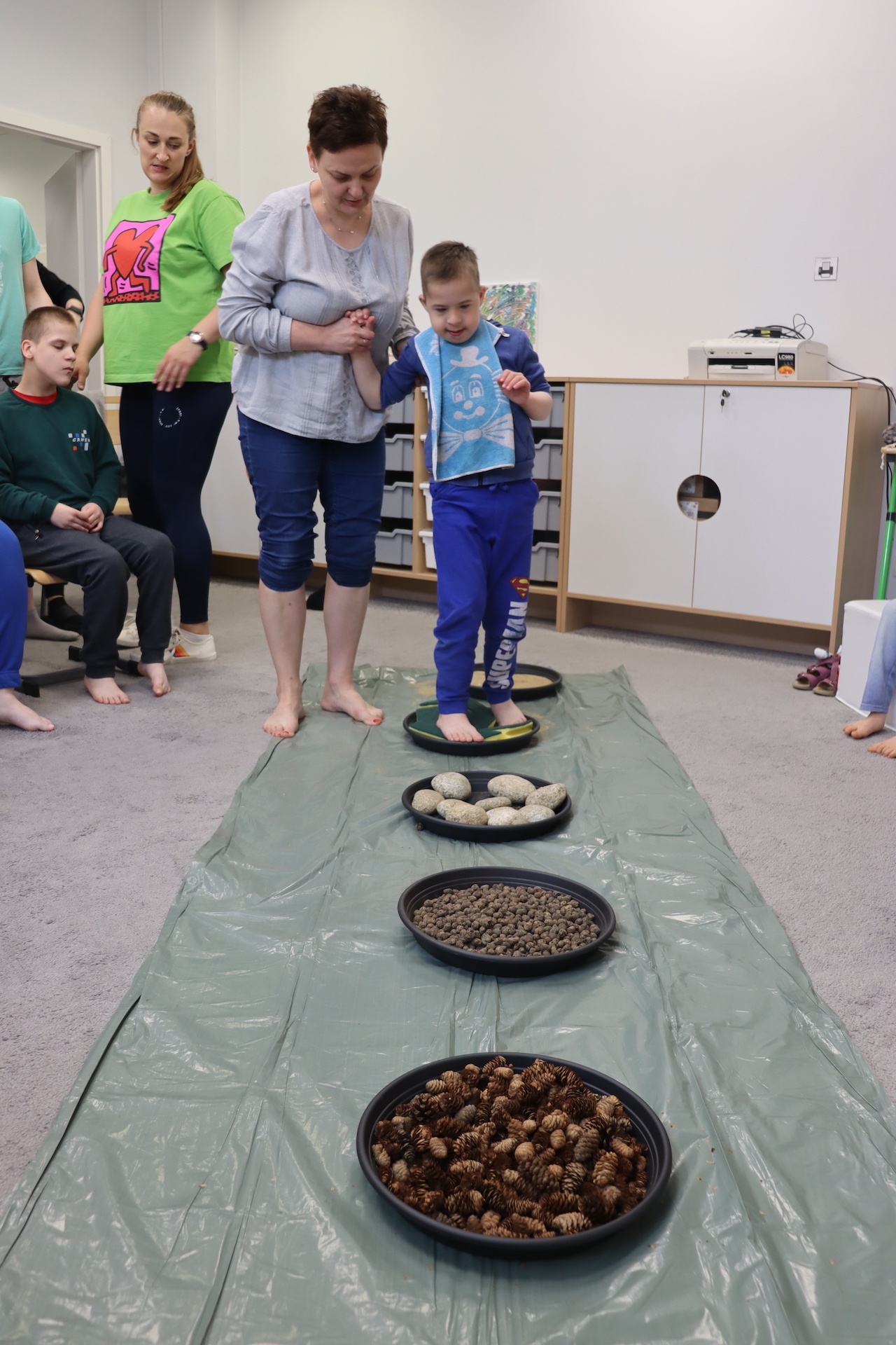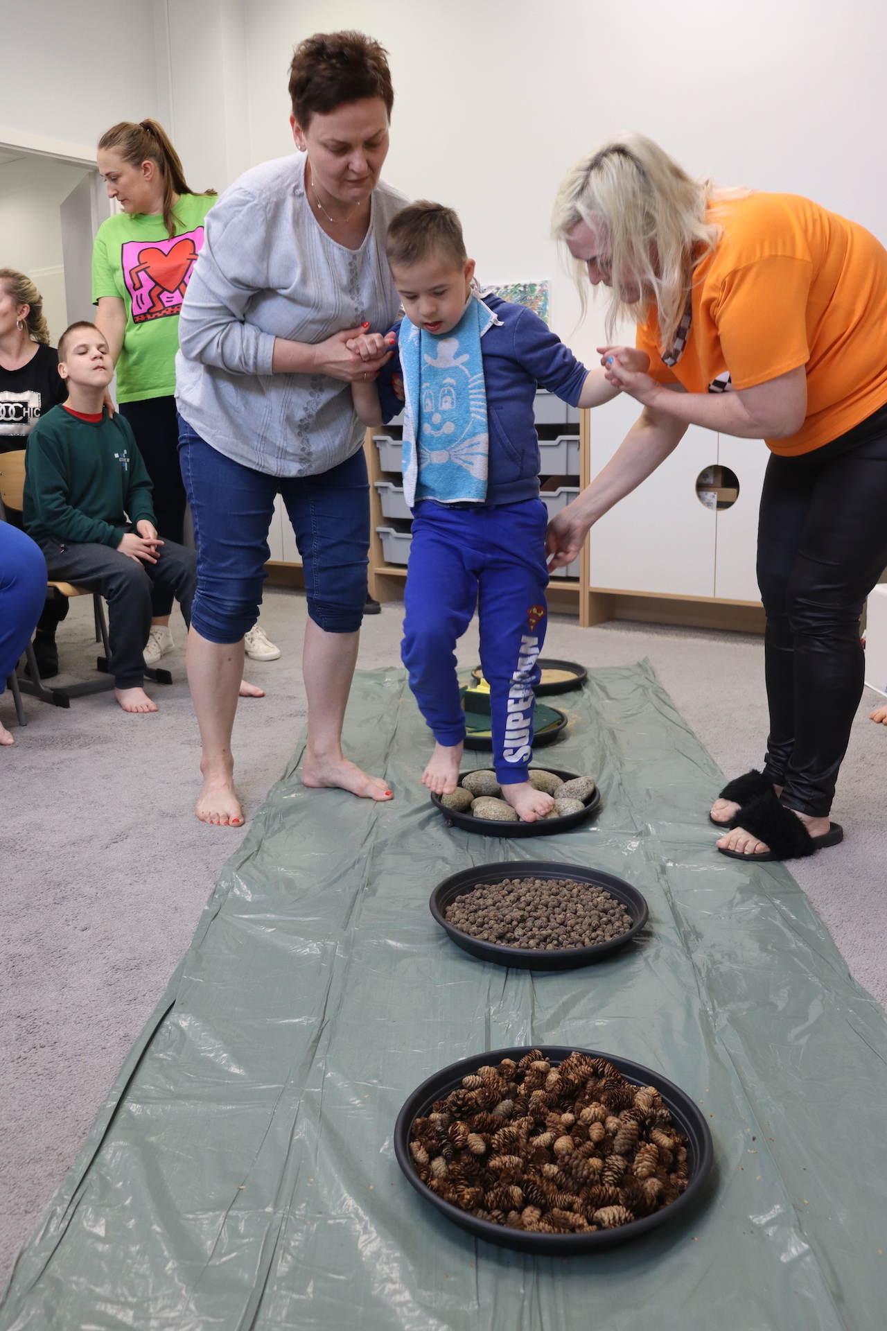Ostanie zadanie z Ogólnopolskiego Projektu Edukacyjnego „Gramy Zmysłami” brzmiało: „ścieżka sensoryczna”. Uczniowie naszej szkoły wspólnie z nauczycielami wykonali wspomnianą ścieżkę z kamieni, piasku, szyszek, drenażu do kwiatków, gąbki i kory. Potem każdy odważnie przeszedł bosymi stopami przez przygotowaną ścieżkę, która dostarczyła nam różnorodnych bodźców, jak również pobudziła percepcję wzrokowo–ruchową, i kształtując właściwą reakcję na dotyk. Ćwiczyliśmy dzięki temu sprawność motoryczną, równowagę, koordynację ruchową, percepcję wzrokową oraz planowanie ruchu.