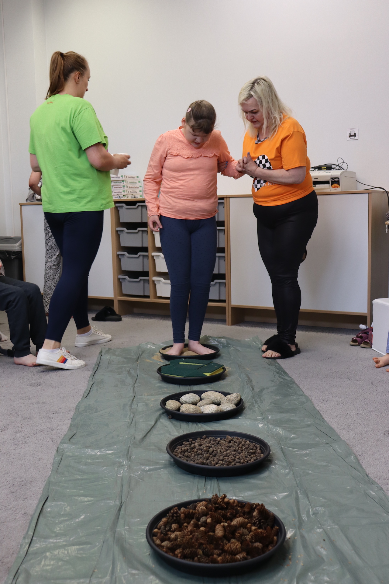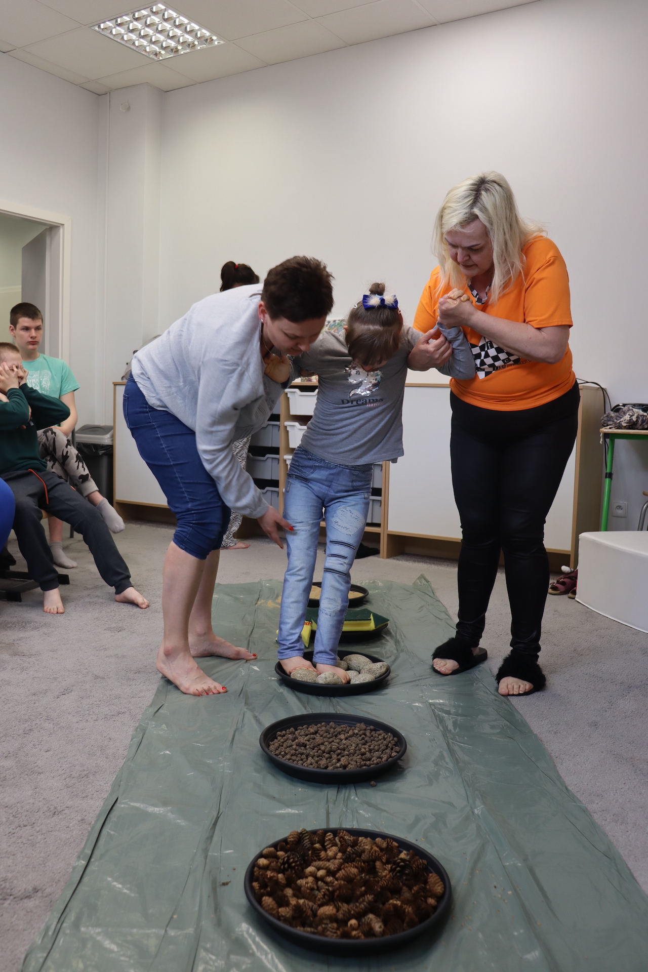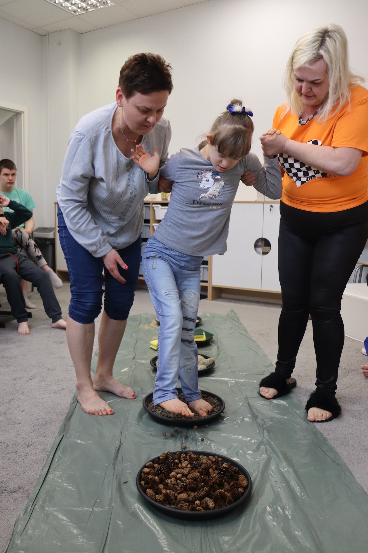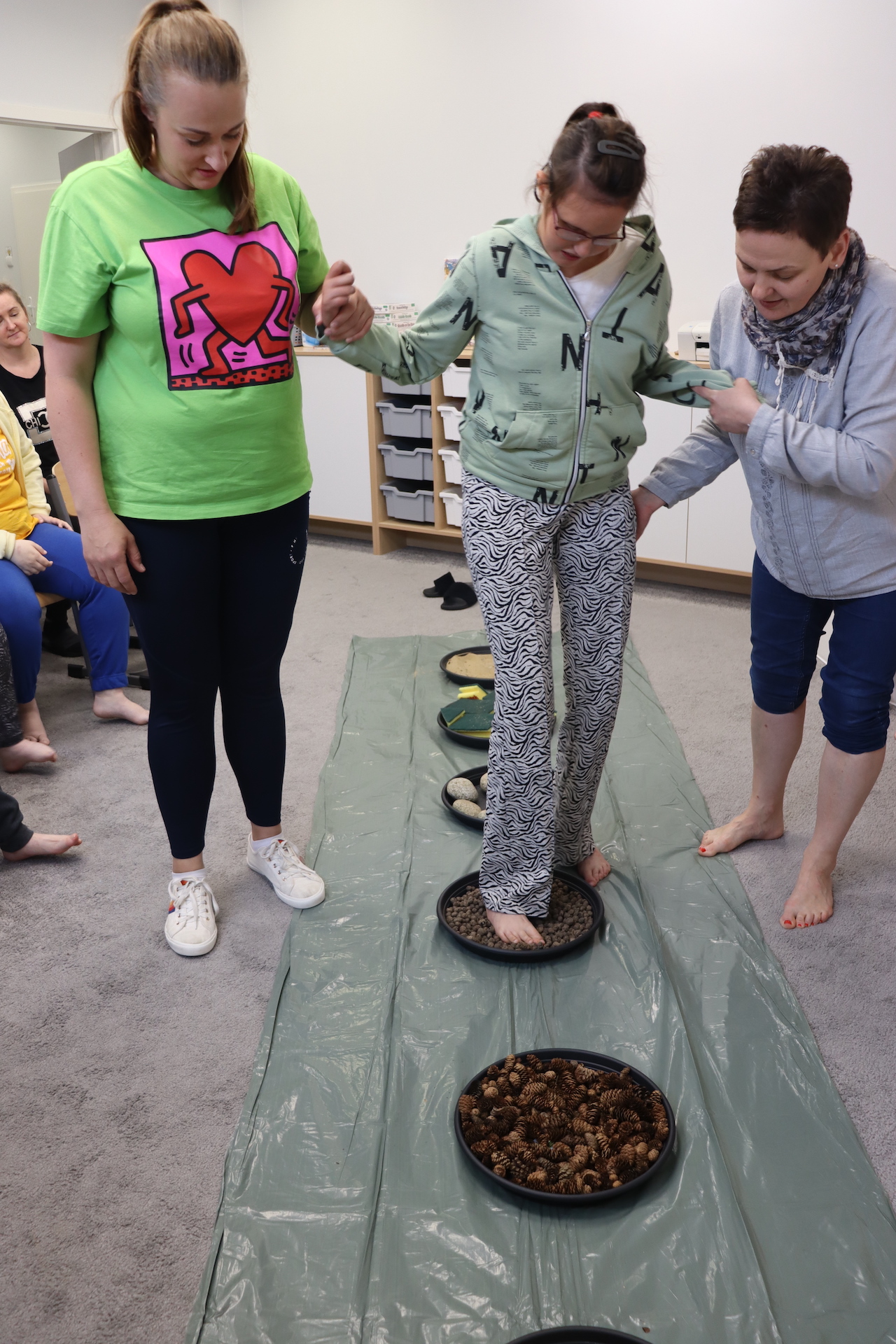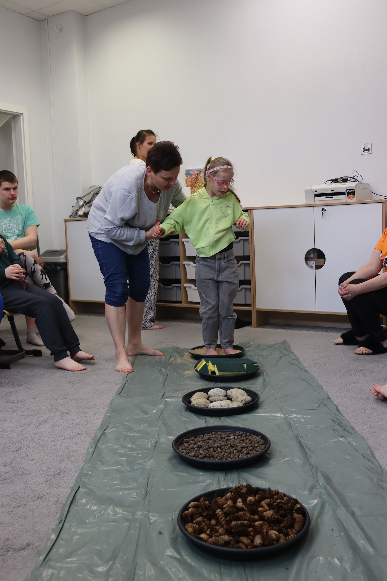Ostanie zadanie z Ogólnopolskiego Projektu Edukacyjnego „Gramy Zmysłami” brzmiało: „ścieżka sensoryczna”. Uczniowie naszej szkoły wspólnie z nauczycielami wykonali wspomnianą ścieżkę z kamieni, piasku, szyszek, drenażu do kwiatków, gąbki i kory. Potem każdy odważnie przeszedł bosymi stopami przez przygotowaną ścieżkę, która dostarczyła nam różnorodnych bodźców, jak również pobudziła percepcję wzrokowo–ruchową, i kształtując właściwą reakcję na dotyk. Ćwiczyliśmy dzięki temu sprawność motoryczną, równowagę, koordynację ruchową, percepcję wzrokową oraz planowanie ruchu.