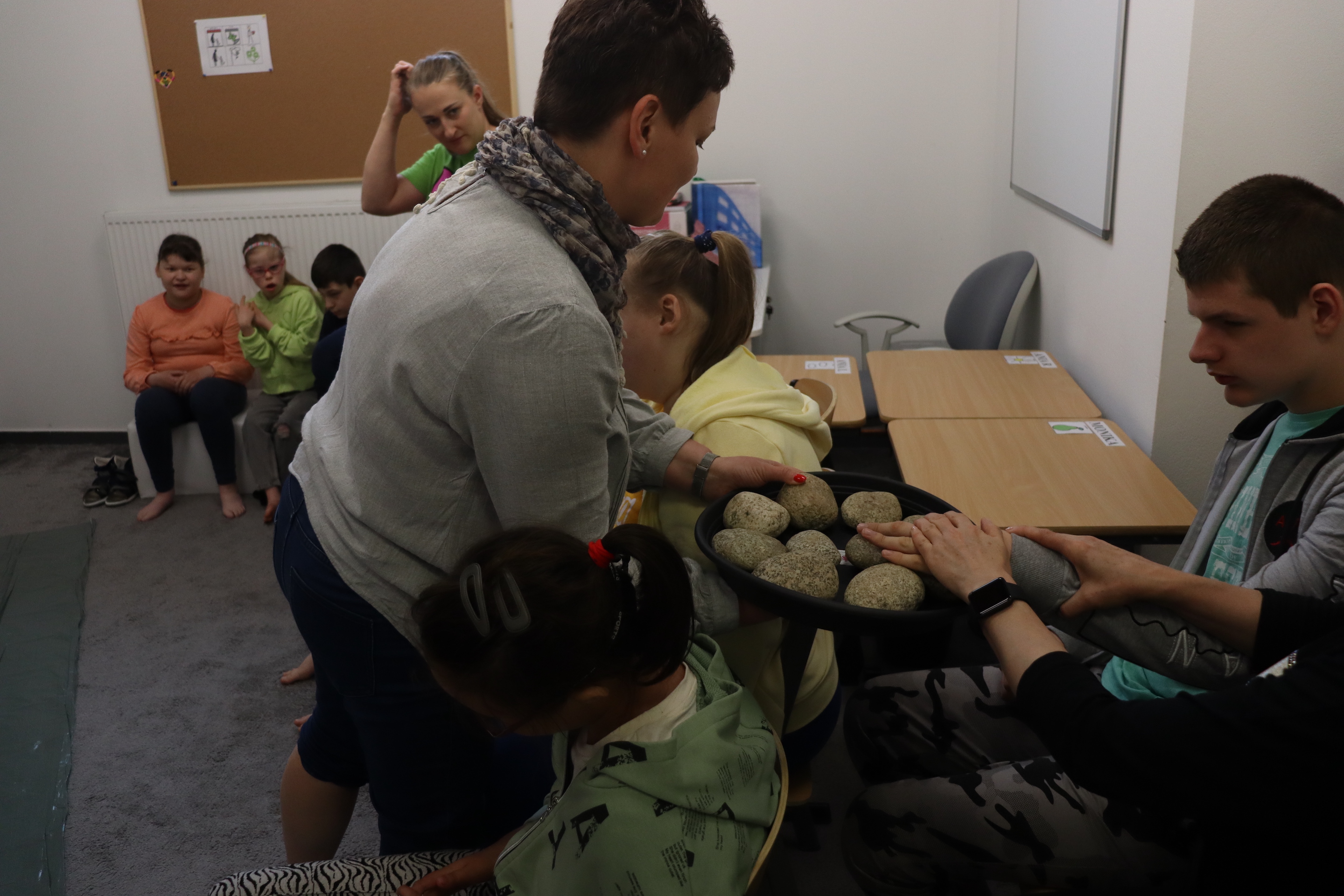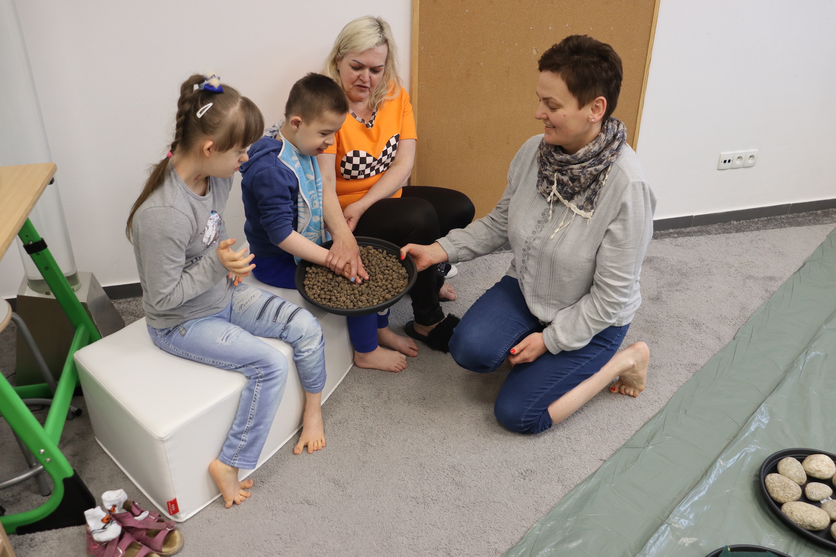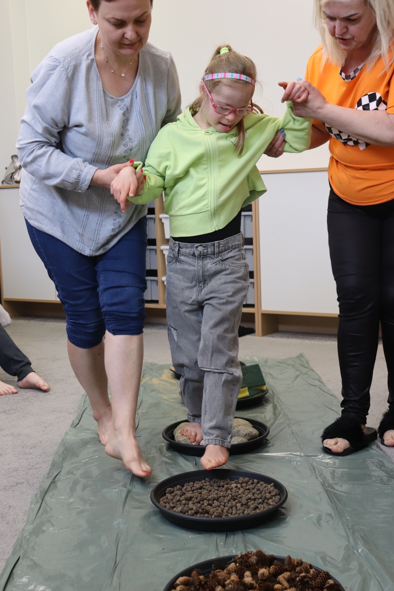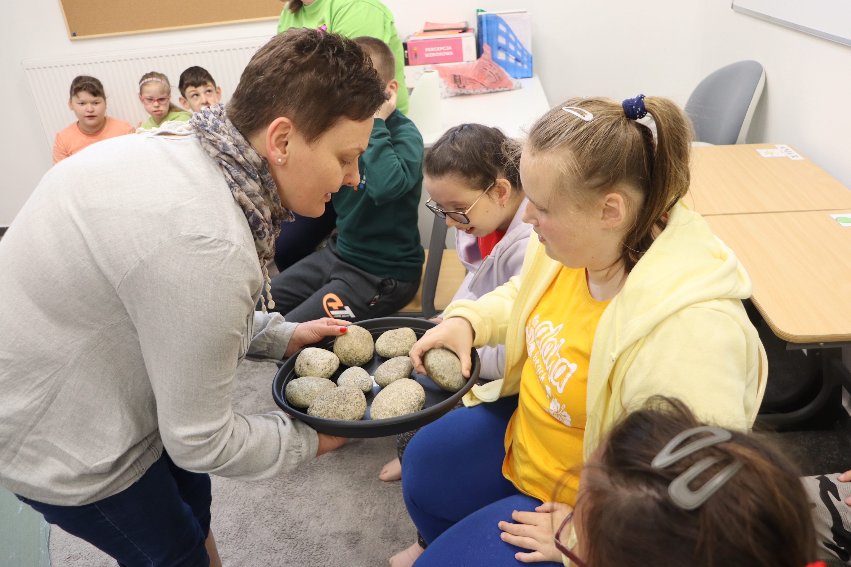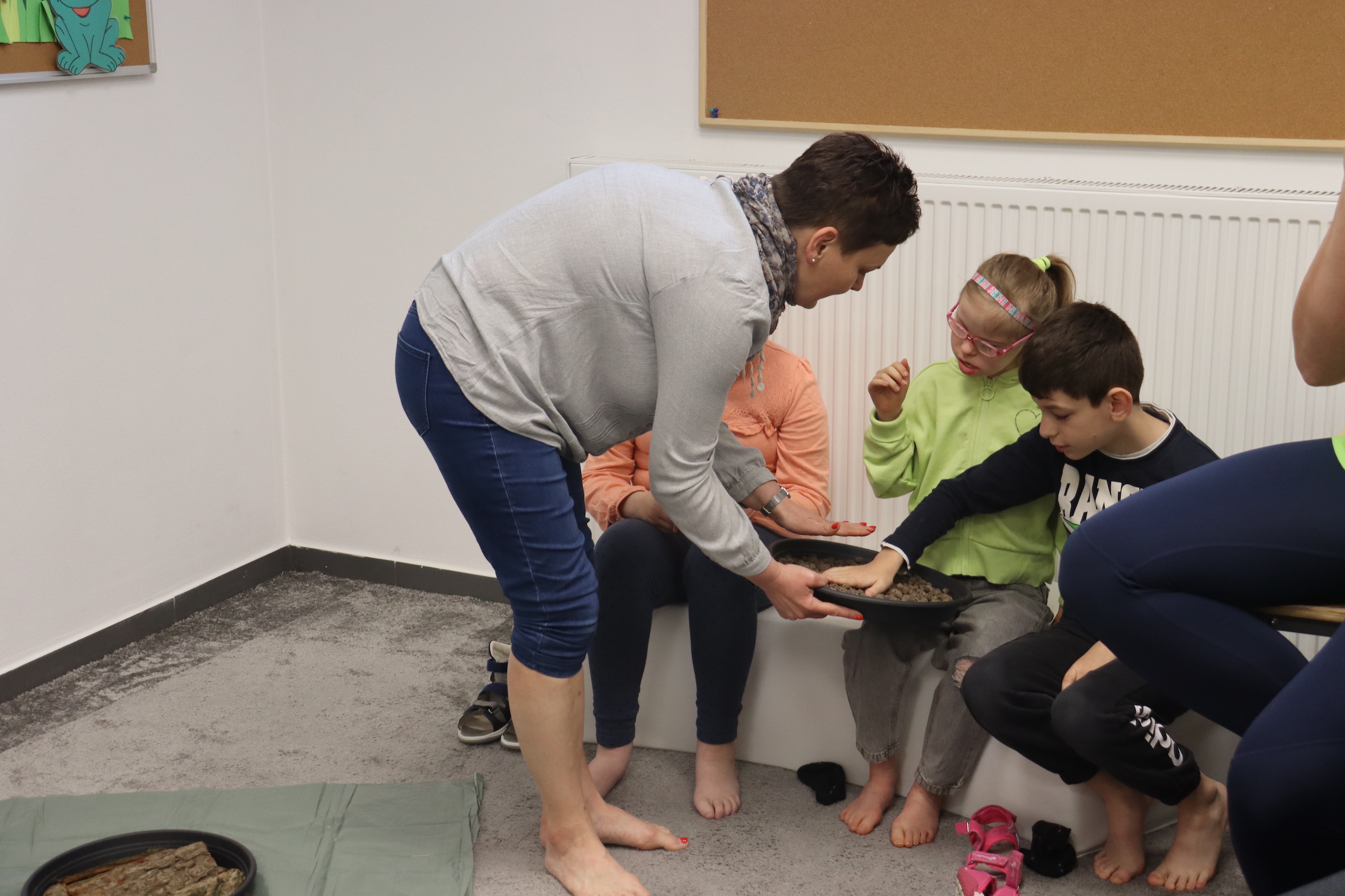 Ostanie zadanie z Ogólnopolskiego Projektu Edukacyjnego „Gramy Zmysłami” brzmiało: „ścieżka sensoryczna”. Uczniowie naszej szkoły wspólnie z nauczycielami wykonali wspomnianą ścieżkę z kamieni, piasku, szyszek, drenażu do kwiatków, gąbki i kory. Potem każdy odważnie przeszedł bosymi stopami przez przygotowaną ścieżkę, która dostarczyła nam różnorodnych bodźców, jak również pobudziła percepcję wzrokowo–ruchową, i kształtując właściwą reakcję na dotyk. Ćwiczyliśmy dzięki temu sprawność motoryczną, równowagę, koordynację ruchową, percepcję wzrokową oraz planowanie ruchu.