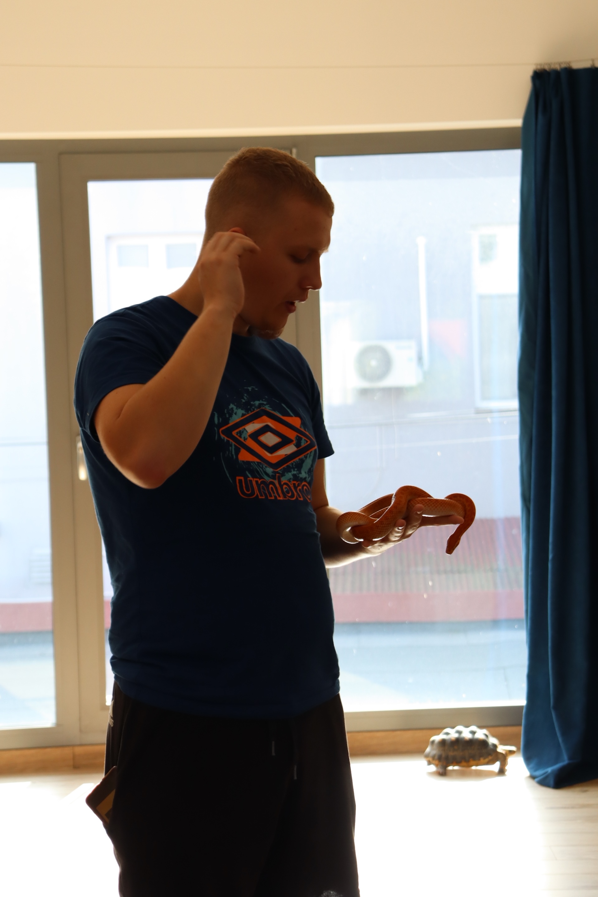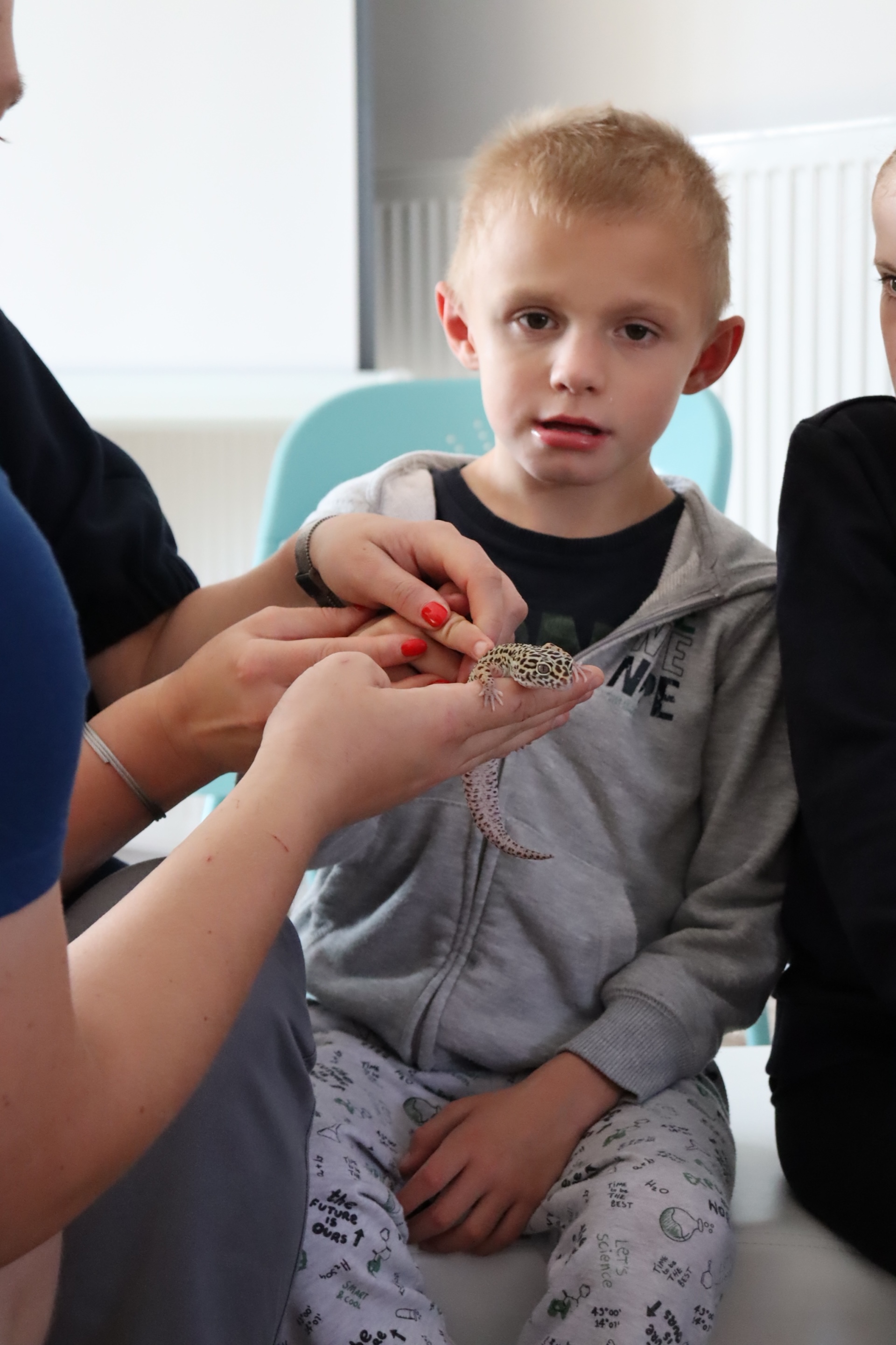 W dniu 5 października w szkole odbyły się warsztaty przyrodnicze z cyklu „Odlotowe Pokazy”. Tym razem gościliśmy żółwia, jaszczurkę i węża. Uczniowie mieli okazję zobaczyć z bliska egzotyczne zwierzątka, mogli je dotknąć i pogłaskać. Z zainteresowaniem słuchali ciekawostek na temat wyglądu i życia zwierząt w ich naturalnym środowisku. Uczniowie okazali się być bardzo dzielni, nie każdy dorosły odważyłby się pogłaskać węża, czy jaszczurkę. Brawo!