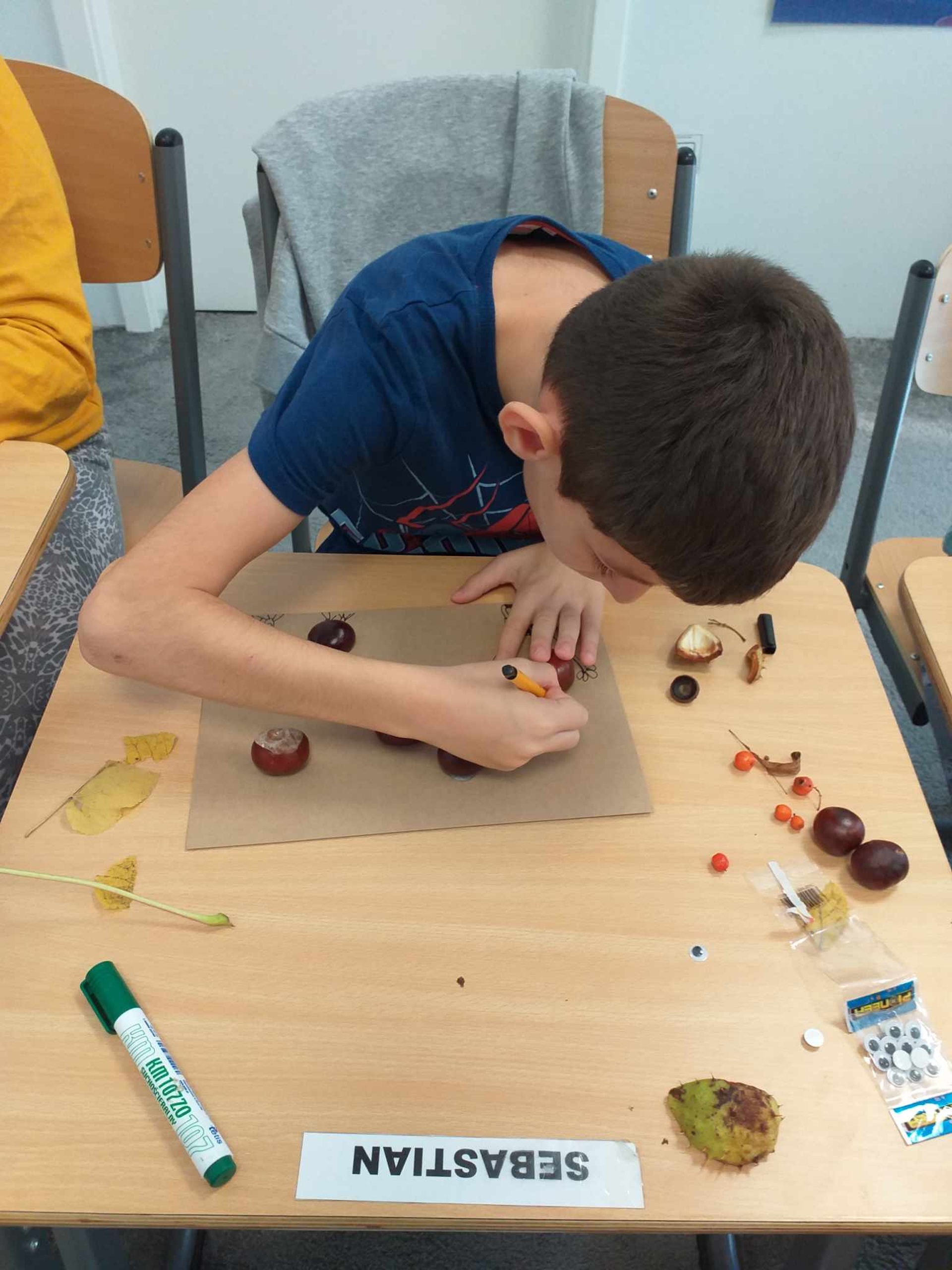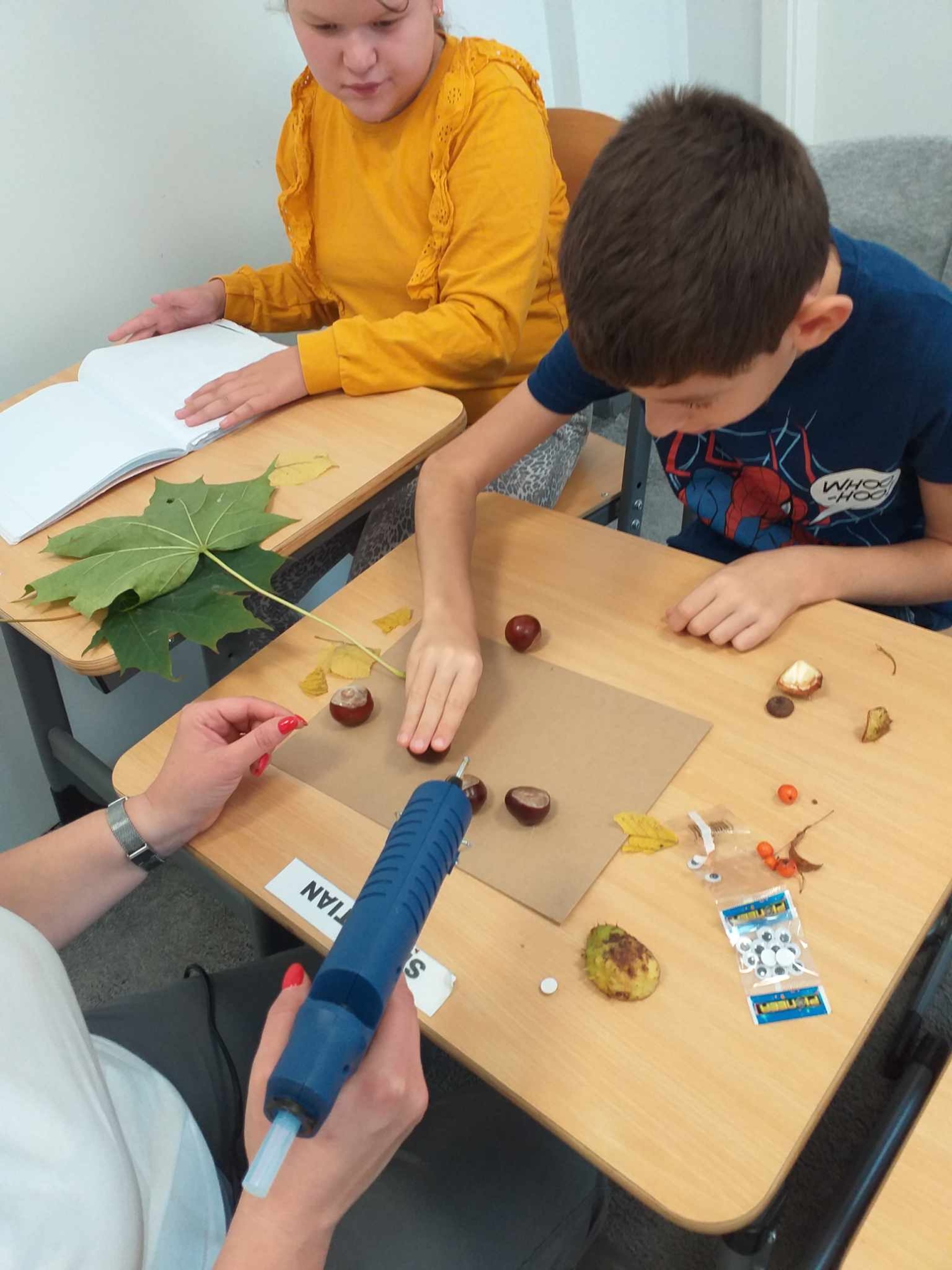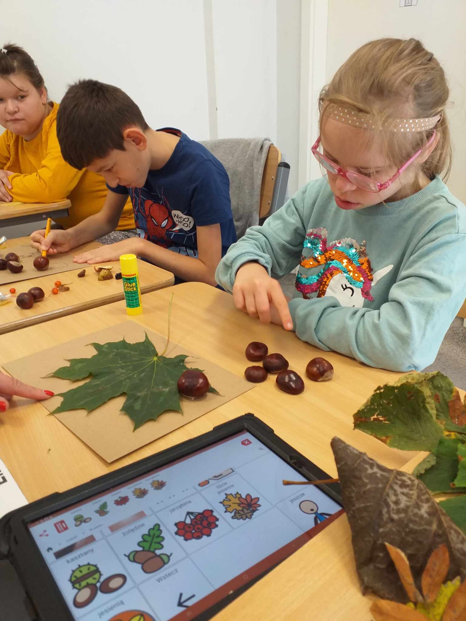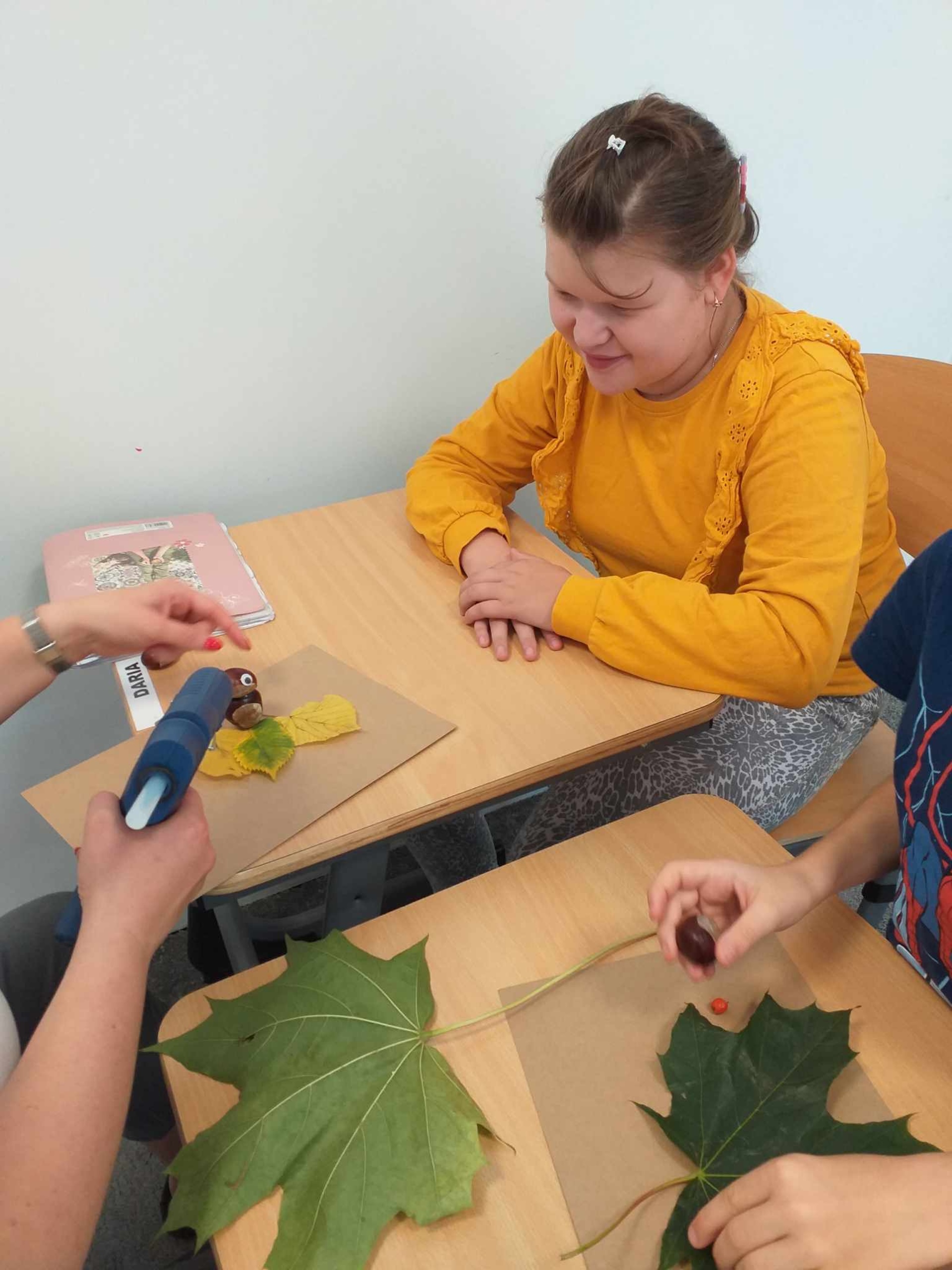 Omawiając temat tygodnia „Jesień w parku” uczniowie oddziału „I”, podczas spaceru po parku, zbierali dary jesieni – kolorowe liście, kasztany, jarzębinę i żołędzie. Na zajęciach z kreatywności wykonali z nich ciekawe prace plastyczne. Rozwijali przy tym wyobraźnię i kreatywność. Oto fotorelacja z ich pracy.