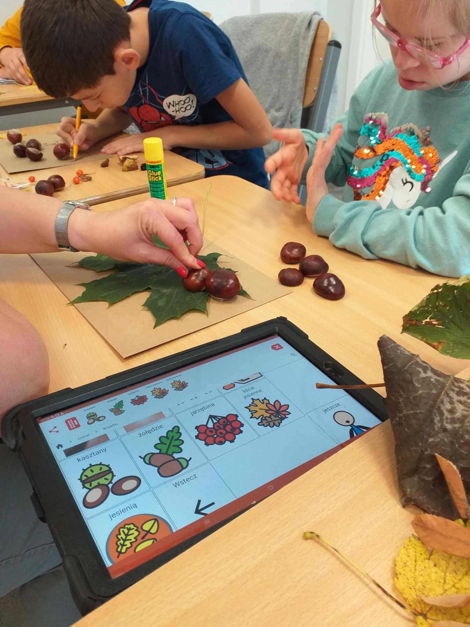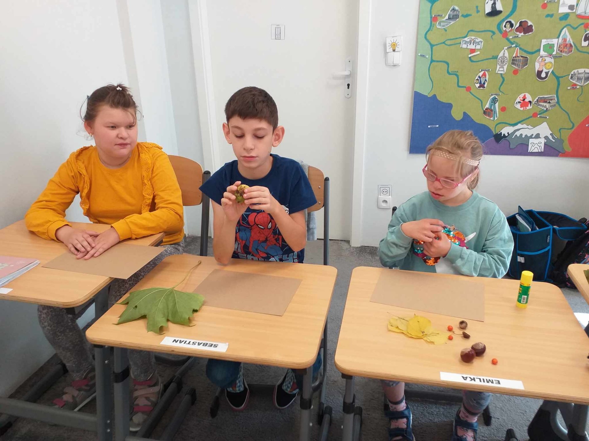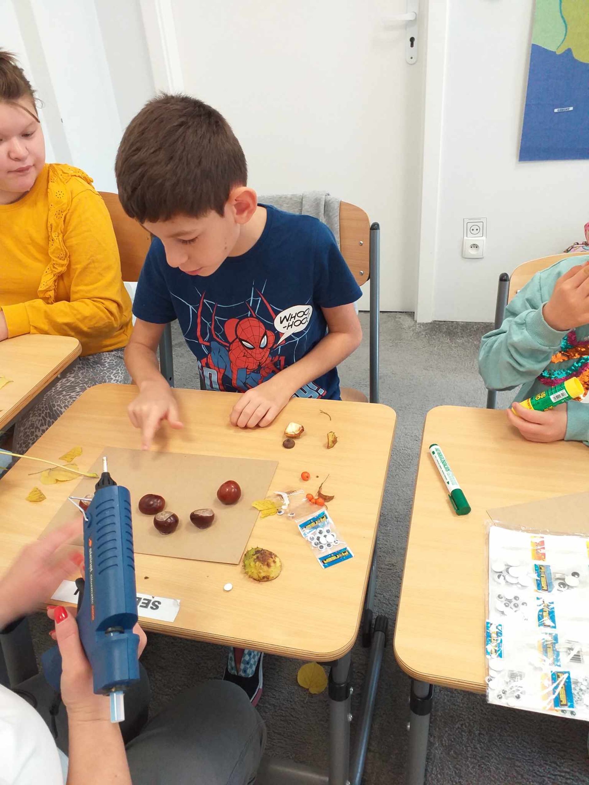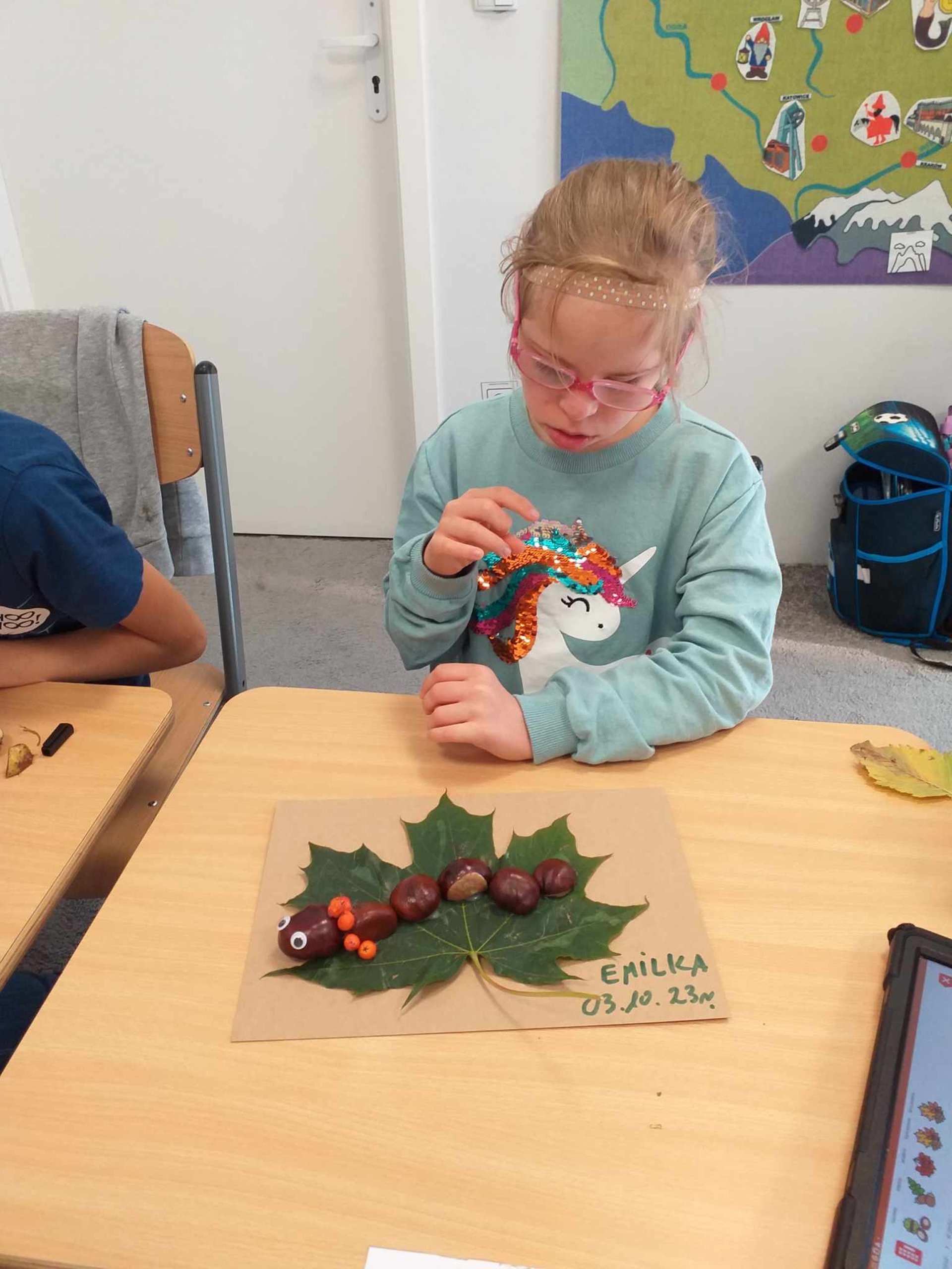 Omawiając temat tygodnia „Jesień w parku” uczniowie oddziału „I”, podczas spaceru po parku, zbierali dary jesieni – kolorowe liście, kasztany, jarzębinę i żołędzie. Na zajęciach z kreatywności wykonali z nich ciekawe prace plastyczne. Rozwijali przy tym wyobraźnię i kreatywność. Oto fotorelacja z ich pracy.