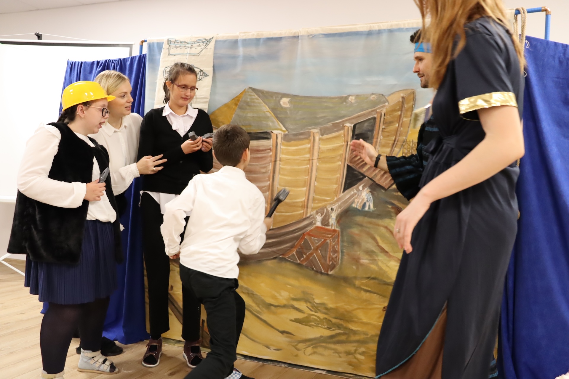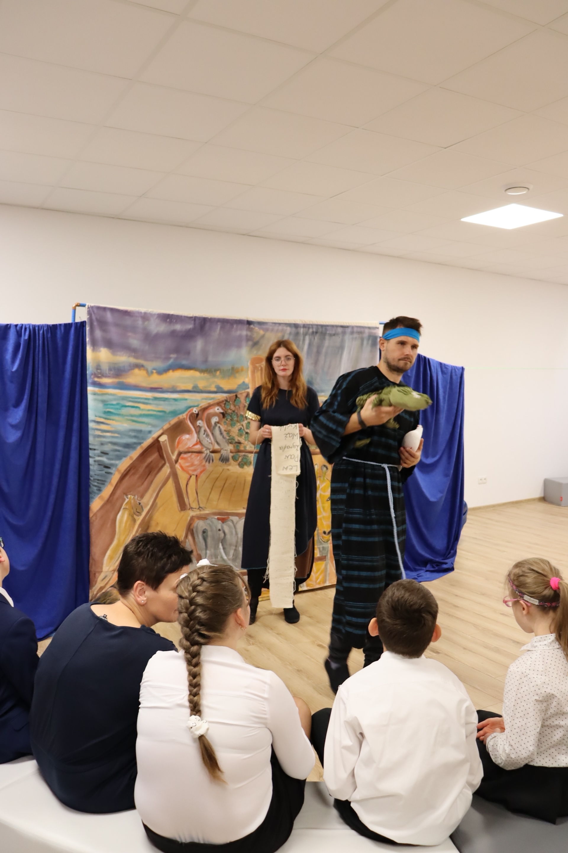 W dniu 12 października gościliśmy w szkole Teatr Eden ze spektaklem pt. „Arka Noego”. Uczniowie mieli okazję poznać historię biblijnego bohatera. Oprócz aktorów występowały też pluszowe zwierzęta, które sprawiły dzieciom wiele radości. Aktorzy do spektaklu zaangażowali chętnych uczniów. Dzieci budowały arkę i opiekowały się zwierzątkami. Dowiedziały się też jak ważną wartością w życiu człowieka jest dobro i zrozumiały, jak bardzo potrzebne jest niesienie pomocy innym i spełnianie każdego dnia dobrych uczynków.