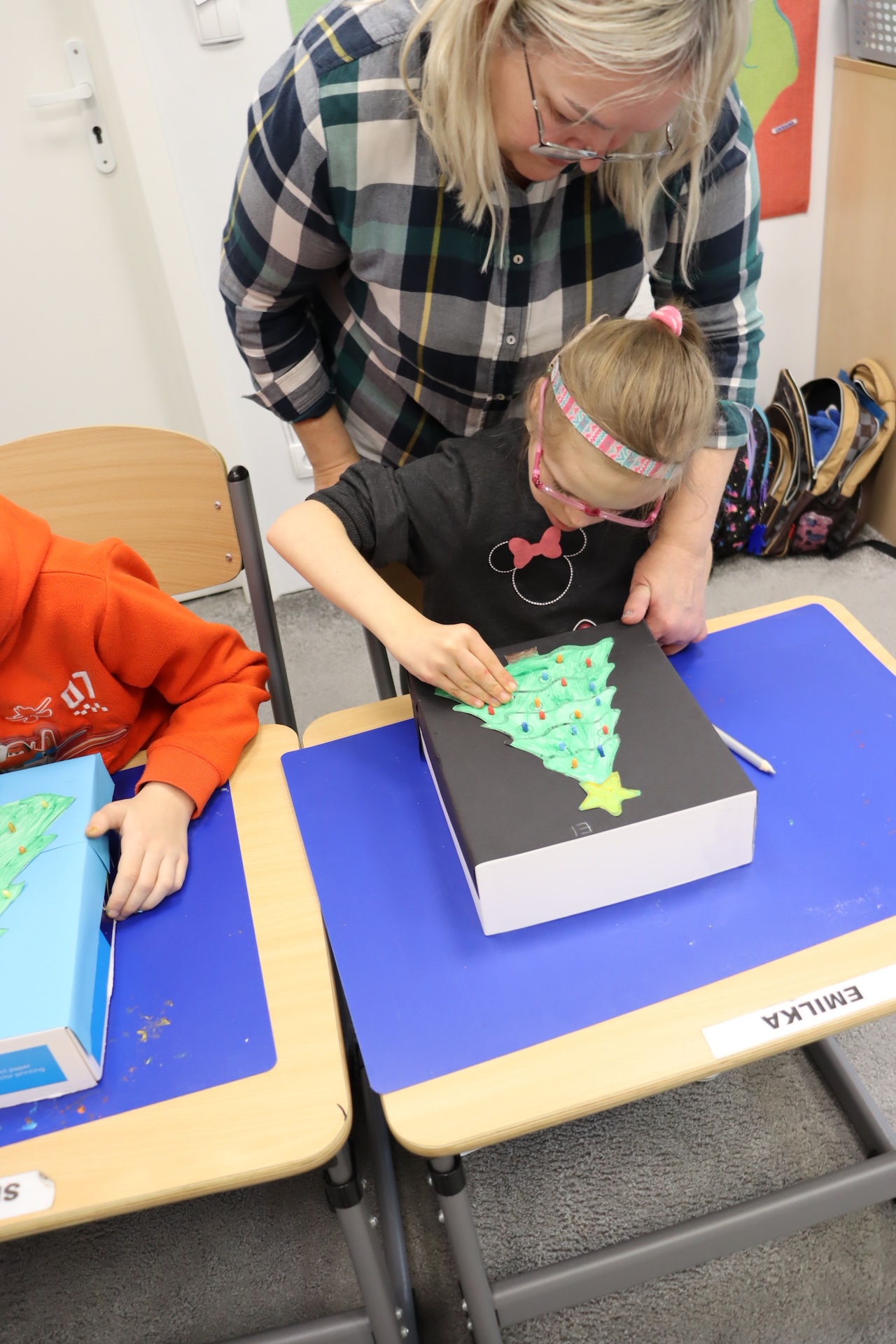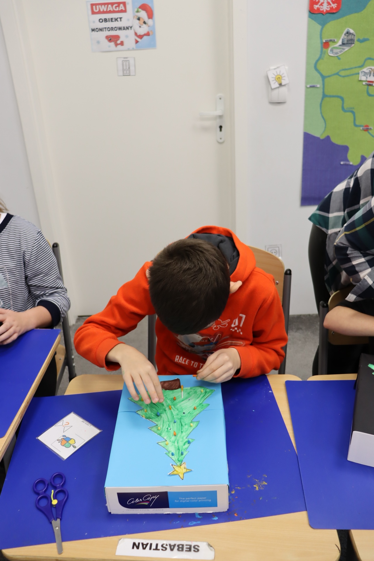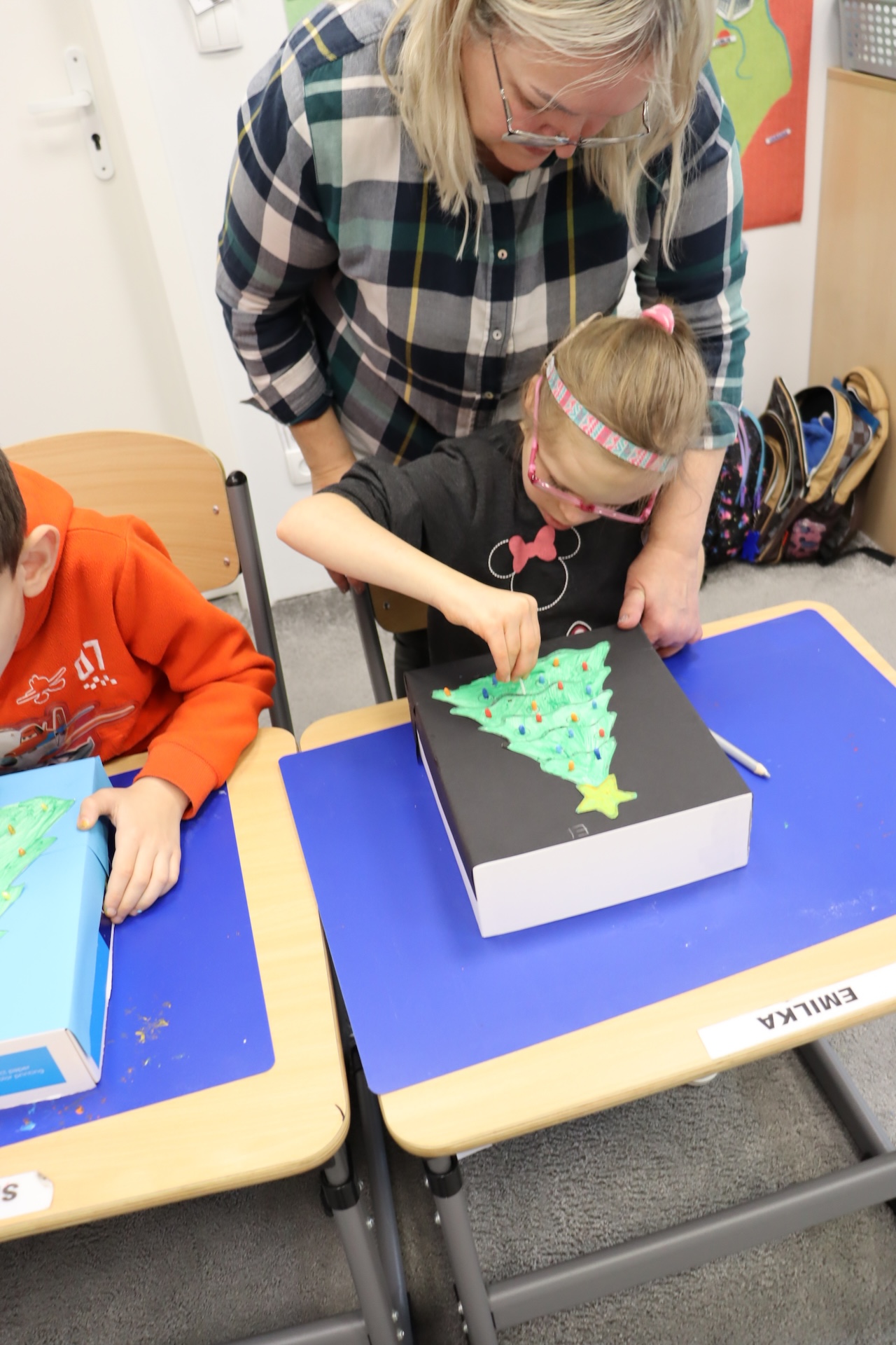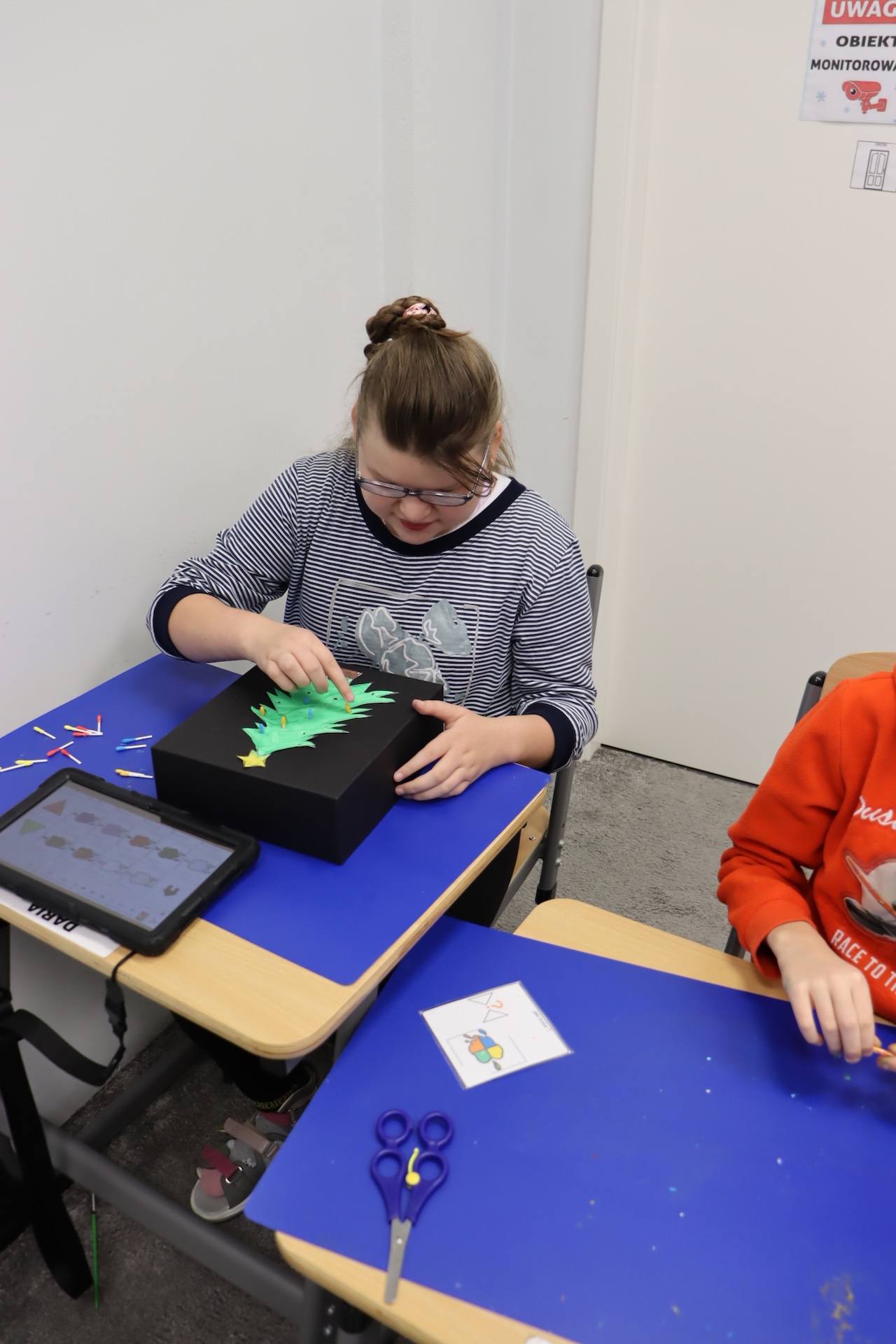 Przy okazji realizowania tematu „Tradycje świąteczne” uczniowie oddziału „I” omawiali zwyczaj ubierania choinki, wykonując przy tym pracę plastyczną w ramach Ogólnopolskiego Projektu „Dotknij, zobacz, poczuj”, której celem było ćwiczenie i rozwijanie motoryki małej. A w ramach zajęć świetlicowych ubrali szkolną choinkę.
