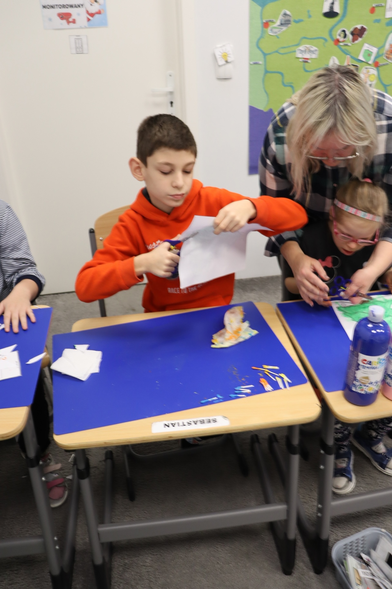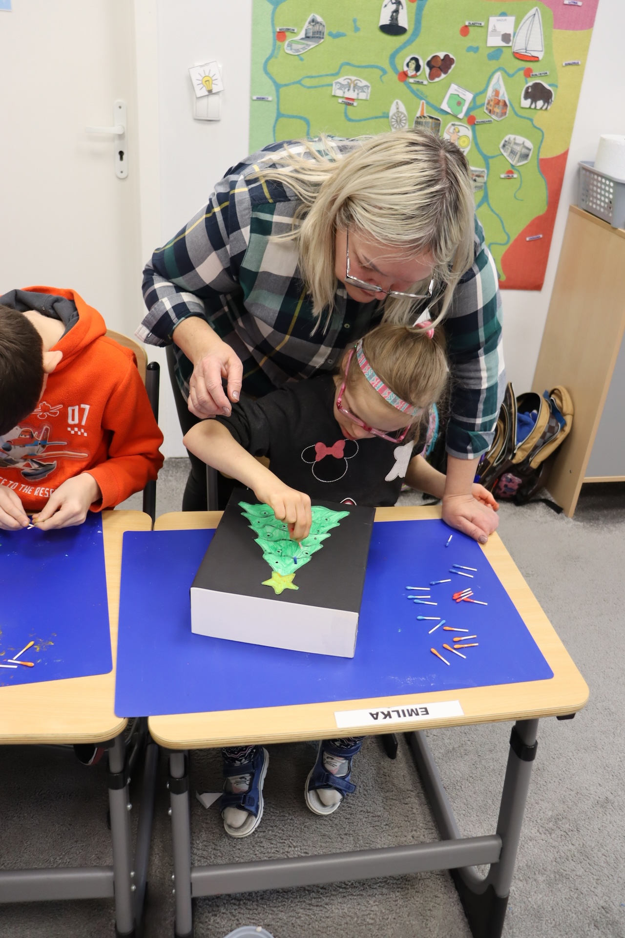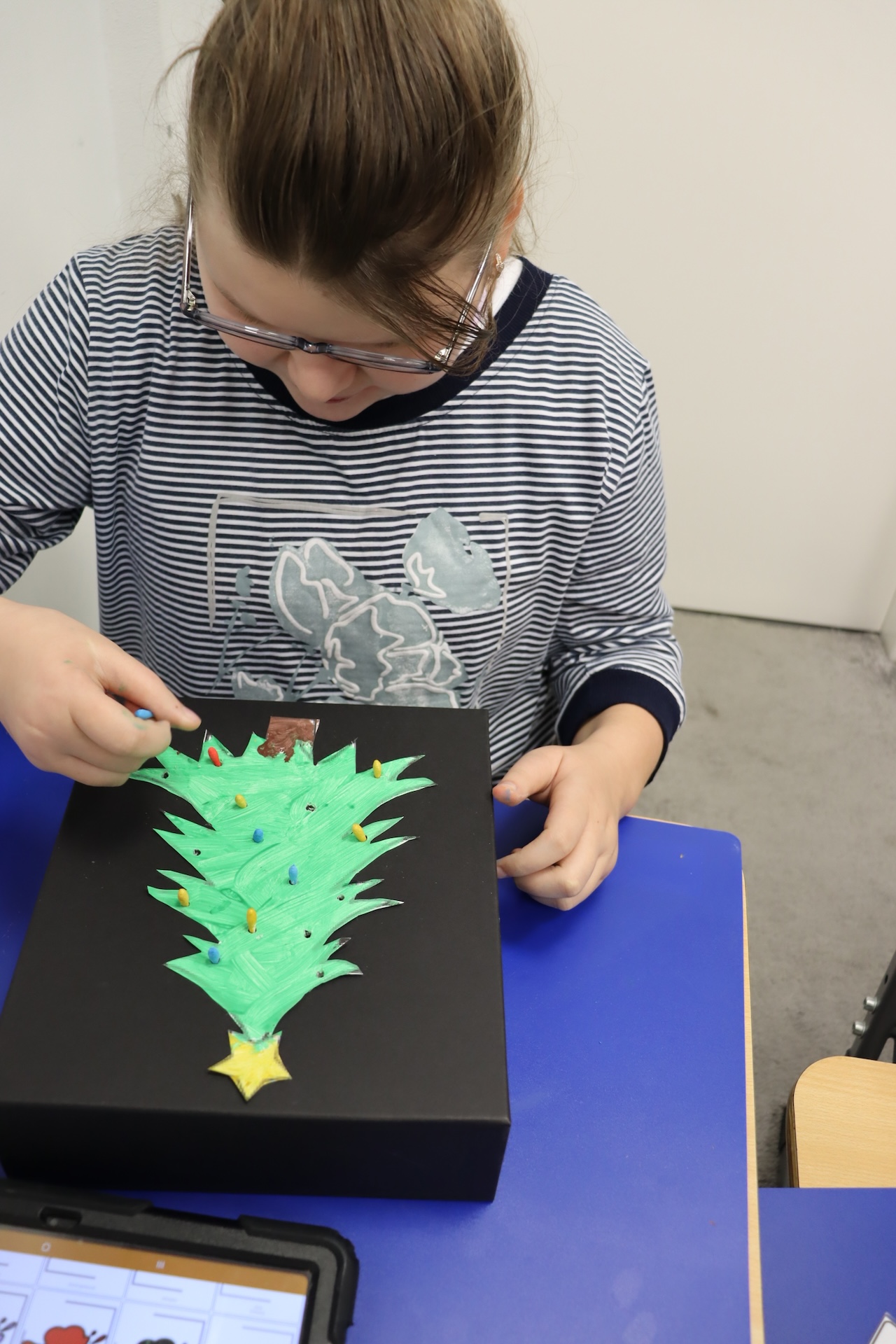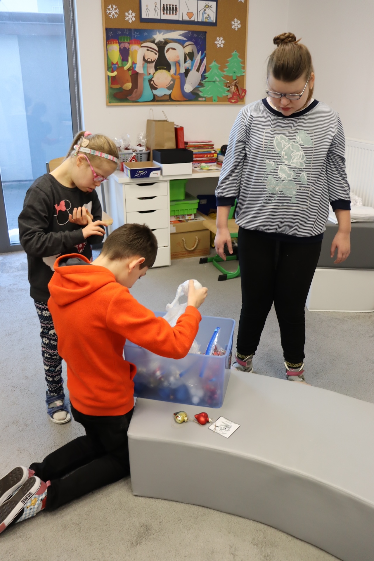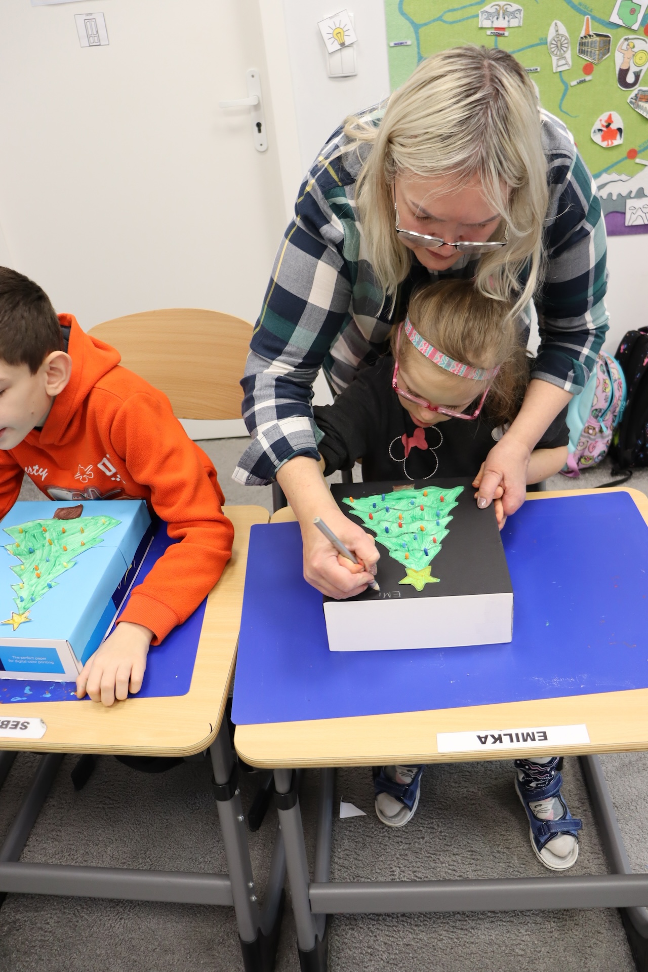 Przy okazji realizowania tematu „Tradycje świąteczne” uczniowie oddziału „I” omawiali zwyczaj ubierania choinki, wykonując przy tym pracę plastyczną w ramach Ogólnopolskiego Projektu „Dotknij, zobacz, poczuj”, której celem było ćwiczenie i rozwijanie motoryki małej. A w ramach zajęć świetlicowych ubrali szkolną choinkę.